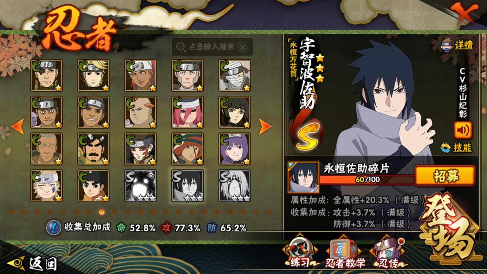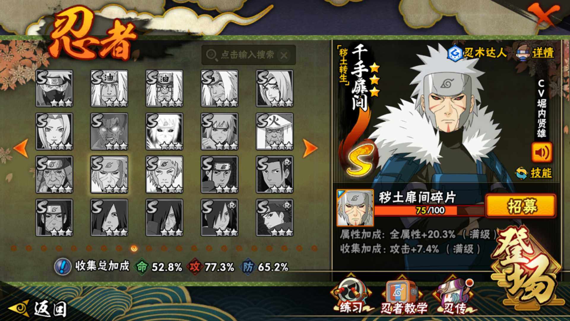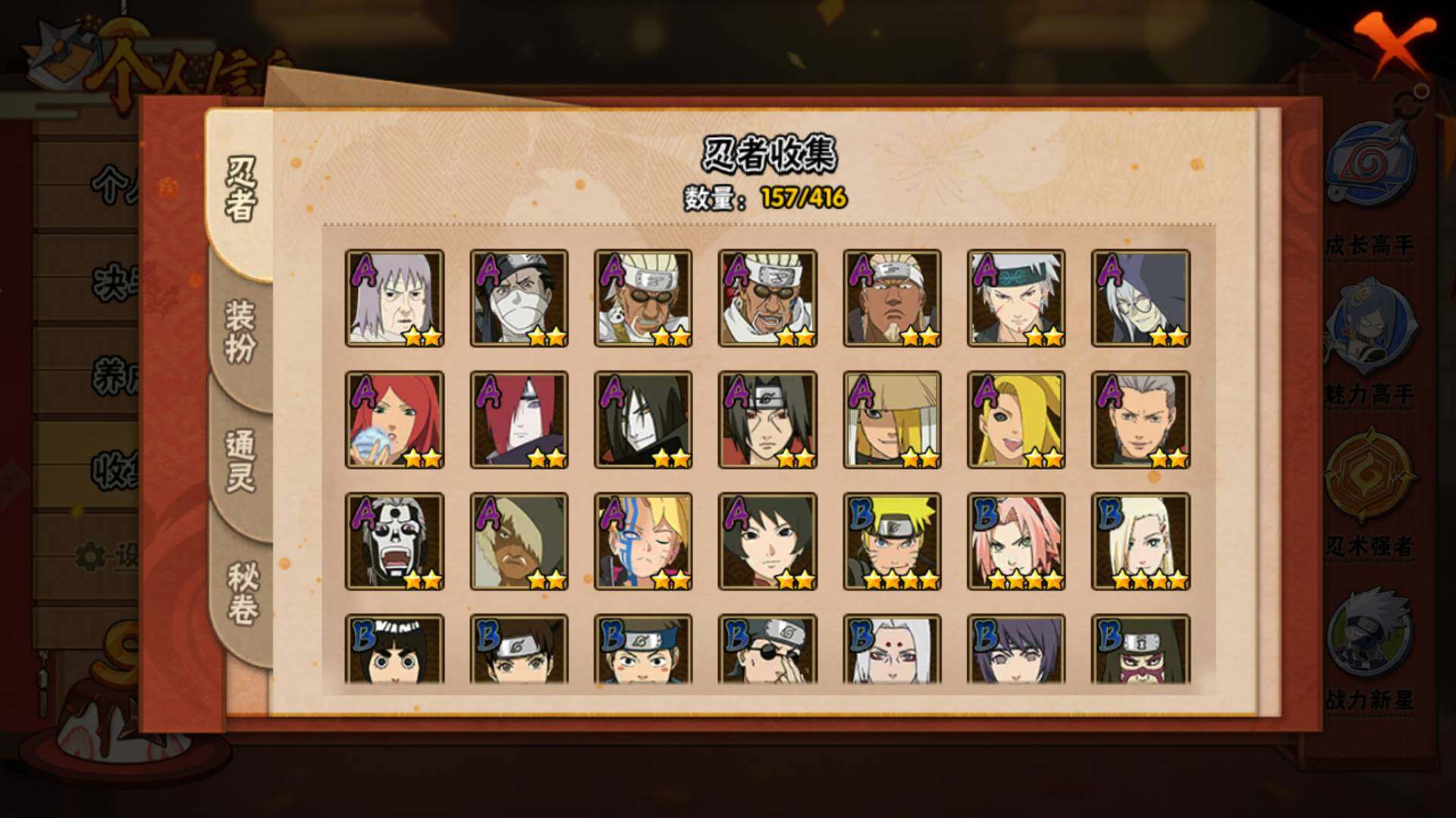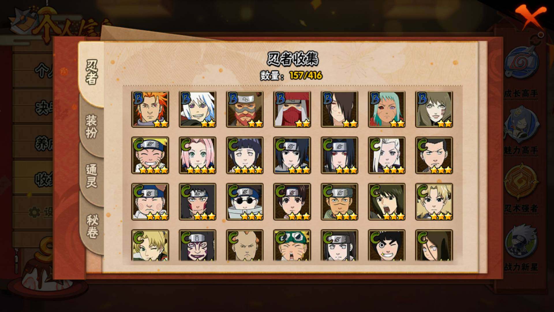 [14550104]v9 9s 30a 572万战力 点卷a面麻、秽土阿斯玛、漂泊扉间。侠隐兜等 yy1601 【s级忍者】:宇智波鼬「秽土转生」3星,宇智波斑「秽土转生·解」3星,宇智波带土「忍界大战」3星,宇智波鼬「须佐能乎」3星,自来也「舞之豪杰」3星,大蛇丸3星,波风水门3星,漩涡鸣人「九喇嘛连结」3星,佩恩「天道」3星 【a级忍者】:艾「青年」2星,长门「青年」2星,波风水门「青年」2星,达鲁伊「博人传」2星,迪达拉2星,迪达拉「秽土转生」2星,大蛇丸「晓」2星,奇拉比2星,奇拉比「忍界大战」2星,飞段2星,飞段「死司凭血」2星,干柿鬼鲛4星,漩涡博人「桃式显现」2星,迈特凯2星,桃地再不斩2星,我爱罗「疾风传」3星,蝎3星,猿飞阿斯玛2星,猿飞阿斯玛「秽土转生」2星,宇智波鼬2星,宇智波佐助「万花筒写轮眼」2星,药师兜「侠影江湖」2星,神秘面具男「忍者之路」2星,黑土「博人传」2星,千手扉间「漂泊武士」2星,秋道丁次「忍界大战」2星,千代「近松十人卫」2星,不风2星,宇智波泉奈2星,迈特凯「青春爆炸」2星
