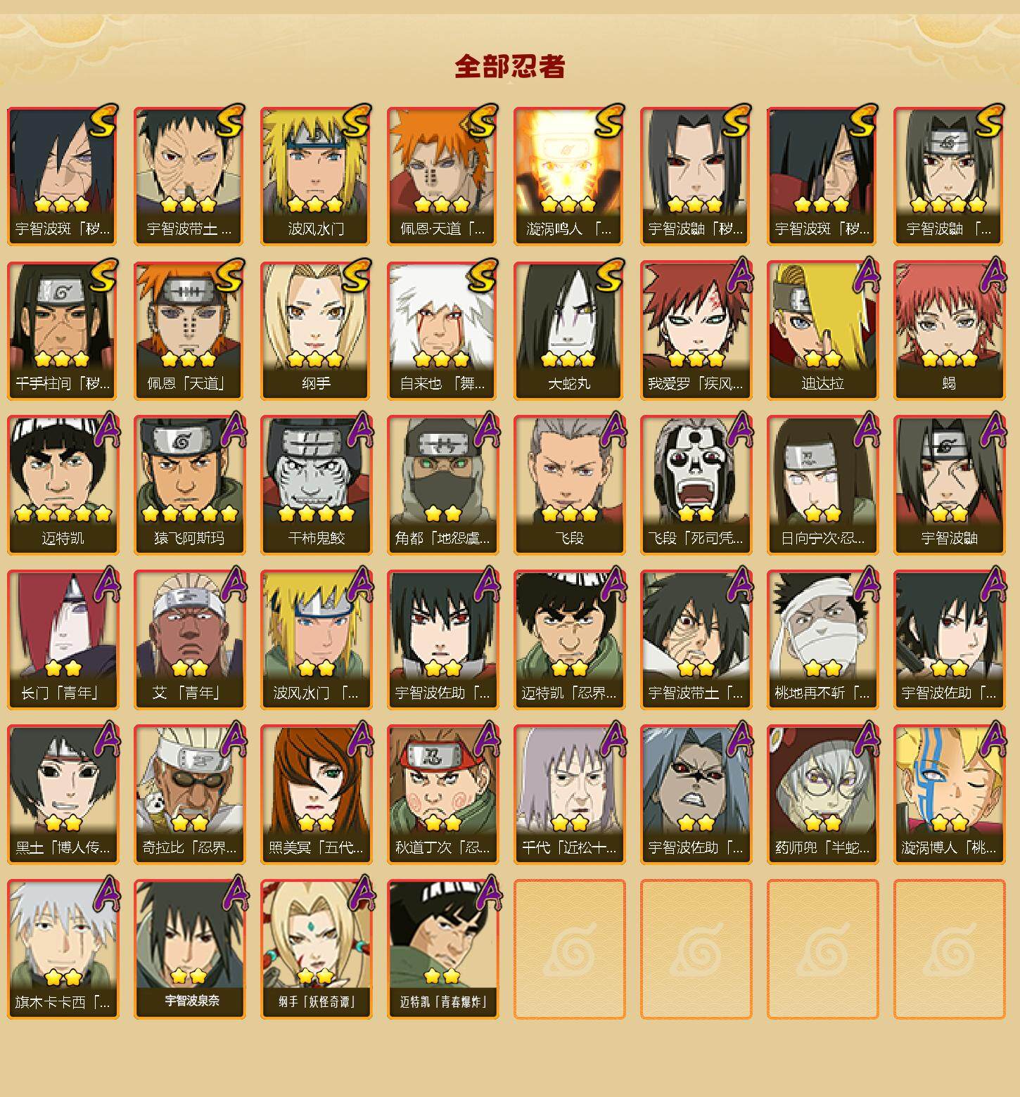 【hyyh787】v10/战力714w/s忍13/a忍31/3星宇智波斑「秽土转生」/4星干柿鬼鲛/2星日向宁次「忍界大战」/3星纲手/2星飞段「死司凭血」/2星宇智波鼬/5星猿飞阿斯玛/3星宇智波鼬「秽土转生」/2星长门「青年」/2星宇智波佐助「疾风传咒印」/3星宇智波带土「忍界大战」/3星飞段/3星佩恩「天道」/2星桃地再不斩「漂泊武士」/2星角都「地怨虞」/2星照美冥「五代目水影」/4星宇智波鼬「须佐能乎」/3星波风水门/3星蝎/3星漩涡鸣人「九喇嘛连结」/2星秋道丁次「忍界大战」/5星迈特凯/2星漩涡博人「桃式显现」/2星奇拉比「忍界大战」/2星迈特凯「忍界大战」/3星千手柱间「秽土转生」/3星我爱罗「疾风传」/2星波风水门「青年」/3星自来也「舞之豪杰」/2星宇智波带土「暴怒」/2星黑土「博人传」/3星佩恩·天道「超」/2星药师兜「半蛇斗篷」/2星纲手「妖怪奇谭」/2星宇智波佐助「万花筒写轮眼」/2星宇智波泉奈/2星迪达拉/2星旗木卡卡西「幻之真容」/3星大蛇丸/3星宇智波斑「秽土转生·解」/2星艾「青年」/2星迈特凯「青春爆炸」/2星宇智波佐助「须佐能乎」/2星千代「近松十人卫」