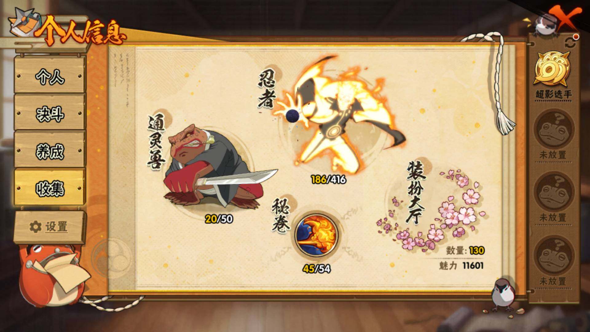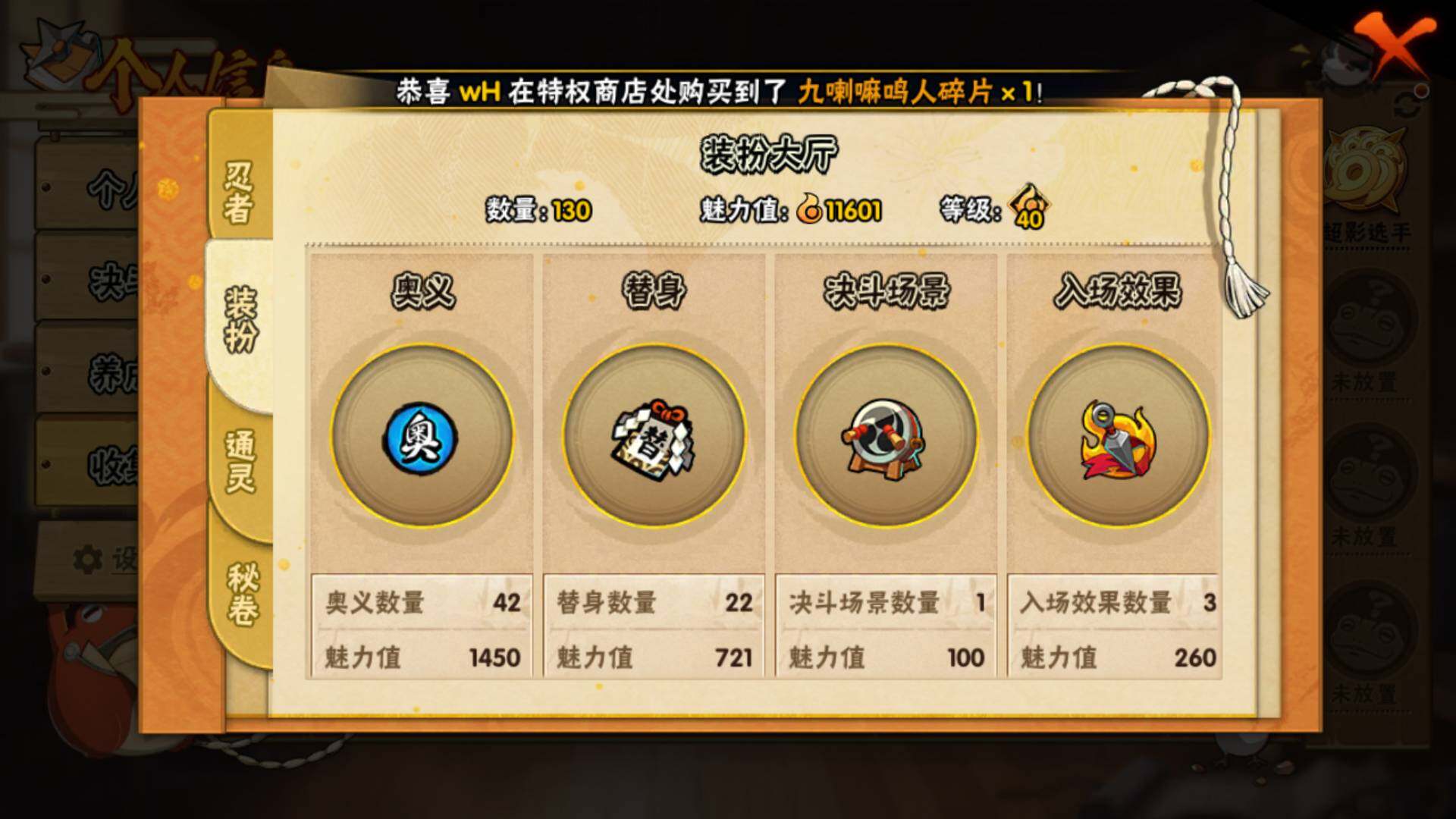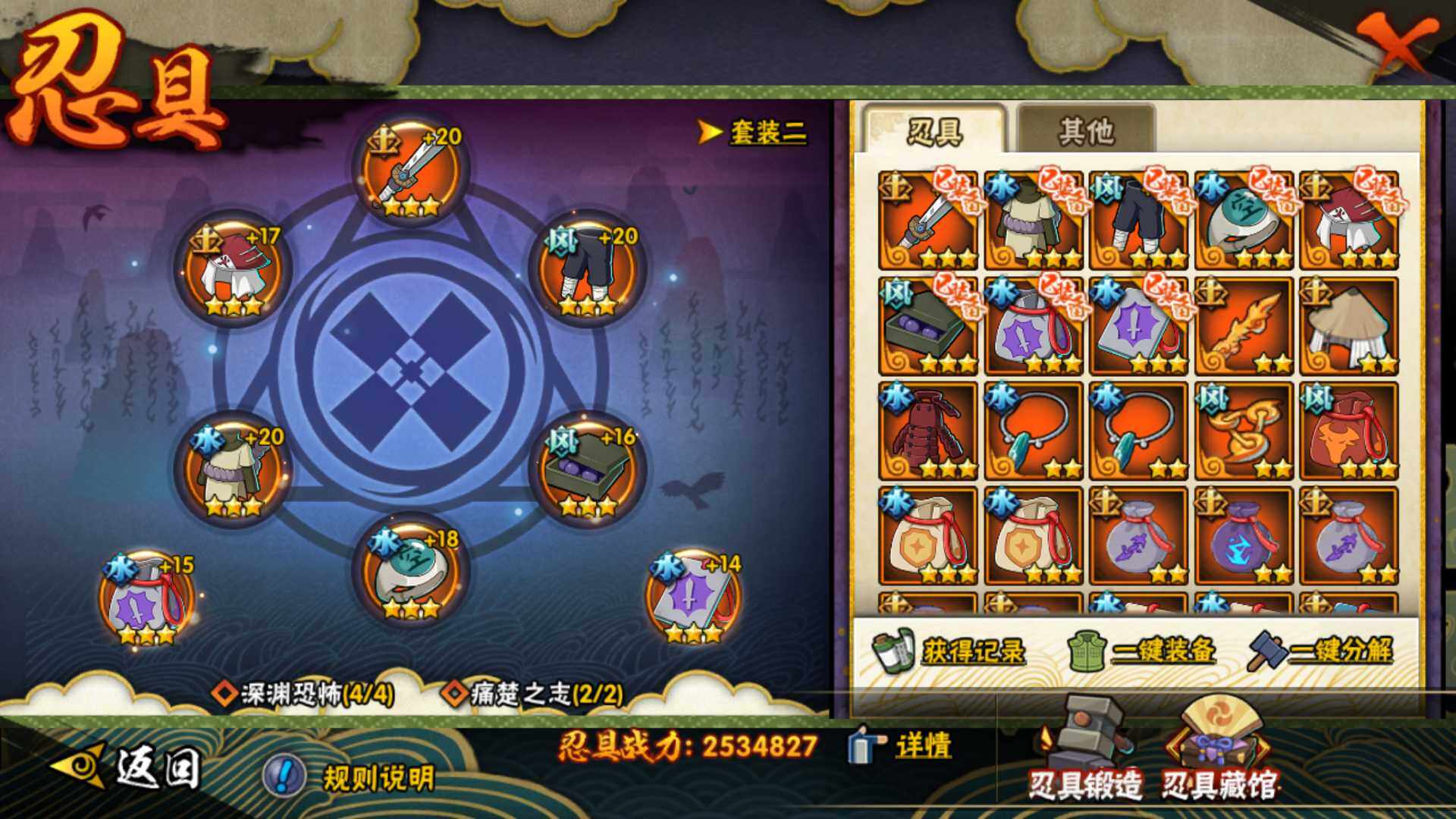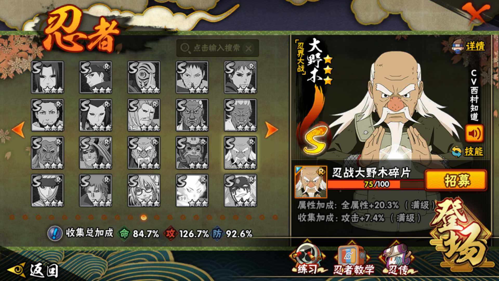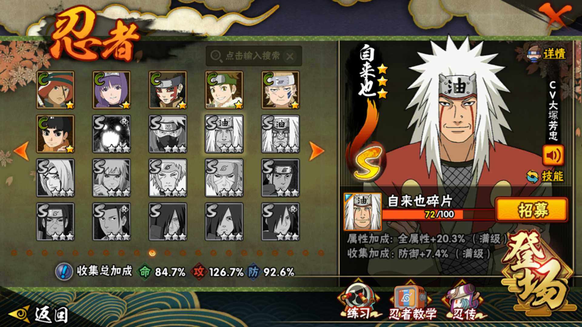 [14616660]v10 19s 41a 1364万战力 热门a侠隐佐助、七夕阿斯玛、新春止水、侠隐照美冥。扉间78片、自来也72片、仙人自来也48片、忍战大野木75片、忍战艾31片。yy1621 【s级忍者】:长门「秽土转生」3星,猿飞日斩「秽土转生」3星,宇智波斑「秽土转生·解」3星,春野樱「忍界大战」3星,宇智波鼬「须佐能乎」3星,自来也「舞之豪杰」3星,大蛇丸3星,自来也「传说中的三忍」3星,纲手3星,猿飞日斩3星,波风水门3星,神秘面具男「红夜之刃」3星,漩涡鸣人「九喇嘛连结」3星,迈特凯「死门」3星,佩恩「天道」3星,宇智波佐助「永恒万花筒」3星,宇智波斑 「白面具」3星宇智波斑「白面具」,波风水门「九喇嘛连结」3星,宇智波斑「五影会谈」3星 【a级忍者】:艾「青年」2星,长门「青年」2星,达鲁伊「博人传」2星,迪达拉2星,迪达拉「秽土转生」2星,大蛇丸「晓」2星,飞段3星,飞段「死司凭血」2星,干柿鬼鲛5星,漩涡博人「桃式显现」2星,漩涡鸣人「九尾查克拉」2星,机械鸣人「初始形态」2星,迈特凯5星,旗木卡卡西「幻之真容」2星,桃地再不斩「秽土转生」2星,我爱罗「疾风传」3星,蝎4星,小南2星,猿飞阿斯玛5星,猿飞阿斯玛「七夕限定」2星,宇智波止水「新春限定」2星,宇智波鼬2星,宇智波佐助「须佐能乎」2星,宇智波佐助「万花筒写轮眼」2星,宇智波佐助「侠隐江湖」2星,药师兜「半蛇斗篷」2星,照美冥「侠隐江湖」2星,照美冥「五代目水影」2星,日向宁次「忍界大战」2星,长十郎「六代目水影」2星,李洛克「忍界大战」2星,黑土「博人传」2星,秋道丁次「忍界大战」2星,千代「近松十人卫」2星,神农「羁绊」2星,土台「忍界大战」3星,不缘2星,宇智波泉奈2星,不动2星,巳月「仙人模式」2星,迈特凯「青春爆炸」2星