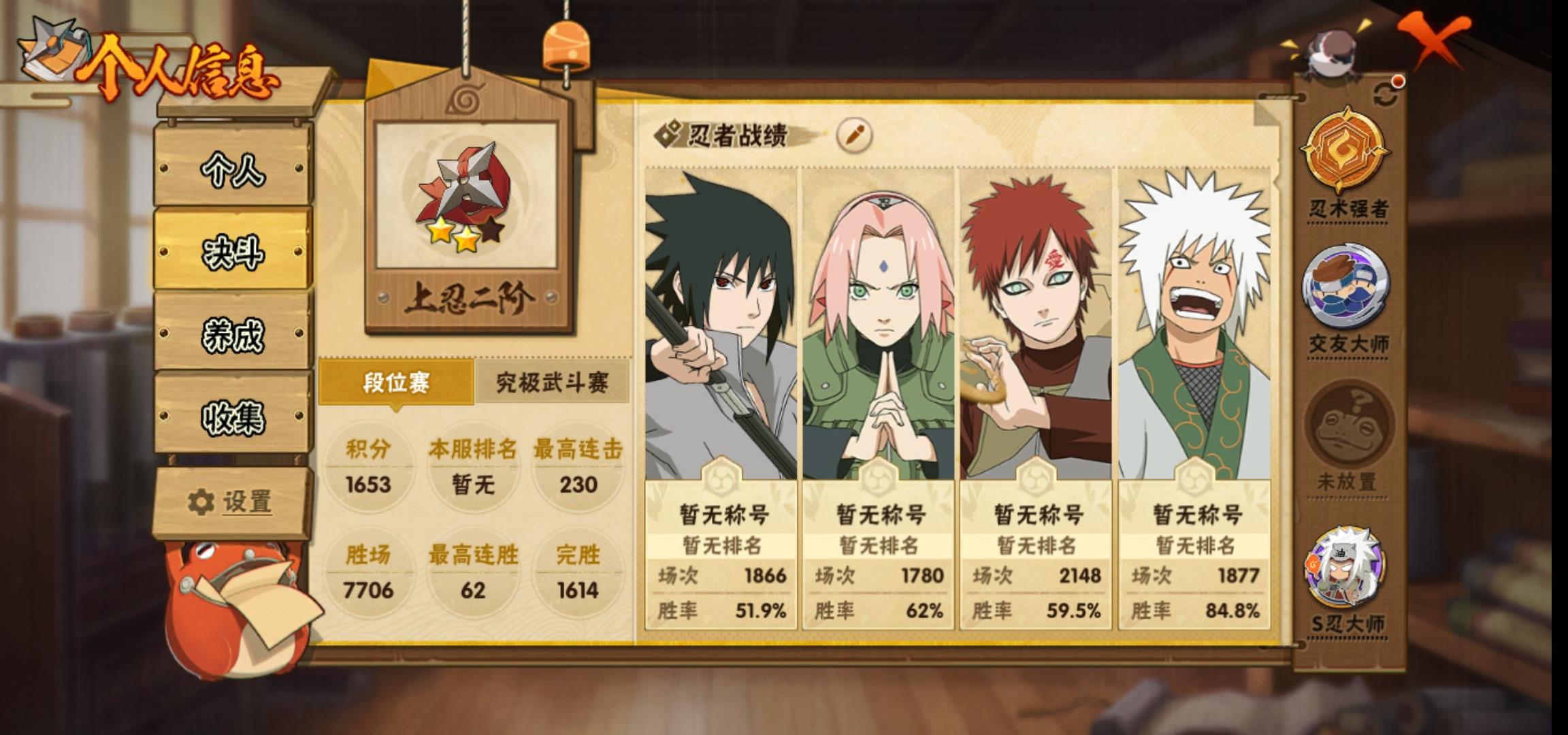 [14721056]0aqyvp 号 vip11,973w战力,s忍23个,a忍44个,本服排名1042,战区排名未上榜,通灵兽318个,3时装,上忍2阶,忍者星数564