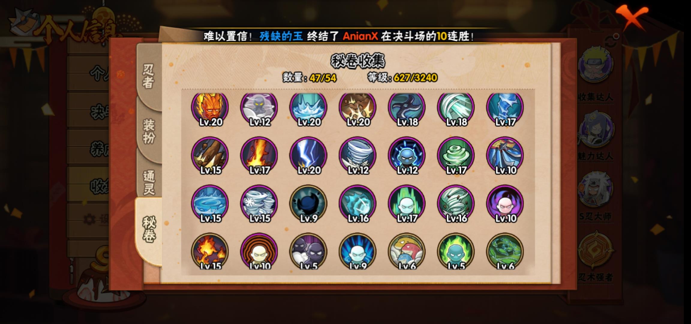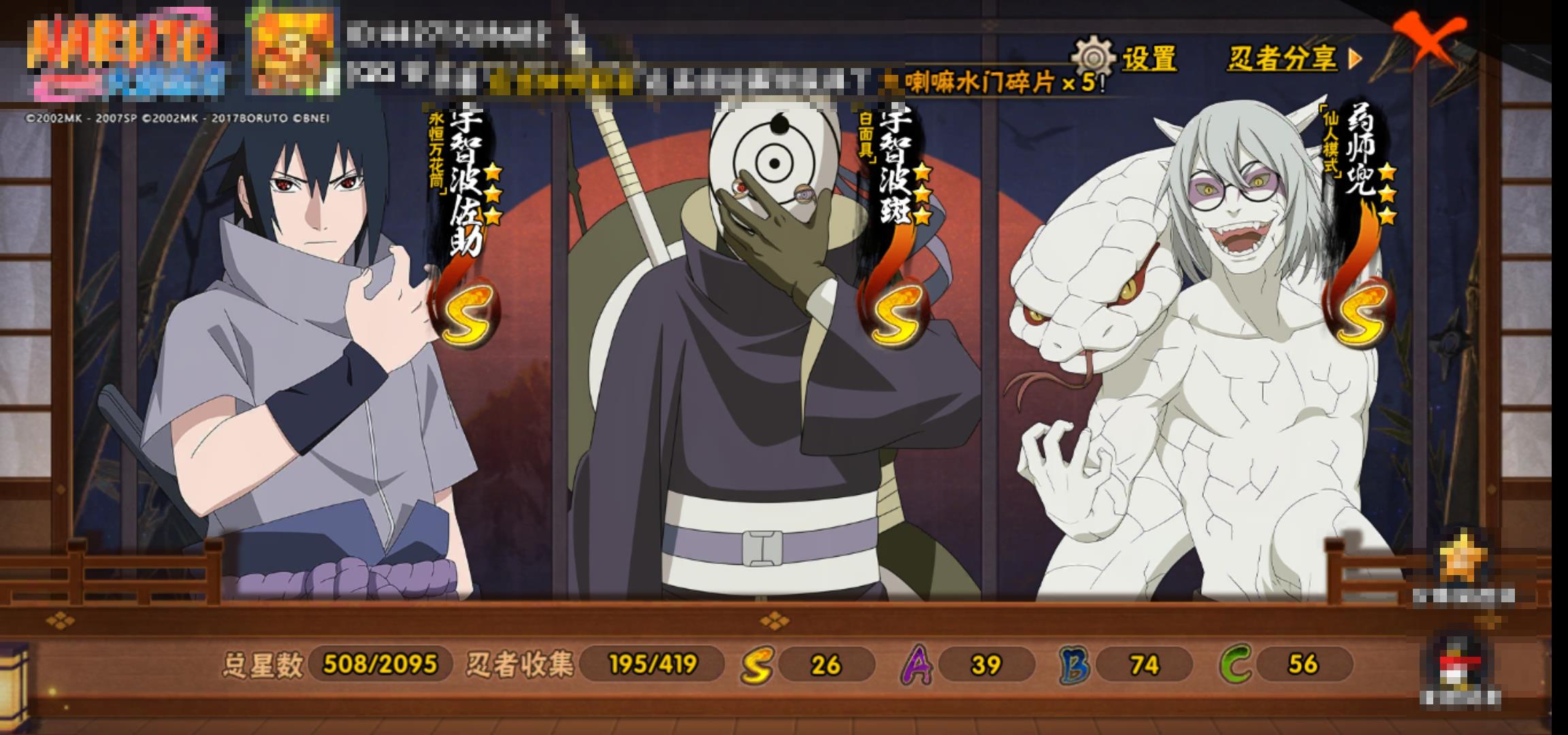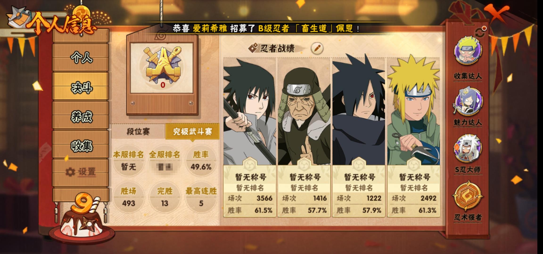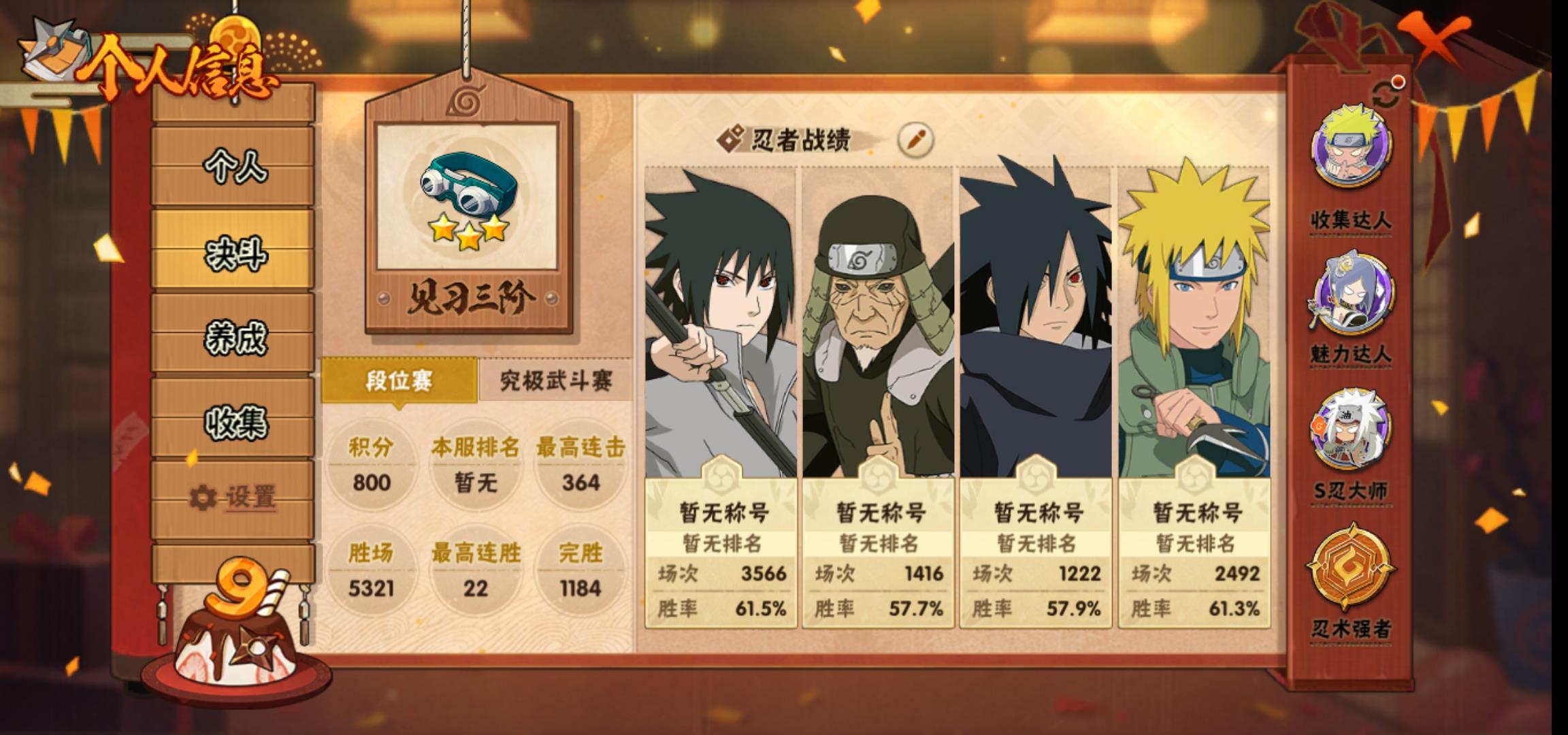 [15119817]0asz3v 号 vip11,1038w战力,s忍26个,a忍39个,本服排名354,战区排名未上榜,通灵兽319个,7时装,见习3阶,忍者星数508
