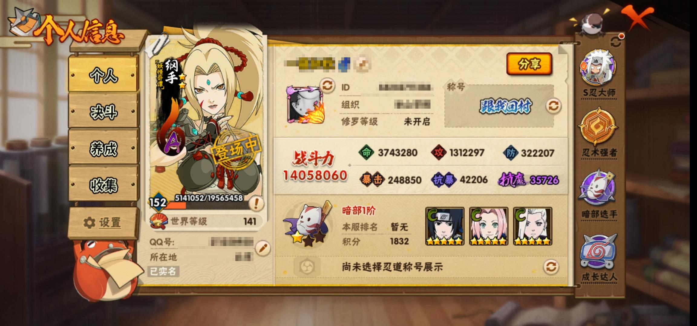 [15129577]0as929 号 vip12,1405w战力,s忍26个,a忍33个,本服排名121,战区排名未上榜,通灵兽320个,5时装,暗部1阶,忍者星数463 0as929 号 vip12,1404w战力,s忍26个,a忍33个,本服排名121,战区排名未上榜,通灵兽320个,5时装,中忍3阶,忍者星数463
