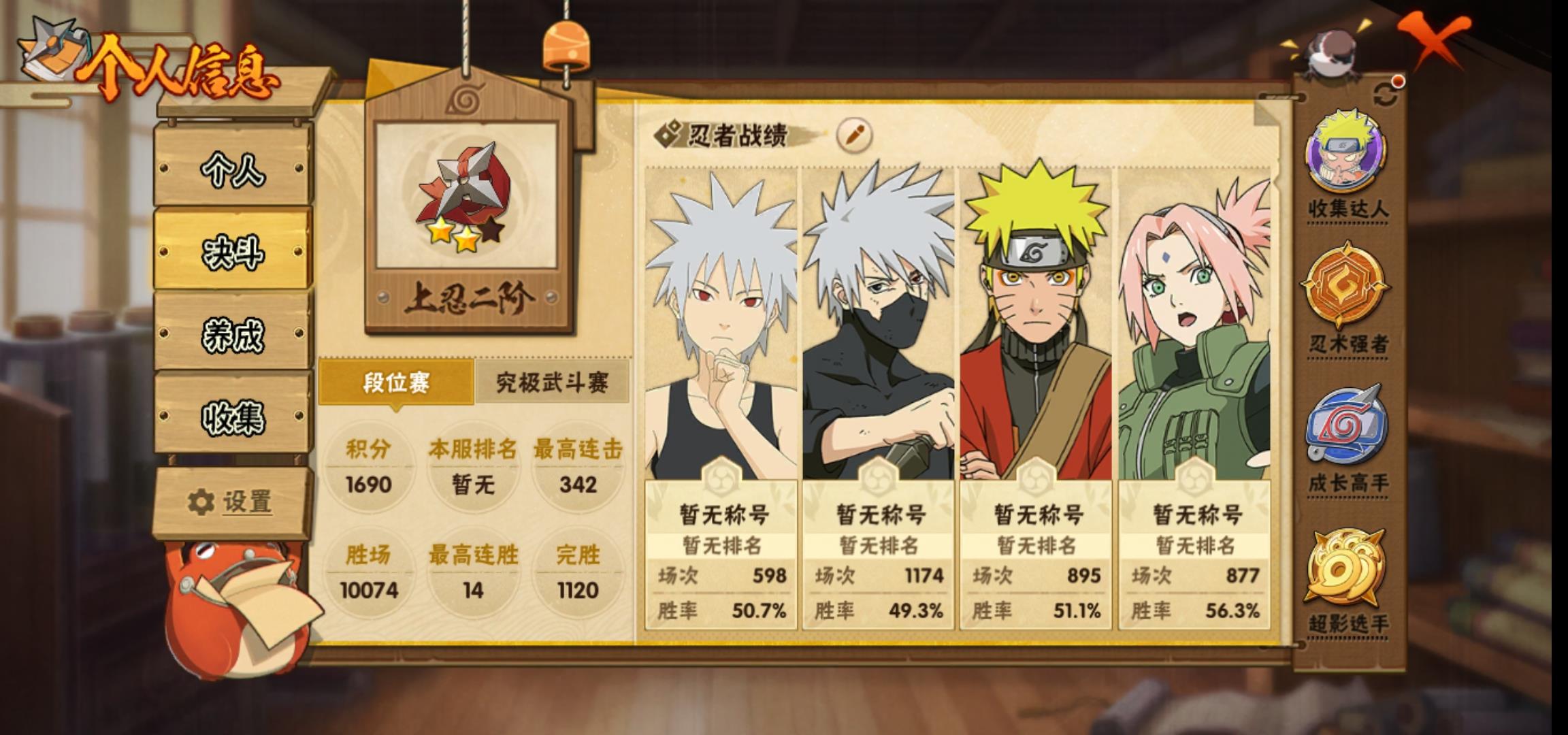 [15230895]0atsgv 号 vip12,1215w战力,s忍27个,a忍55个,本服排名529,战区排名未上榜,通灵兽20个,6时装,上忍2阶,忍者星数657