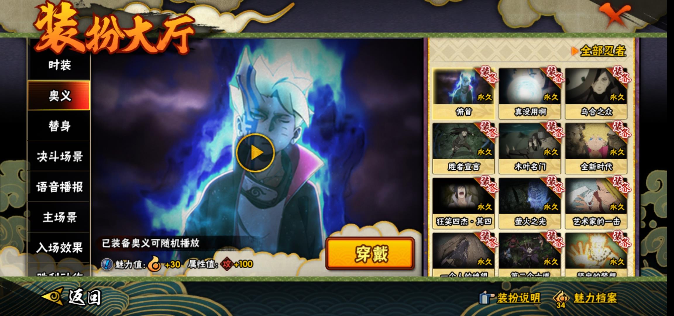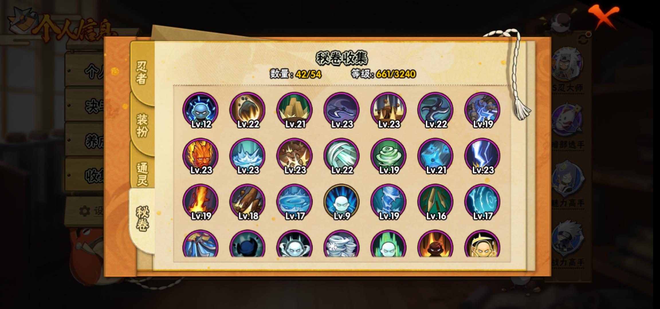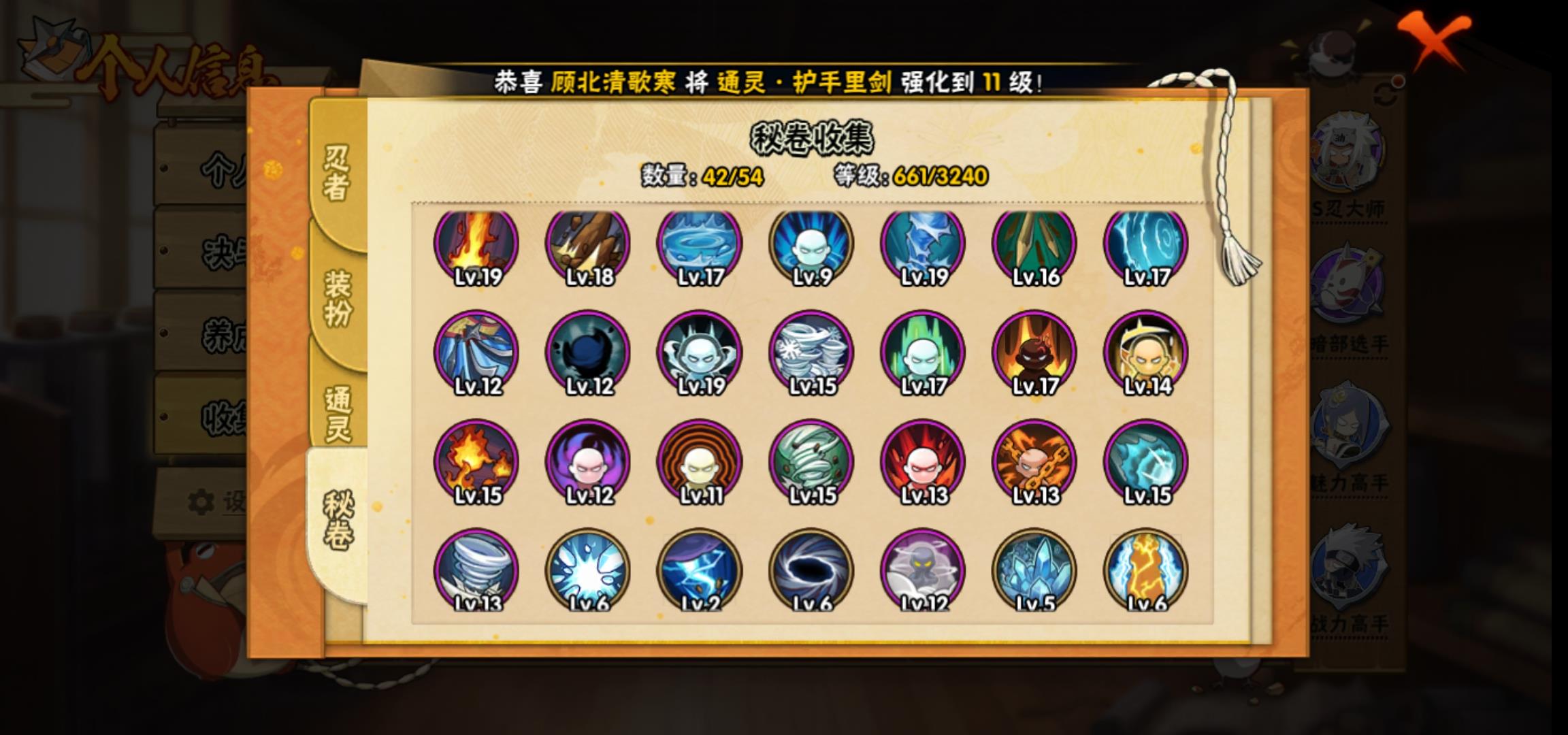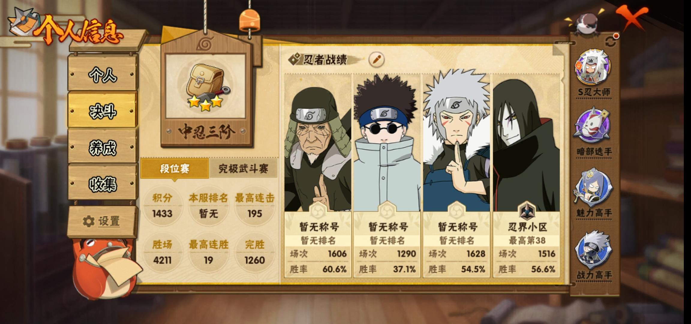 [15266525]0atypg 号 vip10,1239w战力,s忍25个,a忍36个,本服排名346,战区排名未上榜,通灵兽19个,6时装,中忍3阶,忍者星数532