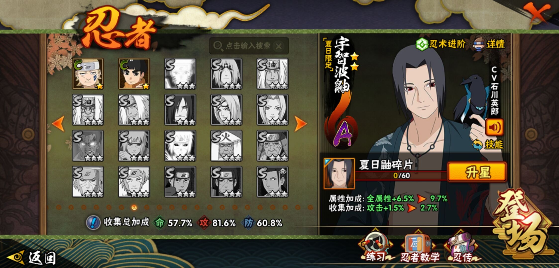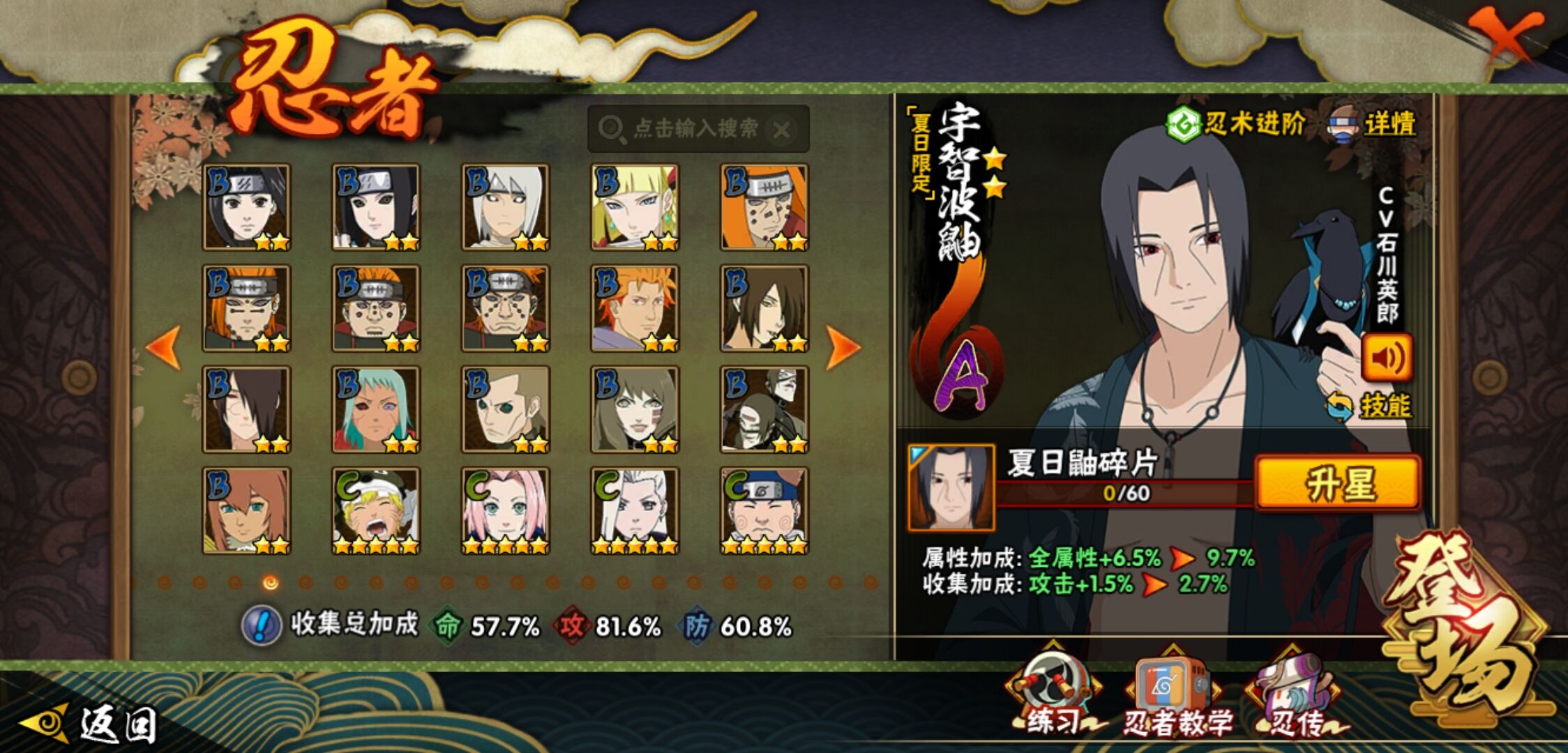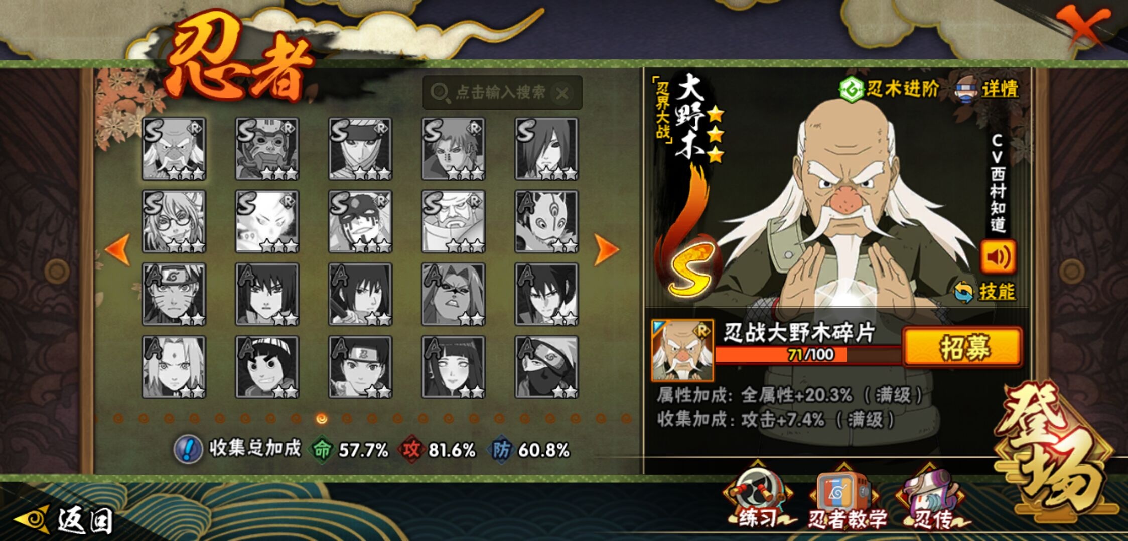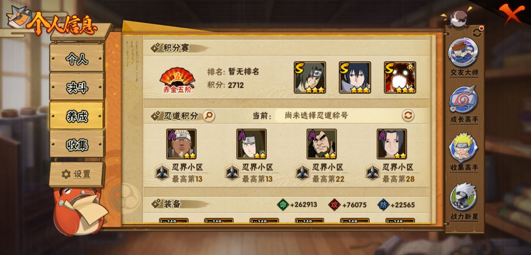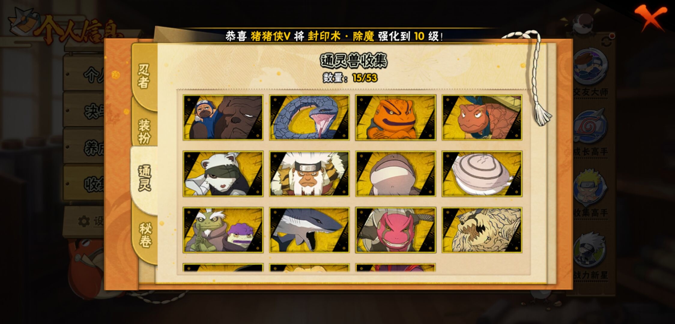 【火影忍者】【lyhy10427】战斗力:510w;段位:中忍3阶;vip:v6级;s忍:9个;a忍:32个;通灵兽:14个,s忍:白面具宇智波斑|须佐能乎旗木卡卡西|天道佩恩|漩涡鸣人宇智波佐助|永恒万花筒宇智波佐助|舞之豪杰自来也|波风水门|须佐能乎宇智波鼬|暴怒第六尾漩涡鸣人__a忍:青春爆炸迈特凯|幻之真容旗木卡卡西|忍界大战日向宁次|木叶上忍猿飞木叶丸|青年长门|秽土转生迪达拉|志村团藏|不风|青年艾|近松十人卫千代|九尾查克拉漩涡鸣人|晓大蛇丸|火影继承人猿飞日斩|忍界大战秋道丁次|奇拉比(普通)|死司凭血飞段|疾风传我爱罗 3星|迪达拉(普通)|飞段(普通)|万花筒写轮眼旗木卡卡西|迈特凯(普通) 4星|夏日限定宇智波鼬|干柿鬼鲛(普通)|秽土转生桃地再不斩|绯流琥蝎|蝎(普通)|猿飞阿斯玛(普通) 4星|桃式显现漩涡博人|不缘|宇智波泉奈|羁绊神农|初始形态机械鸣人__通灵兽:忍犬(普通)|蓝蛇|蛤蟆吉|忍龟|镰鼬|猿魔|山椒鱼|蜃|蛤蟆仙人|鲛鲨|蛤蟆健|砂之守鹤|乌鸦(普通)|蛤蟆龙