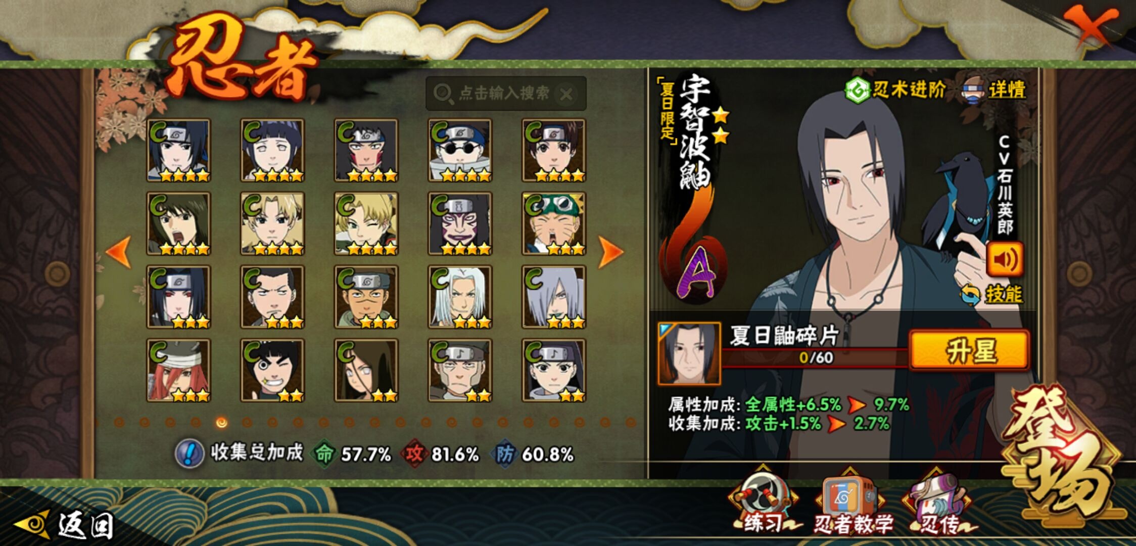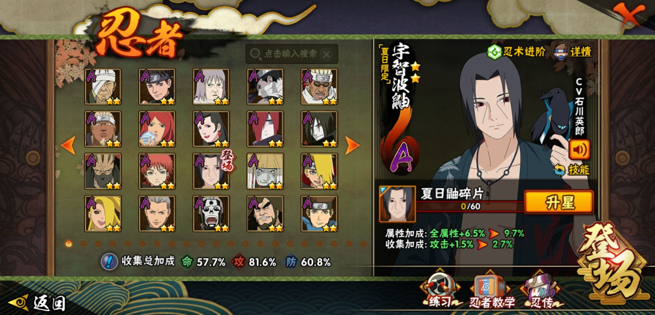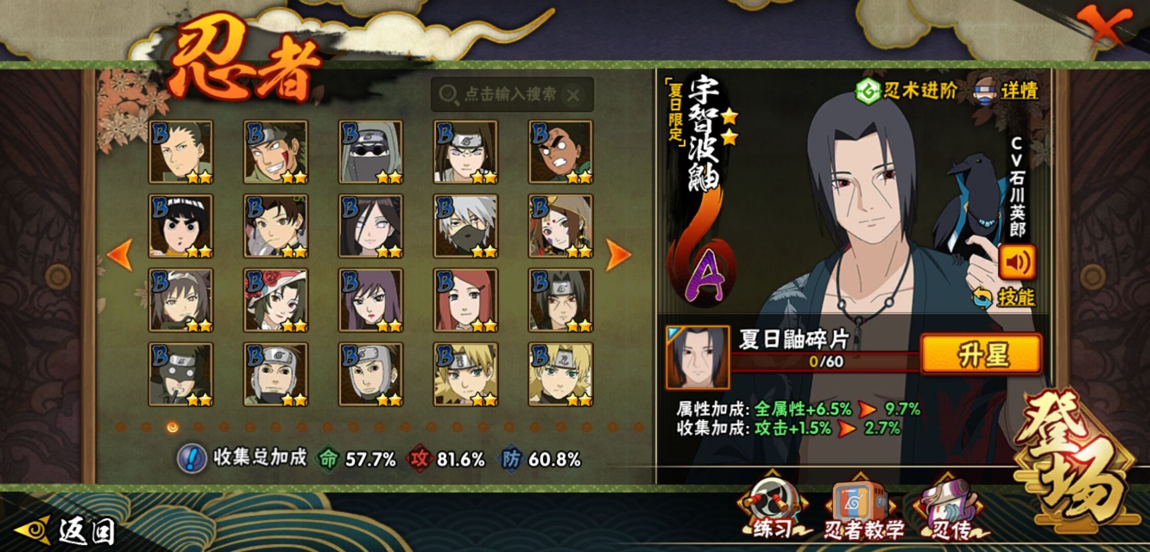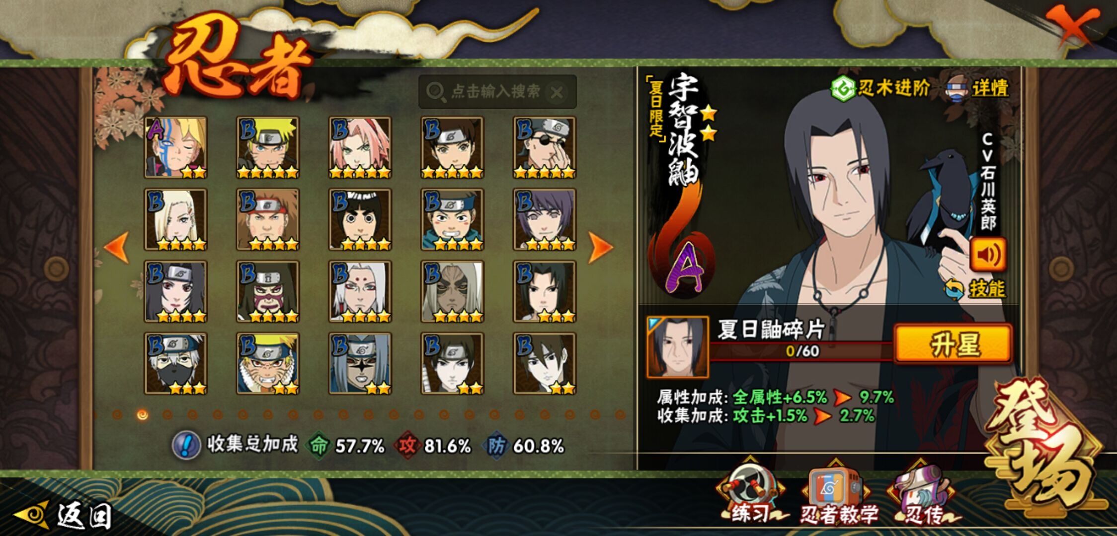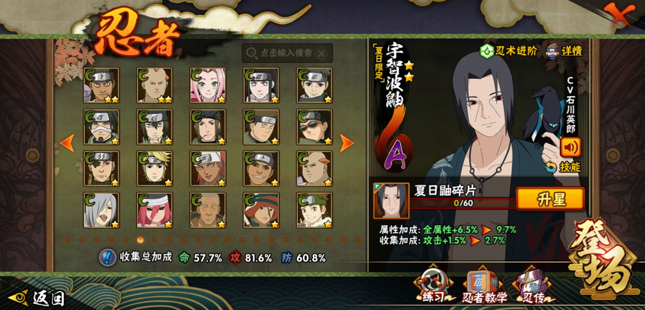 【火影忍者】【lyhy10427】战斗力:510w;段位:中忍3阶;vip:v6级;s忍:9个;a忍:32个;通灵兽:14个,s忍:白面具宇智波斑|须佐能乎旗木卡卡西|天道佩恩|漩涡鸣人宇智波佐助|永恒万花筒宇智波佐助|舞之豪杰自来也|波风水门|须佐能乎宇智波鼬|暴怒第六尾漩涡鸣人__a忍:青春爆炸迈特凯|幻之真容旗木卡卡西|忍界大战日向宁次|木叶上忍猿飞木叶丸|青年长门|秽土转生迪达拉|志村团藏|不风|青年艾|近松十人卫千代|九尾查克拉漩涡鸣人|晓大蛇丸|火影继承人猿飞日斩|忍界大战秋道丁次|奇拉比(普通)|死司凭血飞段|疾风传我爱罗 3星|迪达拉(普通)|飞段(普通)|万花筒写轮眼旗木卡卡西|迈特凯(普通) 4星|夏日限定宇智波鼬|干柿鬼鲛(普通)|秽土转生桃地再不斩|绯流琥蝎|蝎(普通)|猿飞阿斯玛(普通) 4星|桃式显现漩涡博人|不缘|宇智波泉奈|羁绊神农|初始形态机械鸣人__通灵兽:忍犬(普通)|蓝蛇|蛤蟆吉|忍龟|镰鼬|猿魔|山椒鱼|蜃|蛤蟆仙人|鲛鲨|蛤蟆健|砂之守鹤|乌鸦(普通)|蛤蟆龙