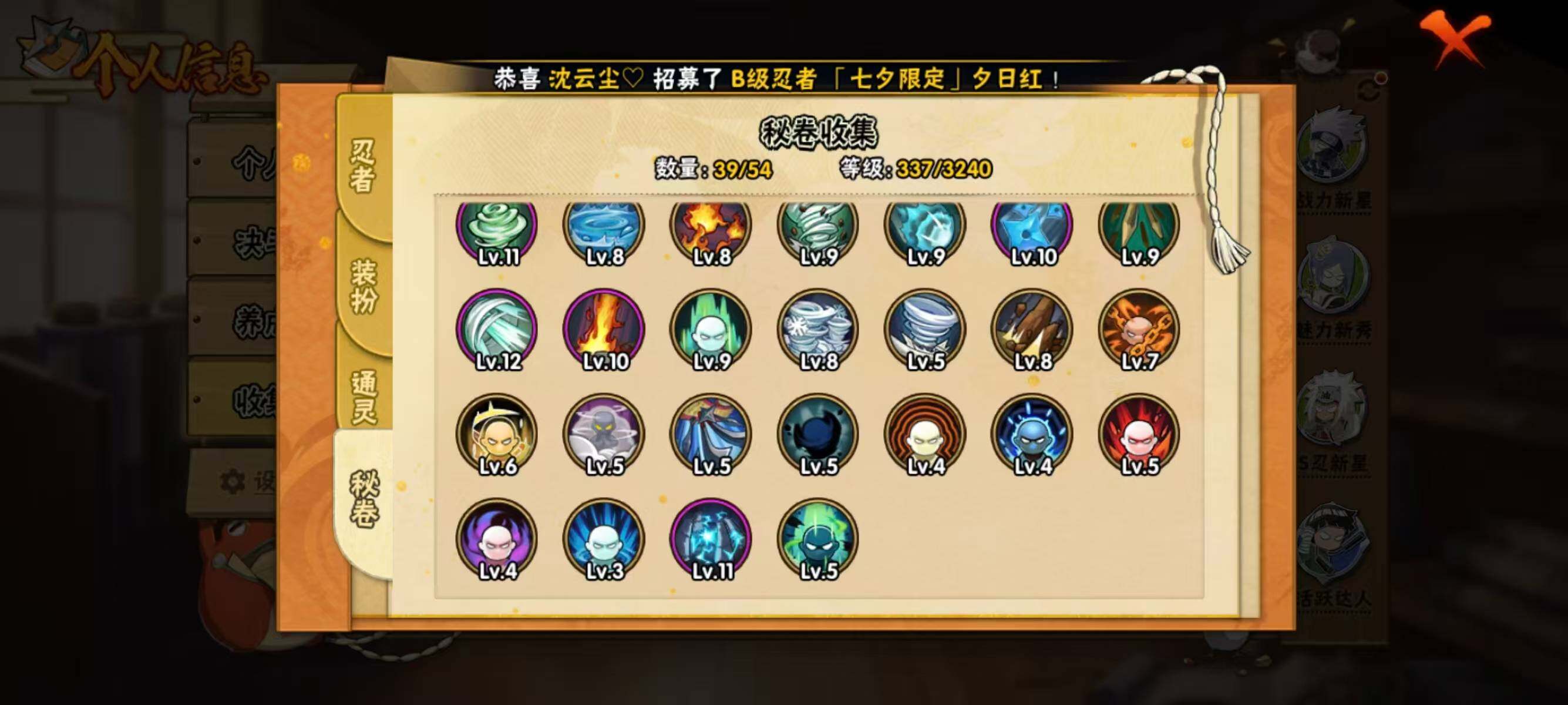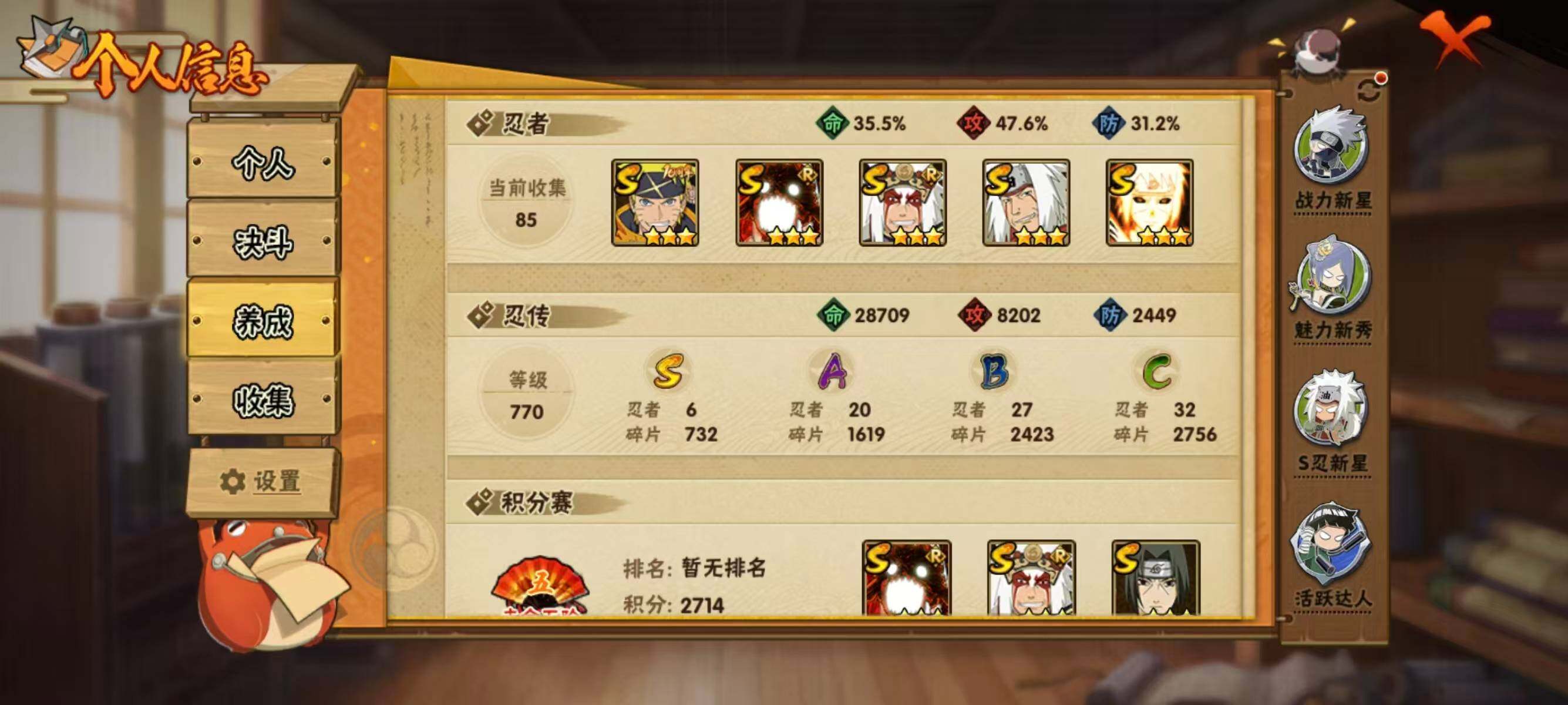 【hyyt133】v7/s忍6/a忍20/3星波风水门「九喇嘛连结」/2星达鲁伊「博人传」/2星飞段「死司凭血」/2星宇智波鼬/3星飞段/2星蝎/3星漩涡鸣人·宇智波佐助/2星黑土「夏日限定」/3星干柿鬼鲛/2星土台「忍界大战」/4星猿飞阿斯玛/3星自来也「舞之豪杰」/3星漩涡鸣人「暴怒·第六尾」/2星桃地再不斩「秽土转生」/4星迈特凯/3星自来也「传说中的三忍」/2星黑土「博人传」/2星神农「羁绊」/2星宇智波鼬「夏日限定」/2星迪达拉/2星旗木卡卡西「幻之真容」/2星巳月「仙人模式」/2星迈特凯「青春爆炸」/2星机械鸣人「初始形态」/2星千代「近松十人卫」/3星宇智波鼬「须佐能乎」