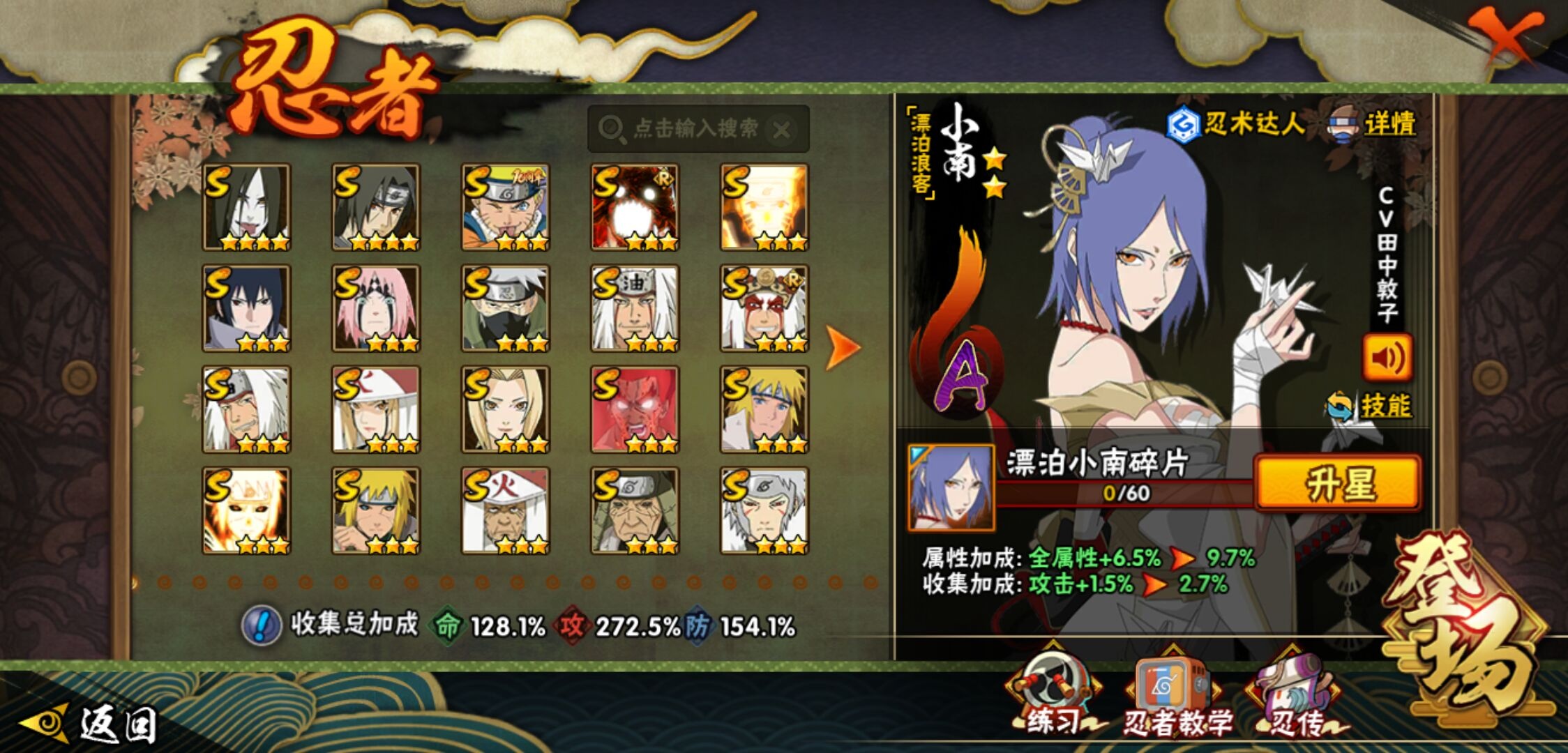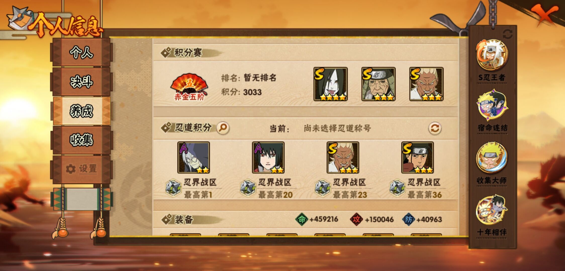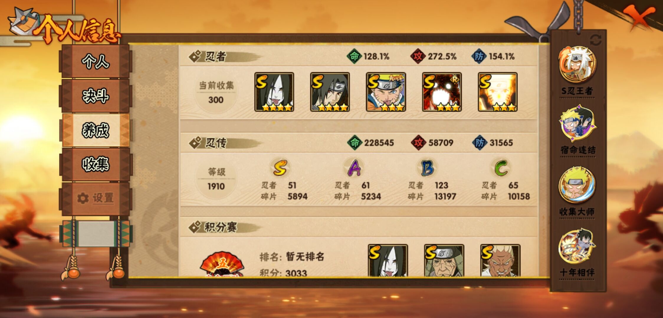 【火影忍者】【lyhy10680】战斗力:1315w;段位:暗部2阶;本服排名:305;vip:v13级;s忍:51个;a忍:61个;通灵兽:21个,s忍:秽土转生解宇智波斑|白面具宇智波斑|忍界大战宇智波带土|须佐能乎旗木卡卡西|秽土转生千手扉间|超佩恩天道|九喇嘛连结波风水门|五影会谈宇智波斑|天道佩恩|传说中的三忍自来也|漩涡鸣人宇智波佐助|须佐能乎宇智波止水|秽土转生千手柱间|木叶创立宇智波斑|秽土转生宇智波鼬|永恒万花筒宇智波佐助|最终章大筒木舍人|木叶创立千手柱间|忍界大战艾|舞之豪杰自来也|大蛇丸(普通) 4星|百豪纲手|纲手(普通)|波风水门|秽土转生波风水门|千手扉间(普通)|千手柱间(普通)|秽土转生宇智波斑|宇智波斑(普通)|须佐能乎宇智波鼬 4星|神秘面具男(普通)|红夜之刃神秘面具男|秽土转生长门|秽土转生半藏|秽土转生金角银角|二代目土影无|二代目水影鬼灯幻月|三代目雷影艾|四代目雷影艾|四代目风影罗砂|仙人模式药师兜|死门迈特凯|忍界大战大野木|忍界大战春野樱|九喇嘛连结漩涡鸣人|博人传大筒木金式|大筒木桃式|猿飞日斩(普通)|秽土转生猿飞日斩|自来也(普通)|暴怒第六尾漩涡鸣人__a忍:青春爆炸迈特凯|仙人模式巳月|幻之真容旗木卡卡西|侠隐江湖药师兜|忍界大战李洛克 3星|秽土转生角都|忍界大战日向宁次|四代目土影黑土|木叶上忍猿飞木叶丸|火之意志继承者卑留呼|青年长门|忍者之路神秘面具男|秽土转生迪达拉|志村团藏|宇智波止水(普通)|不风|忍界大战奇拉比|青年波风水门 3星|青年艾|漂泊武士千手扉间|加藤断|近松十人卫千代|晓创生角都|半蛇斗篷药师兜|须佐能乎宇智波佐助|九尾查克拉漩涡鸣人|晓大蛇丸|百豪春野樱|忍界大战秋道丁次|忍界大战我爱罗|新春限定波风水门|新春限定宇智波鼬|奇拉比(普通)|万花筒写轮眼宇智波佐助|五代目水影照美冥|五代目雷影达鲁伊|死司凭血飞段 3星|地怨虞角都|疾风传我爱罗 4星|迪达拉(普通)|飞段(普通) 4星|小南(普通)|漂泊浪客小南|仙人模式漩涡鸣人|万花筒写轮眼旗木卡卡西|迈特凯(普通) 5星|宇智波鼬(普通)|干柿鬼鲛(普通) 5星|秽土转生桃地再不斩|蝎(普通) 4星|绯流琥蝎|猿飞阿斯玛(普通) 5星|桃式显现漩涡博人|最终章日向雏田|六代目水影长十郎|不缘|不动|宇智波泉奈|羁绊神农|忍界大战土台|初始形态机械鸣人__通灵兽:忍犬(普通)|蓝蛇|蛤蟆吉|忍龟|镰鼬|猿魔|山椒鱼|蜃|蛞蝓(普通)|蛤蟆仙人|鲛鲨|蛤蟆健|乌鸦(普通)|蛤蟆龙|砂之守鹤|蛤蟆广|梦貘|熊猫|鹰|蜘蛛|辛牙1