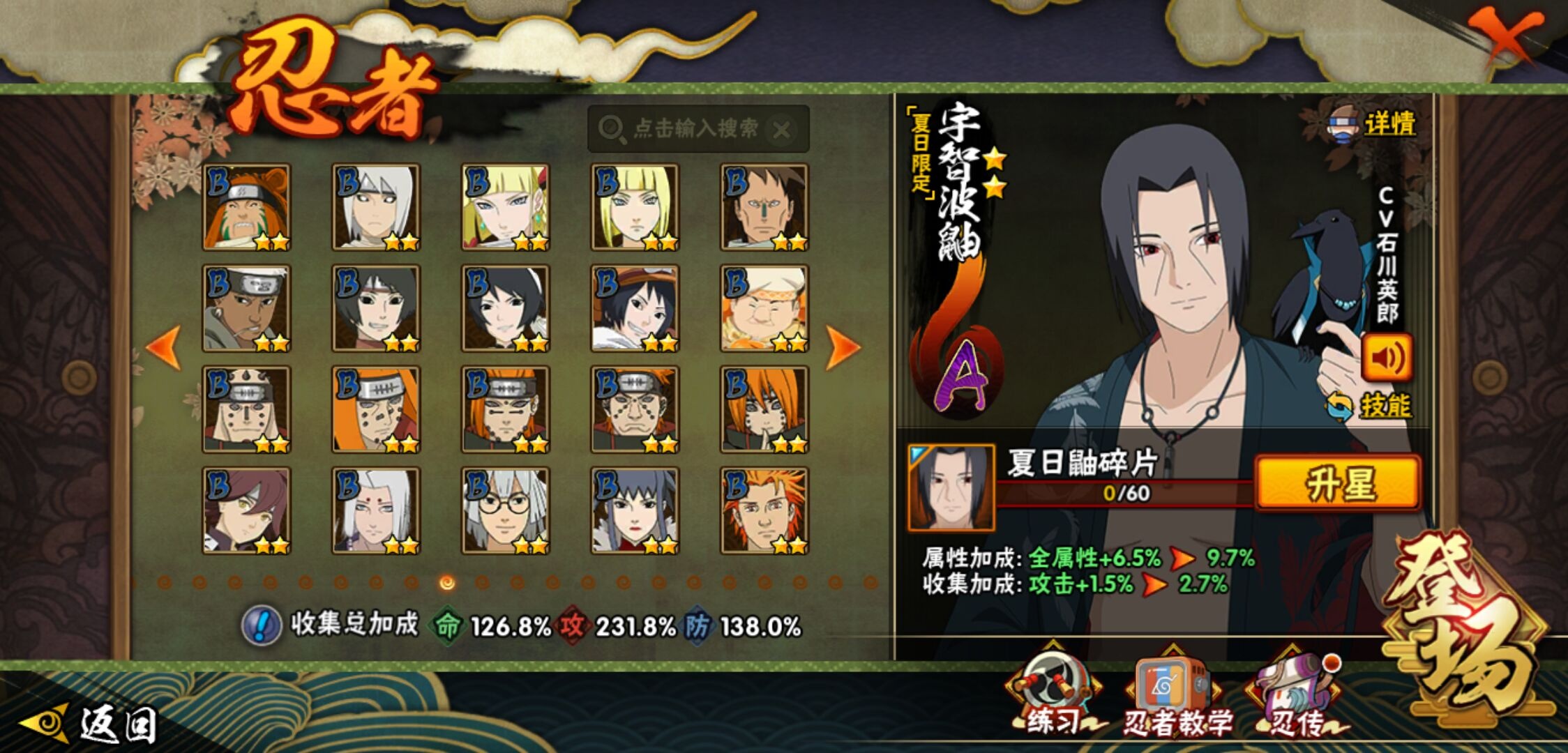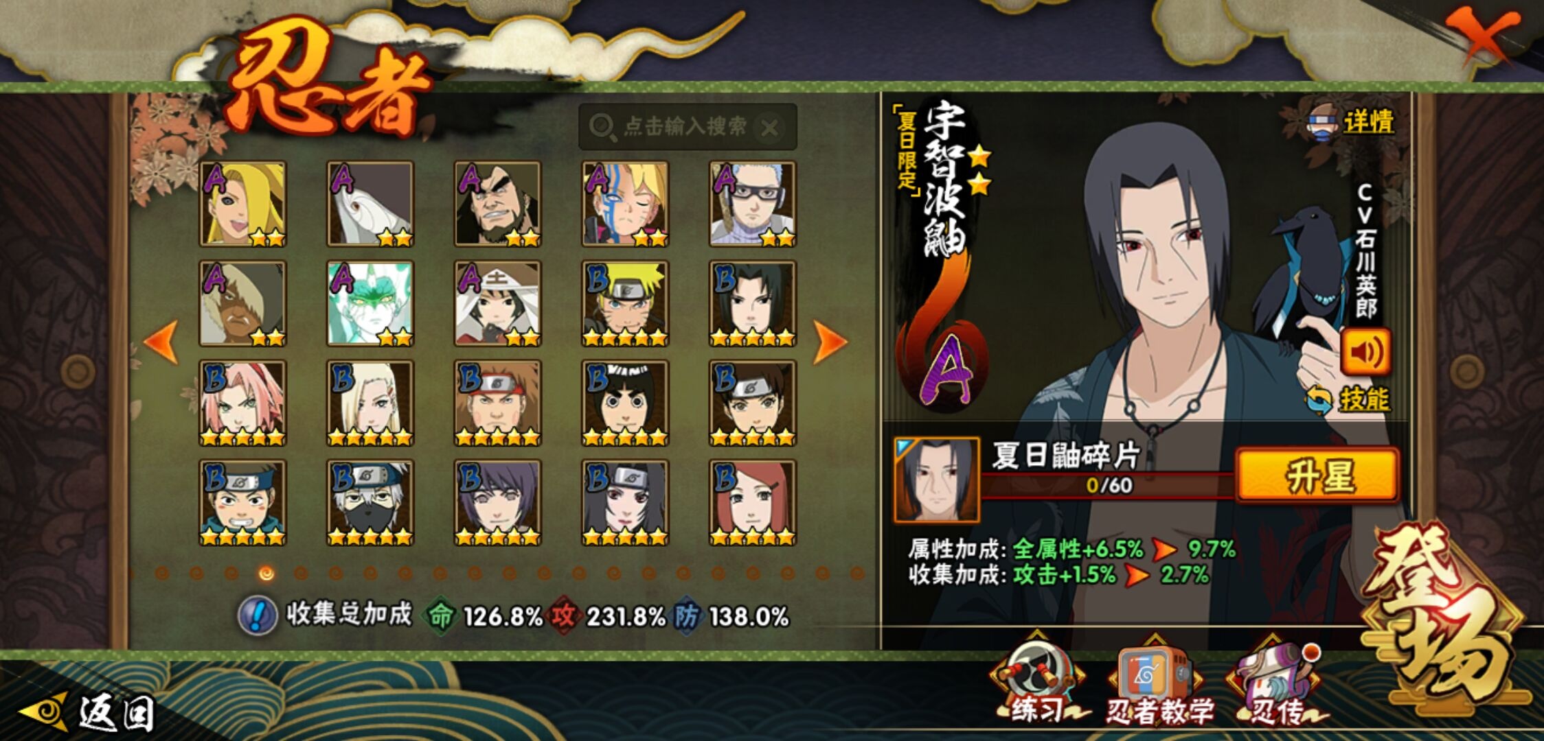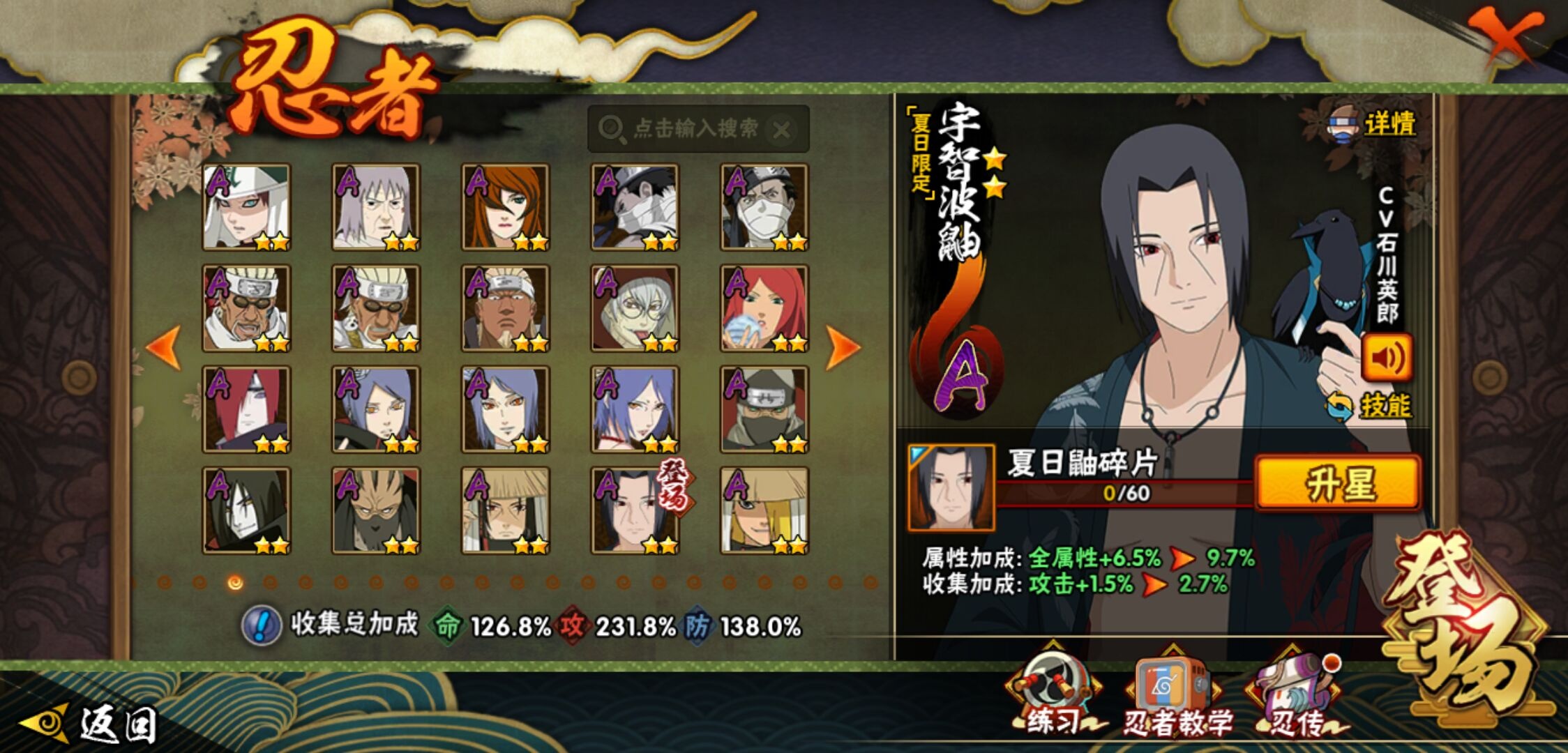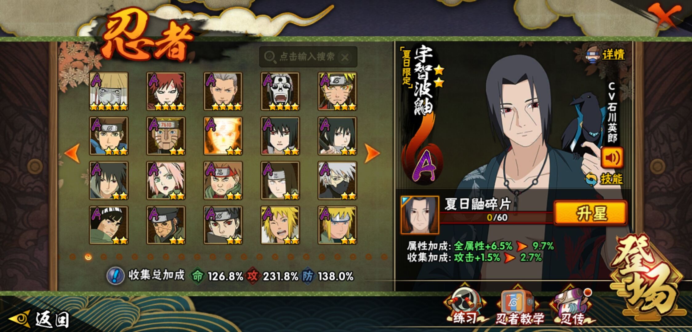 【火影忍者】【lyhy10713】战斗力:1680w;段位:暗部1阶;本服排名:126;vip:v13级;s忍:37个;a忍:51个;通灵兽:19个,s忍:秽土转生解宇智波斑|白面具宇智波斑|忍界大战宇智波带土|秽土转生千手扉间|超佩恩天道|天道佩恩 4星|传说中的三忍自来也|漩涡鸣人宇智波佐助|秽土转生千手柱间|木叶创立宇智波斑|秽土转生宇智波鼬|永恒万花筒宇智波佐助|忍界大战艾|舞之豪杰自来也|大蛇丸(普通) 4星|纲手(普通) 4星|百豪纲手|波风水门 4星|秽土转生波风水门|秽土转生宇智波斑|宇智波斑(普通)|须佐能乎宇智波鼬 4星|神秘面具男(普通)|秽土转生长门|秽土转生半藏|秽土转生金角银角|二代目土影无|三代目雷影艾|四代目风影罗砂|仙人模式药师兜|死门迈特凯|忍界大战大野木|九喇嘛连结漩涡鸣人|猿飞日斩(普通) 4星|秽土转生猿飞日斩|自来也(普通)|暴怒第六尾漩涡鸣人__a忍:青春爆炸迈特凯|仙人模式巳月|忍界大战日向宁次|四代目土影黑土|木叶上忍猿飞木叶丸 3星|青年长门|秽土转生迪达拉|宇智波止水(普通)|不风|忍界大战奇拉比|青年波风水门|青年艾|近松十人卫千代|半蛇斗篷药师兜|须佐能乎宇智波佐助|九尾查克拉漩涡鸣人 3星|暴怒宇智波带土|晓大蛇丸|百豪春野樱|忍界大战秋道丁次|忍界大战我爱罗|秽土转生猿飞阿斯玛|新春限定波风水门|夏日泳装小南|奇拉比(普通)|万花筒写轮眼宇智波佐助|五代目水影照美冥|五代目雷影达鲁伊|死司凭血飞段 4星|角都(普通)|疾风传我爱罗 4星|迪达拉(普通)|飞段(普通) 4星|小南(普通)|漂泊浪客小南|仙人模式漩涡鸣人 3星|万花筒写轮眼旗木卡卡西|迈特凯(普通) 5星|宇智波鼬(普通)|夏日限定宇智波鼬|干柿鬼鲛(普通) 5星|秽土转生桃地再不斩|桃地再不斩|蝎(普通) 5星|绯流琥蝎|猿飞阿斯玛(普通) 5星|桃式显现漩涡博人|六代目水影长十郎|宇智波泉奈|羁绊神农|初始形态机械鸣人__通灵兽:忍犬(普通)|蓝蛇|蛤蟆吉|忍龟|镰鼬|猿魔|山椒鱼|蜃|蛞蝓(普通)|蛤蟆仙人|鲛鲨|蛤蟆健|乌鸦(普通)|蛤蟆龙|砂之守鹤|蛤蟆广|梦貘|鹰|熊猫