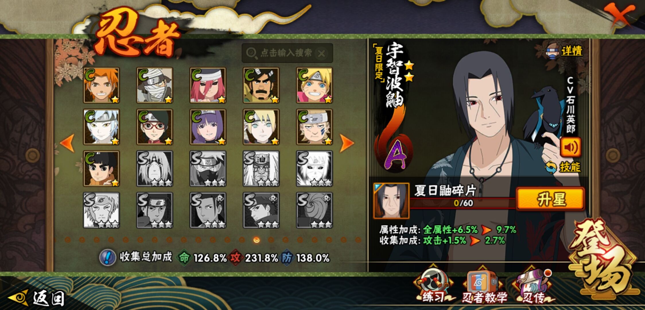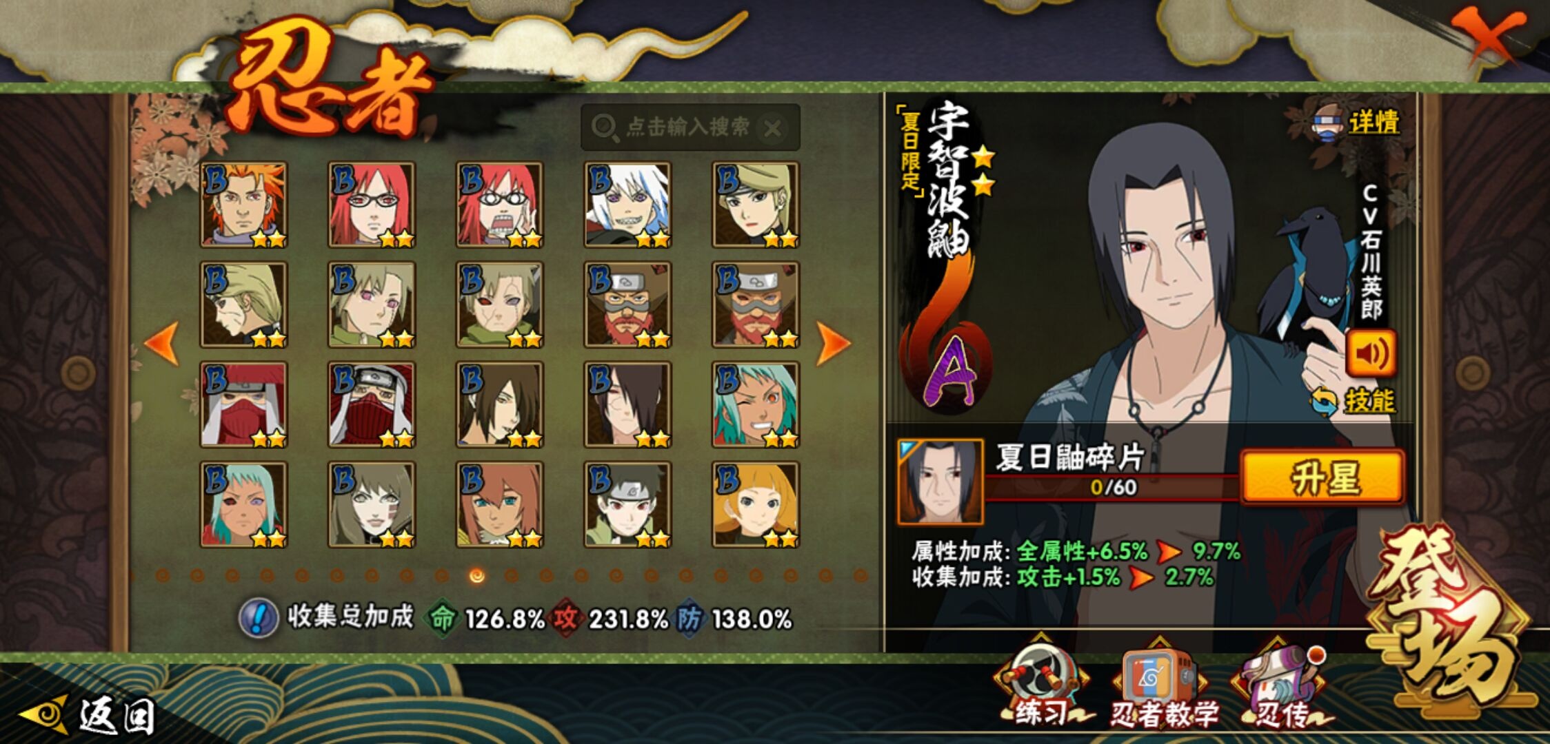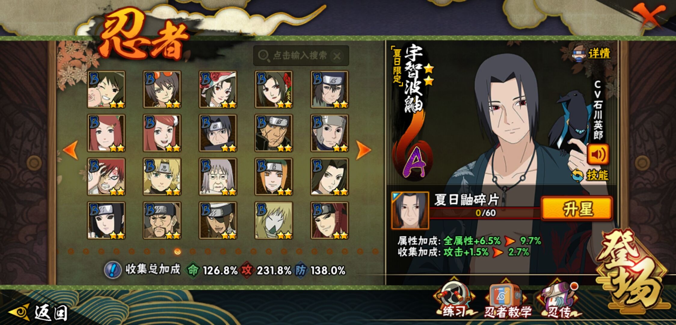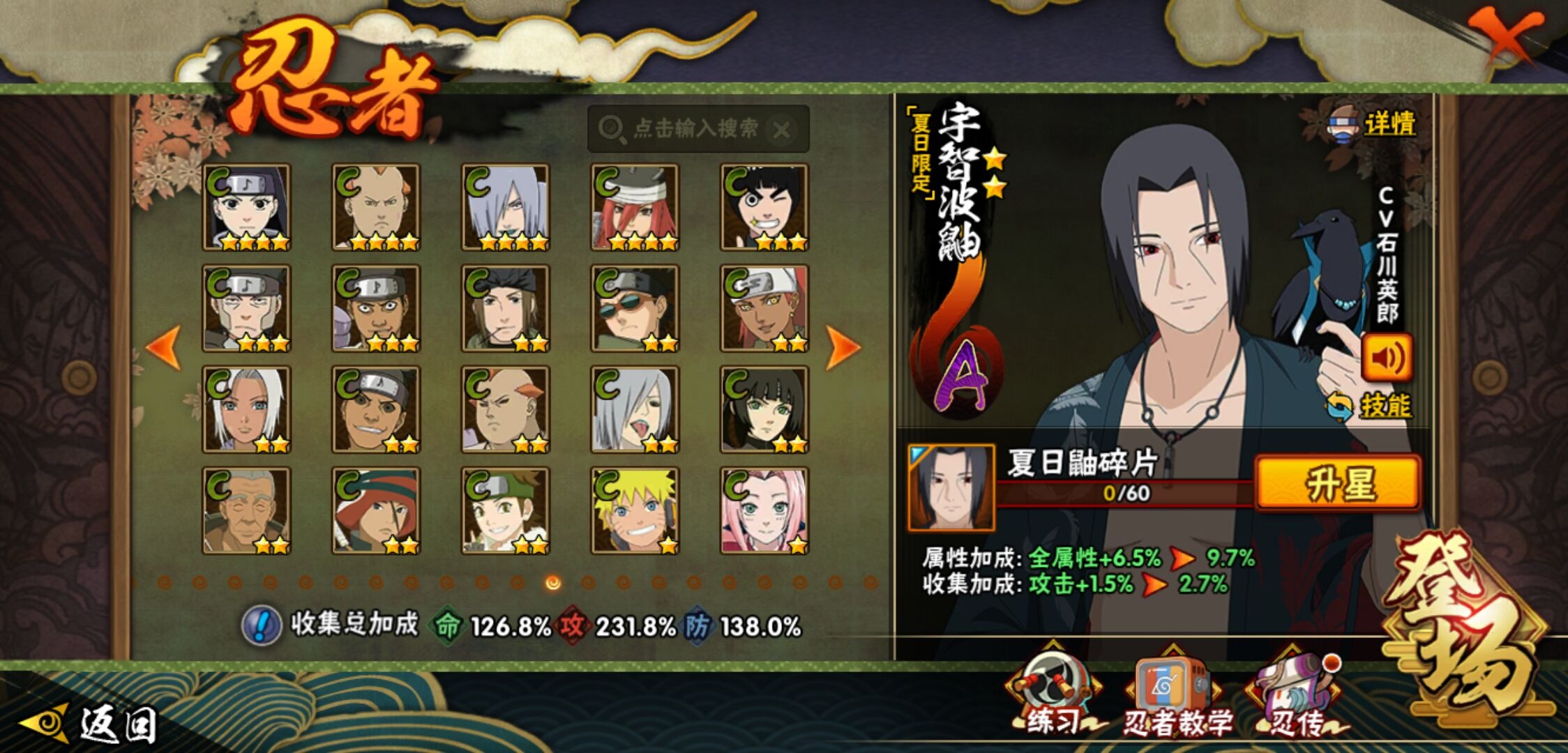 【火影忍者】【lyhy10713】战斗力:1680w;段位:暗部1阶;本服排名:126;vip:v13级;s忍:37个;a忍:51个;通灵兽:19个,s忍:秽土转生解宇智波斑|白面具宇智波斑|忍界大战宇智波带土|秽土转生千手扉间|超佩恩天道|天道佩恩 4星|传说中的三忍自来也|漩涡鸣人宇智波佐助|秽土转生千手柱间|木叶创立宇智波斑|秽土转生宇智波鼬|永恒万花筒宇智波佐助|忍界大战艾|舞之豪杰自来也|大蛇丸(普通) 4星|纲手(普通) 4星|百豪纲手|波风水门 4星|秽土转生波风水门|秽土转生宇智波斑|宇智波斑(普通)|须佐能乎宇智波鼬 4星|神秘面具男(普通)|秽土转生长门|秽土转生半藏|秽土转生金角银角|二代目土影无|三代目雷影艾|四代目风影罗砂|仙人模式药师兜|死门迈特凯|忍界大战大野木|九喇嘛连结漩涡鸣人|猿飞日斩(普通) 4星|秽土转生猿飞日斩|自来也(普通)|暴怒第六尾漩涡鸣人__a忍:青春爆炸迈特凯|仙人模式巳月|忍界大战日向宁次|四代目土影黑土|木叶上忍猿飞木叶丸 3星|青年长门|秽土转生迪达拉|宇智波止水(普通)|不风|忍界大战奇拉比|青年波风水门|青年艾|近松十人卫千代|半蛇斗篷药师兜|须佐能乎宇智波佐助|九尾查克拉漩涡鸣人 3星|暴怒宇智波带土|晓大蛇丸|百豪春野樱|忍界大战秋道丁次|忍界大战我爱罗|秽土转生猿飞阿斯玛|新春限定波风水门|夏日泳装小南|奇拉比(普通)|万花筒写轮眼宇智波佐助|五代目水影照美冥|五代目雷影达鲁伊|死司凭血飞段 4星|角都(普通)|疾风传我爱罗 4星|迪达拉(普通)|飞段(普通) 4星|小南(普通)|漂泊浪客小南|仙人模式漩涡鸣人 3星|万花筒写轮眼旗木卡卡西|迈特凯(普通) 5星|宇智波鼬(普通)|夏日限定宇智波鼬|干柿鬼鲛(普通) 5星|秽土转生桃地再不斩|桃地再不斩|蝎(普通) 5星|绯流琥蝎|猿飞阿斯玛(普通) 5星|桃式显现漩涡博人|六代目水影长十郎|宇智波泉奈|羁绊神农|初始形态机械鸣人__通灵兽:忍犬(普通)|蓝蛇|蛤蟆吉|忍龟|镰鼬|猿魔|山椒鱼|蜃|蛞蝓(普通)|蛤蟆仙人|鲛鲨|蛤蟆健|乌鸦(普通)|蛤蟆龙|砂之守鹤|蛤蟆广|梦貘|鹰|熊猫