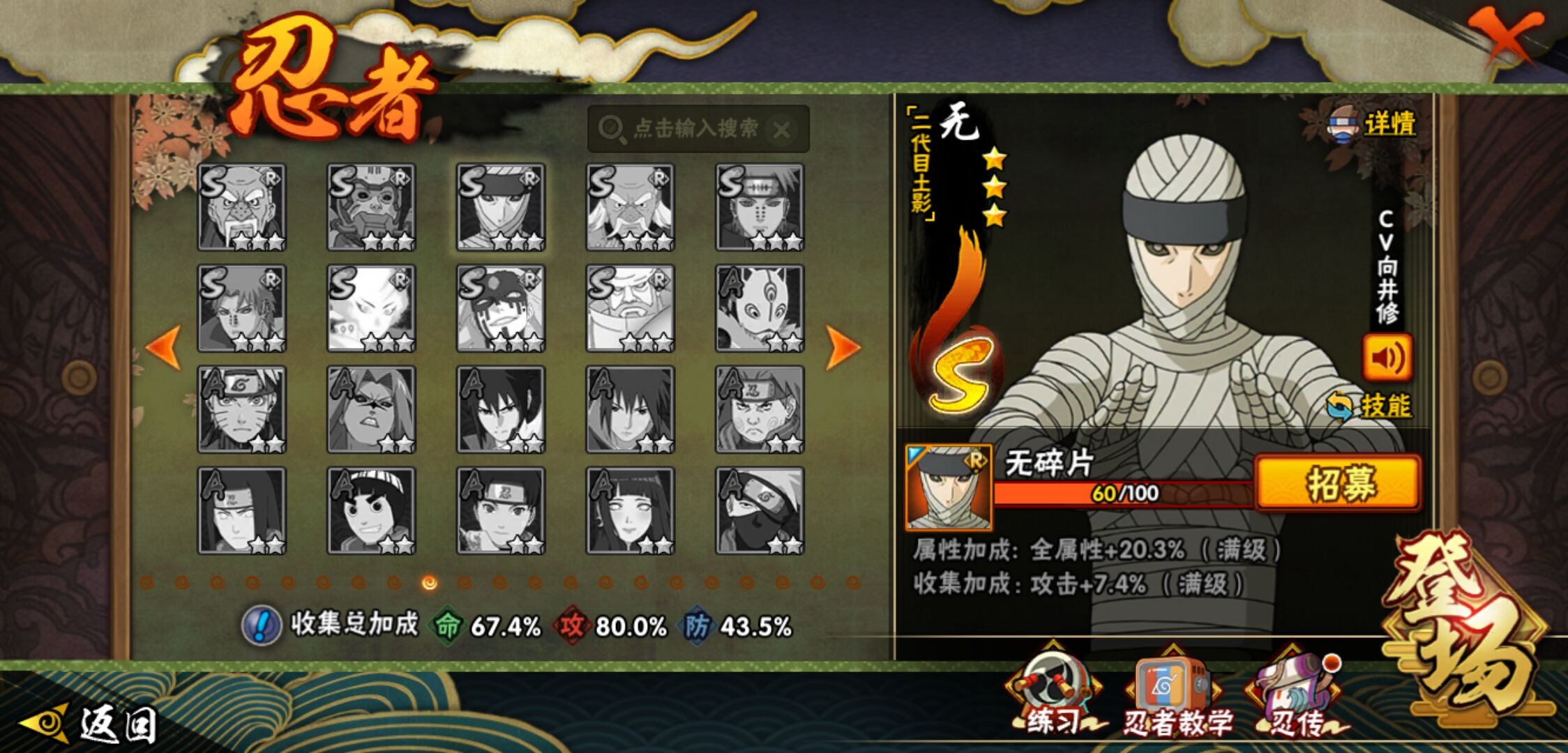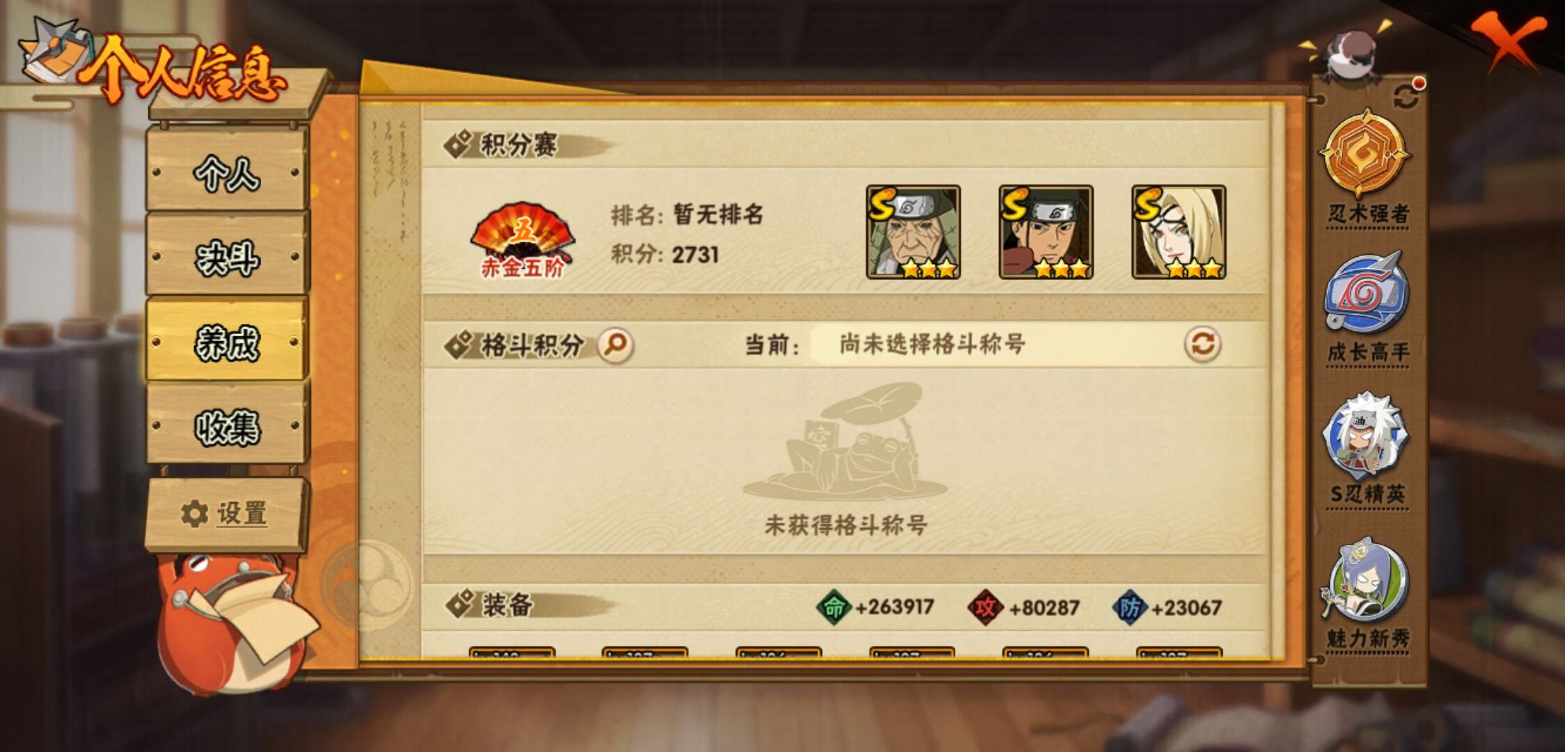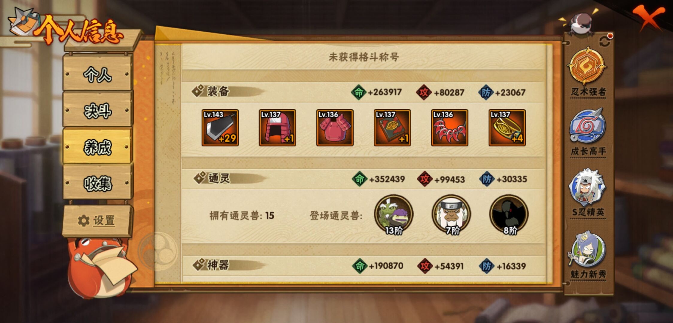 【火影忍者】【lyhy10718】战斗力:673w;段位:暗部3阶;本服排名:2147;vip:v8级;s忍:11个;a忍:22个;通灵兽:15个,s忍:五影会谈宇智波斑|漩涡鸣人宇智波佐助|舞之豪杰自来也|百豪纲手|纲手(普通)|波风水门|千手柱间(普通)|须佐能乎宇智波鼬|秽土转生长门|仙人模式药师兜|秽土转生猿飞日斩__a忍:青春爆炸迈特凯|火之意志继承者卑留呼|青年波风水门|半蛇斗篷药师兜|须佐能乎宇智波佐助|九尾查克拉漩涡鸣人|晓大蛇丸|火影继承人猿飞日斩|百豪春野樱|忍界大战我爱罗|万花筒写轮眼宇智波佐助|五代目水影照美冥|死司凭血飞段|疾风传我爱罗|飞段(普通) 3星|万花筒写轮眼旗木卡卡西|迈特凯(普通) 5星|干柿鬼鲛(普通) 5星|蝎(普通) 3星|猿飞阿斯玛(普通) 5星|羁绊神农|初始形态机械鸣人__通灵兽:忍犬(普通)|蓝蛇|蛤蟆吉|忍龟|镰鼬|猿魔|山椒鱼|蜃|蛤蟆仙人|鲛鲨|蛤蟆健|乌鸦(普通)|蛤蟆龙|砂之守鹤|蛤蟆广
