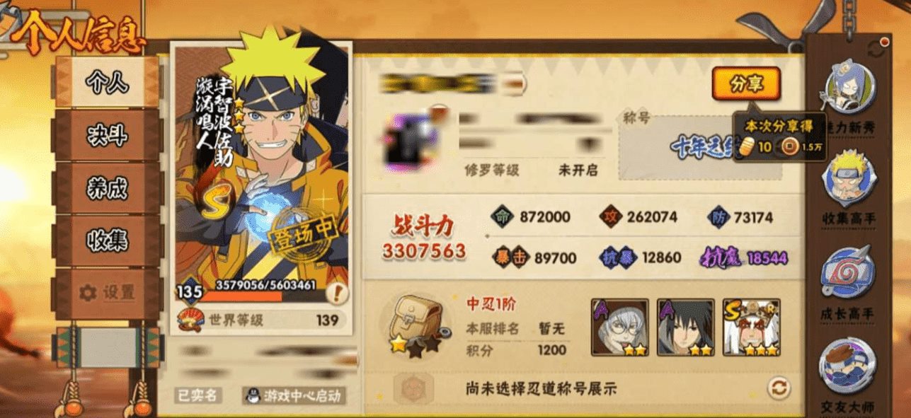 可二次实名 安卓QQ2876区/VIP6/战斗力330W/段位:中忍1阶/本服排名3810/S忍4个/A忍20个/通灵兽12个/【S忍:漩涡鸣人宇智波佐助/舞之豪杰自来也/大蛇丸/波风水门】【A忍:须佐能乎宇智波佐助/宇智波泉奈/忍界大战秋道丁次/迈特凯/青春爆炸迈特凯/猿飞阿斯玛/七夕限定猿飞阿斯玛/近松十人卫千代/奇拉比/忍界大战奇拉比/青年艾/半蛇斗篷药师兜/晓创生角都/蝎/干柿鬼鲛/迪达拉/秽土转生迪达拉/死司凭血飞段/六代目水影长十郎/四代目土影黑土】【通灵兽:忍犬/蓝蛇/蛤蟆吉/忍龟/砂之守鹤/镰鼬/猿魔/山椒鱼/蜃/蛤蟆仙人/鲛鲨/蛤蟆健】【时装:蜀面豪杰舞之豪杰自来也/百战大蛇丸/百战波风水门/血雾怪人干柿鬼鲛/龙的传人李洛克截拳宗师】/详情看图★星迈游★低价出售找回包赔