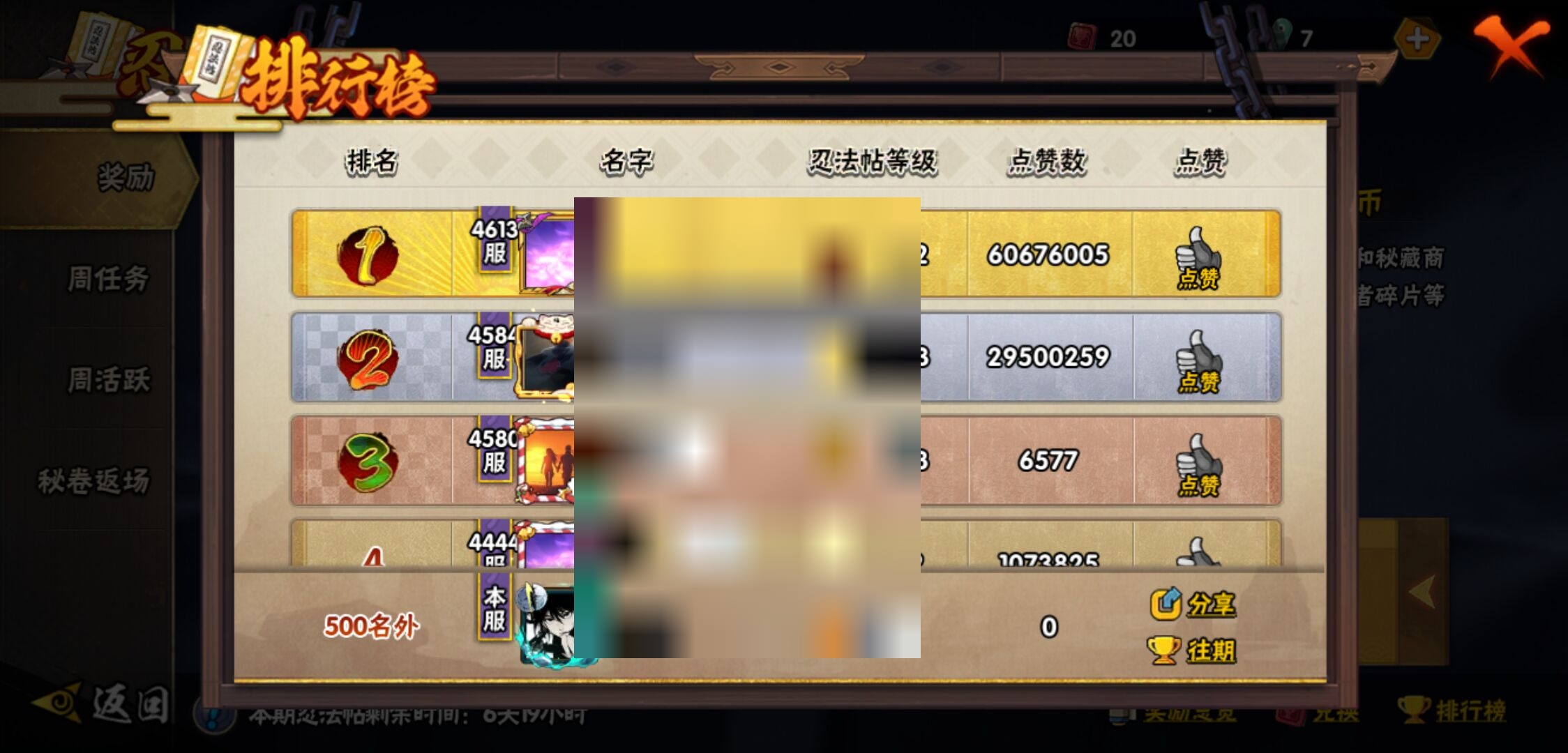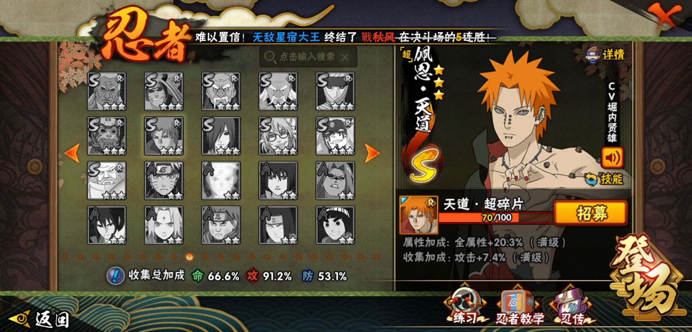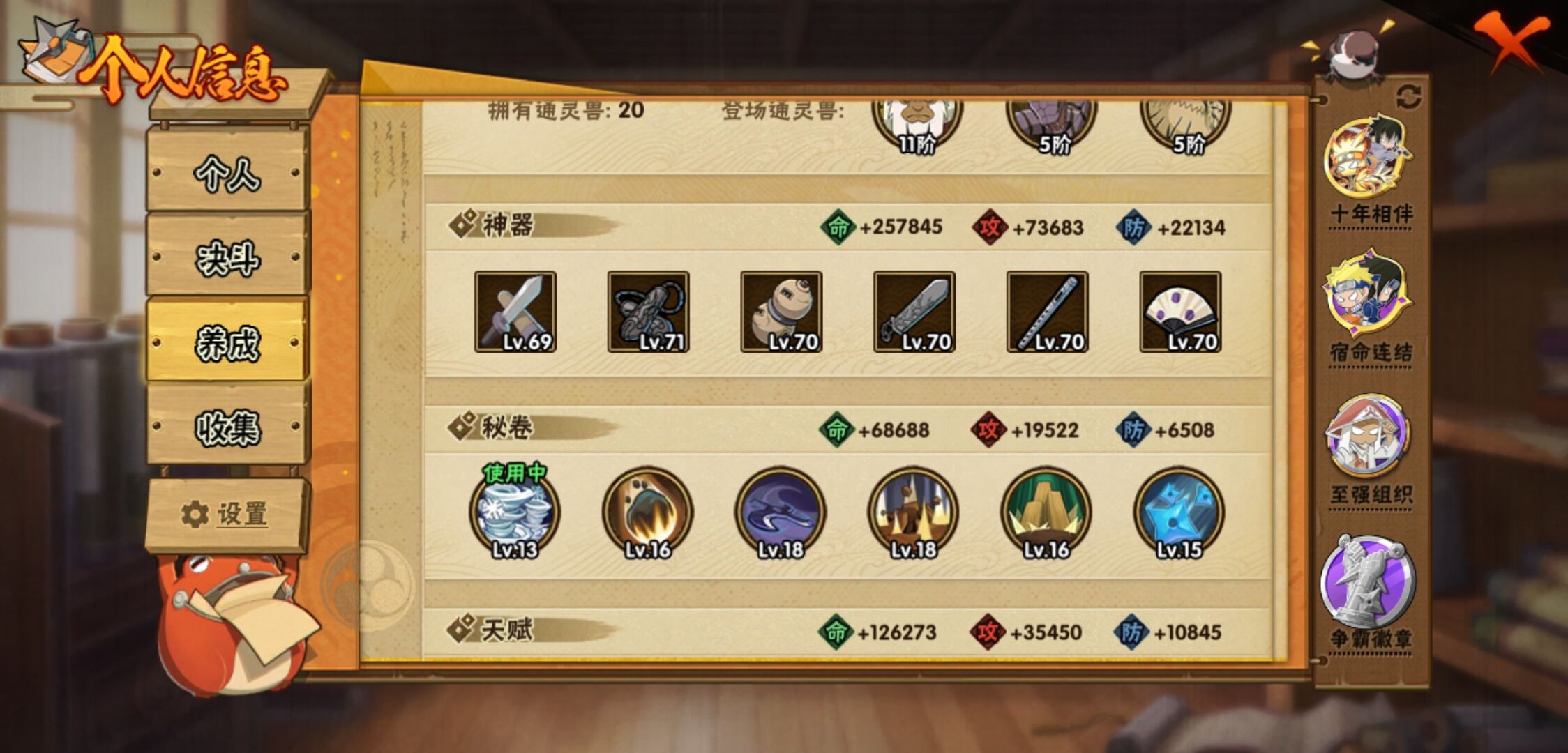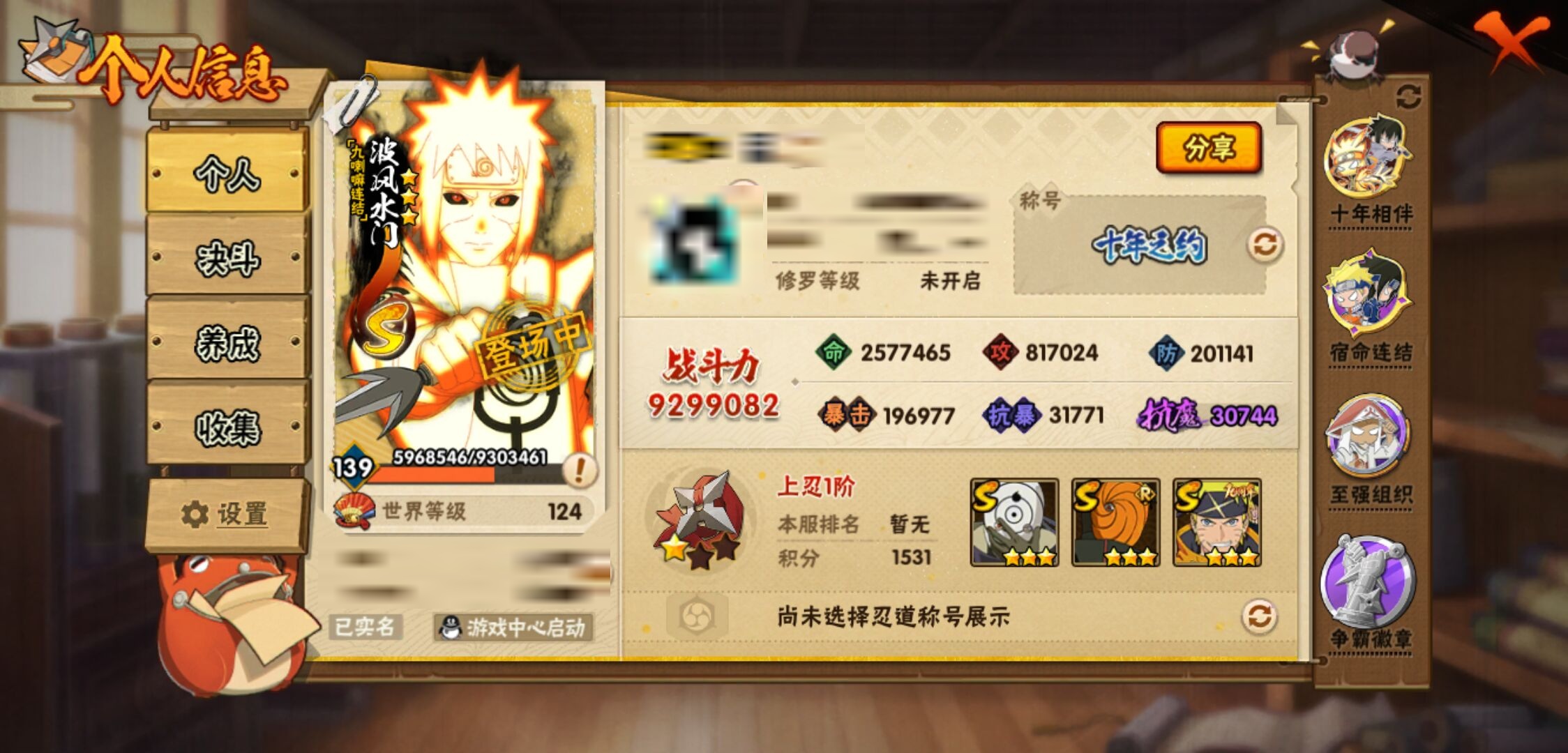 【火影忍者】【lyhy10759】战斗力:929w;段位:上忍1阶;本服排名:43;vip:v10级;s忍:14个;a忍:25个;通灵兽:17个,s忍:白面具宇智波斑|九喇嘛连结波风水门|五影会谈宇智波斑|天道佩恩|传说中的三忍自来也|漩涡鸣人宇智波佐助|最终章大筒木舍人|舞之豪杰自来也|纲手(普通)|须佐能乎宇智波鼬|猿飞日斩(普通)|秽土转生猿飞日斩|暴怒第六尾漩涡鸣人|初代目风影烈斗__a忍:青春爆炸迈特凯|幻之真容旗木卡卡西|秽土转生角都|忍者之路神秘面具男|宇智波止水(普通)|青年波风水门|近松十人卫千代|须佐能乎宇智波佐助|新春限定波风水门|死司凭血飞段|迪达拉(普通)|飞段(普通) 3星|迈特凯(普通) 5星|宇智波鼬(普通)|干柿鬼鲛(普通) 5星|桃地再不斩|秽土转生桃地再不斩|绯流琥蝎|蝎(普通)|猿飞阿斯玛(普通) 5星|六代目水影长十郎|宇智波泉奈|羁绊神农|忍界大战土台 3星|初始形态机械鸣人__通灵兽:忍犬(普通)|蓝蛇|蛤蟆吉|忍龟|镰鼬|砂之守鹤|猿魔|山椒鱼|蜃|蛤蟆仙人|鲛鲨|蛤蟆健|万蛇|蛞蝓(普通)|乌鸦(普通)|蛤蟆龙|蛤蟆广