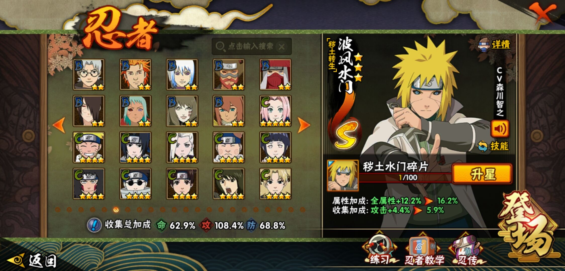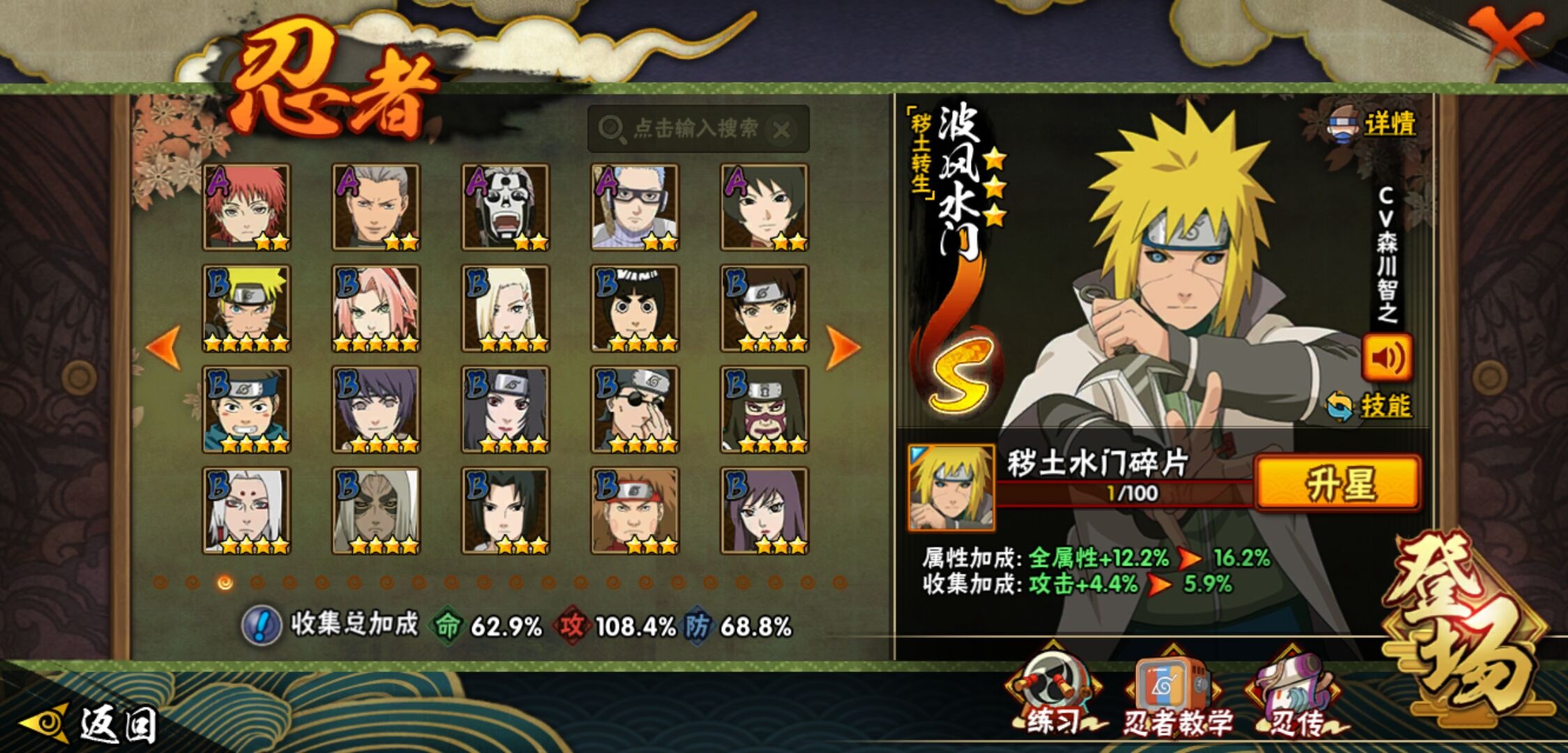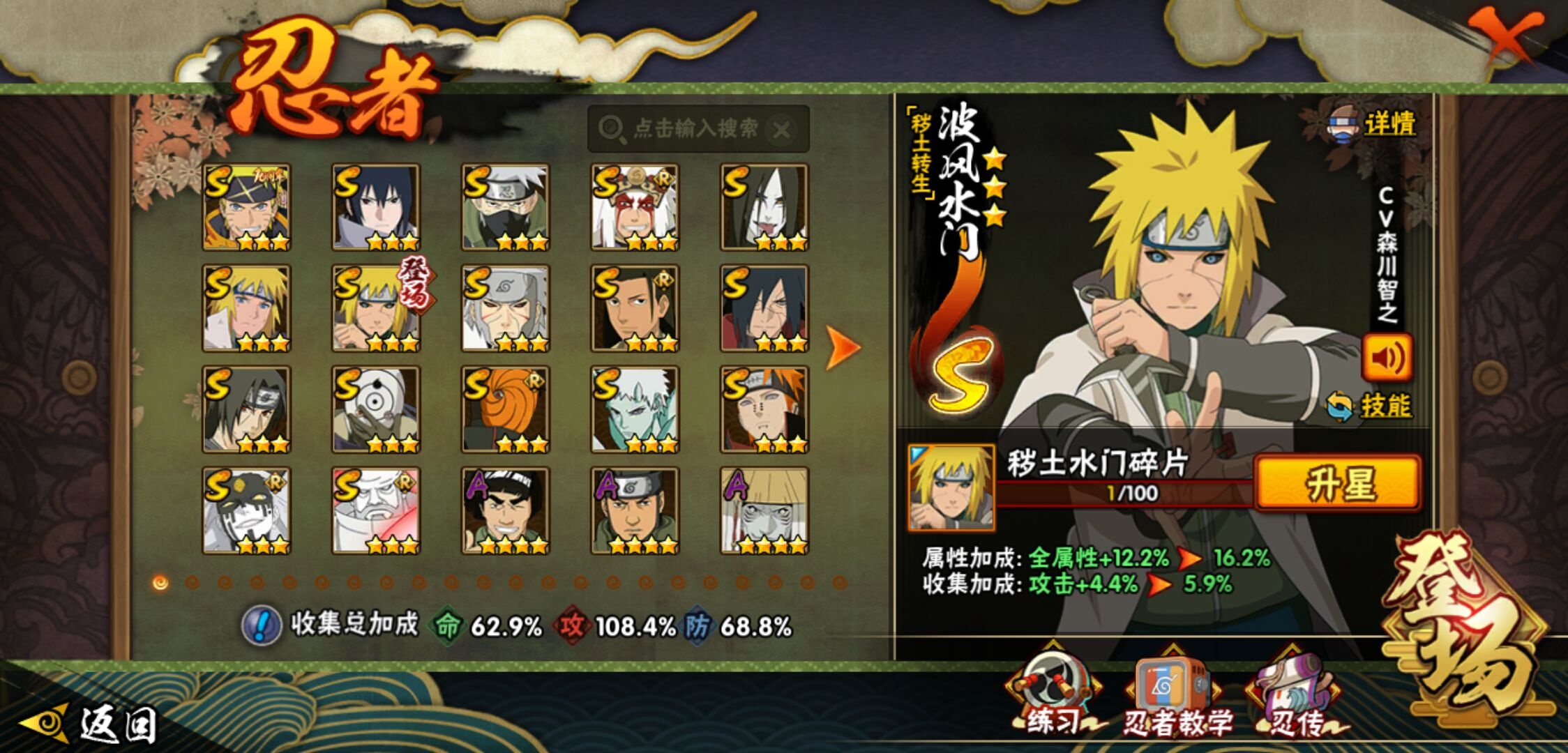 【火影忍者】【lyhy10755】战斗力:575w;段位:暗部1阶;本服排名:796;vip:v11级;s忍:17个;a忍:28个;通灵兽:17个,s忍:十尾人柱力宇智波带土|秽土转生解宇智波斑|白面具宇智波斑|须佐能乎旗木卡卡西|秽土转生千手扉间|五影会谈宇智波斑|天道佩恩|漩涡鸣人宇智波佐助|永恒万花筒宇智波佐助|木叶创立千手柱间|舞之豪杰自来也|大蛇丸(普通)|波风水门|秽土转生波风水门|须佐能乎宇智波鼬|博人传大筒木金式|大筒木桃式__a忍:青春爆炸迈特凯|妖怪奇谭纲手|忍界大战李洛克|忍界大战日向宁次|四代目土影黑土|青年长门|忍者之路神秘面具男|青年波风水门|青年艾|近松十人卫千代|须佐能乎宇智波佐助|九尾查克拉漩涡鸣人|晓大蛇丸|忍界大战秋道丁次|疾风传咒印宇智波佐助|万花筒写轮眼宇智波佐助|五代目水影照美冥|死司凭血飞段|疾风传我爱罗 3星|飞段(普通)|仙人模式漩涡鸣人|迈特凯(普通) 4星|干柿鬼鲛(普通) 4星|蝎(普通)|猿飞阿斯玛(普通) 4星|六代目水影长十郎|宇智波泉奈|初始形态机械鸣人__通灵兽:忍犬(普通)|蓝蛇|砂之守鹤|蛤蟆吉|忍龟|镰鼬|猿魔|山椒鱼|熊猫|蜃|蛤蟆仙人|鲛鲨|蛤蟆健|乌鸦(普通)|蛞蝓(普通)|蛤蟆龙|蛤蟆广