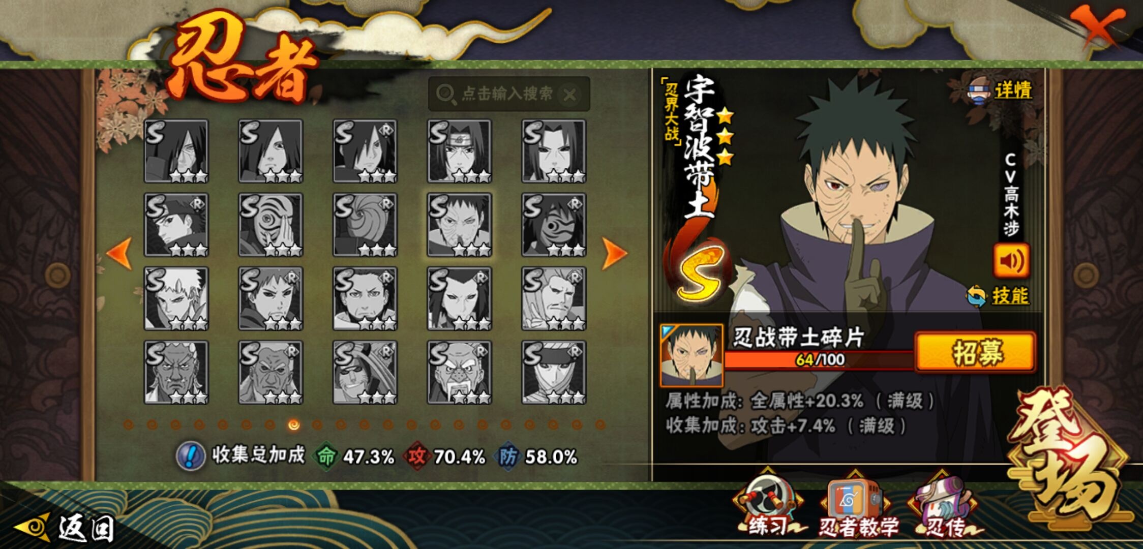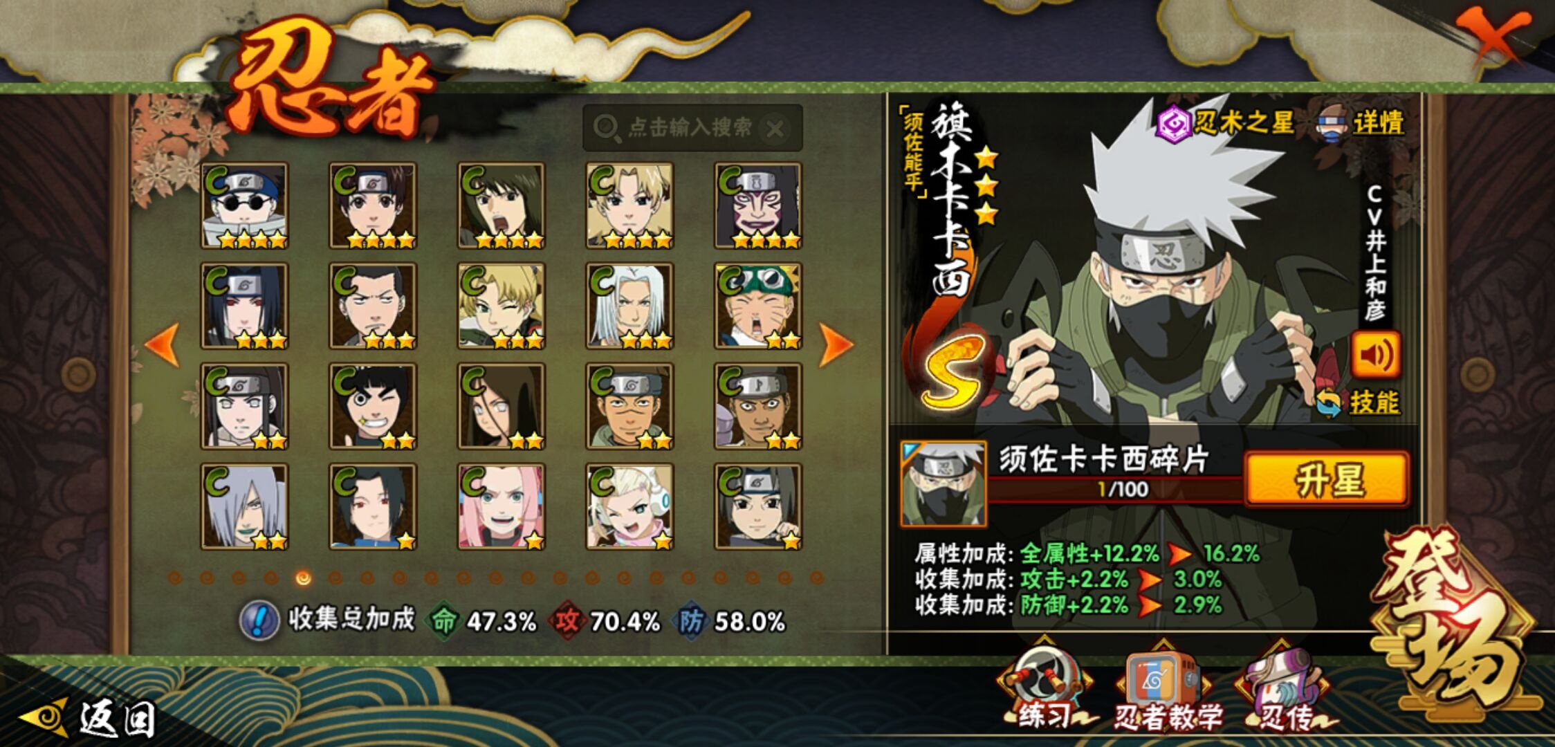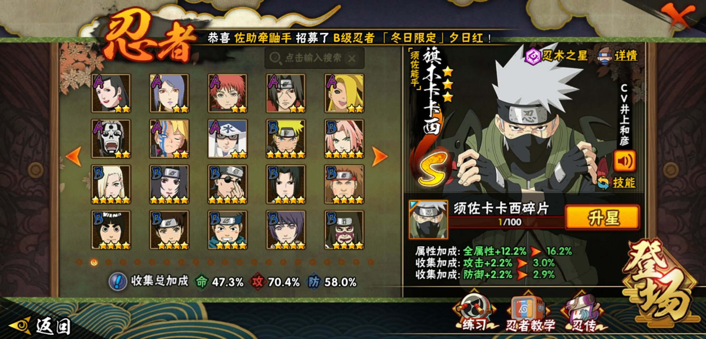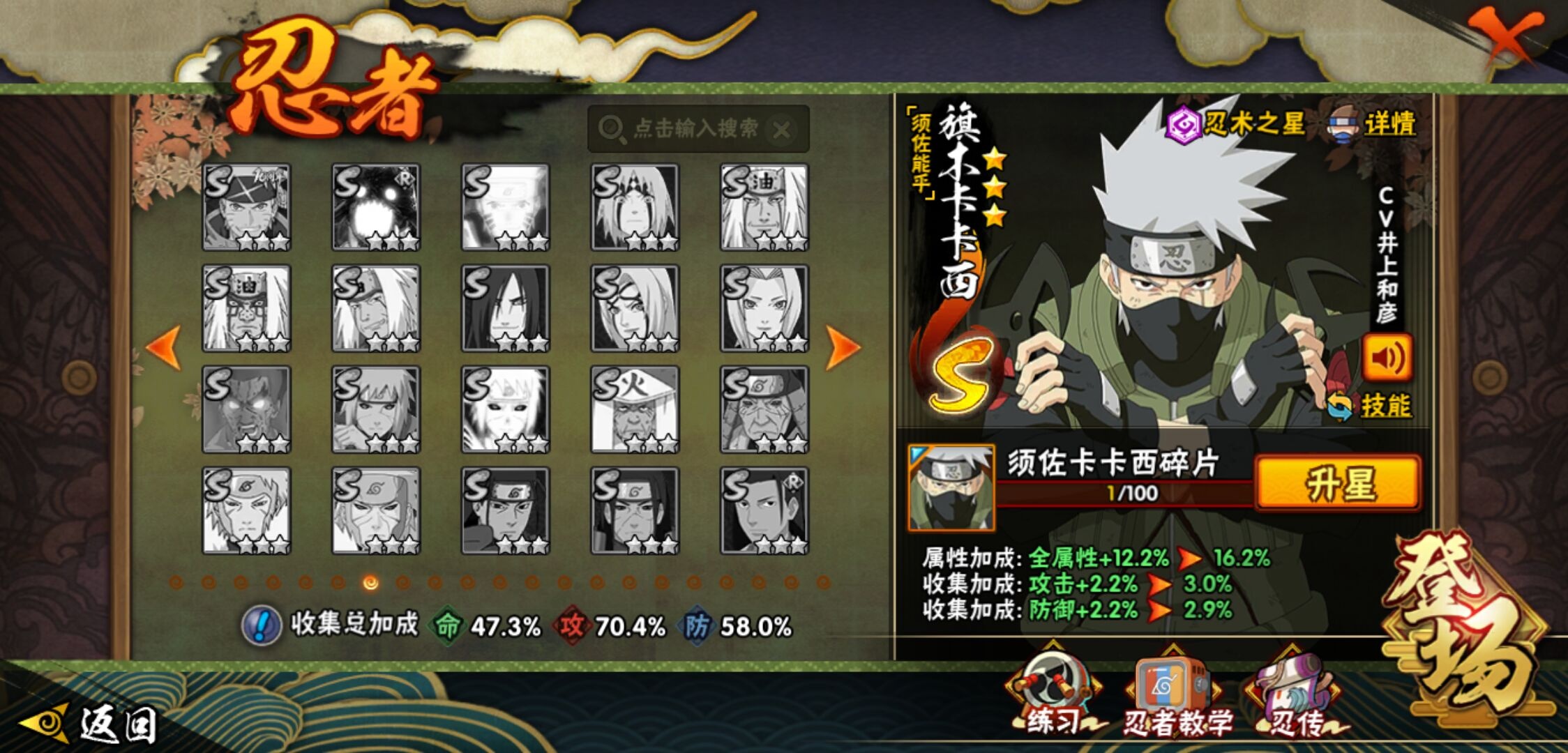 【火影忍者】【lyhy10852】战斗力:635w;段位:见习2阶;本服排名:1247;vip:v9级;s忍:9个;a忍:19个;通灵兽:16个,s忍:秽土转生解宇智波斑|白面具宇智波斑|须佐能乎旗木卡卡西|天道佩恩|永恒万花筒宇智波佐助|忍界大战艾|舞之豪杰自来也|波风水门|大筒木桃式__a忍:幻之真容旗木卡卡西|忍界大战李洛克 3星|忍界大战日向宁次|秽土转生迪达拉|近松十人卫千代|须佐能乎宇智波佐助|新春限定小南|忍界大战秋道丁次|死司凭血飞段|疾风传我爱罗 3星|迈特凯(普通) 5星|宇智波鼬(普通)|干柿鬼鲛(普通) 5星|蝎(普通)|猿飞阿斯玛(普通) 5星|桃式显现漩涡博人|六代目水影长十郎|不缘|宇智波泉奈__通灵兽:忍犬(普通)|蓝蛇|蛤蟆吉|砂之守鹤|忍龟|镰鼬|猿魔|山椒鱼|蜃|蛤蟆仙人|鲛鲨|蛤蟆健|乌鸦(普通)|螃蟹|蛤蟆龙|蛤蟆广