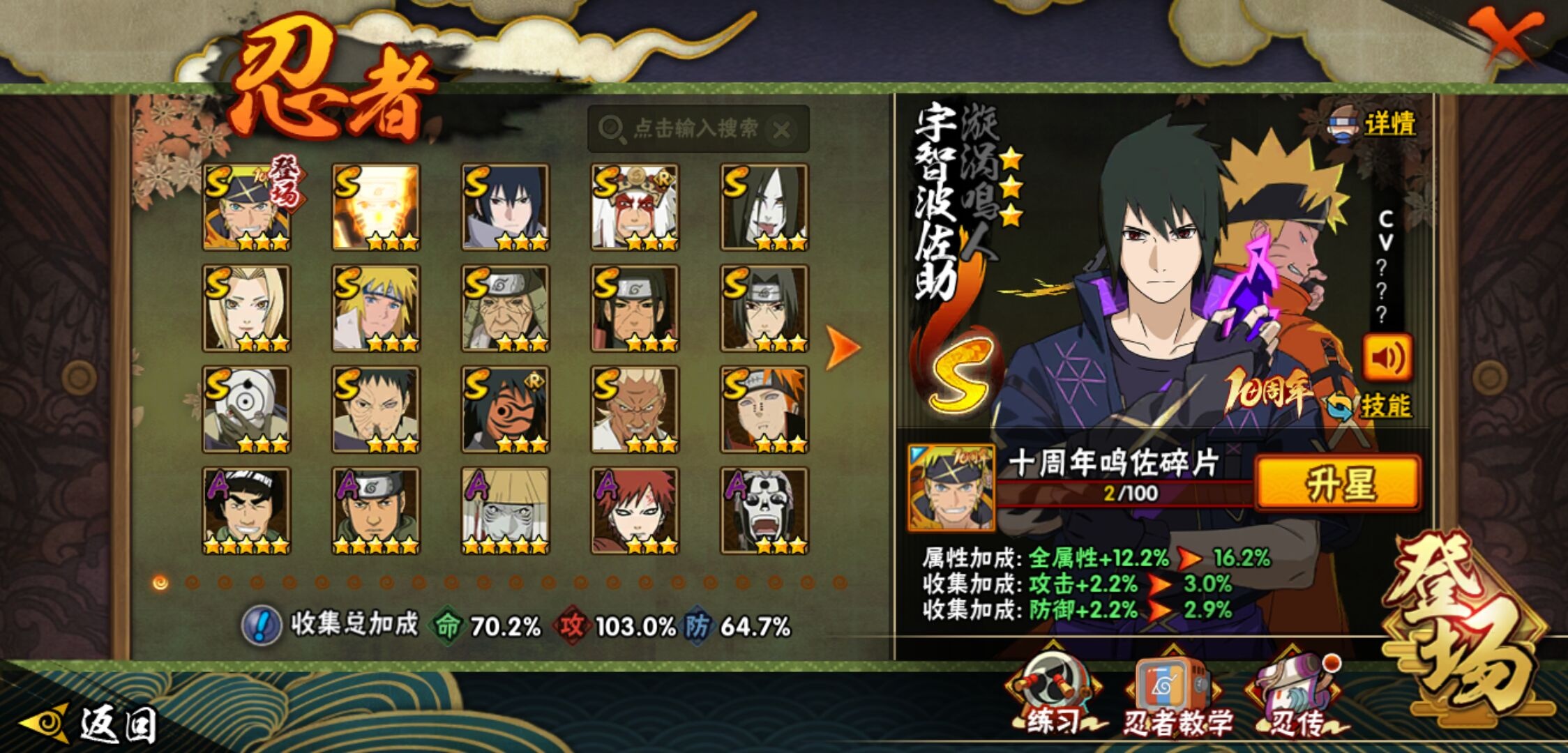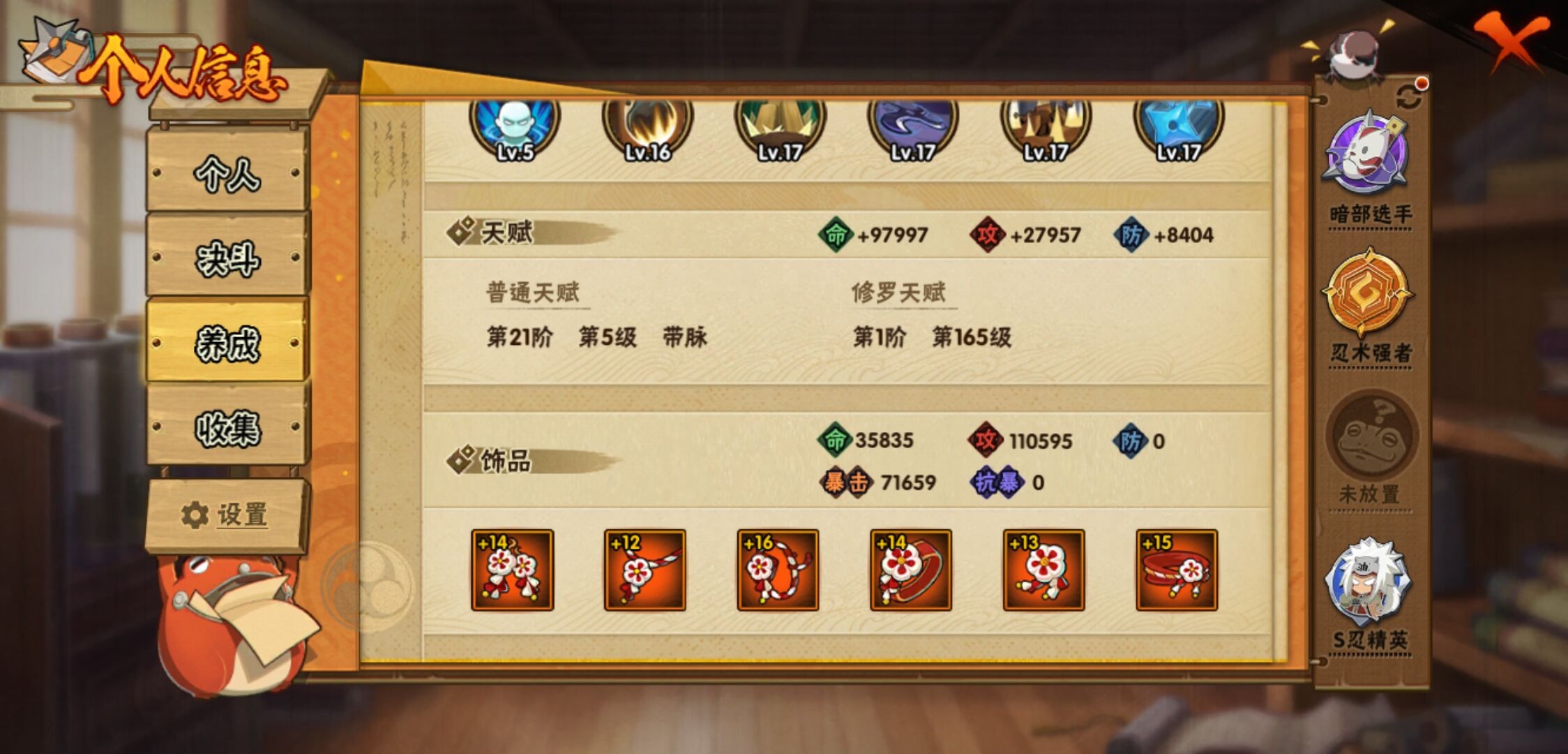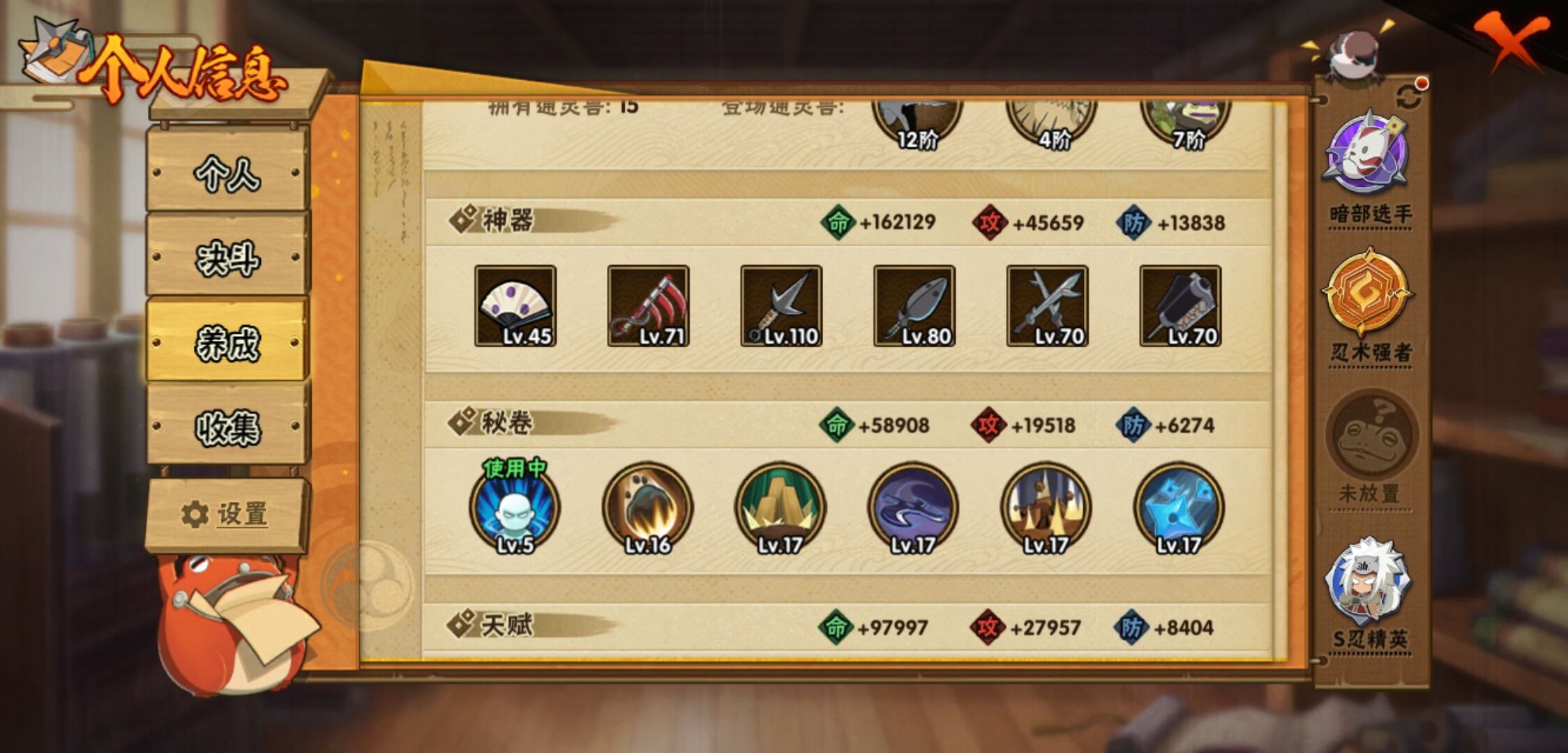 【火影忍者】【lyhy10872】战斗力:756w;段位:中忍3阶;本服排名:699;vip:v9级;s忍:15个;a忍:28个;通灵兽:15个,s忍:白面具宇智波斑|忍界大战宇智波带土|天道佩恩|漩涡鸣人宇智波佐助|秽土转生千手柱间|永恒万花筒宇智波佐助|忍界大战艾|舞之豪杰自来也|大蛇丸(普通)|纲手(普通)|波风水门|须佐能乎宇智波鼬|红夜之刃神秘面具男|九喇嘛连结漩涡鸣人|秽土转生猿飞日斩__a忍:青春爆炸迈特凯|仙人模式巳月|幻之真容旗木卡卡西|忍者之路神秘面具男|忍界大战奇拉比|青年波风水门|近松十人卫千代|须佐能乎宇智波佐助|九尾查克拉漩涡鸣人|暴怒宇智波带土|晓大蛇丸|忍界大战秋道丁次|万花筒写轮眼宇智波佐助|五代目水影照美冥|死司凭血飞段 3星|疾风传我爱罗 3星|迪达拉(普通)|飞段(普通)|万花筒写轮眼旗木卡卡西|迈特凯(普通) 5星|宇智波鼬(普通)|干柿鬼鲛(普通) 5星|蝎(普通)|猿飞阿斯玛(普通) 5星|最终章日向雏田|六代目水影长十郎|不缘|宇智波泉奈__通灵兽:忍犬(普通)|蓝蛇|砂之守鹤|蛤蟆吉|忍龟|镰鼬|猿魔|山椒鱼|蜃|蛤蟆仙人|鲛鲨|蛤蟆健|乌鸦(普通)|蛤蟆龙|蛤蟆广