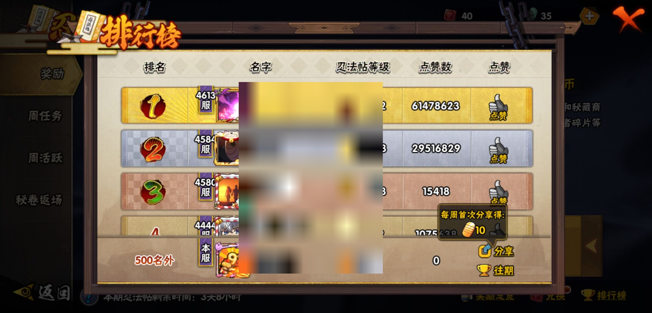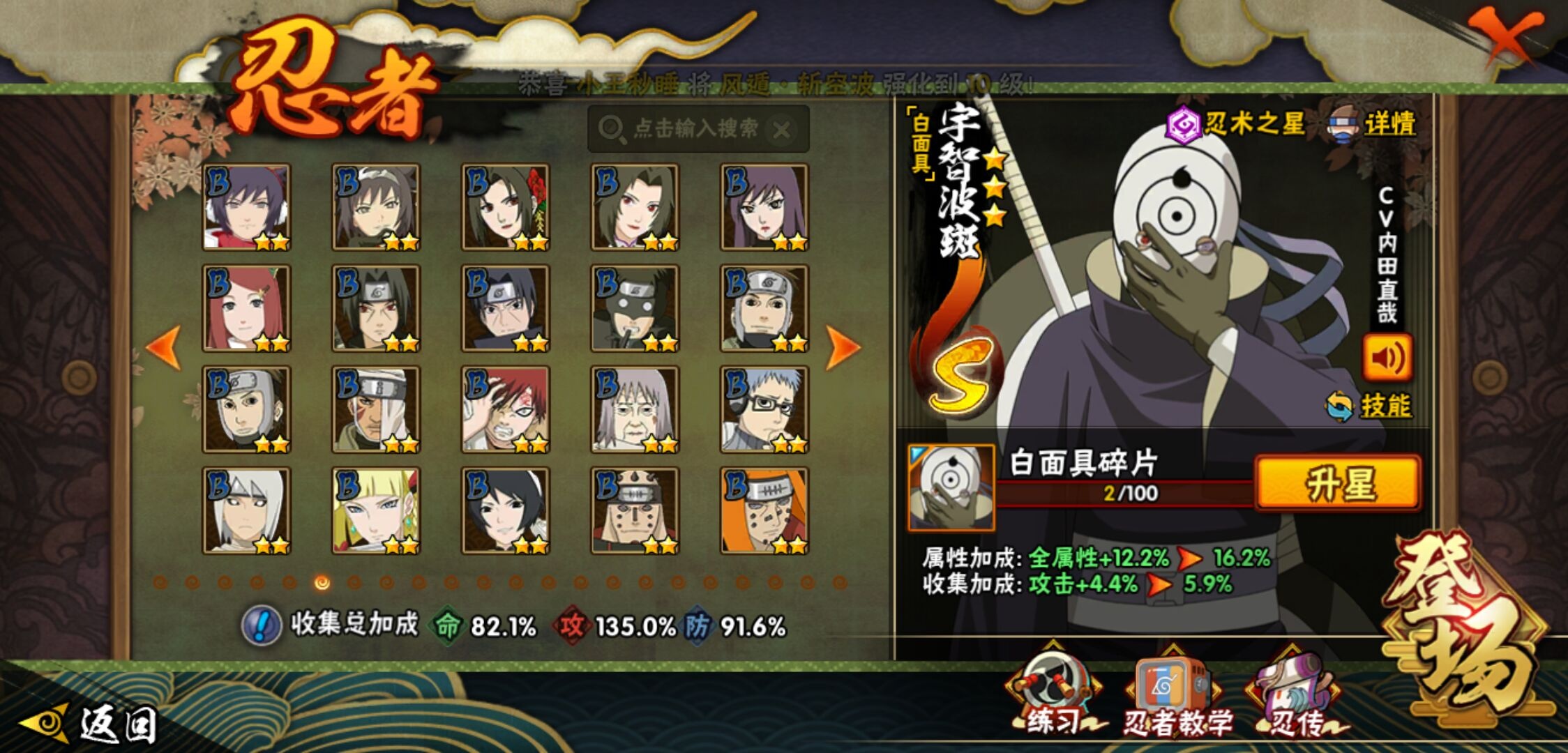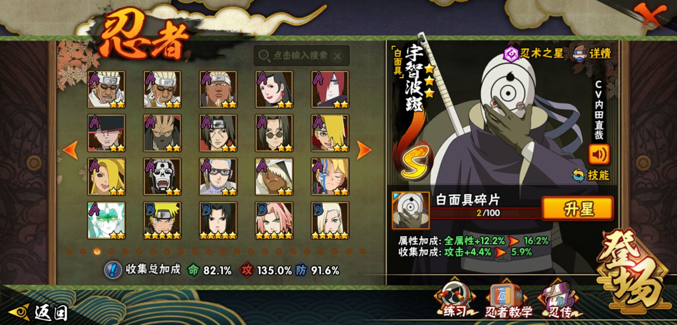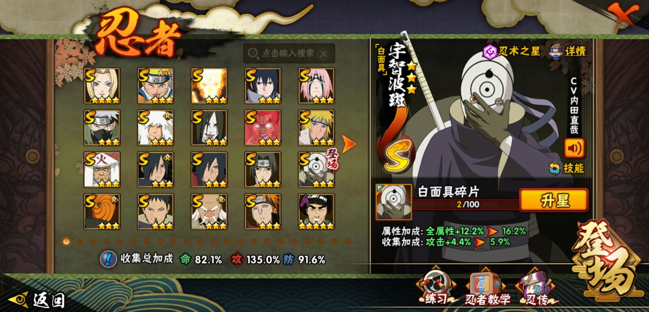 【火影忍者】【lyhy10874】战斗力:1138w;段位:暗部3阶;本服排名:293;vip:v11级;s忍:19个;a忍:37个;通灵兽:19个,s忍:秽土转生解宇智波斑|白面具宇智波斑|忍界大战宇智波带土|须佐能乎旗木卡卡西|五影会谈宇智波斑|天道佩恩|漩涡鸣人宇智波佐助|木叶创立宇智波斑|永恒万花筒宇智波佐助|舞之豪杰自来也|大蛇丸(普通)|纲手(普通) 4星|波风水门|须佐能乎宇智波鼬|死门迈特凯|忍界大战大野木|忍界大战春野樱|九喇嘛连结漩涡鸣人|猿飞日斩(普通)__a忍:青春爆炸迈特凯|仙人模式巳月|漂泊浪客佩恩六道|忍界大战日向宁次|青年长门|忍者之路神秘面具男|秽土转生迪达拉|新春限定宇智波止水|忍界大战奇拉比|青年波风水门|青年艾|忍界大战旗木卡卡西|近松十人卫千代|须佐能乎宇智波佐助|九尾查克拉漩涡鸣人 3星|七夕限定猿飞阿斯玛|忍界大战秋道丁次|新春限定宇智波鼬|奇拉比(普通)|万花筒写轮眼宇智波佐助|五代目水影照美冥|五代目雷影达鲁伊|死司凭血飞段|疾风传我爱罗 4星|迪达拉(普通)|飞段(普通) 3星|迈特凯(普通) 5星|宇智波鼬(普通)|干柿鬼鲛(普通) 5星|蝎(普通) 4星|绯流琥蝎|猿飞阿斯玛(普通) 5星|桃式显现漩涡博人|六代目水影长十郎|不缘|宇智波泉奈|初始形态机械鸣人__通灵兽:忍犬(普通)|蓝蛇|砂之守鹤|蛤蟆吉|忍龟|镰鼬|猿魔|山椒鱼|熊猫|蛞蝓(普通)|蜃|蛤蟆仙人|鲛鲨|怒鬼无臂|蛤蟆健|乌鸦(普通)|蛤蟆龙|蛤蟆广|梦貘