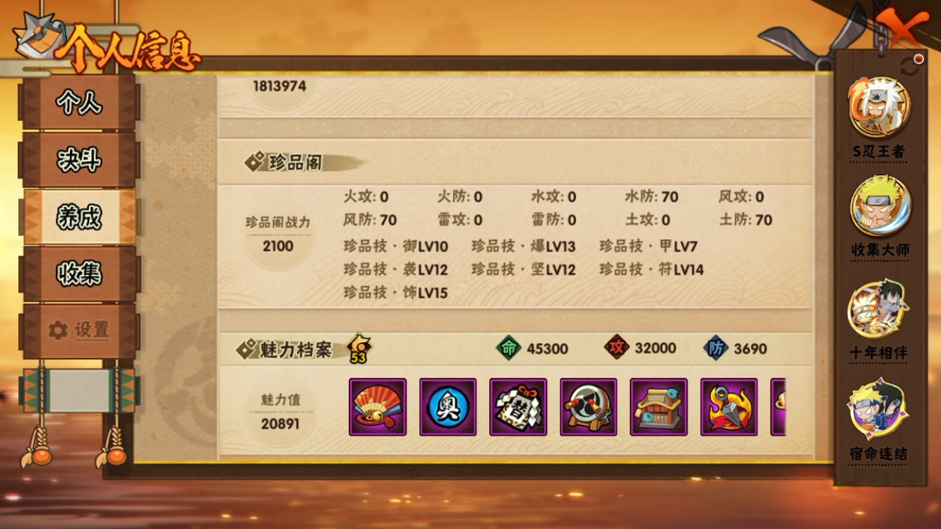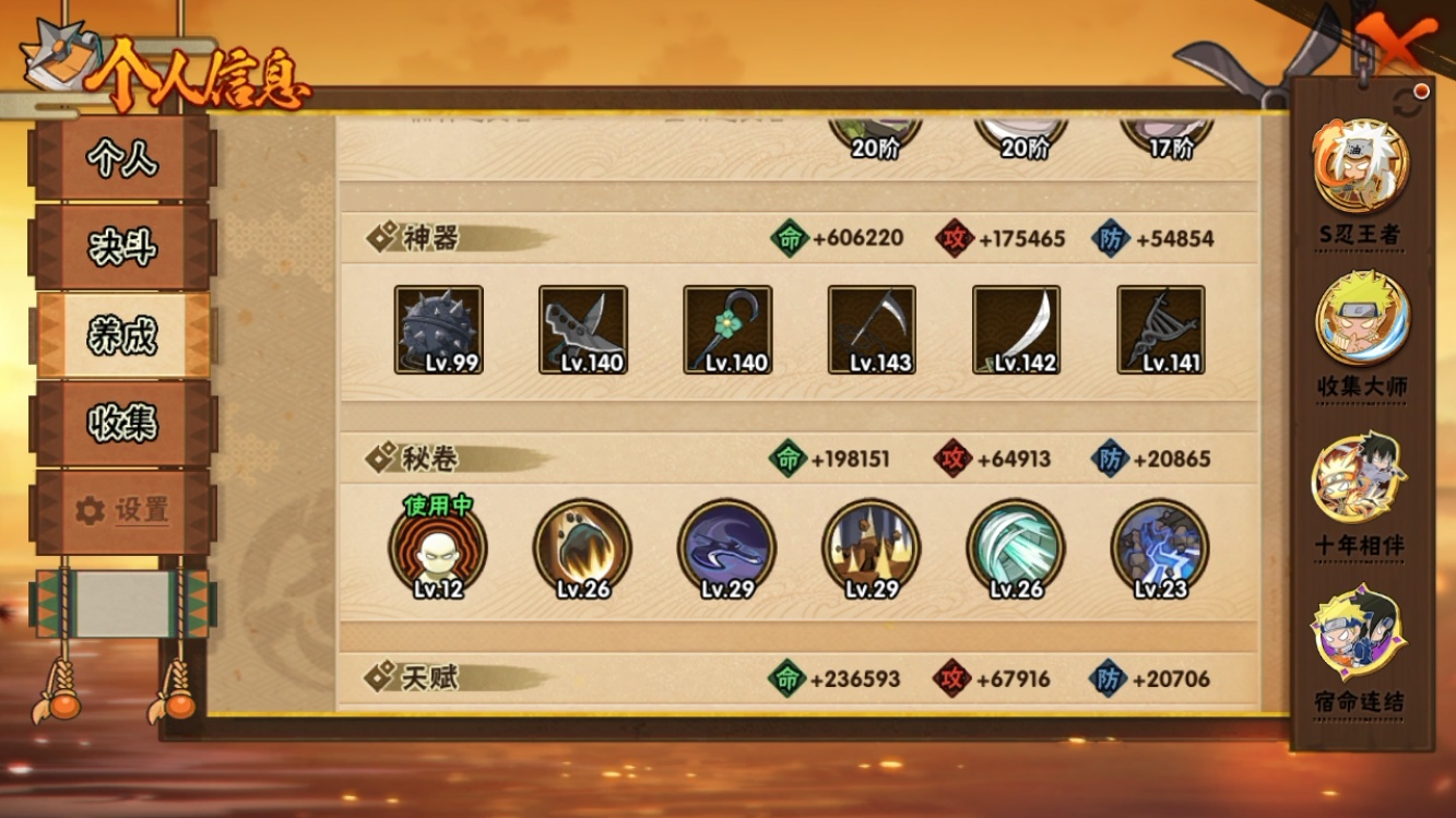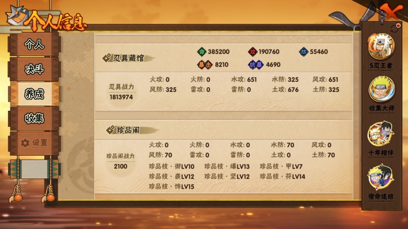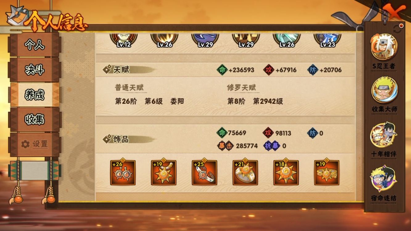 【火影忍者】【lyhy10884】战斗力:2461w;段位:暗部3阶;本服排名:115;vip:v14级;s忍:43个;a忍:84个;通灵兽:25个,s忍:秽土转生解宇智波斑|白面具宇智波斑|忍界大战宇智波带土|须佐能乎旗木卡卡西|秽土转生千手扉间|九喇嘛连结波风水门|五影会谈宇智波斑|天道佩恩|传说中的三忍自来也|漩涡鸣人宇智波佐助|须佐能乎宇智波止水|秽土转生千手柱间|秽土转生宇智波鼬|永恒万花筒宇智波佐助|最终章大筒木舍人|仙人模式自来也|忍界大战艾|舞之豪杰自来也|大蛇丸(普通)|纲手(普通)|百豪纲手|波风水门|秽土转生波风水门|千手扉间(普通)|千手柱间(普通)|秽土转生宇智波斑|宇智波斑(普通)|须佐能乎宇智波鼬|神秘面具男(普通)|秽土转生长门|秽土转生半藏|二代目水影鬼灯幻月|三代目土影大野木|四代目雷影艾|仙人模式药师兜|死门迈特凯|忍界大战春野樱|九喇嘛连结漩涡鸣人|大筒木桃式|猿飞日斩(普通)|秽土转生猿飞日斩|自来也(普通)|暴怒第六尾漩涡鸣人__a忍:青春爆炸迈特凯|漂泊浪客宇智波带土|仙人模式巳月|侠隐江湖宇智波佐助|侠隐江湖纲手|幻之真容旗木卡卡西|侠隐江湖药师兜|忍界大战李洛克|漂泊浪客佩恩六道|新春限定我爱罗|秽土转生角都|忍界大战日向宁次|四代目土影黑土|木叶上忍猿飞木叶丸|火之意志继承者卑留呼|青年长门|侠隐江湖照美冥|忍者之路神秘面具男|秽土转生迪达拉|志村团藏|宇智波止水(普通)|新春限定宇智波止水|元气夏日旗木卡卡西|不风|忍界大战奇拉比|青年波风水门|青年艾|漂泊武士千手扉间|加藤断|漂泊武士桃地再不斩|近松十人卫千代|晓创生角都|半蛇斗篷药师兜|须佐能乎宇智波佐助|九尾查克拉漩涡鸣人|新春限定小南|恶灵之影飞段|晓大蛇丸|地陆|火影继承人猿飞日斩|百豪春野樱|忍界大战秋道丁次|忍界大战我爱罗|忍界大战勘九郎|新春限定波风水门|新春限定宇智波鼬|奇拉比(普通)|万花筒写轮眼宇智波佐助|五代目水影照美冥|五代目雷影达鲁伊|绝|黑绝|死司凭血飞段|角都(普通)|地怨虞角都|疾风传我爱罗|迪达拉(普通)|飞段(普通)|小南(普通)|漂泊浪客小南|仙人模式漩涡鸣人|万花筒写轮眼旗木卡卡西|旗木卡卡西(普通)|迈特凯(普通)|宇智波鼬(普通)|夏日限定宇智波鼬|干柿鬼鲛(普通)|桃地再不斩|秽土转生桃地再不斩|蝎(普通)|绯流琥蝎|猿飞阿斯玛(普通)|桃式显现漩涡博人|最终章日向雏田|六代目水影长十郎|不缘|新春限定大蛇丸|不动|宇智波泉奈|羁绊神农|夏日限定黑土|忍界大战土台|初始形态机械鸣人|侠隐江湖大野木__通灵兽:忍犬(普通)|蓝蛇|蛤蟆吉|忍龟|镰鼬|猿魔|山椒鱼|蜃|蛤蟆仙人|鲛鲨|蛤蟆健|乌鸦(普通)|蛞蝓(普通)|蛤蟆广|梦貘|蛤蟆龙|蜘蛛|怒鬼爪|鹰|砂之守鹤|蛞蝓侠隐江湖|万蛇|熊猫|螃蟹|变色龙