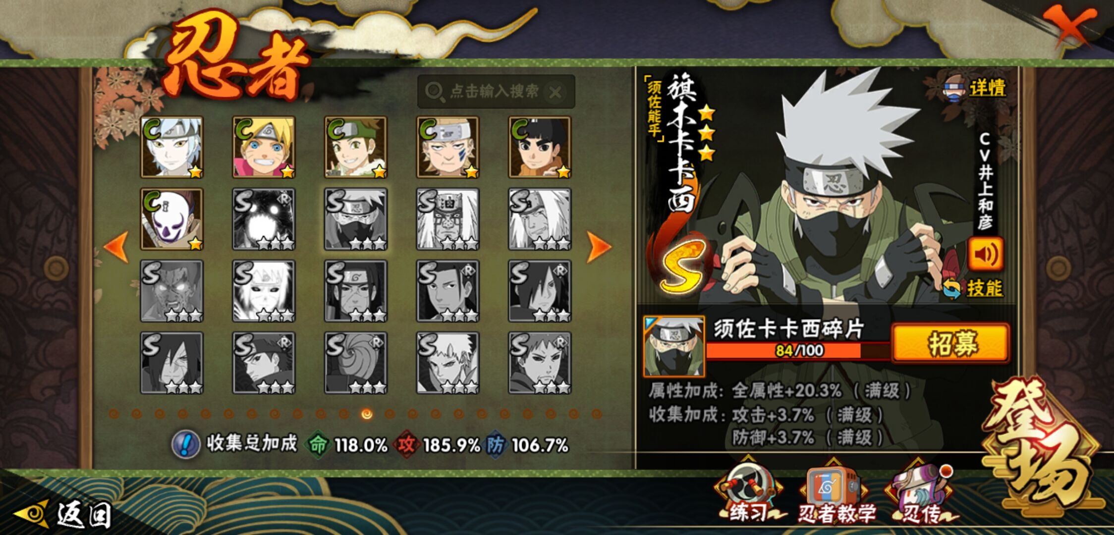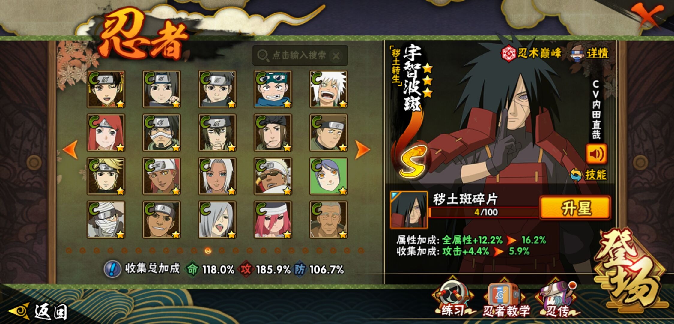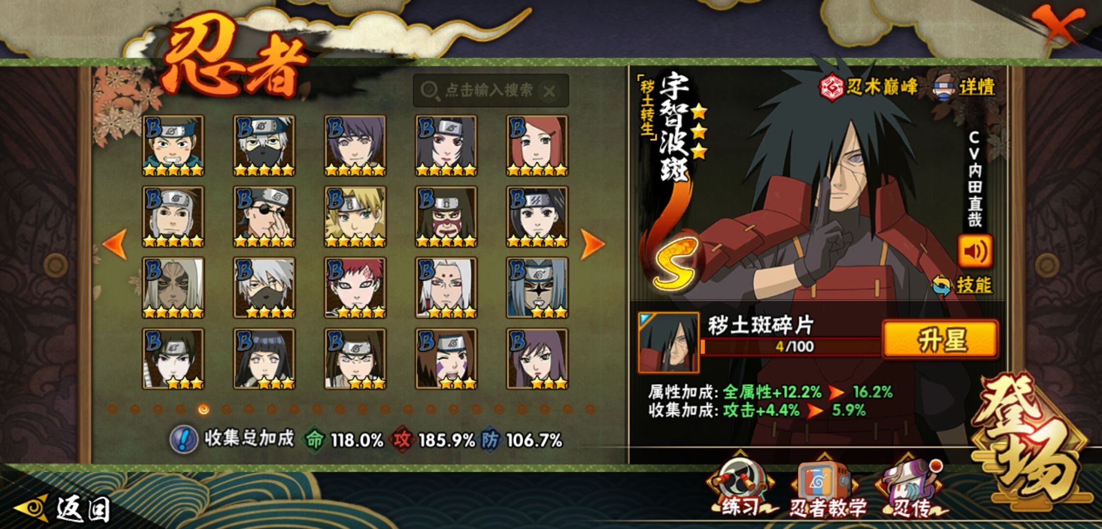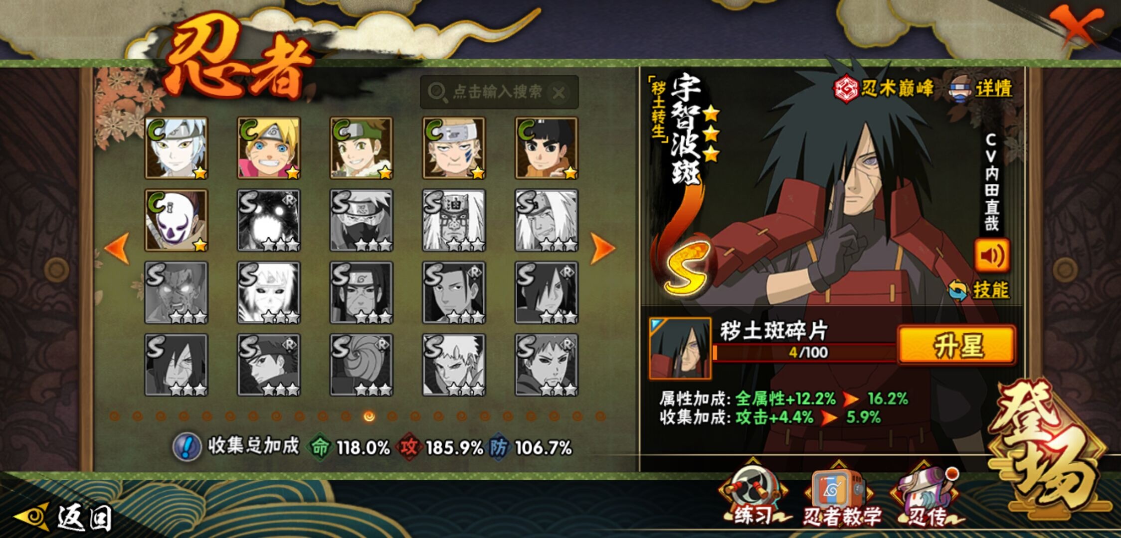 【火影忍者】【lyhy10912】战斗力:1121w;段位:上忍3阶;本服排名:494;vip:v11级;s忍:32个;a忍:40个;通灵兽:19个,s忍:白面具宇智波斑|忍界大战宇智波带土|秽土转生千手扉间|天道佩恩|漩涡鸣人宇智波佐助|秽土转生宇智波鼬|永恒万花筒宇智波佐助|忍界大战艾|舞之豪杰自来也|大蛇丸(普通) 4星|纲手(普通) 4星|百豪纲手|波风水门 4星|秽土转生波风水门|千手扉间(普通)|千手柱间(普通)|秽土转生宇智波斑|宇智波斑(普通)|须佐能乎宇智波鼬|神秘面具男(普通)|红夜之刃神秘面具男|秽土转生长门|秽土转生半藏|秽土转生金角银角|二代目土影无|四代目雷影艾|仙人模式药师兜|忍界大战春野樱|九喇嘛连结漩涡鸣人|猿飞日斩(普通)|秽土转生猿飞日斩|自来也(普通)__a忍:青春爆炸迈特凯|四代目土影黑土|木叶上忍猿飞木叶丸|青年长门|秽土转生迪达拉|宇智波止水(普通)|青年三船|青年波风水门|青年艾|近松十人卫千代|半蛇斗篷药师兜|须佐能乎宇智波佐助|九尾查克拉漩涡鸣人|晓大蛇丸 3星|地陆|百豪春野樱|忍界大战秋道丁次|忍界大战我爱罗|秽土转生猿飞阿斯玛|新春限定波风水门|新春限定宇智波鼬|奇拉比(普通)|万花筒写轮眼宇智波佐助|五代目水影照美冥|死司凭血飞段 4星|角都(普通)|地怨虞角都|疾风传我爱罗 4星|迪达拉(普通)|飞段(普通) 4星|小南(普通)|仙人模式漩涡鸣人|万花筒写轮眼旗木卡卡西|迈特凯(普通) 5星|宇智波鼬(普通)|干柿鬼鲛(普通) 5星|蝎(普通) 5星|猿飞阿斯玛(普通) 5星|六代目水影长十郎|不缘__通灵兽:忍犬(普通)|蓝蛇|蛤蟆吉|忍龟|镰鼬|猿魔|山椒鱼|蜃|蛞蝓(普通)|蛤蟆仙人|鲛鲨|蛤蟆健|乌鸦(普通)|蛤蟆龙|蛤蟆广|梦貘|鹰|蜘蛛|砂之守鹤