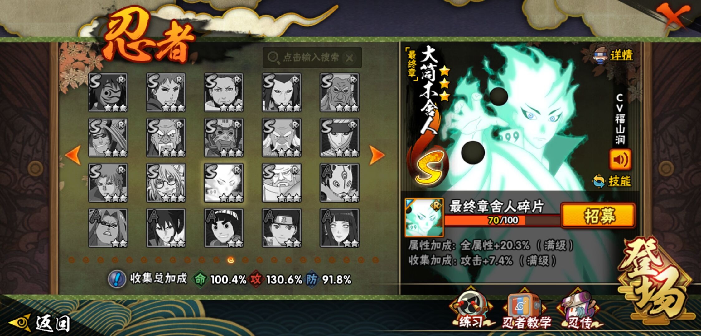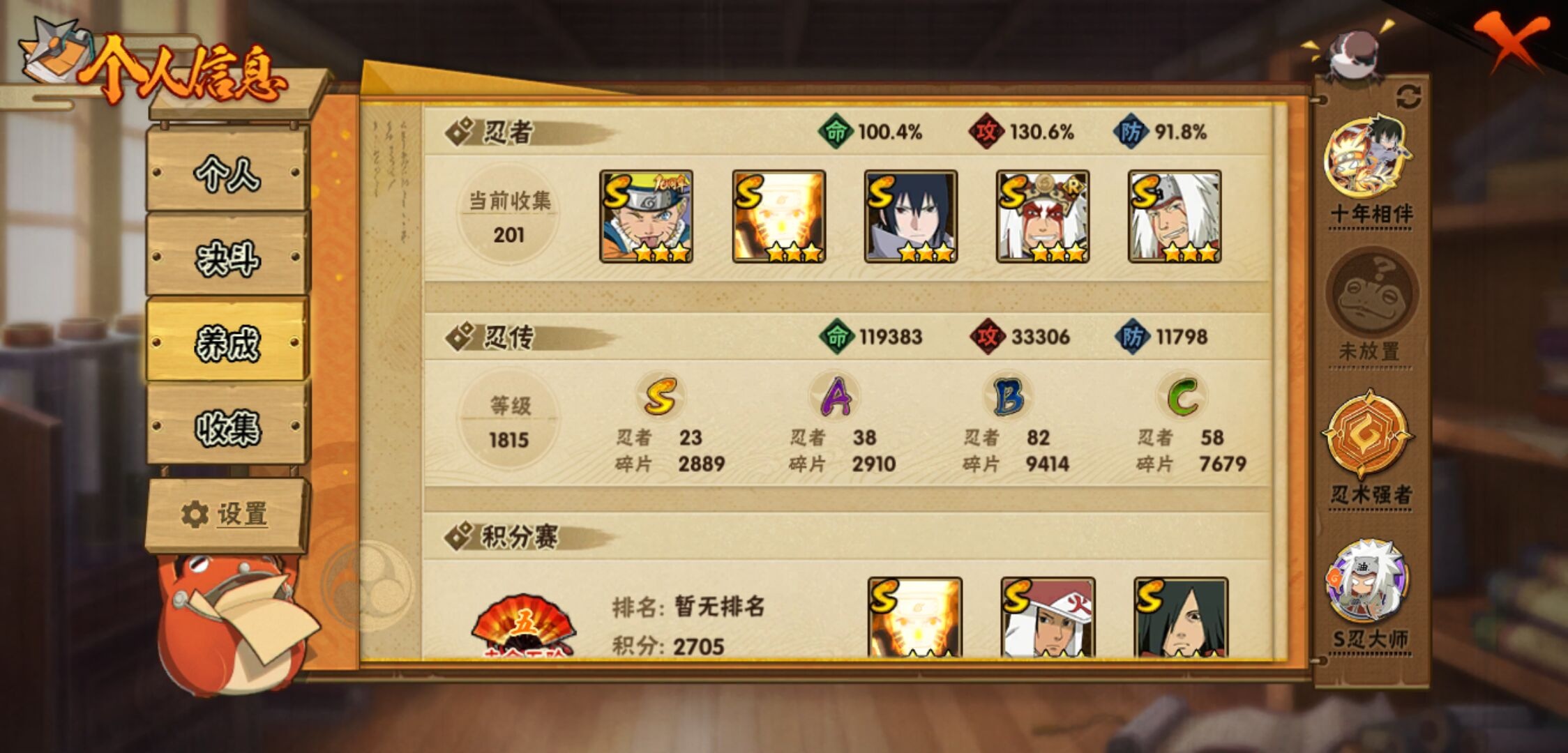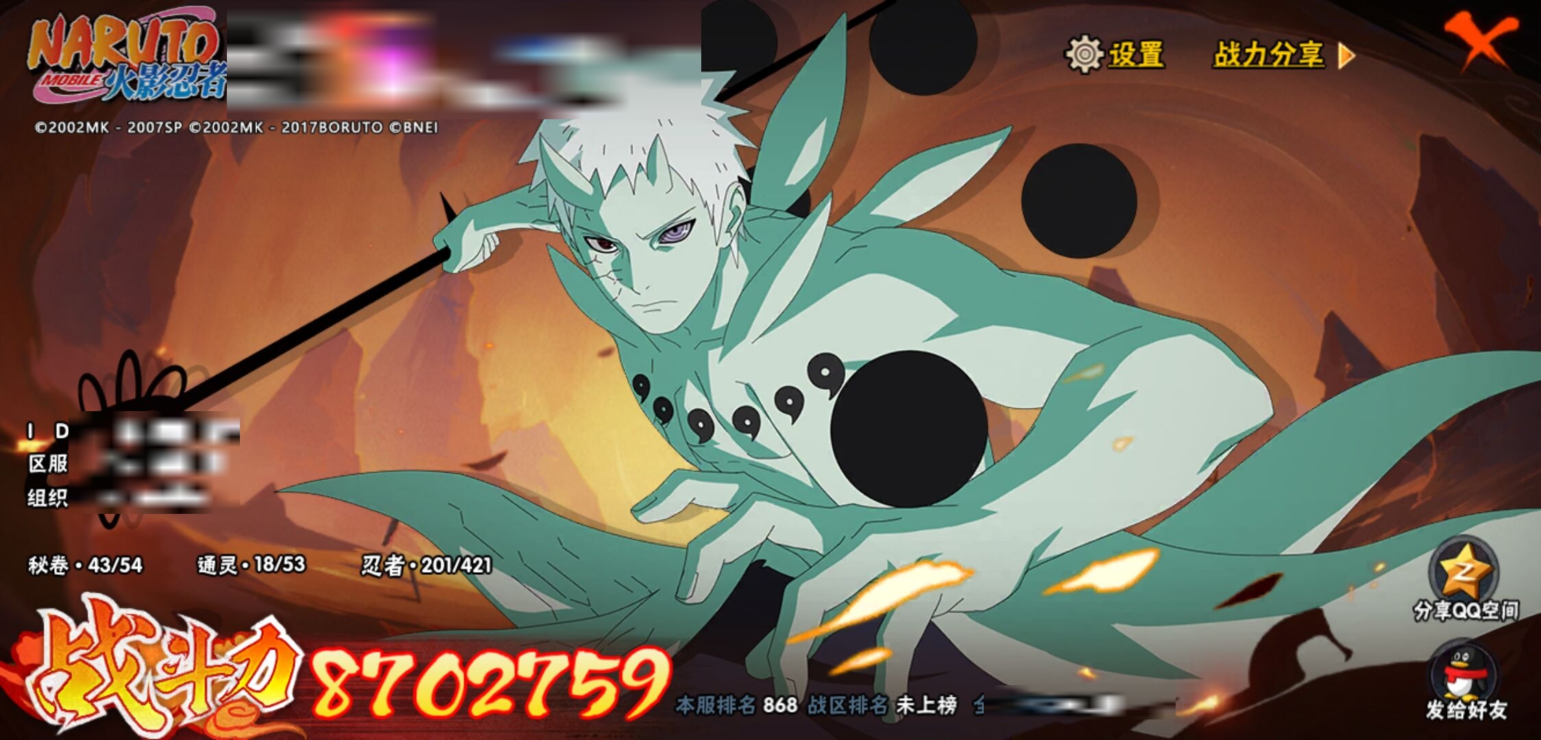 【火影忍者】【lyhy10950】战斗力:870w;段位:超影;本服排名:868;vip:v11级;s忍:23个;a忍:38个;通灵兽:17个,s忍:十尾人柱力宇智波带土|白面具宇智波斑|五影会谈宇智波斑|天道佩恩|传说中的三忍自来也|漩涡鸣人宇智波佐助|永恒万花筒宇智波佐助|忍界大战艾|舞之豪杰自来也|大蛇丸(普通)|百豪纲手|波风水门|秽土转生波风水门|千手柱间(普通)|宇智波斑(普通)|须佐能乎宇智波鼬|神秘面具男(普通)|秽土转生长门|二代目水影鬼灯幻月|四代目雷影艾|九喇嘛连结漩涡鸣人|大筒木桃式|秽土转生猿飞日斩__a忍:青春爆炸迈特凯|漂泊浪客宇智波带土|妖怪奇谭纲手|仙人模式巳月|秽土转生角都|忍界大战日向宁次|四代目土影黑土|青年长门|宇智波止水(普通)|青年波风水门|近松十人卫千代|半蛇斗篷药师兜|须佐能乎宇智波佐助|九尾查克拉漩涡鸣人|晓大蛇丸|百豪春野樱|忍界大战秋道丁次|忍界大战我爱罗|奇拉比(普通)|万花筒写轮眼宇智波佐助|五代目水影照美冥|死司凭血飞段 3星|疾风传我爱罗 4星|飞段(普通) 4星|小南(普通)|仙人模式漩涡鸣人|迈特凯(普通) 4星|宇智波鼬(普通)|干柿鬼鲛(普通) 4星|蝎(普通) 3星|绯流琥蝎|猿飞阿斯玛(普通) 3星|桃式显现漩涡博人|六代目水影长十郎|不缘|宇智波泉奈|初始形态机械鸣人|侠隐江湖大野木__通灵兽:忍犬(普通)|蓝蛇|蛤蟆吉|忍龟|镰鼬|猿魔|山椒鱼|蜃|蛞蝓(普通)|蛤蟆仙人|鲛鲨|蛤蟆健|乌鸦(普通)|砂之守鹤|蛤蟆龙|蛤蟆广|螃蟹