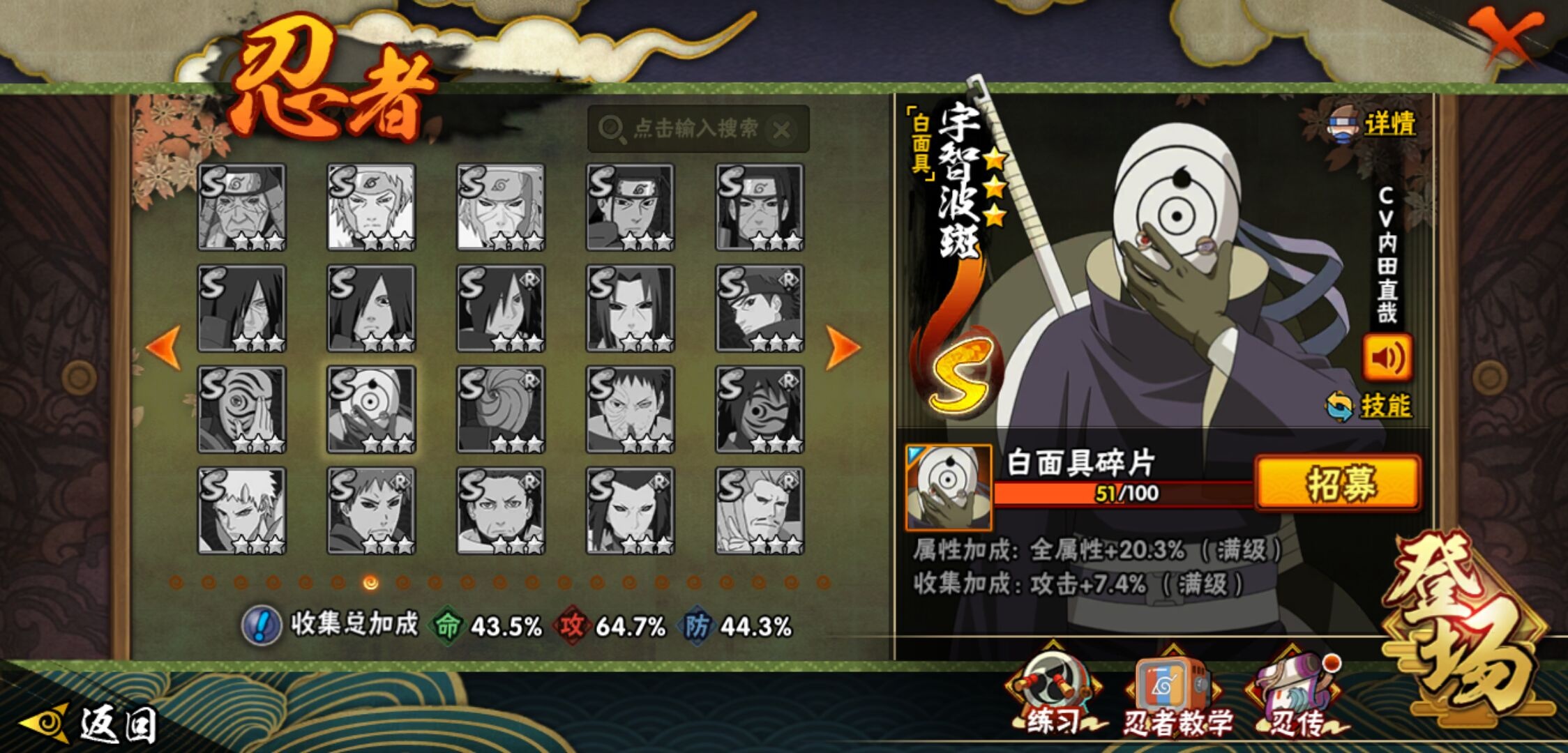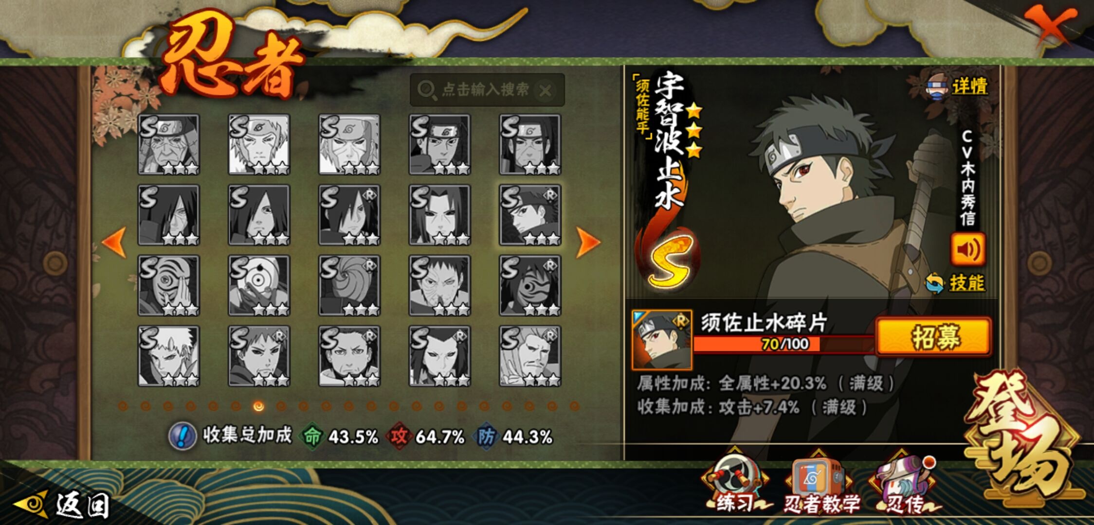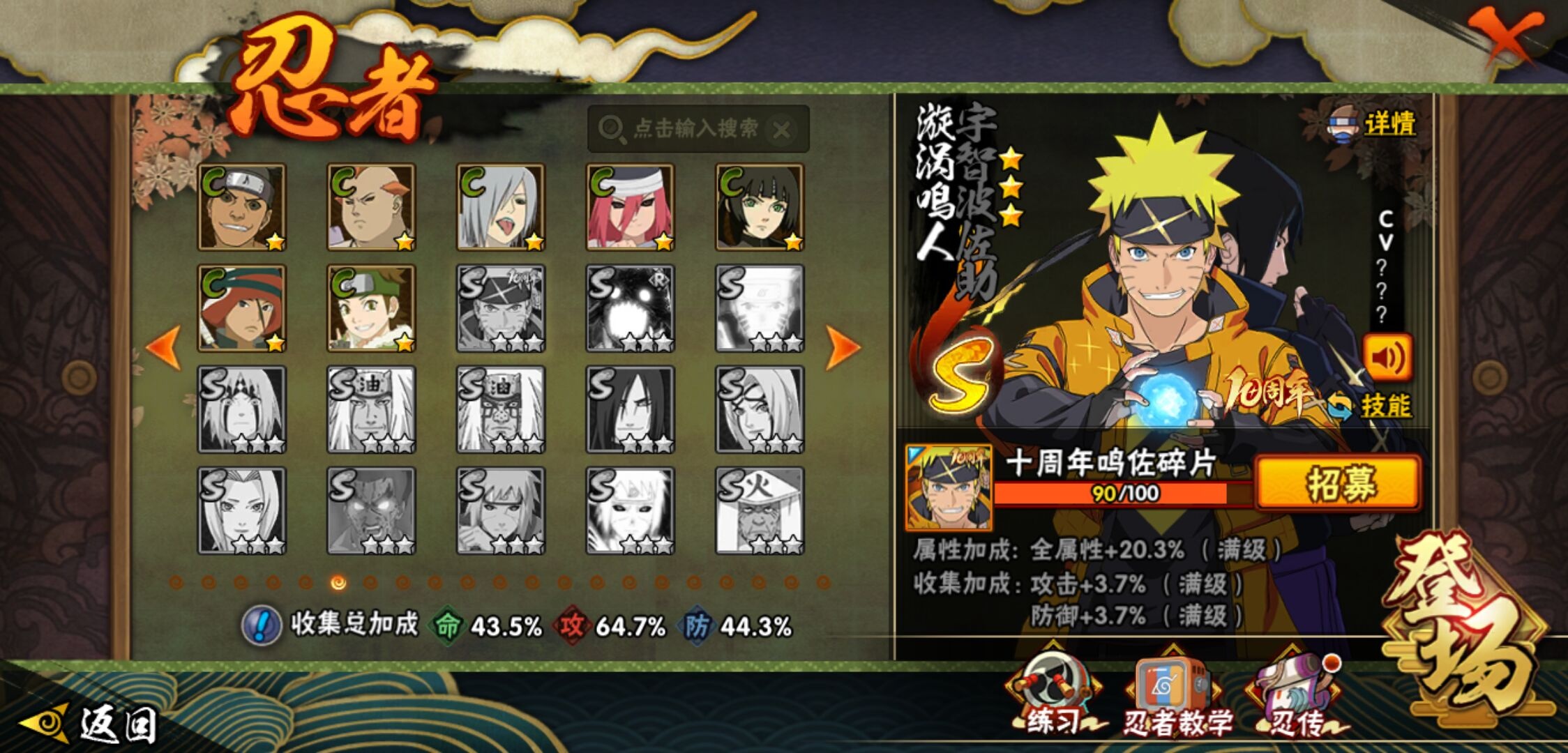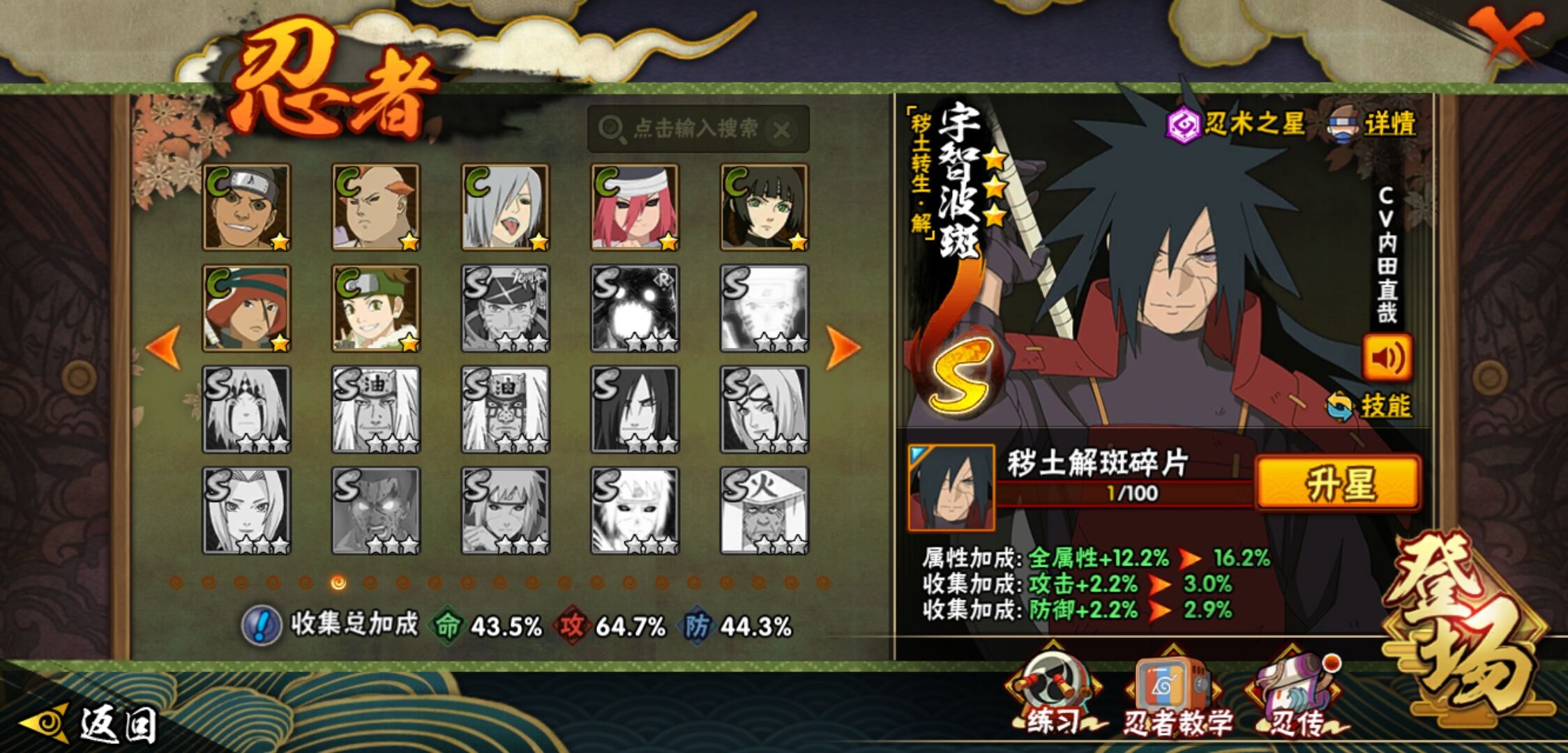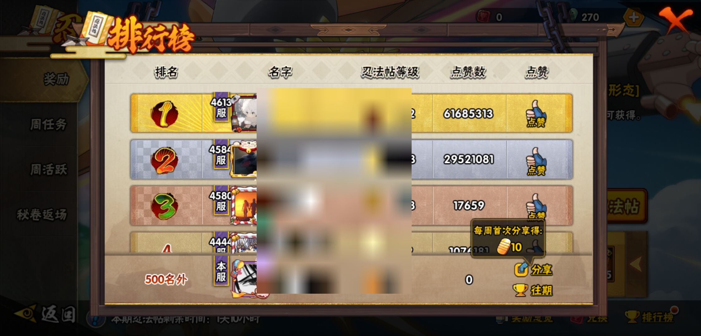 【火影忍者】【lyhy10972】战斗力:550w;段位:上忍1阶;本服排名:1559;vip:v7级;s忍:9个;a忍:20个;通灵兽:14个,s忍:秽土转生解宇智波斑|须佐能乎旗木卡卡西|天道佩恩|传说中的三忍自来也|永恒万花筒宇智波佐助|木叶创立千手柱间|舞之豪杰自来也|波风水门|须佐能乎宇智波鼬__a忍:漂泊浪客宇智波带土|忍界大战李洛克|忍界大战日向宁次|四代目土影黑土|近松十人卫千代|九尾查克拉漩涡鸣人|恶灵之影飞段|忍界大战秋道丁次|死司凭血飞段|疾风传我爱罗|迪达拉(普通)|飞段(普通)|迈特凯(普通) 4星|宇智波鼬(普通)|干柿鬼鲛(普通) 3星|秽土转生桃地再不斩|绯流琥蝎|蝎(普通)|猿飞阿斯玛(普通) 3星|宇智波泉奈__通灵兽:忍犬(普通)|蓝蛇|蛤蟆吉|忍龟|镰鼬|猿魔|山椒鱼|蜃|蛤蟆仙人|鲛鲨|蛤蟆健|乌鸦(普通)|砂之守鹤|蛤蟆龙