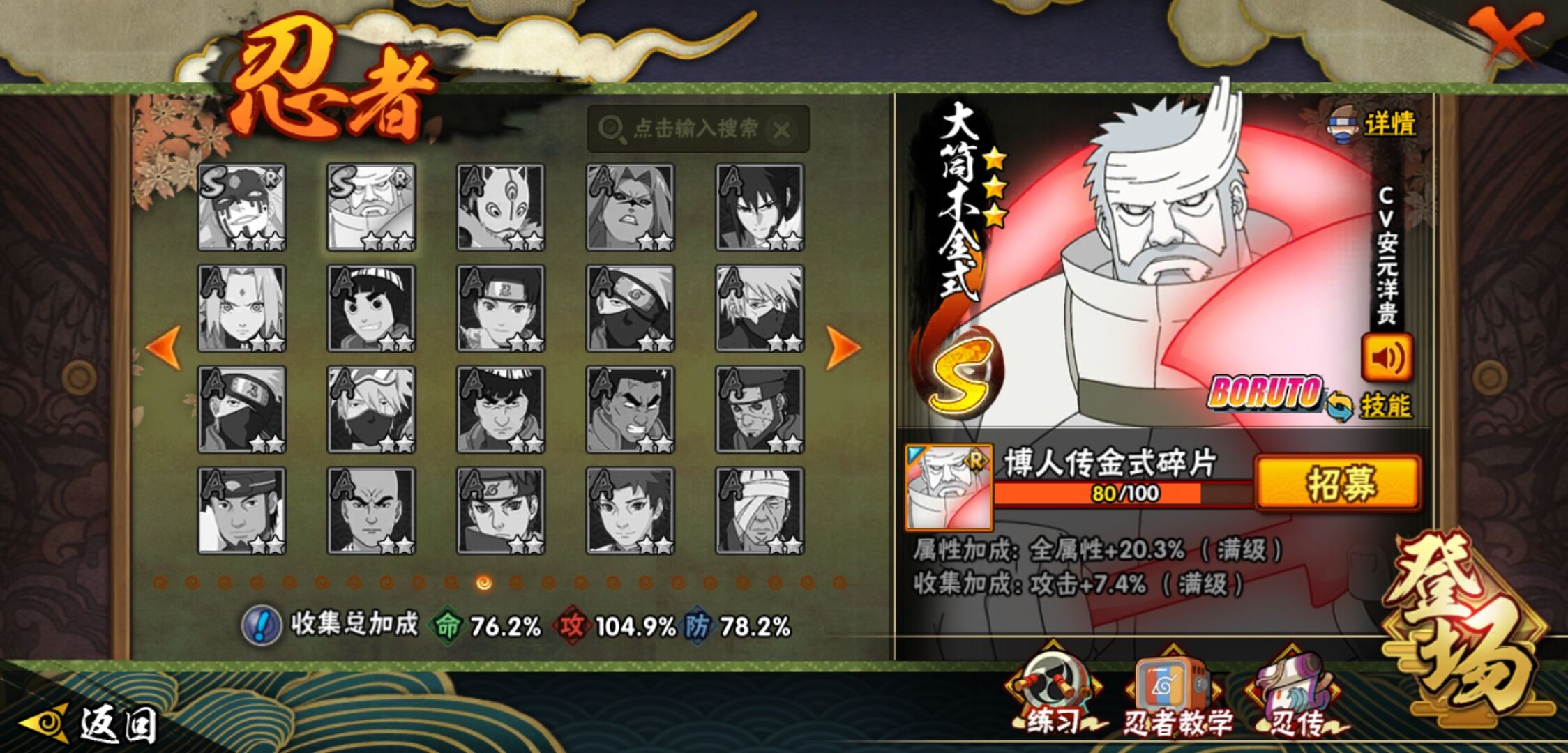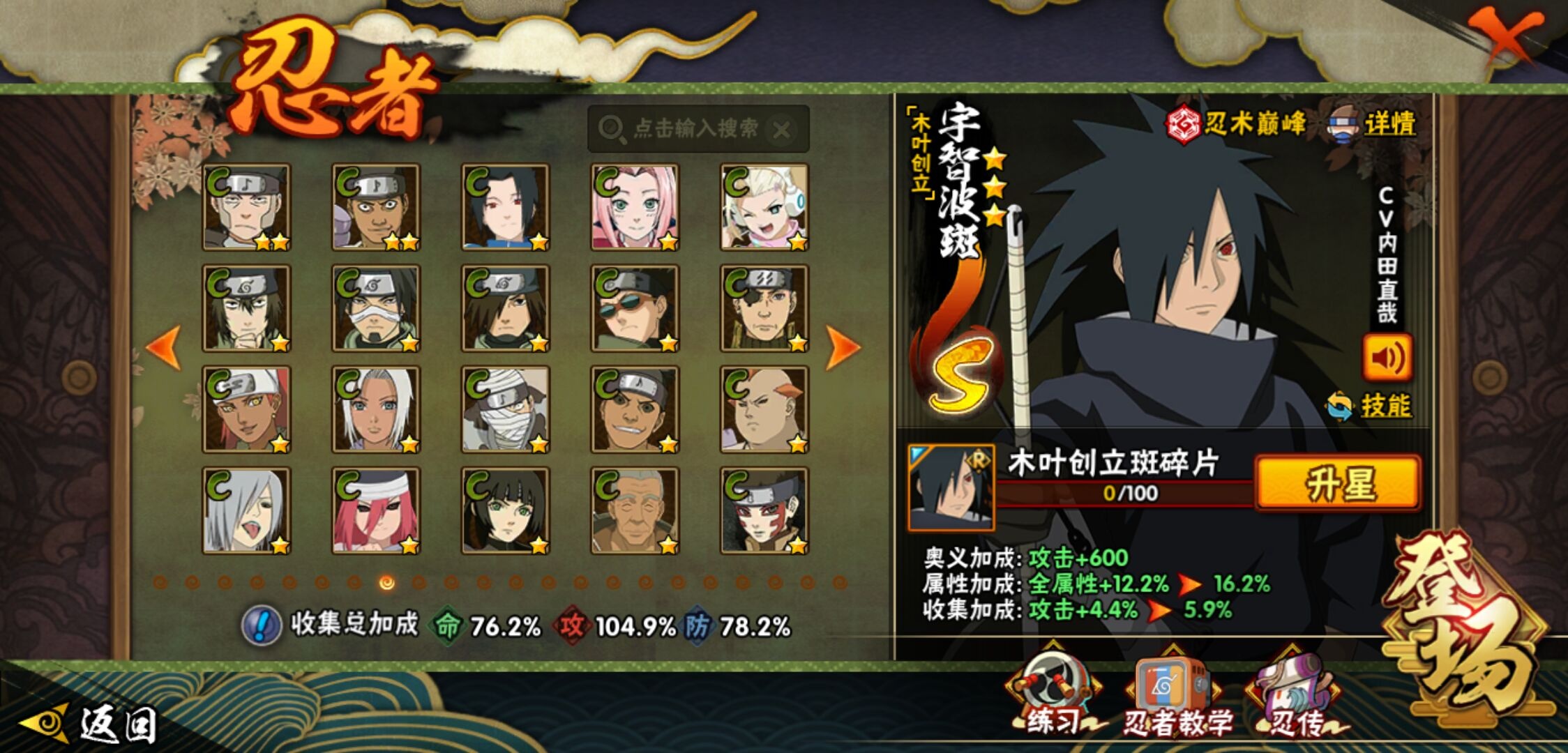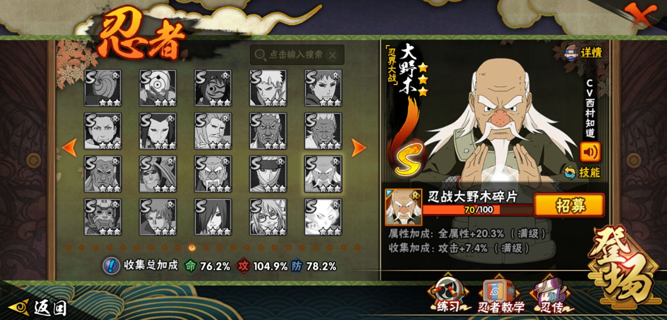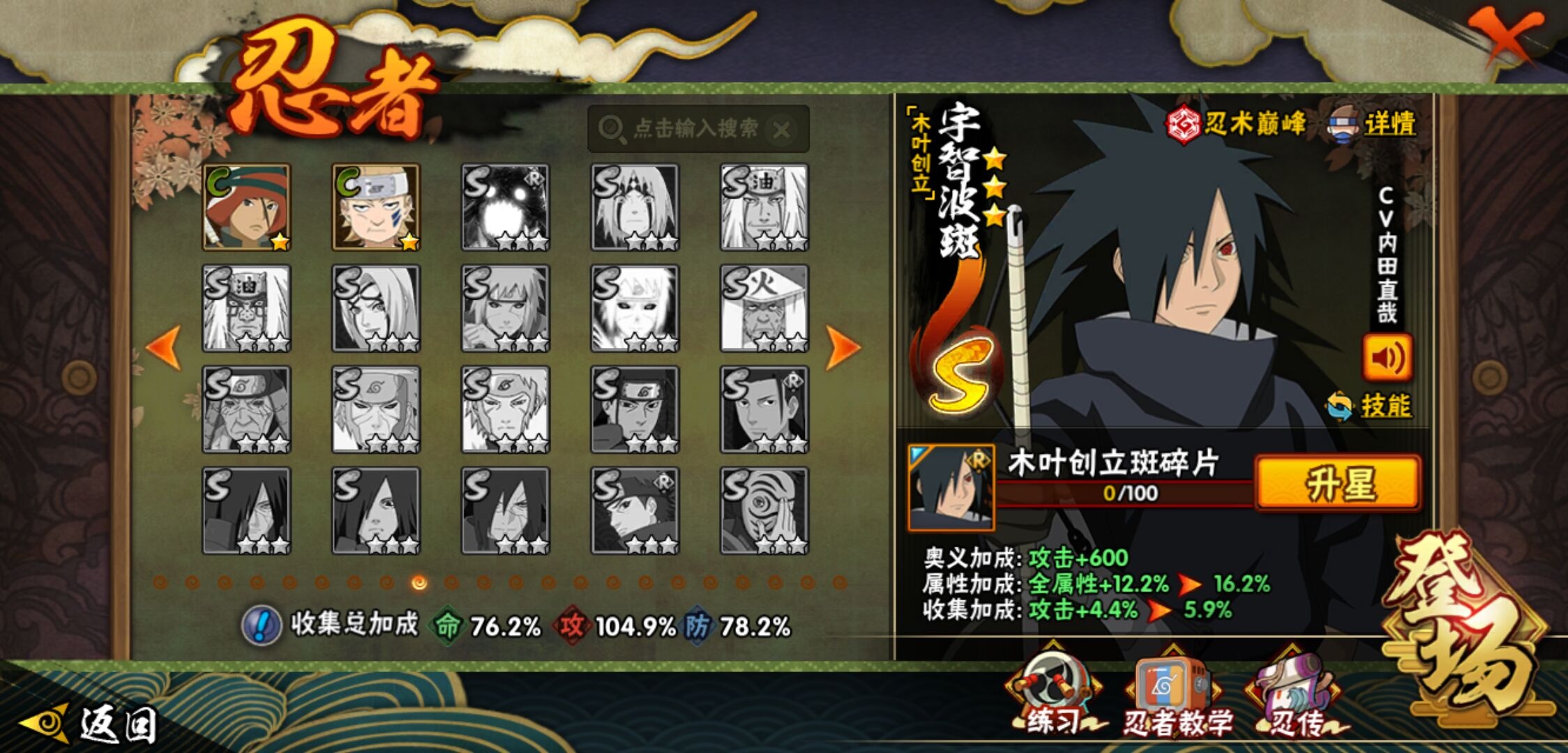 【火影忍者】【lyhy10973】s忍:忍界大战宇智波带土|须佐能乎旗木卡卡西|天道佩恩|传说中的三忍自来也|漩涡鸣人宇智波佐助|秽土转生千手柱间|木叶创立宇智波斑|秽土转生宇智波鼬|永恒万花筒宇智波佐助|舞之豪杰自来也|大蛇丸(普通)|纲手(普通)|波风水门|须佐能乎宇智波鼬|死门迈特凯|九喇嘛连结漩涡鸣人__a忍:青春爆炸迈特凯|仙人模式巳月|幻之真容旗木卡卡西|忍界大战日向宁次|四代目土影黑土|青年长门|秽土转生迪达拉|青年波风水门|青年艾|近松十人卫千代|半蛇斗篷药师兜|须佐能乎宇智波佐助|九尾查克拉漩涡鸣人|暴怒宇智波带土|晓大蛇丸|忍界大战秋道丁次|万花筒写轮眼宇智波佐助|五代目水影照美冥|五代目雷影达鲁伊|死司凭血飞段|疾风传我爱罗 3星|飞段(普通) 3星|仙人模式漩涡鸣人|迈特凯(普通) 5星|干柿鬼鲛(普通) 5星|秽土转生桃地再不斩|蝎(普通) 3星|绯流琥蝎|猿飞阿斯玛(普通) 5星|桃式显现漩涡博人|最终章日向雏田|六代目水影长十郎|不缘|宇智波泉奈|初始形态机械鸣人|侠隐江湖大野木__通灵兽:忍犬(普通)|蓝蛇|蛤蟆吉|忍龟|镰鼬|猿魔|山椒鱼|蜃|砂之守鹤|蛤蟆仙人|鲛鲨|蛤蟆健|乌鸦(普通)|蛤蟆龙1,战斗力:754w;vip:v7级