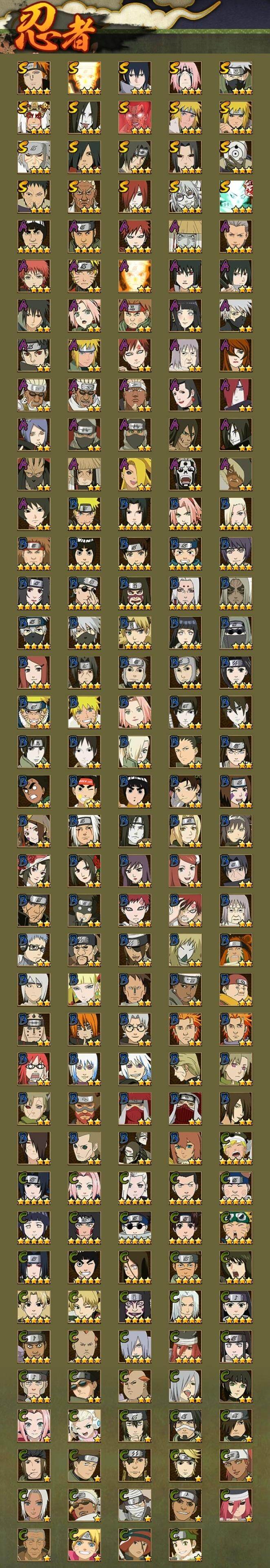 v10/战力954w/s忍20/a忍36 3星宇智波佐助「永恒万花筒」3星宇智波带土「忍界大战」3星宇智波斑「白面具」3星波风水门3星漩涡鸣人「九喇嘛连结」3星迈特凯「死门」3星千手扉间「秽土转生」3星宇智波鼬「秽土转生」3星宇智波鼬「须佐能乎」3星波风水门「秽土转生」3星宇智波斑3星药师兜「仙人模式」3星长门「秽土转生」4星佩恩「天道」3星艾「四代目雷影」3星春野樱「忍界大战」3星自来也「舞之豪杰」3星大蛇丸3星旗木卡卡西「须佐能乎」3星大筒木舍人「最终章」4星我爱罗「疾风传」3星蝎2星角都5星迈特凯4星猿飞阿斯玛4星干柿鬼鲛2星宇智波止水2星小南2星旗木卡卡西「万花筒写轮眼」2星角都「地怨虞」2星漩涡鸣人「仙人模式」4星飞段2星飞段「死司凭血」2星不缘2星宇智波鼬2星长门「青年」2星艾「青年」2星波风水门「青年」2星奇拉比2星宇智波佐助「万花筒写轮眼」2星迪达拉「秽土转生」2星漩涡鸣人「九尾查克拉」2星宇智波佐助「须佐能乎」2星奇拉比「忍界大战」2星大蛇丸「晓」2星照美冥「五代目水影」2星春野樱「百豪」2星秋道丁次「忍界大战」2星千代「近松十人卫」2星我爱罗「忍界大战」2星日向雏田「最终章」2星宇智波泉奈2星蝎「绯流琥」2星角都「秽土转生」
