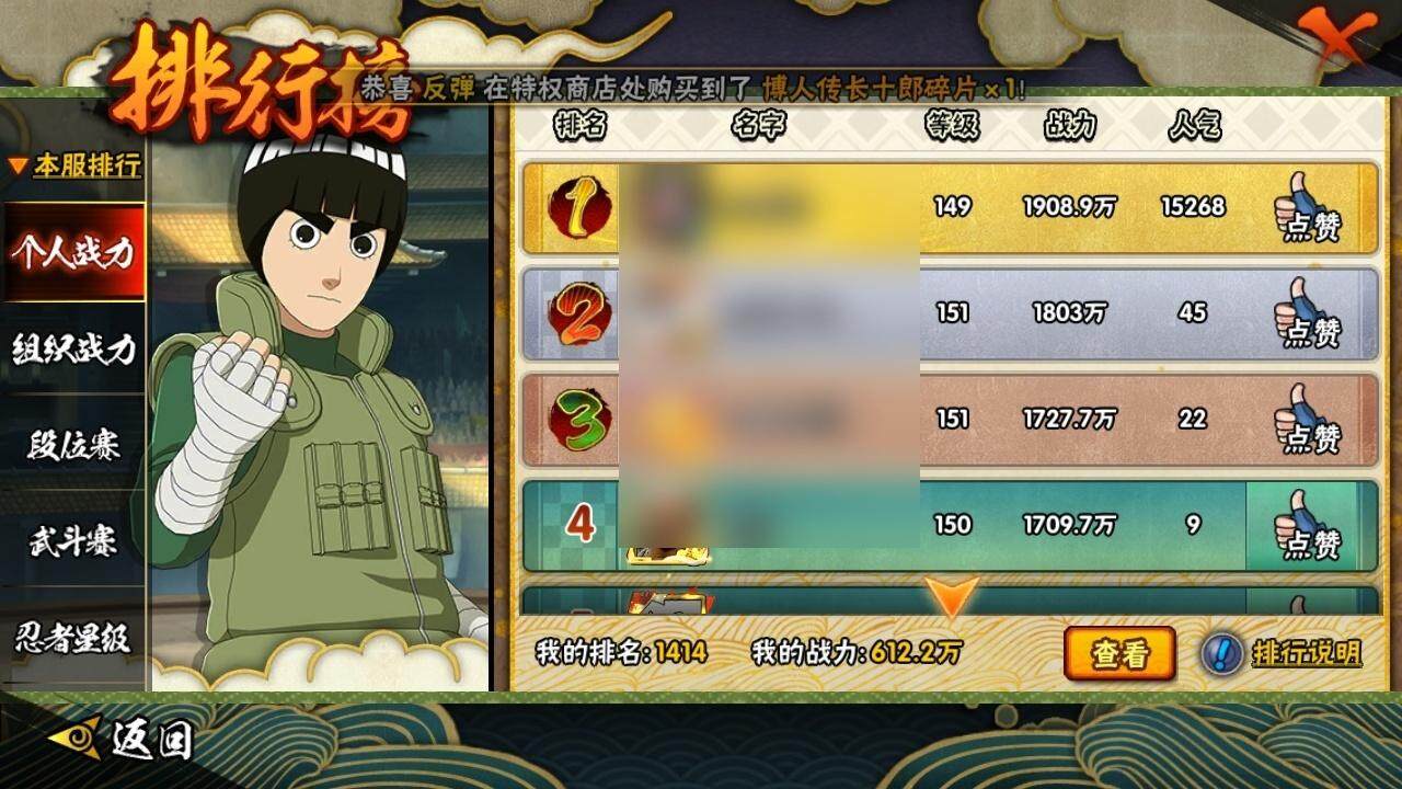 v9/战力612w/s忍12/a忍23 3星千手柱间「木叶创立」3星宇智波佐助「永恒万花筒」3星宇智波斑「秽土转生·解」3星神秘面具男「红夜之刃」3星宇智波带土「忍界大战」3星宇智波斑「白面具」3星波风水门3星宇智波鼬「须佐能乎」3星长门「秽土转生」3星佩恩「天道」3星自来也「舞之豪杰」3星旗木卡卡西「须佐能乎」3星我爱罗「疾风传」2星迪达拉2星蝎5星迈特凯5星猿飞阿斯玛4星干柿鬼鲛2星飞段「死司凭血」2星日向宁次「忍界大战」2星长十郎「六代目水影」2星宇智波鼬2星长门「青年」2星波风水门「青年」2星宇智波佐助「万花筒写轮眼」2星宇智波佐助「须佐能乎」2星秋道丁次「忍界大战」2星千代「近松十人卫」2星漩涡博人「桃式显现」2星日向雏田「最终章」2星李洛克「忍界大战」2星宇智波泉奈2星蝎「绯流琥」2星角都「秽土转生」2星神农「羁绊」
