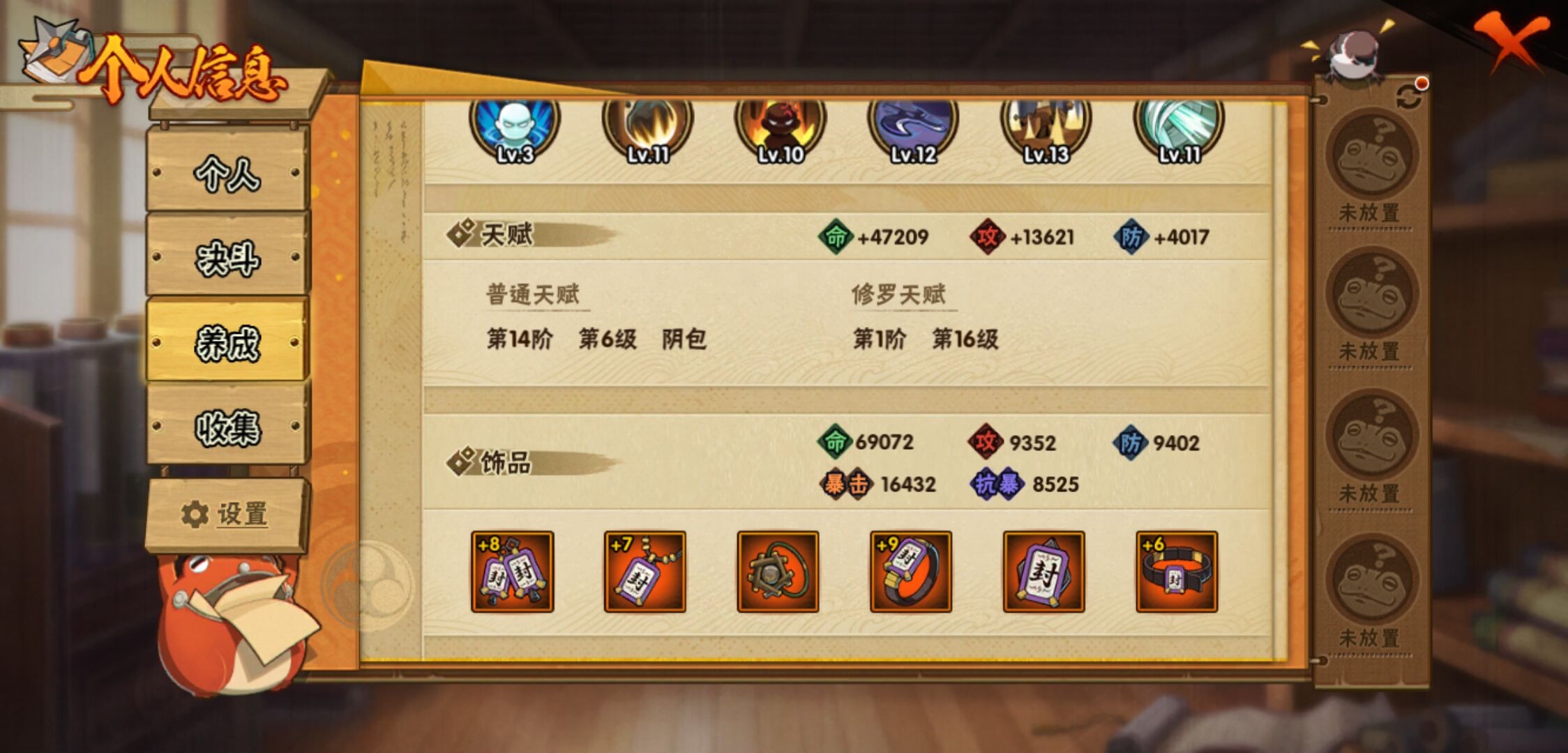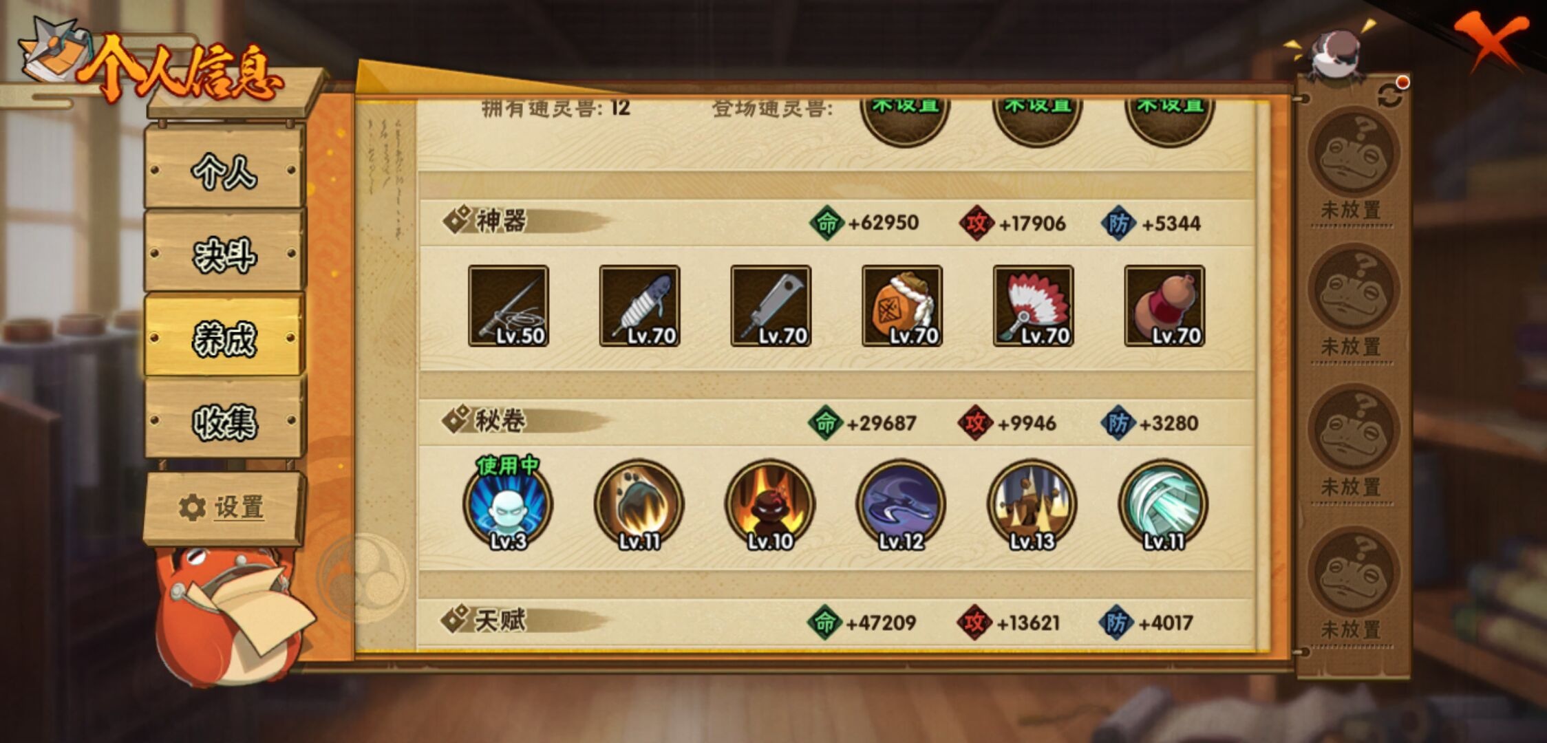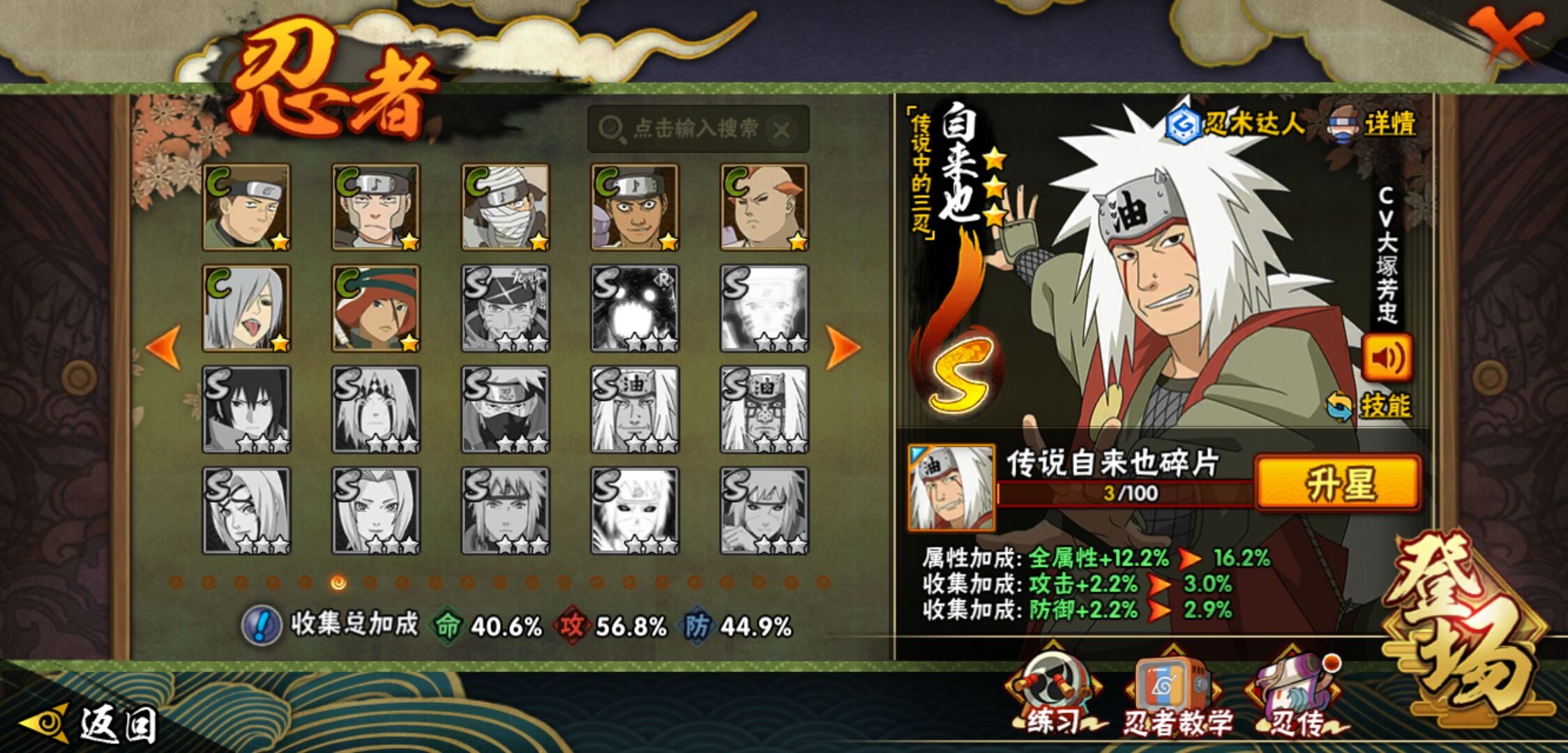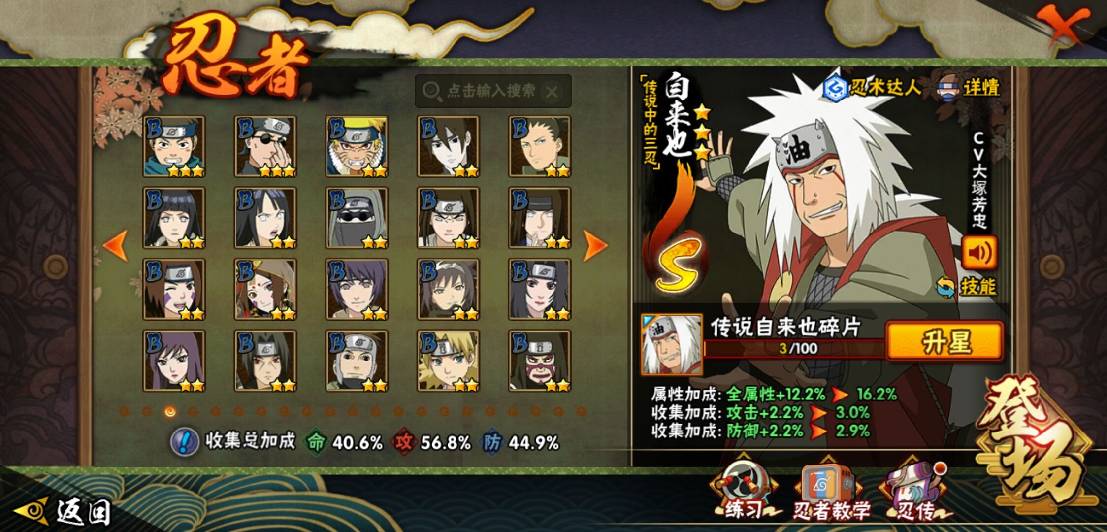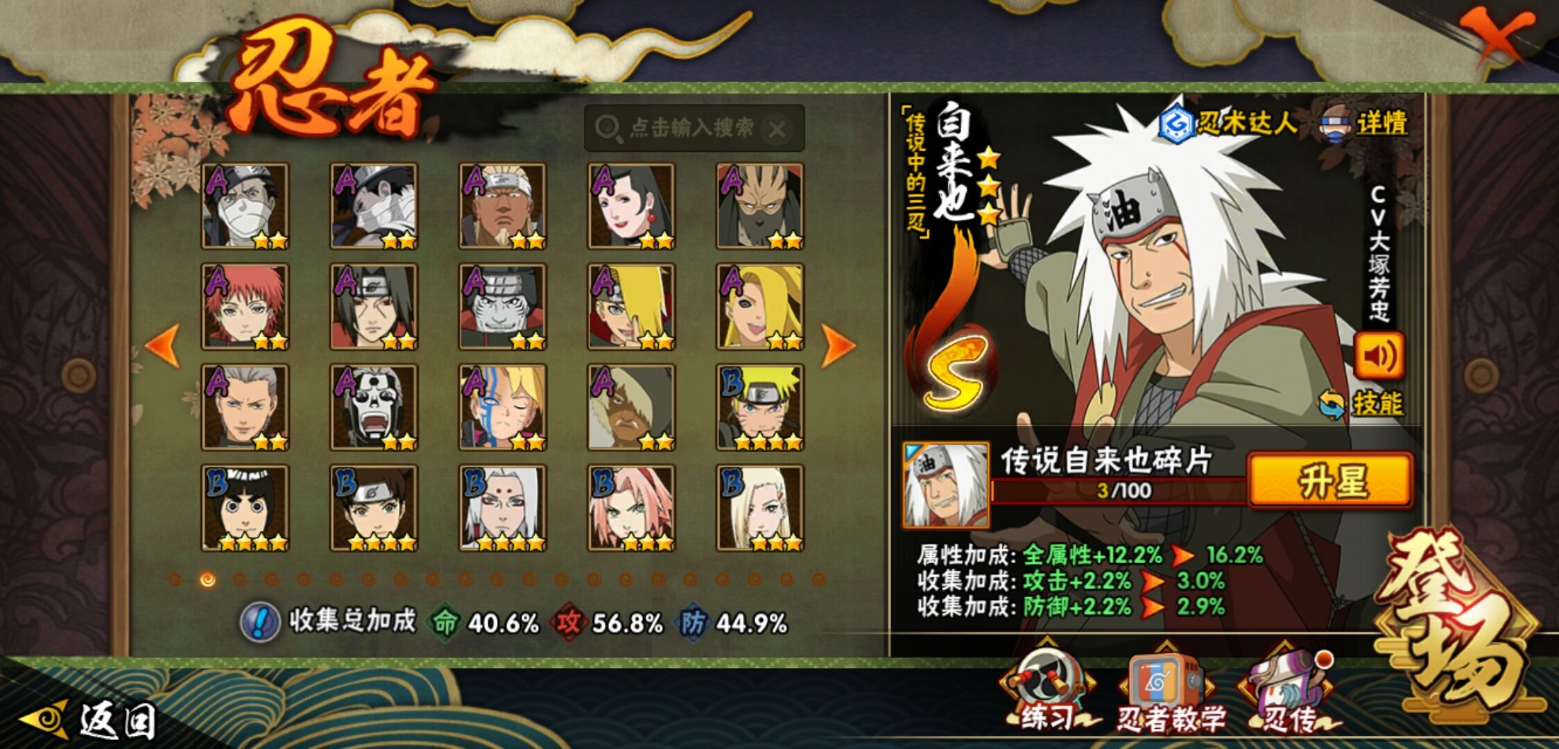 【火影忍者】【lyhy11007】战斗力:362w;段位:见习1阶;本服排名:2933;vip:v0级;s忍:8个;a忍:26个;通灵兽:12个,s忍:忍界大战宇智波带土|天道佩恩|传说中的三忍自来也|忍界大战艾|舞之豪杰自来也|大蛇丸(普通)|须佐能乎宇智波鼬|死门迈特凯__a忍:忍界大战李洛克|秽土转生迪达拉|青年波风水门|青年艾|近松十人卫千代|须佐能乎宇智波佐助|忍界大战我爱罗|万花筒写轮眼宇智波佐助|五代目水影照美冥|五代目雷影达鲁伊|死司凭血飞段|疾风传我爱罗|迪达拉(普通)|飞段(普通)|仙人模式漩涡鸣人|迈特凯(普通)|宇智波鼬(普通)|干柿鬼鲛(普通)|桃地再不斩|秽土转生桃地再不斩|绯流琥蝎|蝎(普通)|猿飞阿斯玛(普通)|桃式显现漩涡博人|不缘|宇智波泉奈__通灵兽:忍犬(普通)|蓝蛇|蛤蟆吉|忍龟|镰鼬|猿魔|山椒鱼|蜃|蛤蟆仙人|鲛鲨|蛤蟆健|乌鸦(普通)