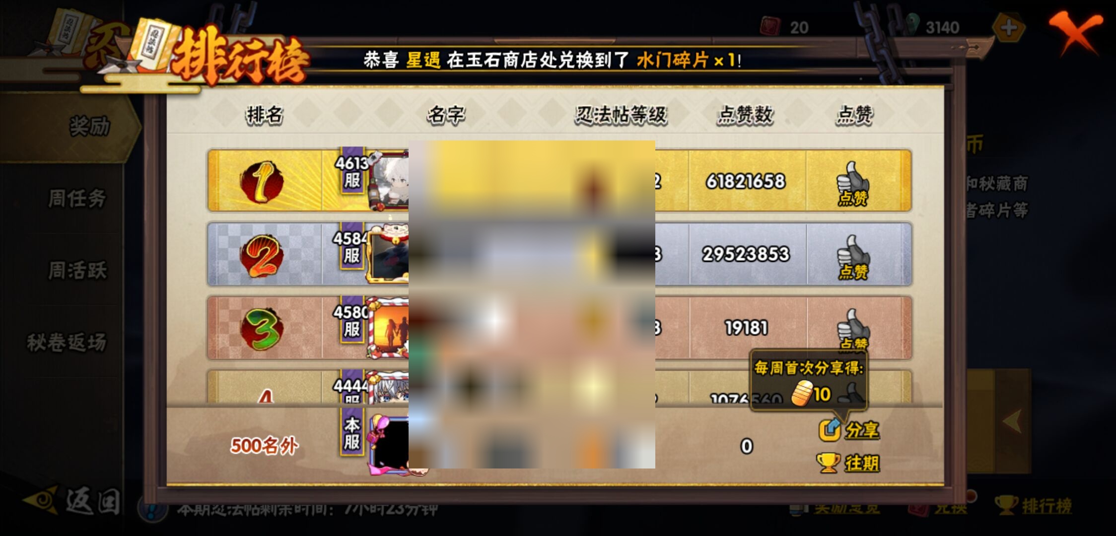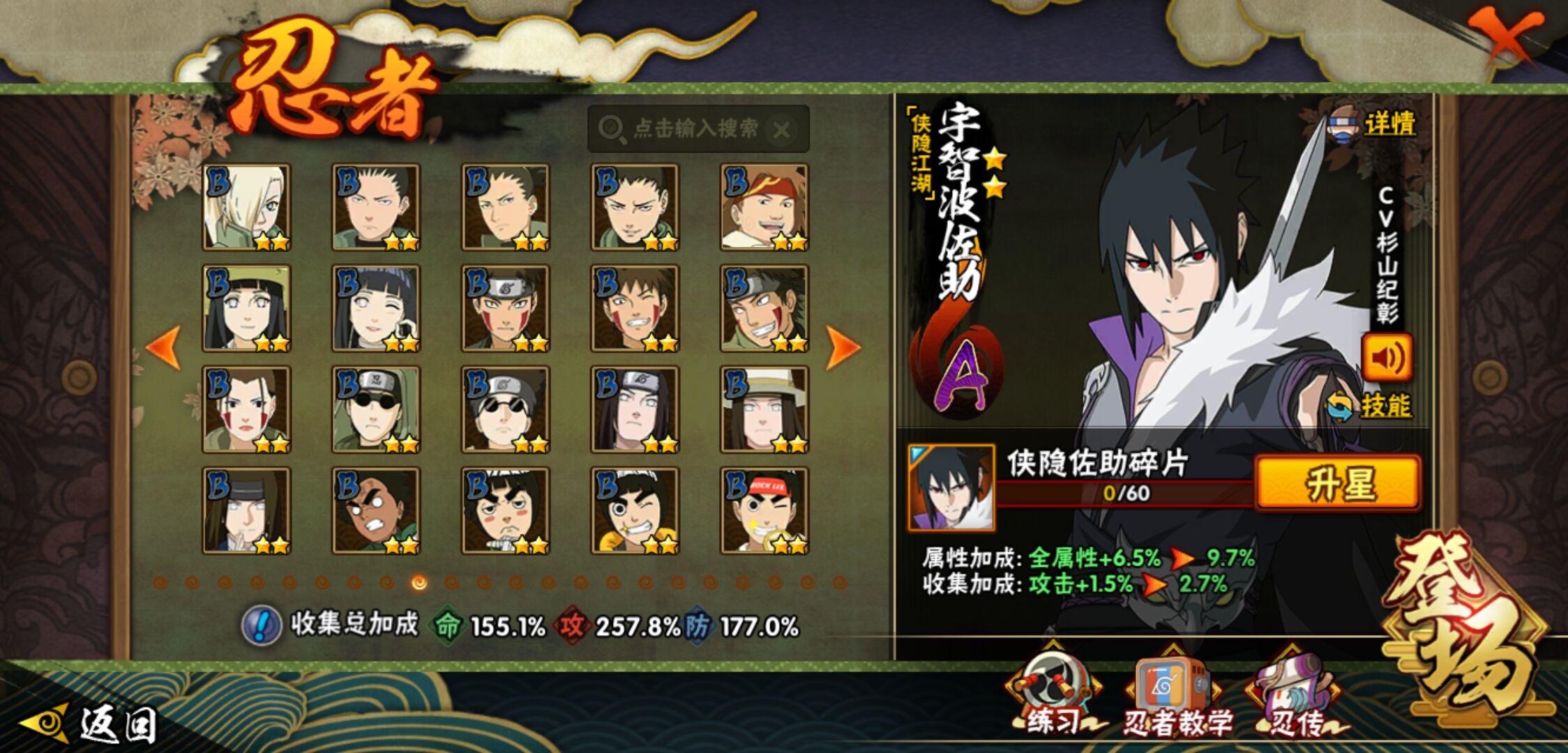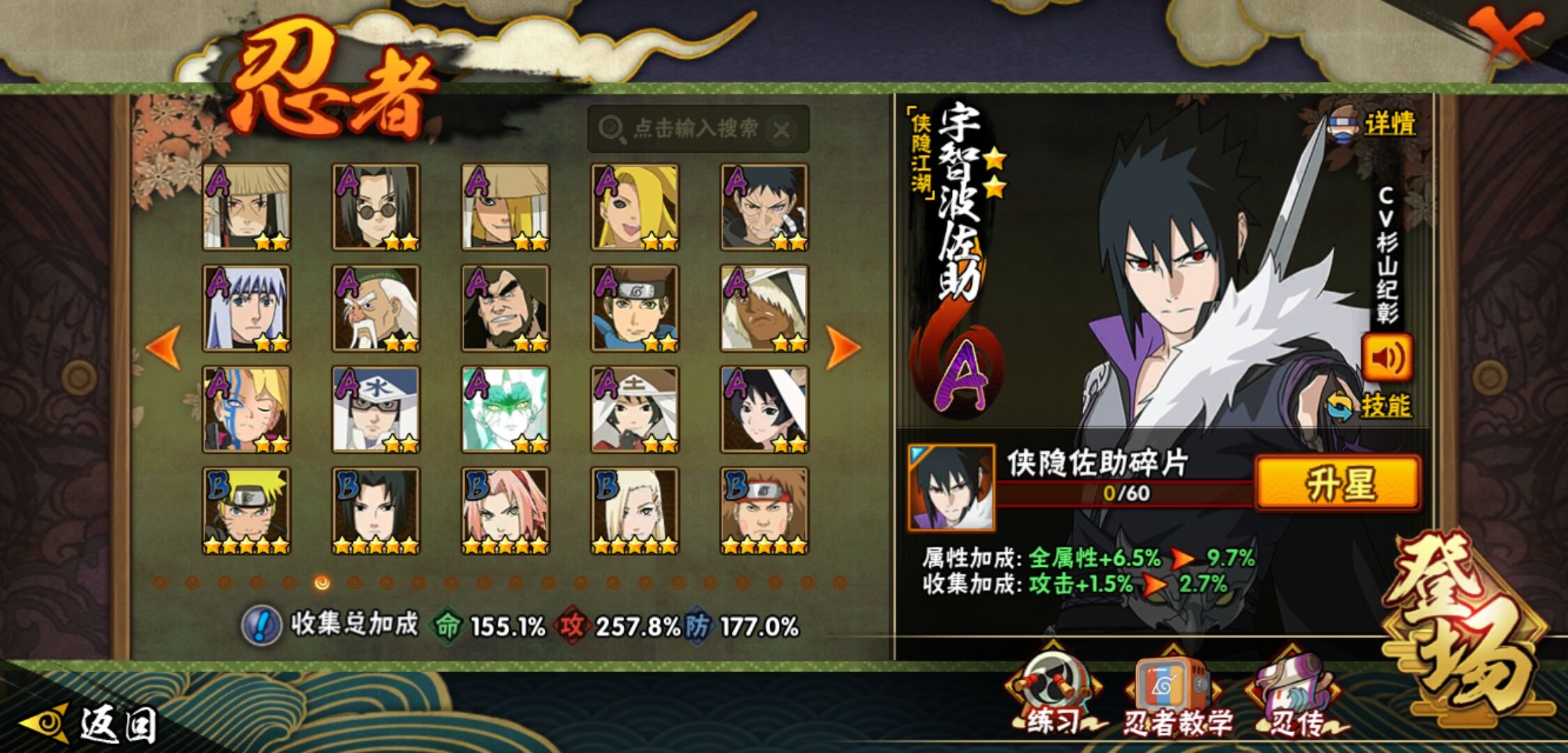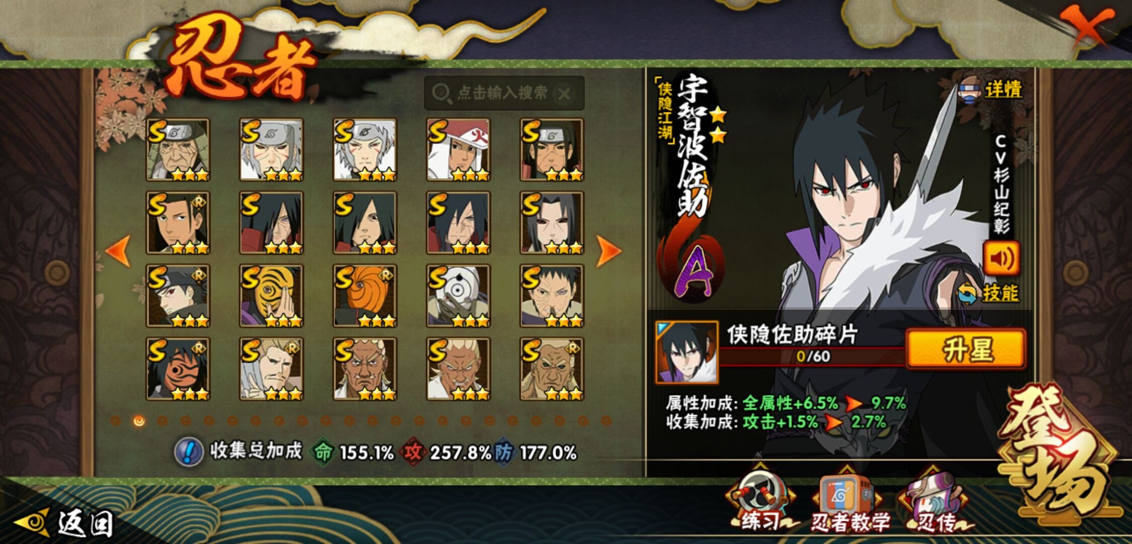 【火影忍者】【lyhy11016】战斗力:2301w;段位:暗部1阶;本服排名:91;vip:v13级;s忍:45个;a忍:70个;通灵兽:23个,s忍:秽土转生解宇智波斑|白面具宇智波斑|忍界大战宇智波带土|须佐能乎旗木卡卡西|秽土转生千手扉间|九喇嘛连结波风水门|五影会谈宇智波斑|天道佩恩 4星|传说中的三忍自来也|漩涡鸣人宇智波佐助|须佐能乎宇智波止水|秽土转生千手柱间|秽土转生宇智波鼬|永恒万花筒宇智波佐助|最终章大筒木舍人|仙人模式自来也|木叶创立千手柱间|忍界大战艾|舞之豪杰自来也|大蛇丸(普通) 4星|纲手(普通) 4星|百豪纲手|波风水门|秽土转生波风水门|千手扉间(普通)|千手柱间(普通)|秽土转生宇智波斑|宇智波斑(普通)|须佐能乎宇智波鼬 4星|神秘面具男(普通)|红夜之刃神秘面具男|秽土转生长门|二代目土影无|二代目水影鬼灯幻月|三代目雷影艾|四代目雷影艾|仙人模式药师兜|死门迈特凯|忍界大战春野樱|九喇嘛连结漩涡鸣人|大筒木桃式|猿飞日斩(普通) 5星|秽土转生猿飞日斩|自来也(普通)|暴怒第六尾漩涡鸣人__a忍:青春爆炸迈特凯|漂泊浪客宇智波带土|妖怪奇谭纲手|仙人模式巳月|侠隐江湖宇智波佐助|幻之真容旗木卡卡西|忍界大战李洛克 3星|秽土转生角都|忍界大战日向宁次|四代目土影黑土|木叶上忍猿飞木叶丸|青年长门|忍者之路神秘面具男|秽土转生迪达拉|志村团藏|宇智波止水(普通)|不风|忍界大战奇拉比|青年波风水门 3星|青年艾|加藤断|近松十人卫千代|晓创生角都|半蛇斗篷药师兜 3星|须佐能乎宇智波佐助 3星|九尾查克拉漩涡鸣人|晓大蛇丸|地陆|火影继承人猿飞日斩|百豪春野樱|忍界大战秋道丁次|忍界大战我爱罗|忍界大战勘九郎|秽土转生猿飞阿斯玛|新春限定波风水门|疾风传咒印宇智波佐助|新春限定宇智波鼬|奇拉比(普通)|万花筒写轮眼宇智波佐助 3星|五代目水影照美冥 3星|五代目雷影达鲁伊|死司凭血飞段 4星|角都(普通)|地怨虞角都|疾风传我爱罗 5星|迪达拉(普通)|百机操演蝎|飞段(普通) 4星|小南(普通)|仙人模式漩涡鸣人|万花筒写轮眼旗木卡卡西|迈特凯(普通) 5星|宇智波鼬(普通)|干柿鬼鲛(普通) 5星|桃地再不斩|秽土转生桃地再不斩|蝎(普通) 5星|绯流琥蝎|猿飞阿斯玛(普通) 5星|桃式显现漩涡博人|最终章日向雏田|六代目水影长十郎|不缘|不动|宇智波泉奈|羁绊神农|夏日限定黑土|忍界大战土台 3星|初始形态机械鸣人|侠隐江湖大野木__通灵兽:忍犬(普通)|蓝蛇|蛤蟆吉|忍龟|镰鼬|猿魔|山椒鱼|蜃|蛞蝓(普通)|蛤蟆仙人|鲛鲨|蛤蟆健|乌鸦(普通)|蛤蟆龙|怒鬼(普通)|熊猫|蛤蟆广|砂之守鹤|梦貘|二尾又旅|鹰|蜘蛛|辛牙3140点券