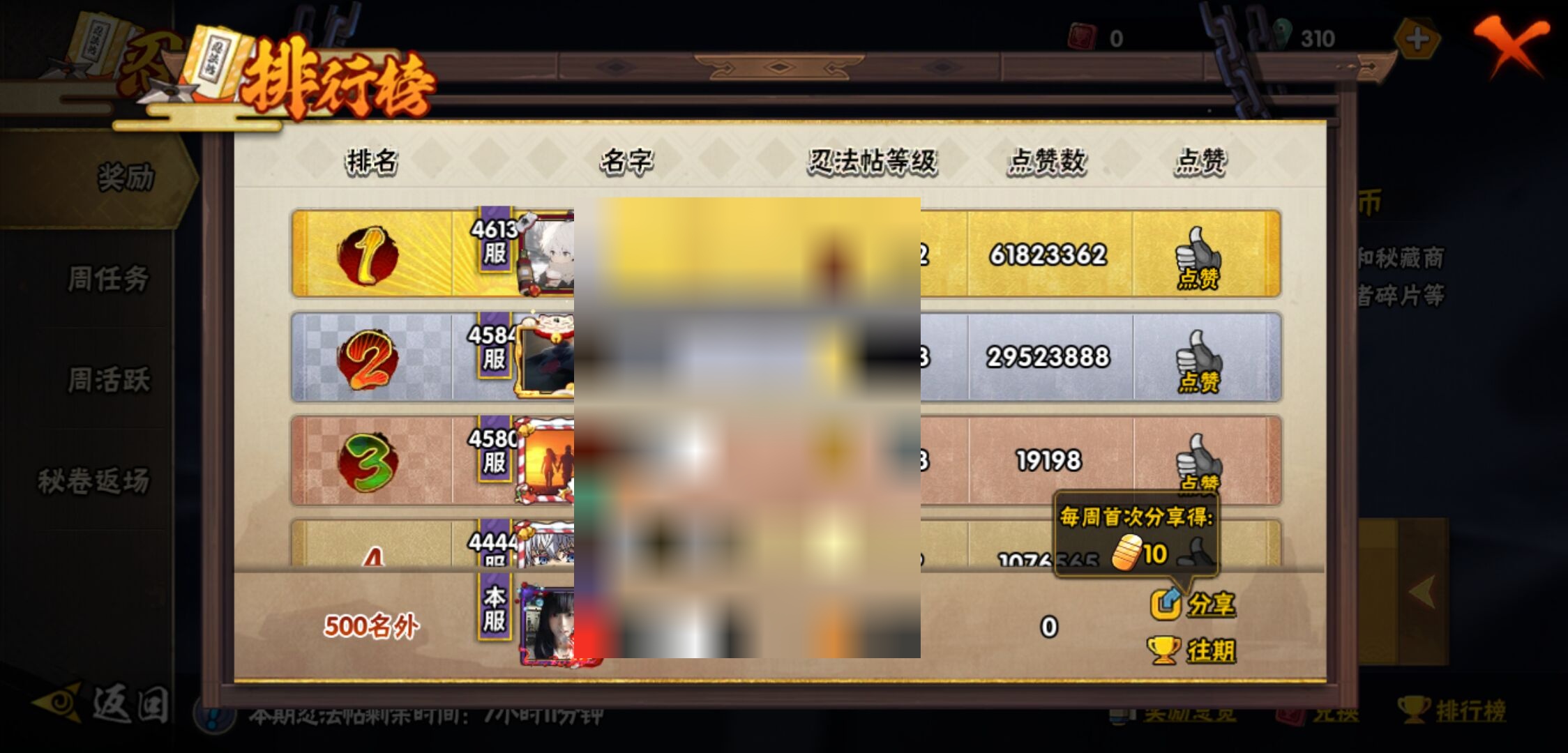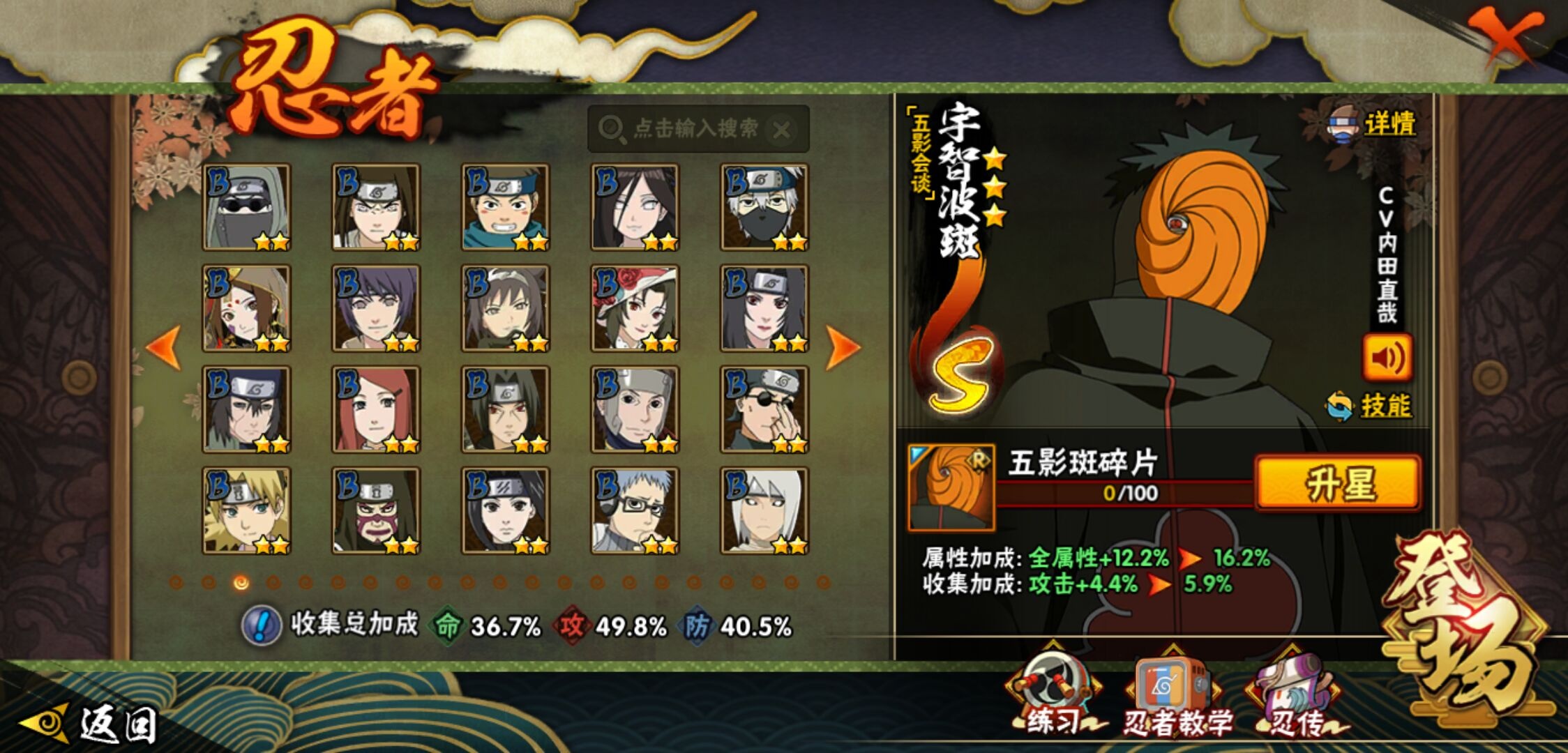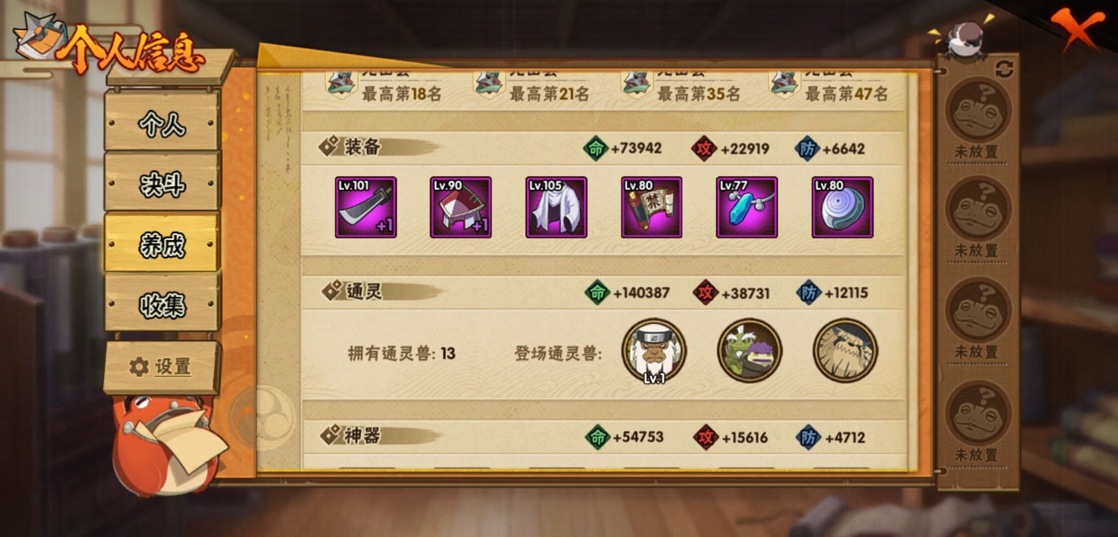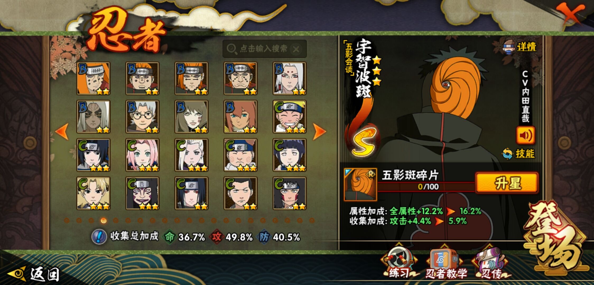 【火影忍者】【lyhy11017】战斗力:276w;段位:上忍3阶;本服排名:3163;vip:v8级;s忍:8个;a忍:23个;通灵兽:13个,s忍:白面具宇智波斑|五影会谈宇智波斑|天道佩恩|漩涡鸣人宇智波佐助|舞之豪杰自来也|千手柱间(普通)|须佐能乎宇智波鼬|秽土转生猿飞日斩__a忍:青春爆炸迈特凯|幻之真容旗木卡卡西|青年长门|新春限定宇智波止水|青年波风水门|须佐能乎宇智波佐助|晓大蛇丸|忍界大战秋道丁次|疾风传咒印宇智波佐助|万花筒写轮眼宇智波佐助|死司凭血飞段|疾风传我爱罗|漂泊浪客小南|迈特凯(普通)|宇智波鼬(普通)|干柿鬼鲛(普通) 3星|蝎(普通)|猿飞阿斯玛(普通)|桃式显现漩涡博人|宇智波泉奈|羁绊神农|初始形态机械鸣人|侠隐江湖大野木__通灵兽:忍犬(普通)|蓝蛇|蛤蟆吉|砂之守鹤|忍龟|镰鼬|猿魔|山椒鱼|蜃|蛤蟆仙人|鲛鲨|蛤蟆健|蛞蝓(普通)
