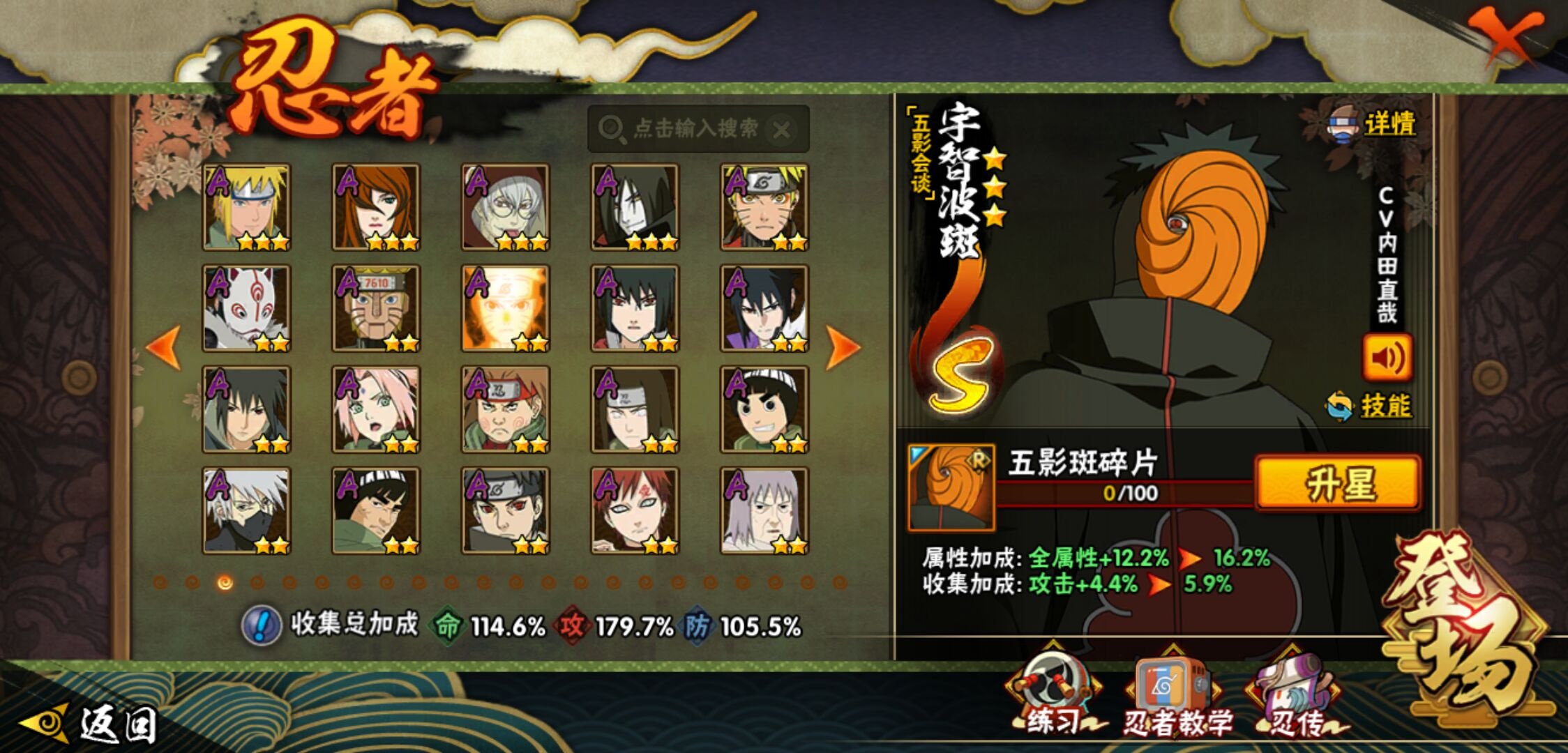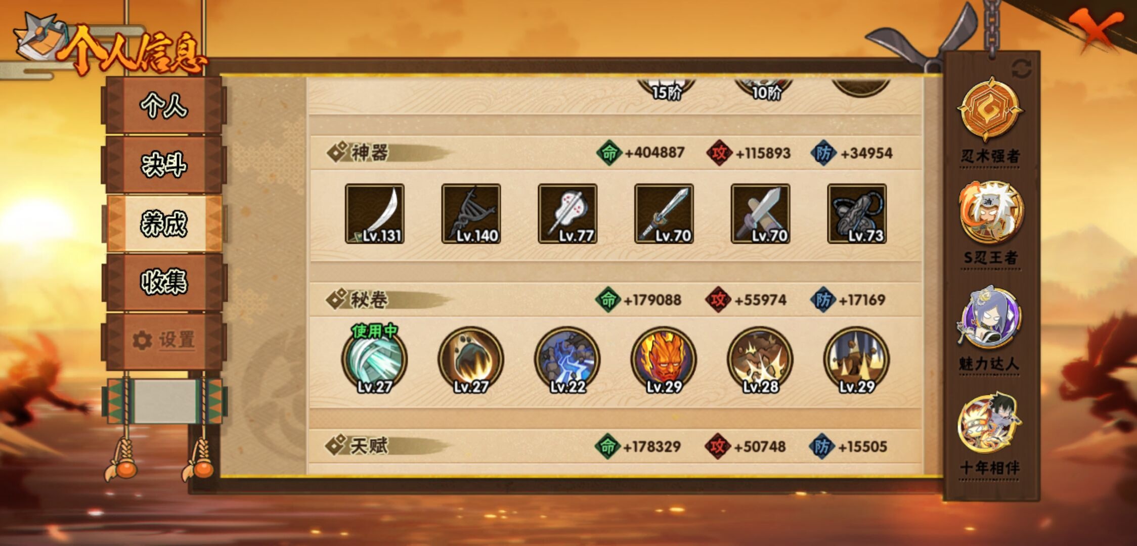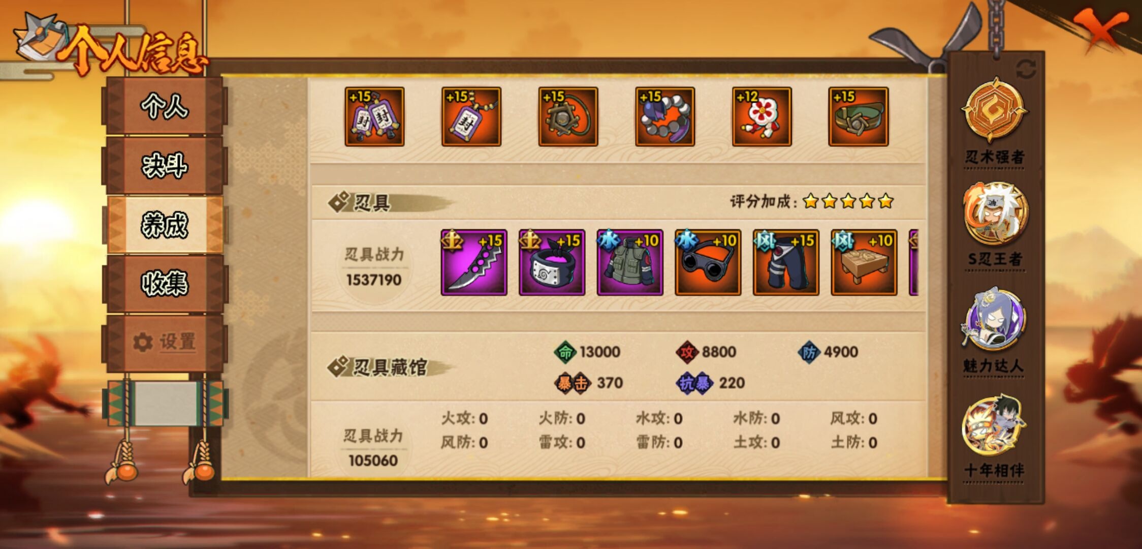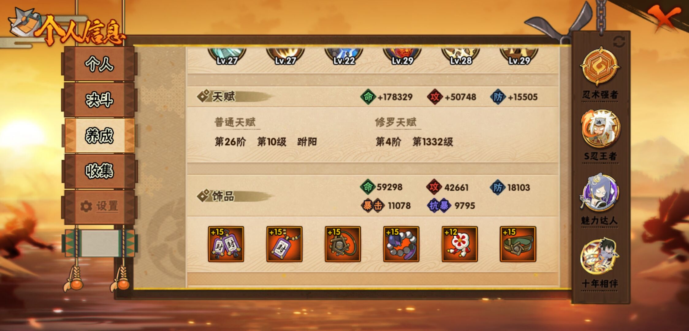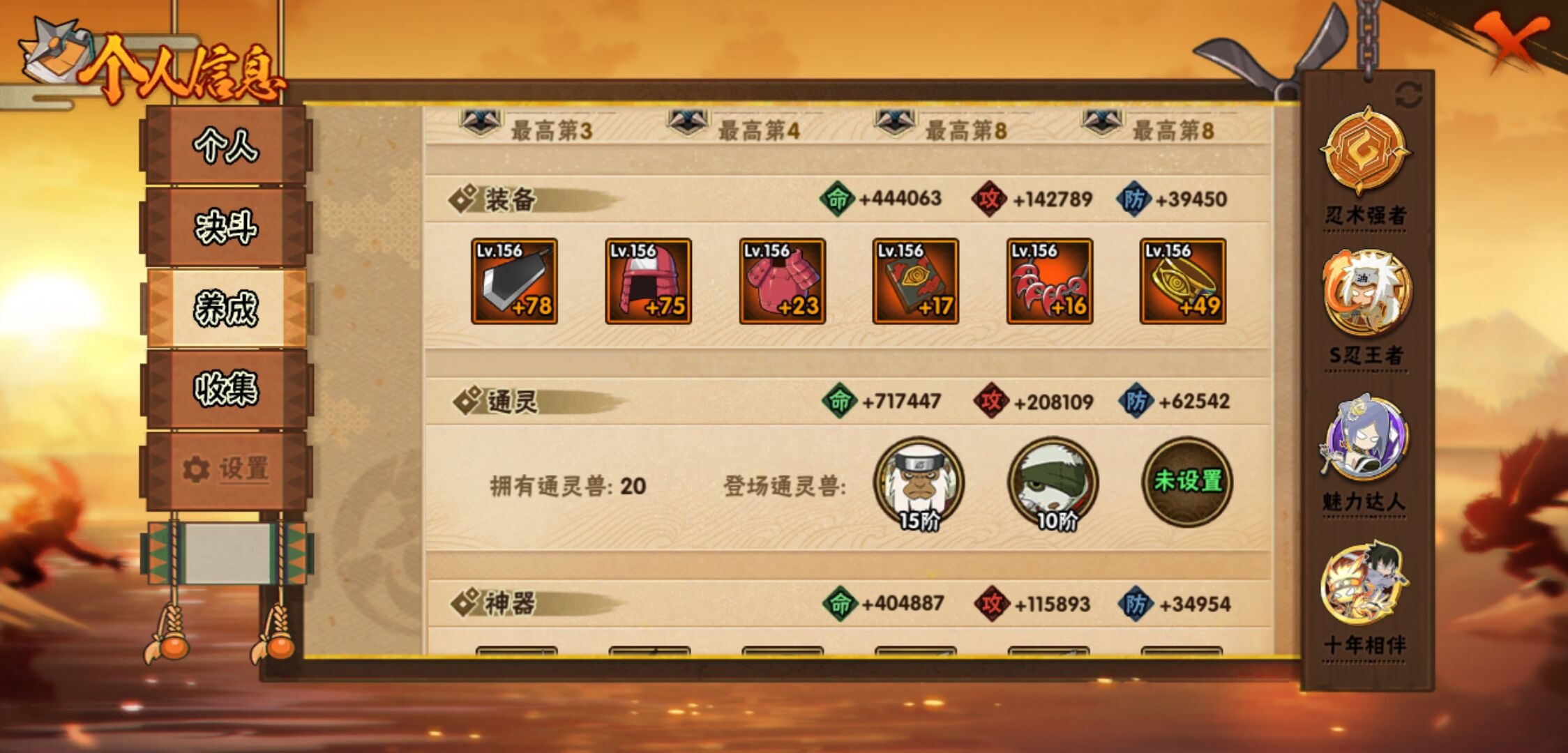 【火影忍者】【lyhy11058】战斗力:1240w;段位:暗部3阶;本服排名:390;vip:v10级;s忍:32个;a忍:47个;通灵兽:18个,s忍:秽土转生解宇智波斑|白面具宇智波斑|忍界大战宇智波带土|须佐能乎旗木卡卡西|秽土转生千手扉间|五影会谈宇智波斑|天道佩恩|漩涡鸣人宇智波佐助|秽土转生千手柱间|秽土转生宇智波鼬|永恒万花筒宇智波佐助|舞之豪杰自来也|大蛇丸(普通) 4星|纲手(普通)|百豪纲手|波风水门 4星|秽土转生波风水门|千手扉间(普通)|千手柱间(普通)|秽土转生宇智波斑|宇智波斑(普通)|须佐能乎宇智波鼬|神秘面具男(普通)|秽土转生长门|四代目雷影艾|仙人模式药师兜|死门迈特凯|忍界大战春野樱|九喇嘛连结漩涡鸣人|猿飞日斩(普通)|秽土转生猿飞日斩|自来也(普通)__a忍:青春爆炸迈特凯|侠隐江湖宇智波佐助|忍界大战李洛克|忍界大战日向宁次|四代目土影黑土|木叶上忍猿飞木叶丸|火之意志继承者卑留呼|青年长门|忍者之路神秘面具男|秽土转生迪达拉|宇智波止水(普通)|忍界大战奇拉比|青年波风水门 3星|青年艾|近松十人卫千代|半蛇斗篷药师兜 3星|须佐能乎宇智波佐助 3星|九尾查克拉漩涡鸣人 3星|晓大蛇丸 3星|百豪春野樱|忍界大战秋道丁次|忍界大战我爱罗|奇拉比(普通)|万花筒写轮眼宇智波佐助|五代目水影照美冥 3星|五代目雷影达鲁伊|绝|黑绝|死司凭血飞段 4星|角都(普通)|地怨虞角都|疾风传我爱罗 5星|迪达拉(普通)|飞段(普通) 5星|小南(普通)|仙人模式漩涡鸣人|万花筒写轮眼旗木卡卡西|迈特凯(普通) 5星|宇智波鼬(普通)|干柿鬼鲛(普通) 5星|蝎(普通) 5星|绯流琥蝎|猿飞阿斯玛(普通) 5星|桃式显现漩涡博人|六代目水影长十郎|宇智波泉奈|初始形态机械鸣人__通灵兽:忍犬(普通)|蓝蛇|蛤蟆吉|忍龟|镰鼬|猿魔|山椒鱼|蜃|蛤蟆仙人|鲛鲨|蛤蟆健|乌鸦(普通)|蛤蟆龙|蛤蟆广|梦貘|鹰|蜘蛛|砂之守鹤