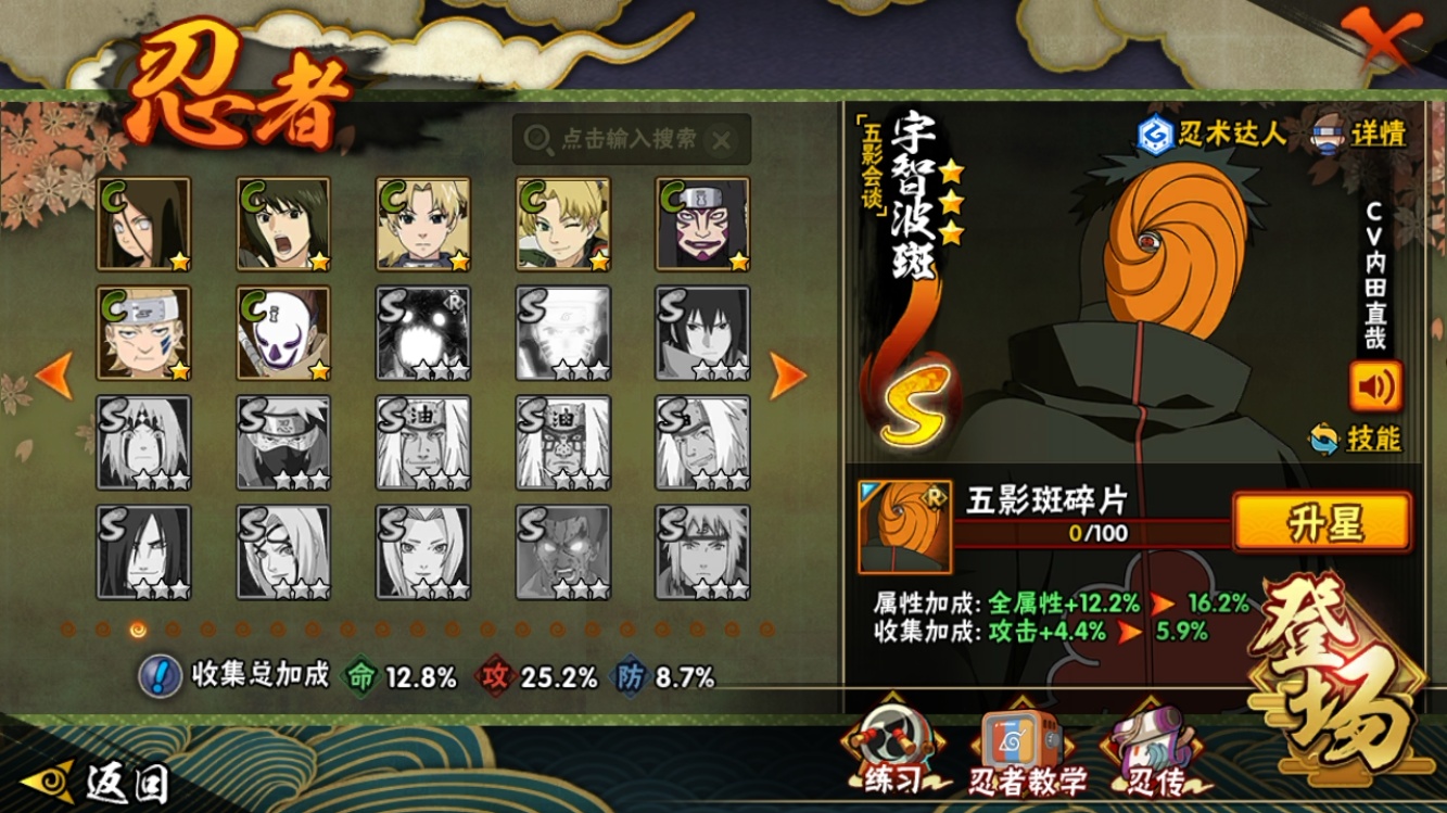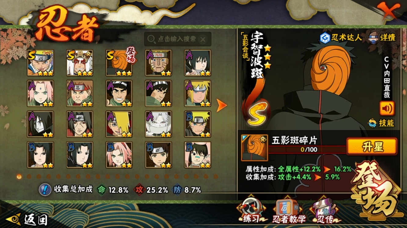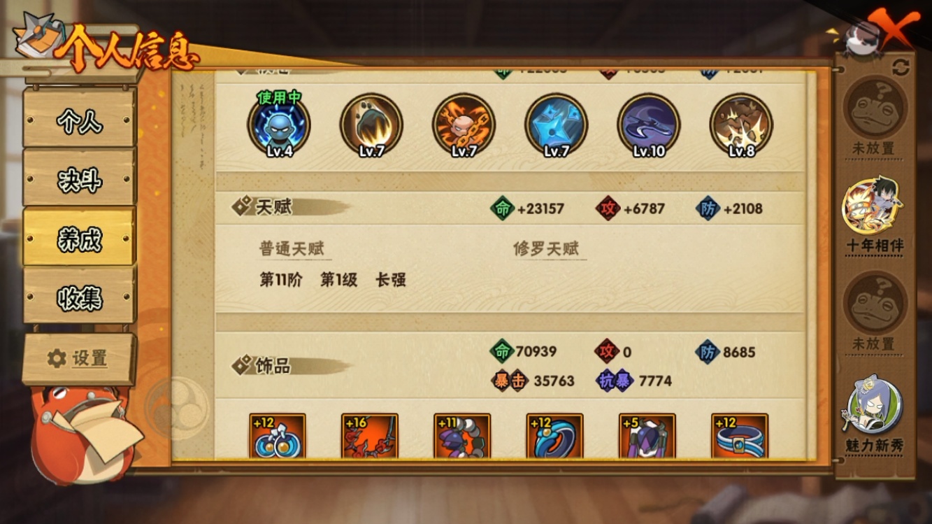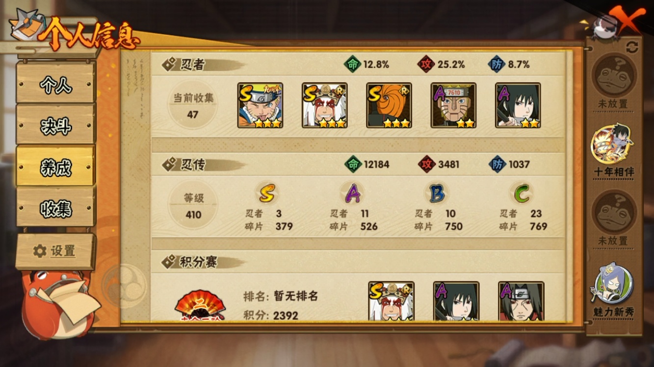 【火影忍者】【lyhy11073】战斗力:195w;段位:上忍1阶;本服排名:1060;vip:v7级;s忍:3个;a忍:11个;通灵兽:12个,s忍:五影会谈宇智波斑|漩涡鸣人宇智波佐助|舞之豪杰自来也__a忍:青春爆炸迈特凯|火之意志继承者卑留呼|青年波风水门|须佐能乎宇智波佐助|晓大蛇丸|百豪春野樱|忍界大战秋道丁次|迪达拉(普通)|迈特凯(普通)|宇智波鼬(普通)|初始形态机械鸣人__通灵兽:忍犬(普通)|蓝蛇|蛤蟆吉|砂之守鹤|忍龟|镰鼬|猿魔|山椒鱼|蜃|蛤蟆仙人|熊猫|鲛鲨