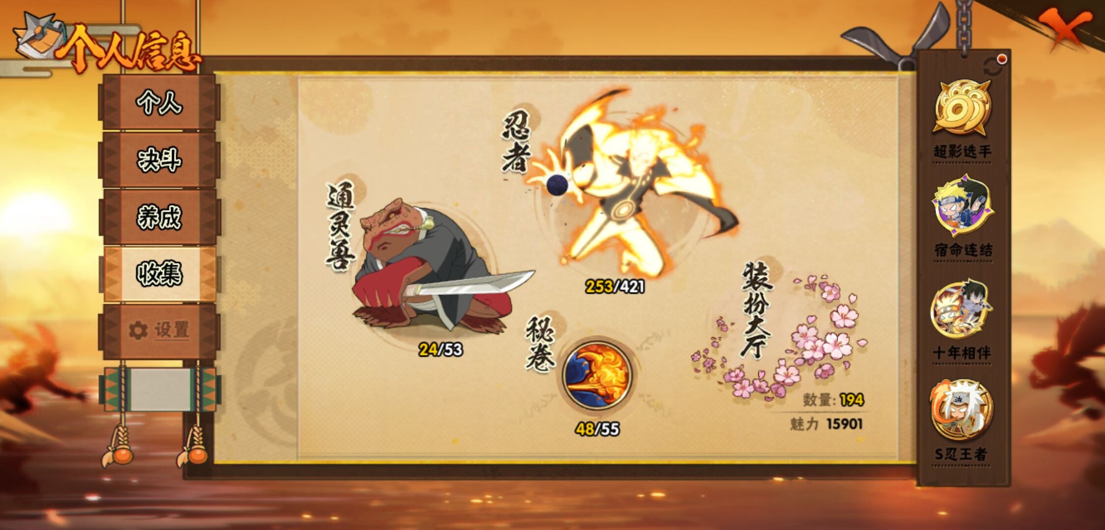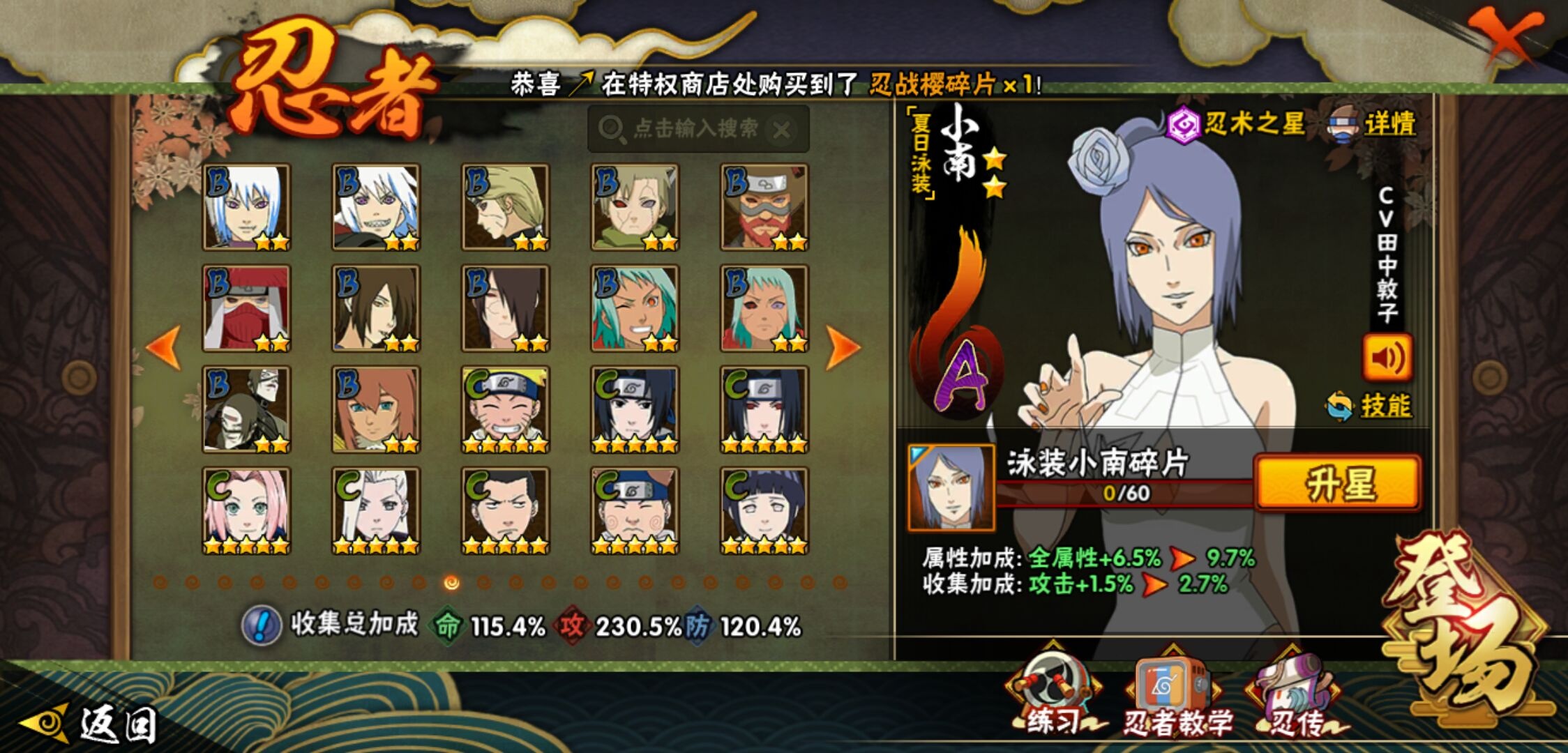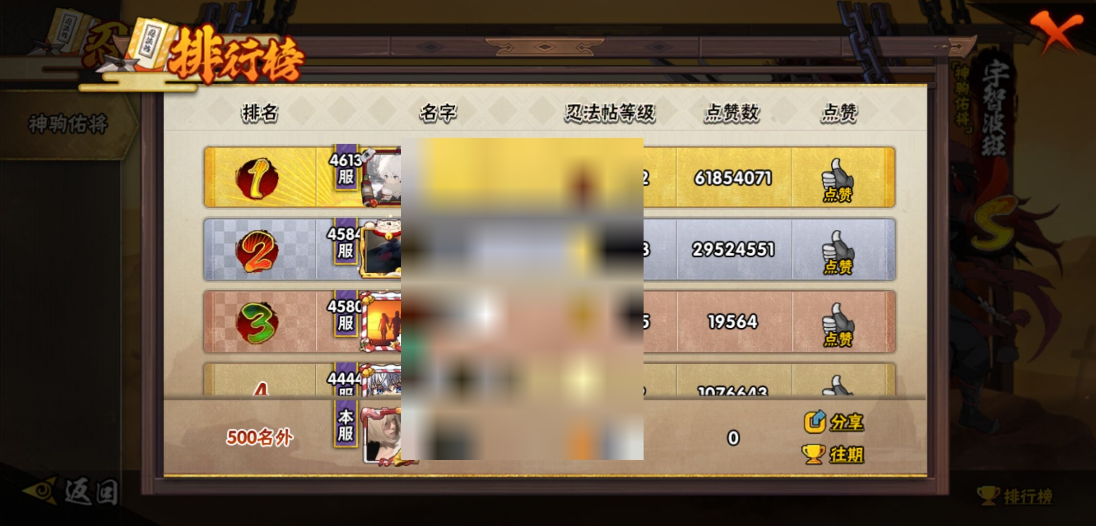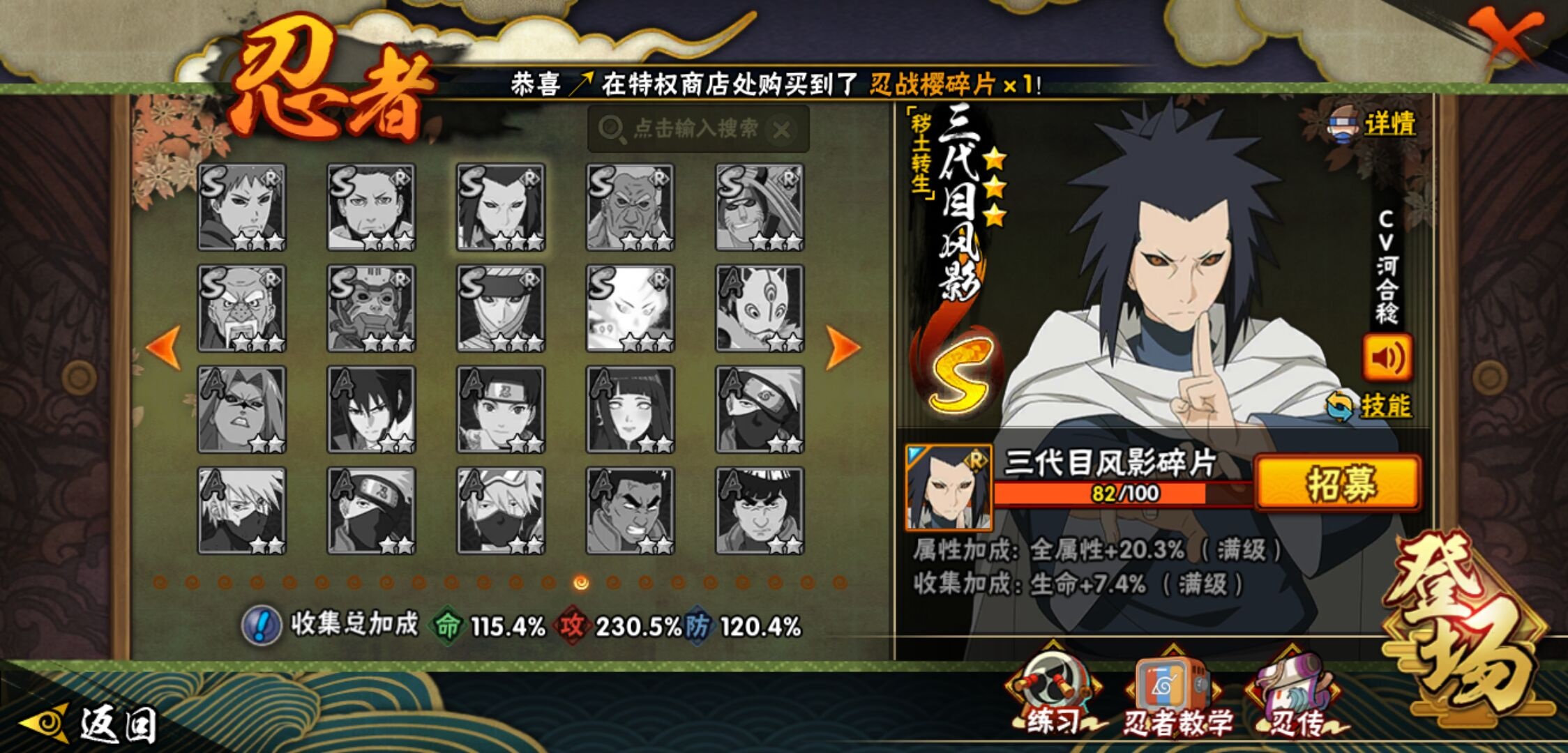 【火影忍者】【lyhy11083】战斗力:1828w;段位:影级1阶;本服排名:57;vip:v12级;s忍:40个;a忍:56个;通灵兽:22个,s忍:秽土转生解宇智波斑|白面具宇智波斑|忍界大战宇智波带土|须佐能乎旗木卡卡西|秽土转生千手扉间|超佩恩天道|九喇嘛连结波风水门|五影会谈宇智波斑|天道佩恩|传说中的三忍自来也|漩涡鸣人宇智波佐助|须佐能乎宇智波止水|秽土转生千手柱间|木叶创立宇智波斑|秽土转生宇智波鼬|永恒万花筒宇智波佐助|木叶创立千手柱间|忍界大战艾|舞之豪杰自来也|大蛇丸(普通)|纲手(普通) 5星|波风水门|秽土转生波风水门|秽土转生宇智波斑|须佐能乎宇智波鼬|神秘面具男(普通)|红夜之刃神秘面具男|秽土转生长门|二代目水影鬼灯幻月|四代目雷影艾|仙人模式药师兜|忍界大战大野木|忍界大战春野樱|九喇嘛连结漩涡鸣人|博人传大筒木金式|大筒木桃式|猿飞日斩(普通) 4星|秽土转生猿飞日斩|自来也(普通)|暴怒第六尾漩涡鸣人__a忍:青春爆炸迈特凯|妖怪奇谭纲手|仙人模式巳月|幻之真容旗木卡卡西|侠隐江湖药师兜|忍界大战李洛克|秽土转生角都|忍界大战日向宁次|四代目土影黑土|木叶上忍猿飞木叶丸|火之意志继承者卑留呼|青年长门|秽土转生迪达拉|宇智波止水(普通)|忍界大战奇拉比|青年波风水门|青年艾|近松十人卫千代|半蛇斗篷药师兜|须佐能乎宇智波佐助|九尾查克拉漩涡鸣人|恶灵之影飞段|暴怒宇智波带土|晓大蛇丸|百豪春野樱|忍界大战秋道丁次|忍界大战我爱罗|新春限定波风水门|夏日泳装小南|新春限定宇智波鼬|奇拉比(普通)|万花筒写轮眼宇智波佐助|五代目水影照美冥|五代目雷影达鲁伊|死司凭血飞段|疾风传我爱罗 4星|迪达拉(普通) 3星|飞段(普通) 4星|小南(普通)|漂泊浪客小南|仙人模式漩涡鸣人|迈特凯(普通) 5星|宇智波鼬(普通) 3星|夏日限定宇智波鼬|干柿鬼鲛(普通) 5星|秽土转生桃地再不斩 3星|蝎(普通) 5星|绯流琥蝎|猿飞阿斯玛(普通) 5星|桃式显现漩涡博人|六代目水影长十郎|不动|宇智波泉奈|羁绊神农|忍界大战土台 3星|初始形态机械鸣人__通灵兽:忍犬(普通)|蓝蛇|砂之守鹤|蛤蟆吉|忍龟|镰鼬|猿魔|山椒鱼|熊猫|蜃|蛤蟆仙人|鲛鲨|蛞蝓(普通)|蛤蟆健|乌鸦(普通)|蛤蟆龙|蛤蟆广|梦貘|怒鬼爪|鹰|蜘蛛|乌鸦夏日限定