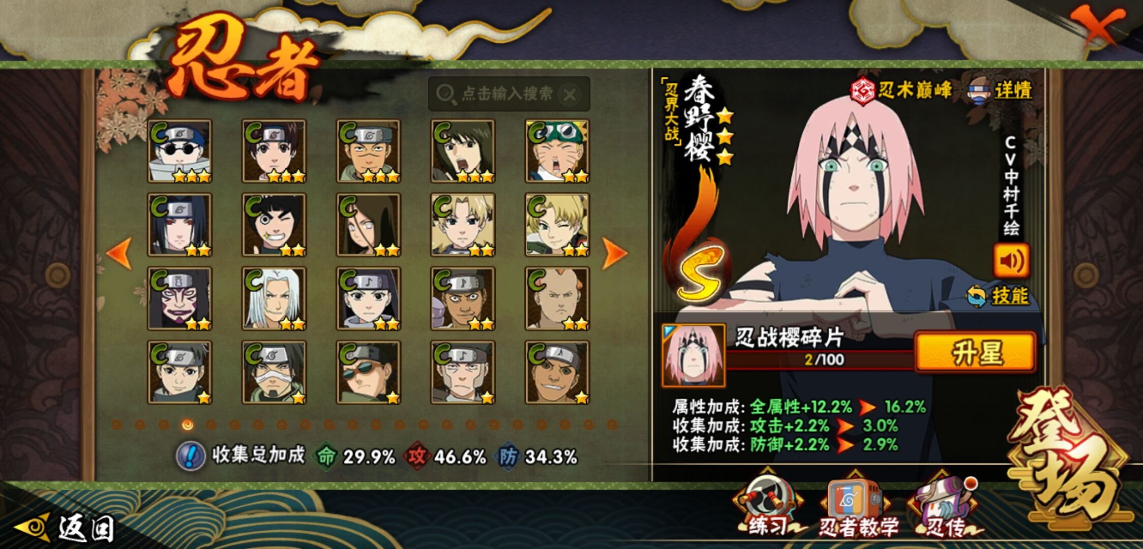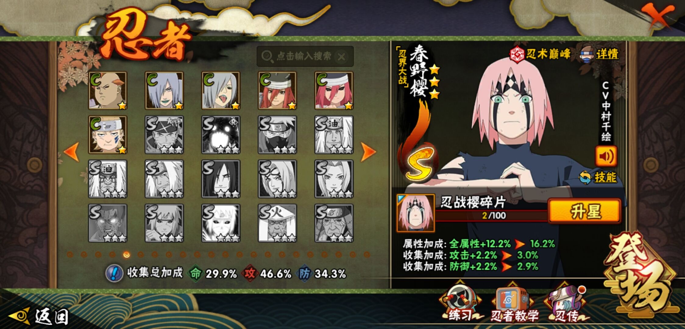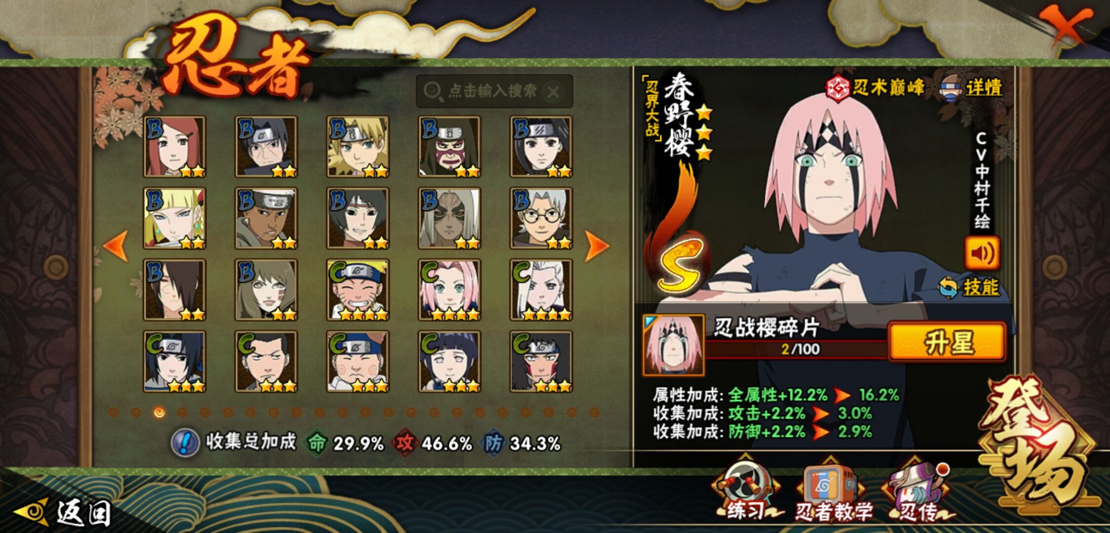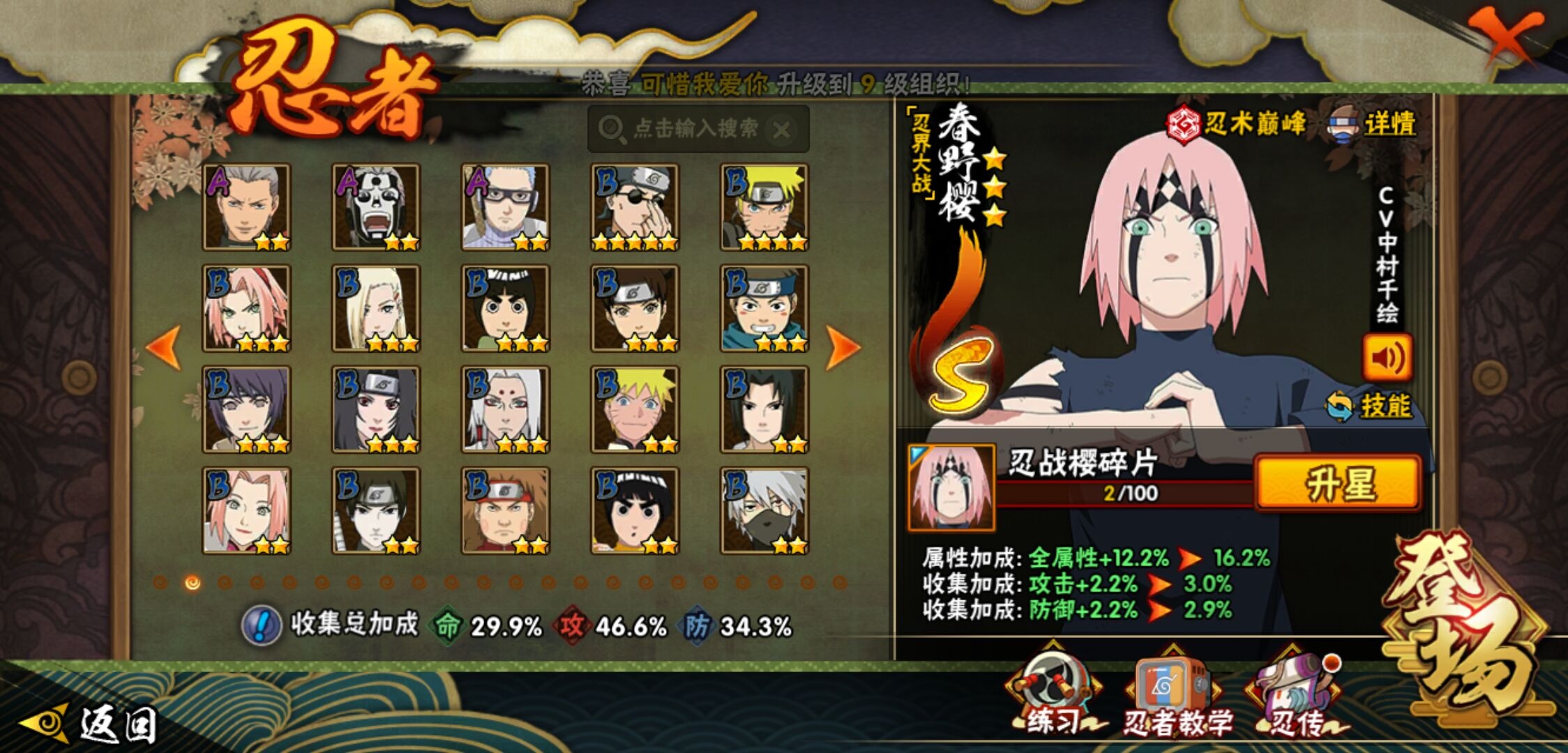 【火影忍者】【lyhy11120】战斗力:387w;段位:见习1阶;本服排名:3217;vip:v5级;s忍:5个;a忍:18个;通灵兽:12个,s忍:永恒万花筒宇智波佐助|舞之豪杰自来也|波风水门|忍界大战春野樱|九喇嘛连结漩涡鸣人__a忍:青年长门|青年波风水门|青年艾|近松十人卫千代|九尾查克拉漩涡鸣人|忍界大战秋道丁次|奇拉比(普通)|死司凭血飞段|疾风传我爱罗 3星|迪达拉(普通)|飞段(普通)|迈特凯(普通)|宇智波鼬(普通)|干柿鬼鲛(普通) 3星|蝎(普通)|猿飞阿斯玛(普通) 3星|六代目水影长十郎|不缘__通灵兽:忍犬(普通)|蓝蛇|蛤蟆吉|砂之守鹤|忍龟|镰鼬|猿魔|山椒鱼|蜃|蛤蟆仙人|鲛鲨|蛤蟆健