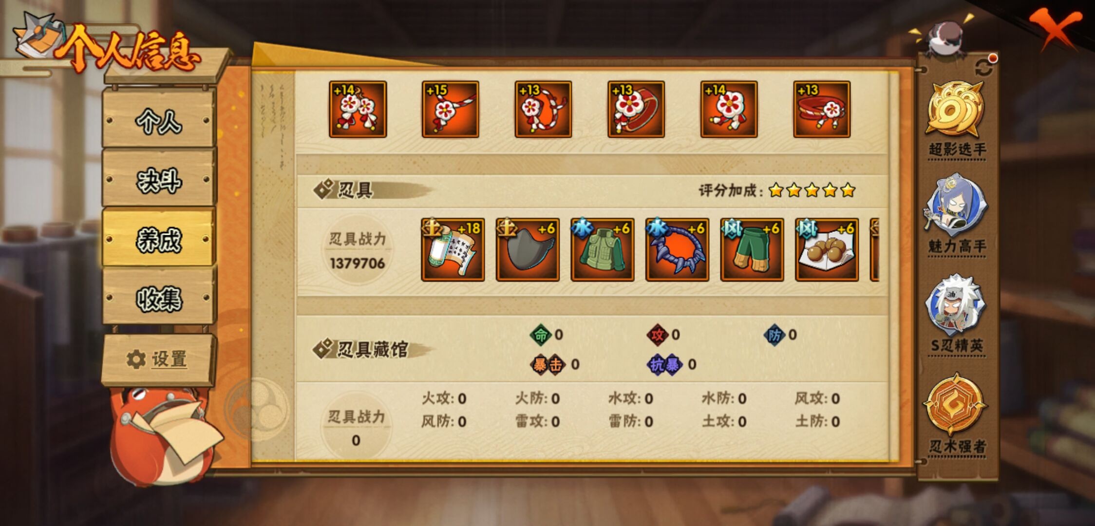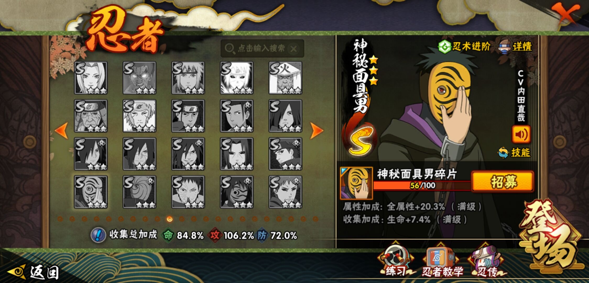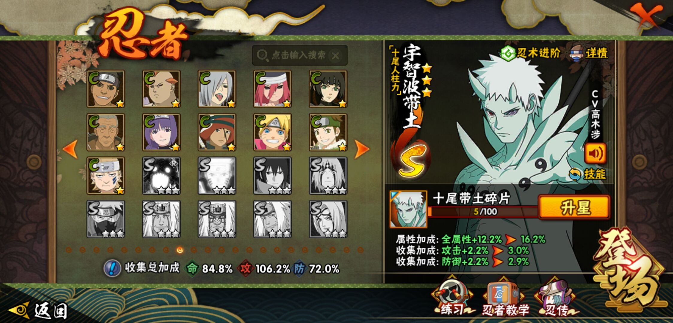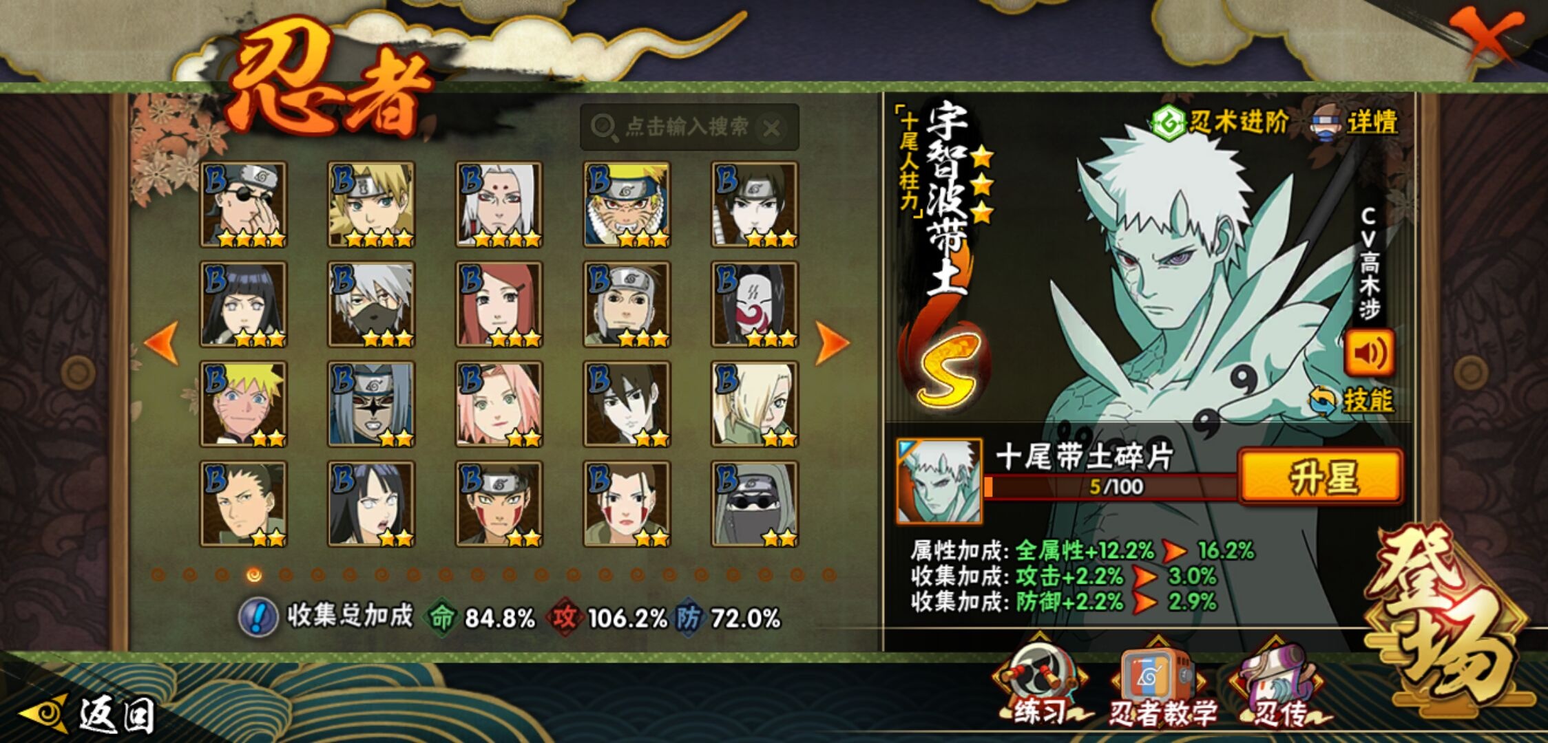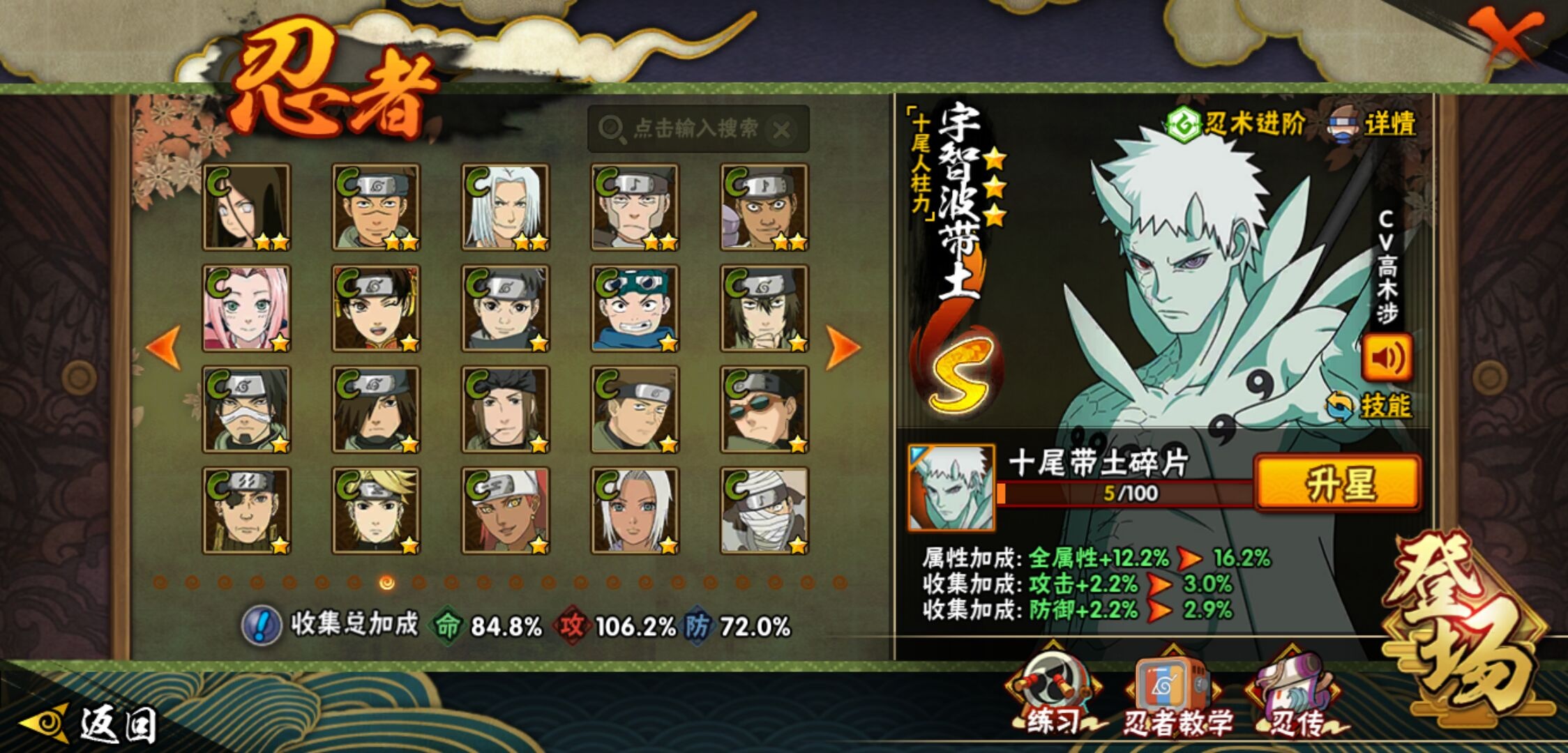 【火影忍者】【lyhy11145】战斗力:806w;段位:超影;本服排名:1794;vip:v5级;s忍:14个;a忍:33个;通灵兽:17个,s忍:十尾人柱力宇智波带土|白面具宇智波斑|秽土转生千手扉间|天道佩恩|漩涡鸣人宇智波佐助|秽土转生千手柱间|舞之豪杰自来也|大蛇丸(普通)|秽土转生波风水门|秽土转生宇智波斑|须佐能乎宇智波鼬 4星|秽土转生长门|四代目雷影艾|仙人模式药师兜__a忍:青春爆炸迈特凯|仙人模式巳月|幻之真容旗木卡卡西|木叶上忍猿飞木叶丸|青年长门|秽土转生迪达拉|宇智波止水(普通)|青年波风水门|近松十人卫千代|半蛇斗篷药师兜|须佐能乎宇智波佐助|暴怒宇智波带土|晓大蛇丸|百豪春野樱|忍界大战秋道丁次|忍界大战我爱罗|万花筒写轮眼宇智波佐助|五代目水影照美冥|死司凭血飞段 3星|疾风传我爱罗|迪达拉(普通)|飞段(普通) 3星|仙人模式漩涡鸣人|万花筒写轮眼旗木卡卡西|迈特凯(普通) 5星|宇智波鼬(普通)|干柿鬼鲛(普通) 5星|桃地再不斩|蝎(普通) 4星|猿飞阿斯玛(普通) 5星|最终章日向雏田|不缘|宇智波泉奈__通灵兽:忍犬(普通)|蓝蛇|蛤蟆吉|忍龟|镰鼬|猿魔|山椒鱼|蜃|蛤蟆仙人|鲛鲨|蛤蟆健|乌鸦(普通)|蛤蟆龙|蛤蟆广|辛牙|梦貘|砂之守鹤