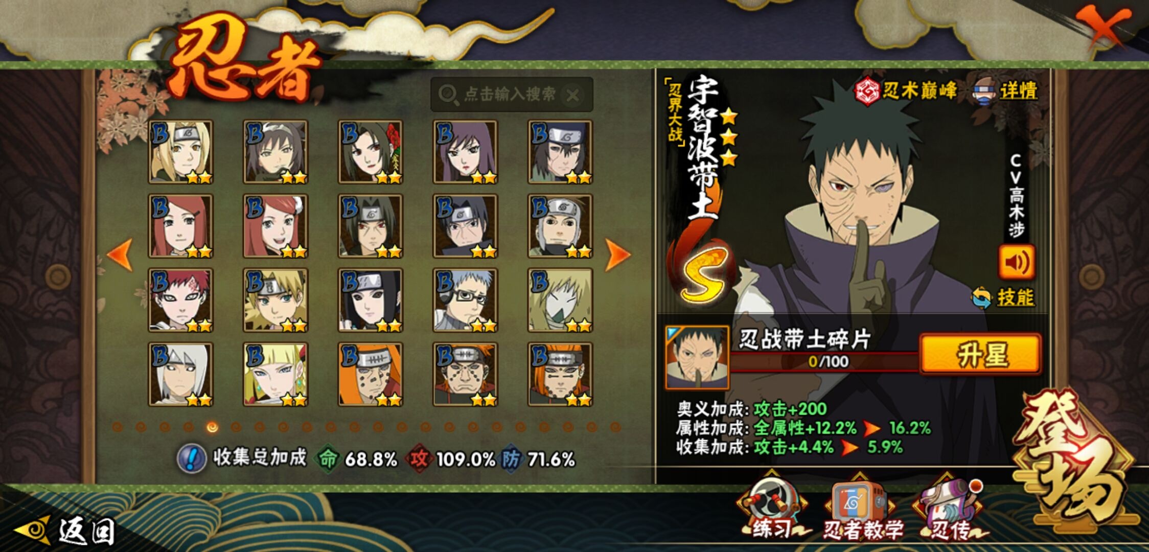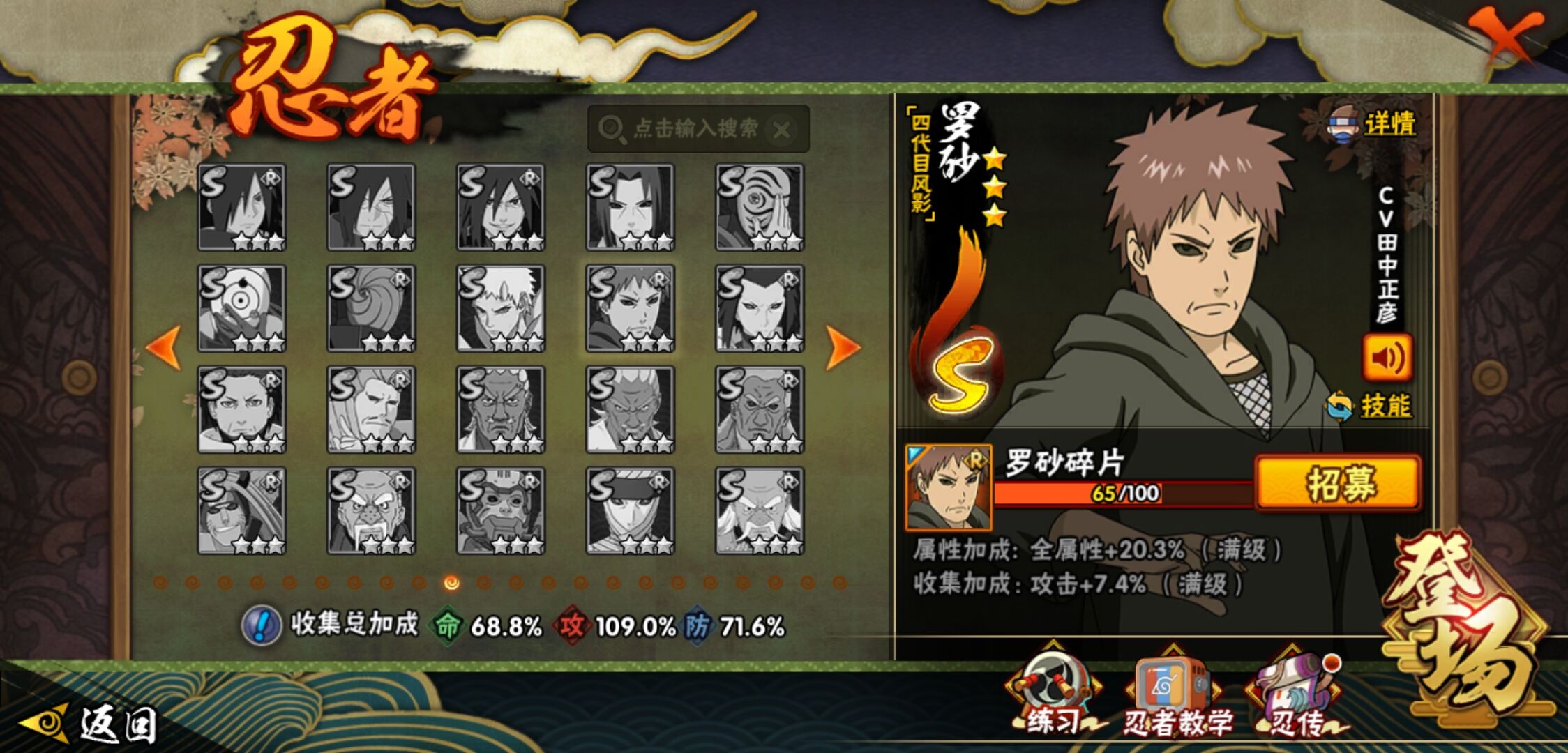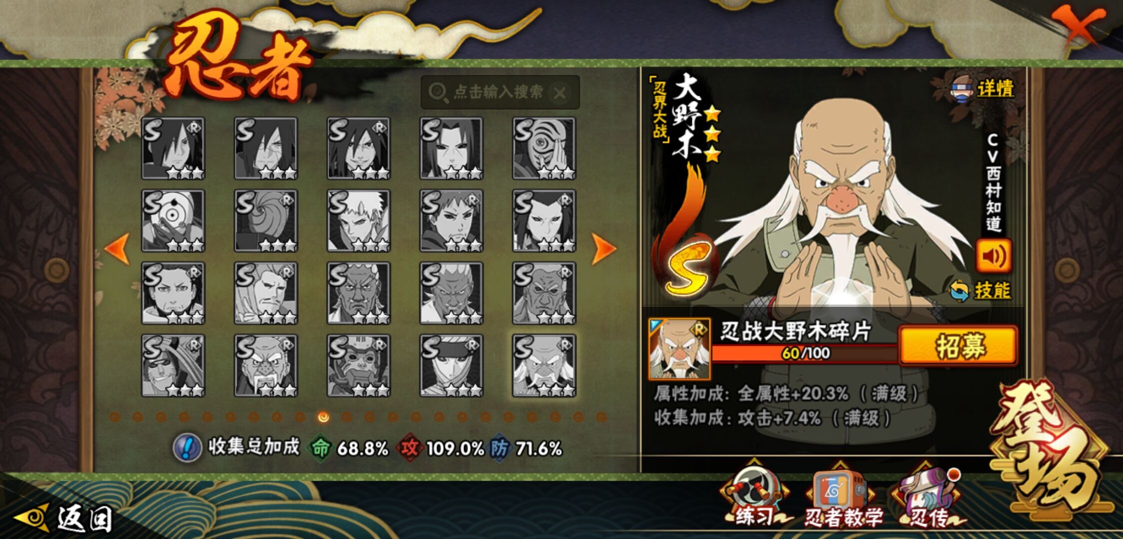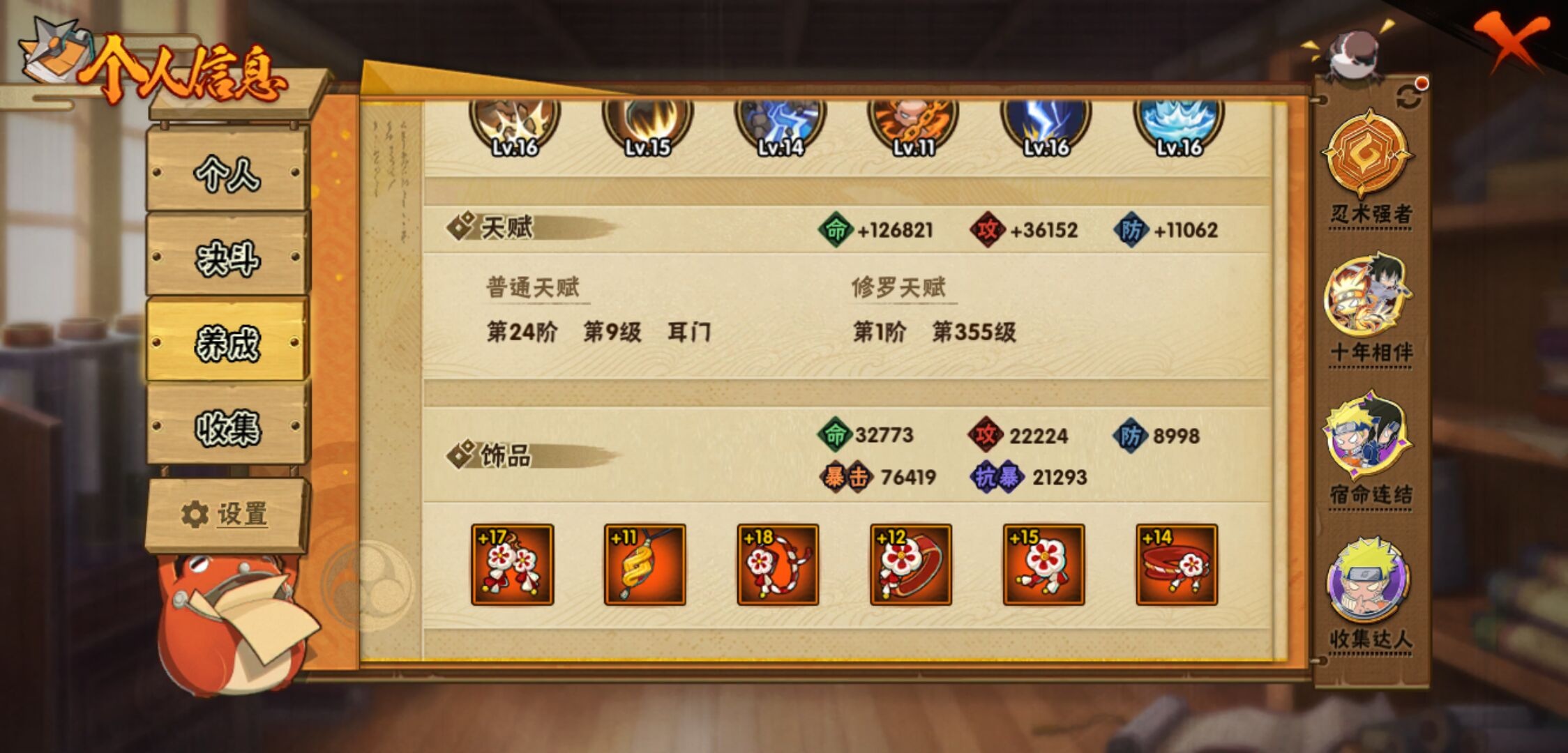 【火影忍者】【lyhy11157】战斗力:796w;段位:暗部1阶;本服排名:464;vip:v11级;s忍:16个;a忍:33个;通灵兽:17个,s忍:忍界大战宇智波带土|须佐能乎旗木卡卡西|九喇嘛连结波风水门|天道佩恩|漩涡鸣人宇智波佐助|须佐能乎宇智波止水|秽土转生千手柱间|舞之豪杰自来也|大蛇丸(普通)|波风水门|秽土转生宇智波斑|须佐能乎宇智波鼬|红夜之刃神秘面具男|死门迈特凯|九喇嘛连结漩涡鸣人|博人传大筒木金式__a忍:青春爆炸迈特凯|仙人模式巳月|幻之真容旗木卡卡西|侠隐江湖药师兜|忍界大战李洛克|四代目土影黑土|青年长门|秽土转生迪达拉|青年波风水门|青年艾|近松十人卫千代|须佐能乎宇智波佐助|晓大蛇丸|忍界大战秋道丁次|奇拉比(普通)|万花筒写轮眼宇智波佐助|五代目水影照美冥|五代目雷影达鲁伊|死司凭血飞段|疾风传我爱罗 3星|飞段(普通) 3星|漂泊浪客小南|迈特凯(普通) 5星|夏日限定宇智波鼬|干柿鬼鲛(普通) 5星|秽土转生桃地再不斩|绯流琥蝎|蝎(普通)|猿飞阿斯玛(普通) 5星|宇智波泉奈|羁绊神农|初始形态机械鸣人|侠隐江湖大野木__通灵兽:忍犬(普通)|蓝蛇|蛤蟆吉|忍龟|镰鼬|砂之守鹤|猿魔|山椒鱼|蜃|蛤蟆仙人|鲛鲨|蛤蟆健|乌鸦(普通)|蛤蟆龙|蛞蝓(普通)|熊猫|蛤蟆广