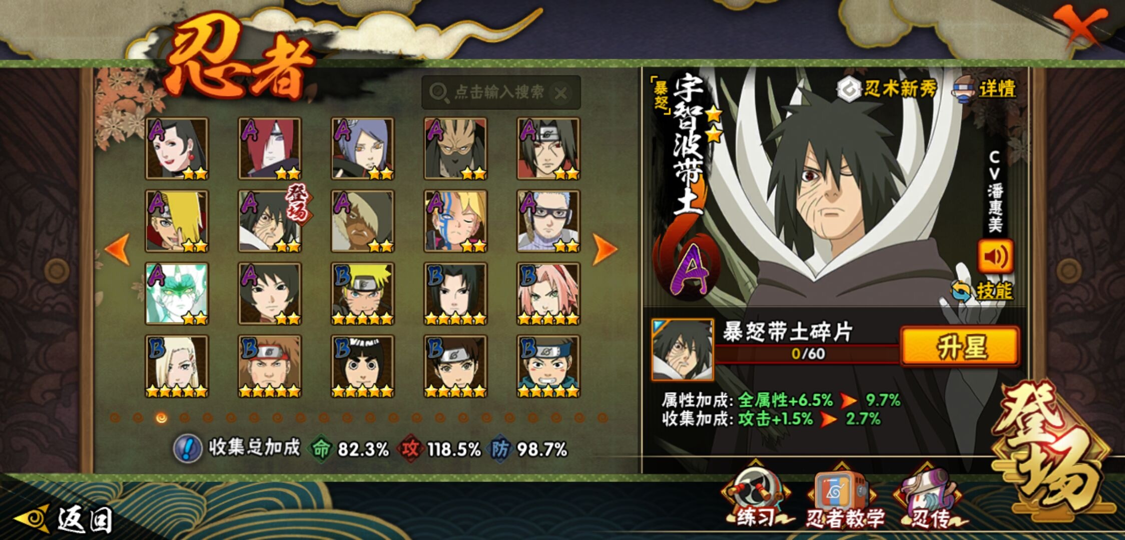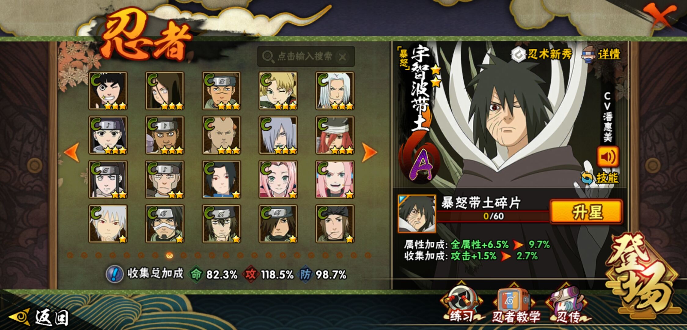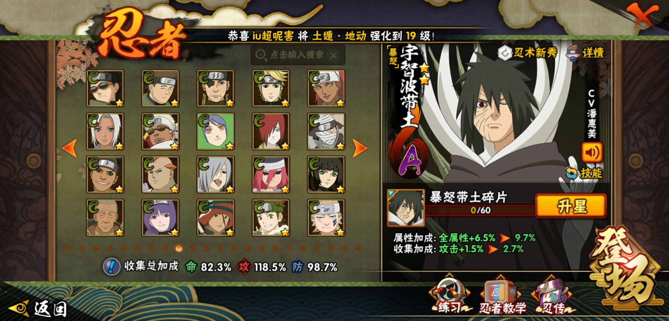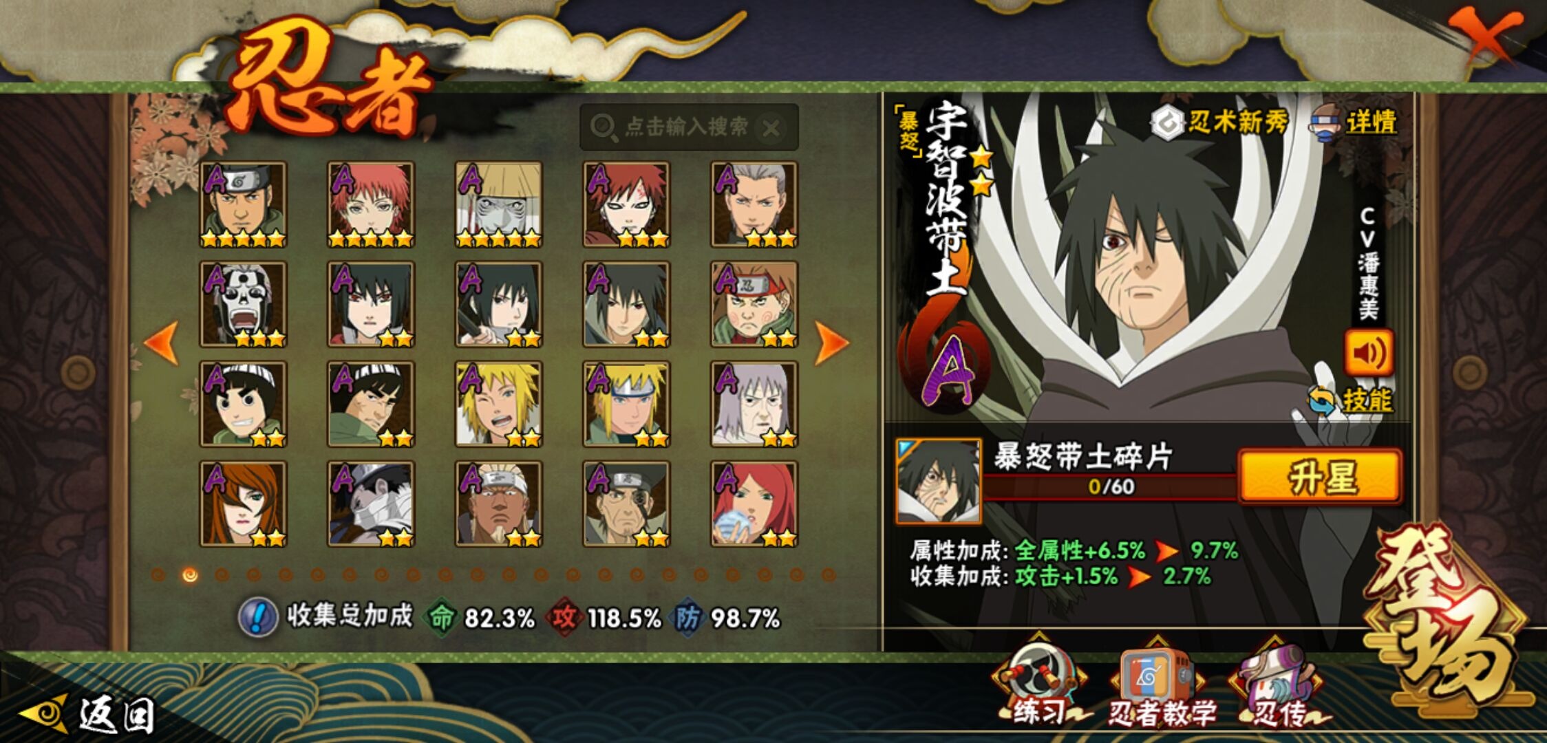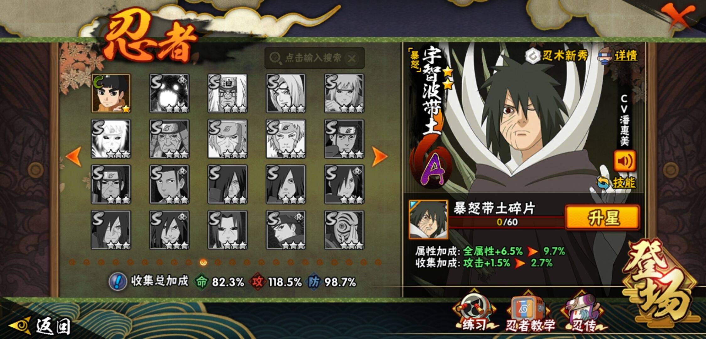 【火影忍者】【lyhy11178】战斗力:1415w;段位:下忍2阶;本服排名:85;vip:v9级;s忍:19个;a忍:33个;通灵兽:18个,s忍:忍界大战宇智波带土|须佐能乎旗木卡卡西|天道佩恩|传说中的三忍自来也|漩涡鸣人宇智波佐助|永恒万花筒宇智波佐助|舞之豪杰自来也|大蛇丸(普通)|纲手(普通) 4星|波风水门|须佐能乎宇智波鼬 4星|红夜之刃神秘面具男|死门迈特凯|忍界大战大野木|忍界大战春野樱|九喇嘛连结漩涡鸣人|博人传大筒木金式|猿飞日斩(普通) 4星|自来也(普通)__a忍:青春爆炸迈特凯|仙人模式巳月|忍界大战李洛克|四代目土影黑土|青年长门|不风|青年波风水门|青年艾|近松十人卫千代|须佐能乎宇智波佐助|暴怒宇智波带土|忍界大战秋道丁次|新春限定波风水门|万花筒写轮眼宇智波佐助|五代目水影照美冥|五代目雷影达鲁伊|死司凭血飞段 3星|疾风传我爱罗 3星|迪达拉(普通)|飞段(普通) 3星|小南(普通)|迈特凯(普通) 5星|宇智波鼬(普通)|干柿鬼鲛(普通) 5星|秽土转生桃地再不斩|蝎(普通) 5星|绯流琥蝎|猿飞阿斯玛(普通) 5星|桃式显现漩涡博人|六代目水影长十郎|不缘|宇智波泉奈|忍界大战土台__通灵兽:忍犬(普通)|蓝蛇|砂之守鹤|蛤蟆吉|忍龟|镰鼬|猿魔|山椒鱼|蜃|蛤蟆仙人|鲛鲨|蛤蟆健|乌鸦(普通)|蛞蝓(普通)|蛤蟆龙|蛤蟆广|梦貘|鹰