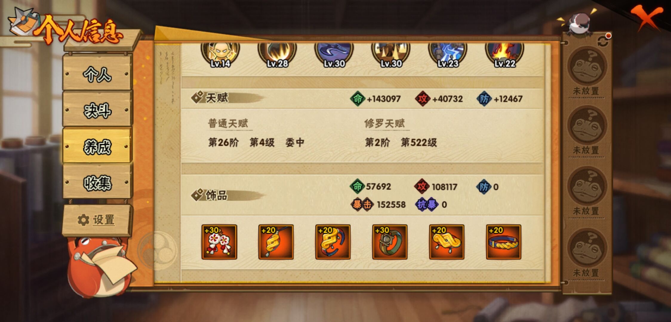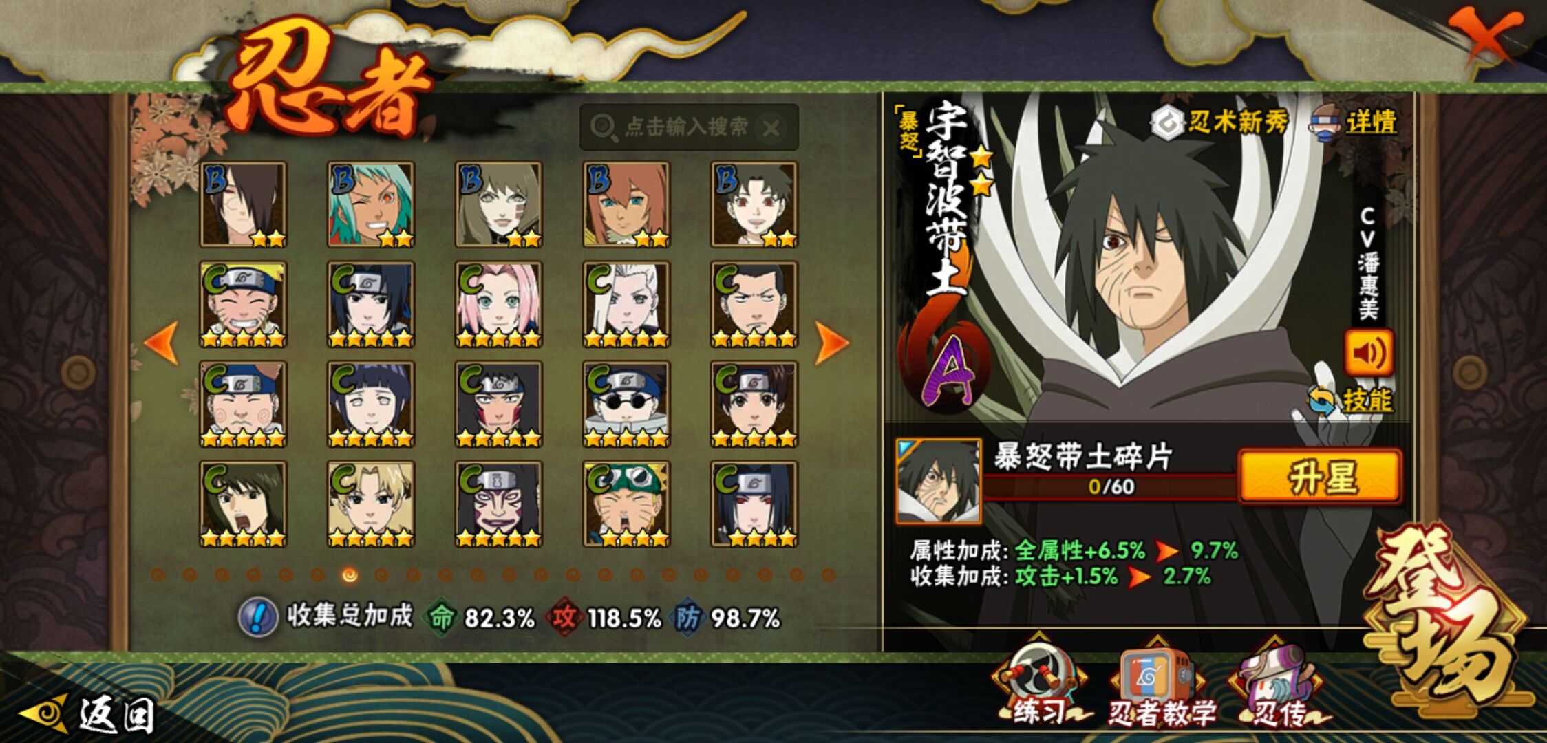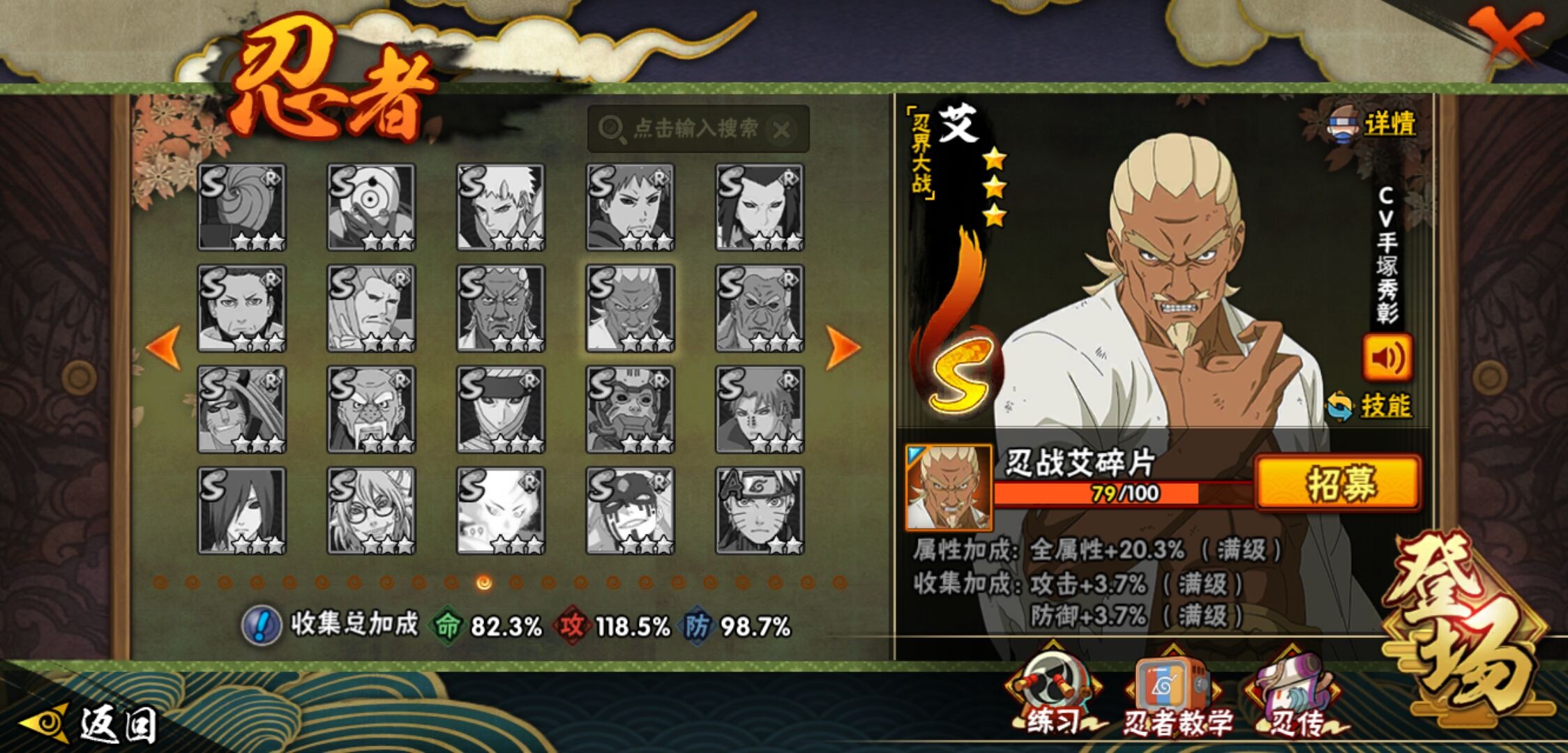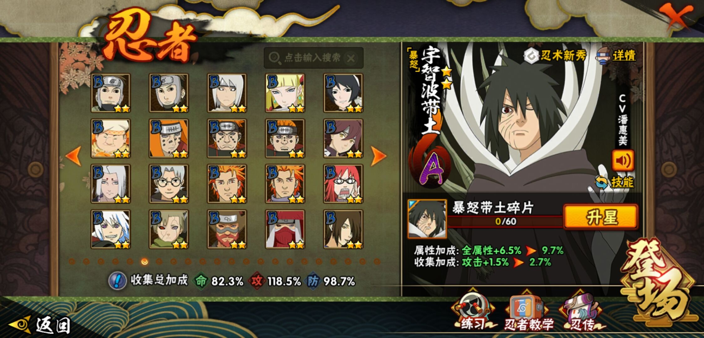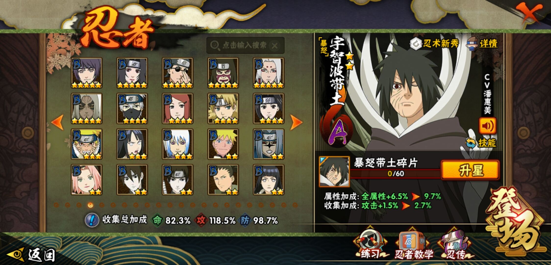 【火影忍者】【lyhy11178】战斗力:1415w;段位:下忍2阶;本服排名:85;vip:v9级;s忍:19个;a忍:33个;通灵兽:18个,s忍:忍界大战宇智波带土|须佐能乎旗木卡卡西|天道佩恩|传说中的三忍自来也|漩涡鸣人宇智波佐助|永恒万花筒宇智波佐助|舞之豪杰自来也|大蛇丸(普通)|纲手(普通) 4星|波风水门|须佐能乎宇智波鼬 4星|红夜之刃神秘面具男|死门迈特凯|忍界大战大野木|忍界大战春野樱|九喇嘛连结漩涡鸣人|博人传大筒木金式|猿飞日斩(普通) 4星|自来也(普通)__a忍:青春爆炸迈特凯|仙人模式巳月|忍界大战李洛克|四代目土影黑土|青年长门|不风|青年波风水门|青年艾|近松十人卫千代|须佐能乎宇智波佐助|暴怒宇智波带土|忍界大战秋道丁次|新春限定波风水门|万花筒写轮眼宇智波佐助|五代目水影照美冥|五代目雷影达鲁伊|死司凭血飞段 3星|疾风传我爱罗 3星|迪达拉(普通)|飞段(普通) 3星|小南(普通)|迈特凯(普通) 5星|宇智波鼬(普通)|干柿鬼鲛(普通) 5星|秽土转生桃地再不斩|蝎(普通) 5星|绯流琥蝎|猿飞阿斯玛(普通) 5星|桃式显现漩涡博人|六代目水影长十郎|不缘|宇智波泉奈|忍界大战土台__通灵兽:忍犬(普通)|蓝蛇|砂之守鹤|蛤蟆吉|忍龟|镰鼬|猿魔|山椒鱼|蜃|蛤蟆仙人|鲛鲨|蛤蟆健|乌鸦(普通)|蛞蝓(普通)|蛤蟆龙|蛤蟆广|梦貘|鹰