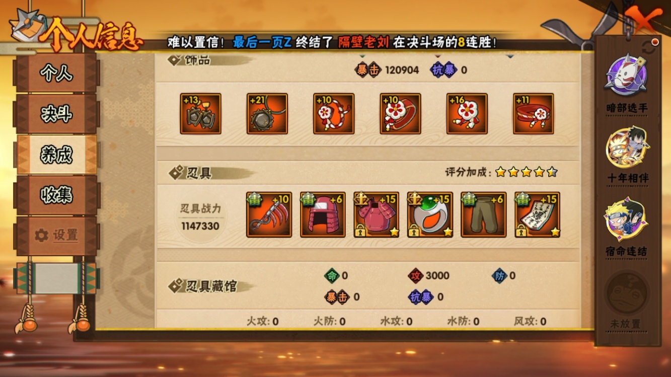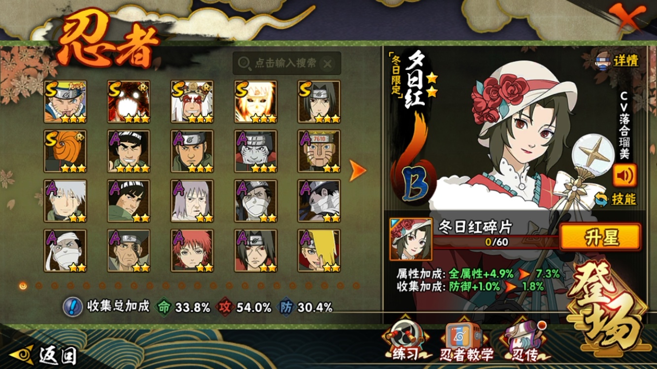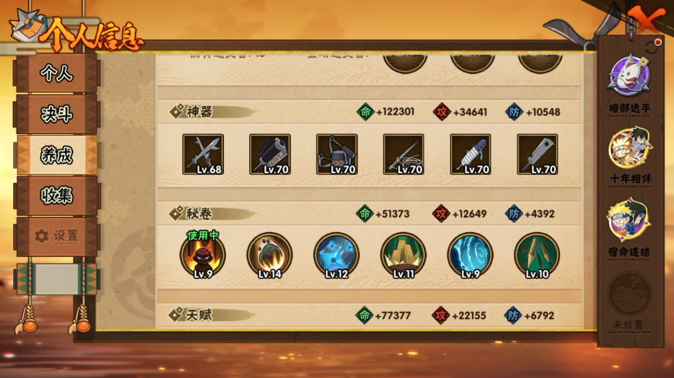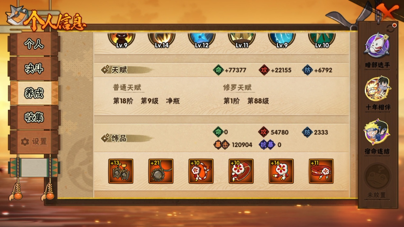 【火影忍者】【lyhy11170】战斗力:549w;段位:上忍2阶;vip:v9级;s忍:6个;a忍:20个;通灵兽:14个,s忍:九喇嘛连结波风水门|五影会谈宇智波斑|漩涡鸣人宇智波佐助|舞之豪杰自来也|须佐能乎宇智波鼬|暴怒第六尾漩涡鸣人__a忍:青春爆炸迈特凯|仙人模式巳月|幻之真容旗木卡卡西|四代目土影黑土|漂泊武士桃地再不斩|近松十人卫千代|暴怒宇智波带土|迪达拉(普通)|飞段(普通)|迈特凯(普通)|宇智波鼬(普通)|干柿鬼鲛(普通)|桃地再不斩|秽土转生桃地再不斩|蝎(普通)|猿飞阿斯玛(普通)|六代目水影长十郎|羁绊神农|忍界大战土台|初始形态机械鸣人__通灵兽:忍犬(普通)|蓝蛇|蛤蟆吉|砂之守鹤|忍龟|镰鼬|猿魔|山椒鱼|蜃|蛤蟆仙人|鲛鲨|蛤蟆健|蛞蝓(普通)|乌鸦(普通)