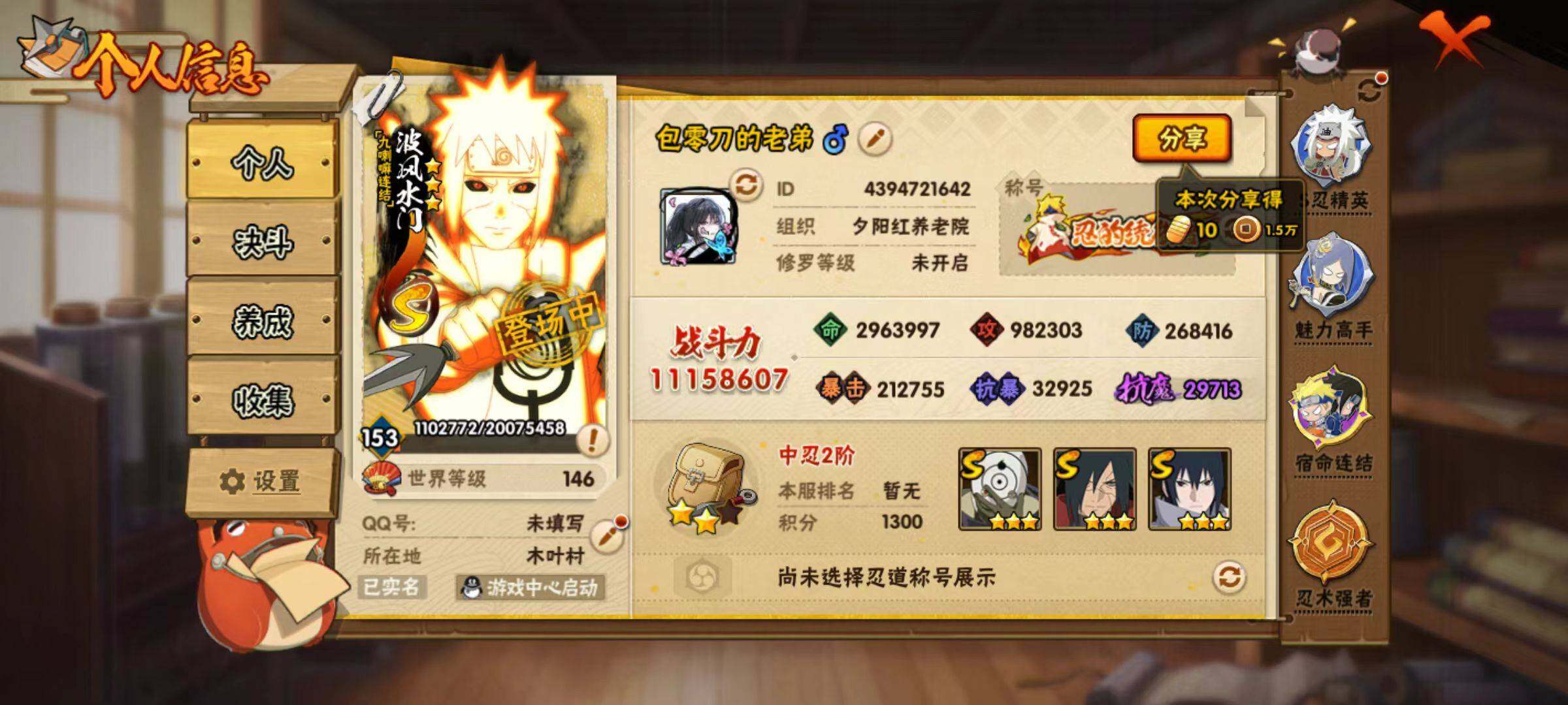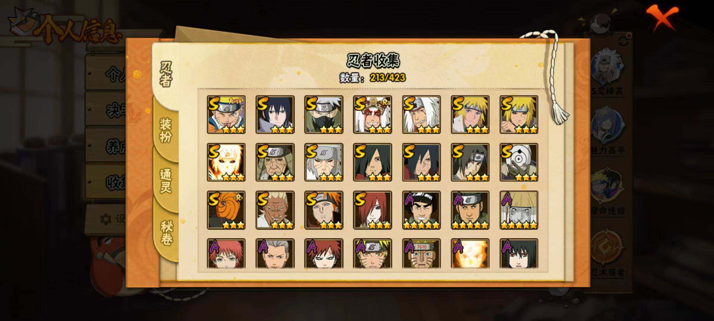 【hy586】18s级忍者数-45a级忍者数 【s级忍者】:长门「秽土转生」3星,猿飞日斩「秽土转生」3星,波风水门「秽土转生」3星,千手扉间「秽土转生」3星,宇智波斑「秽土转生·解」3星,艾「忍界大战」3星,宇智波鼬「须佐能乎」3星,旗木卡卡西「须佐能乎」3星,自来也「舞之豪杰」3星,自来也「传说中的三忍」3星,宇智波斑3星,波风水门3星,佩恩「天道」3星,宇智波佐助「永恒万花筒」3星,宇智波斑 「白面具」3星宇智波斑「白面具」,波风水门「九喇嘛连结」3星,宇智波斑「五影会谈」3星,漩涡鸣人·宇智波佐助3星 【a级忍者】:长门「青年」2星,波风水门「青年」2星,波风水门「新春限定」2星,迪达拉2星,大蛇丸「晓」2星,飞段4星,飞段「死司凭血」2星,干柿鬼鲛5星,漩涡博人「桃式显现」2星,漩涡鸣人「仙人模式」2星,漩涡鸣人「九尾查克拉」2星,机械鸣人「初始形态」2星,迈特凯5星,旗木卡卡西「万花筒写轮眼」2星,旗木卡卡西「幻之真容」2星,桃地再不斩「秽土转生」2星,我爱罗「疾风传」3星,我爱罗「忍界大战」2星,蝎4星,蝎「绯流琥」2星,小南2星,小南「夏日泳装」2星,角都「地怨虞」2星,猿飞阿斯玛5星,猿飞阿斯玛「秽土转生」2星,宇智波止水2星,宇智波止水「新春限定」2星,宇智波鼬2星,宇智波佐助「须佐能乎」2星,宇智波佐助「万花筒写轮眼」2星,药师兜「半蛇斗篷」2星,照美冥「五代目水影」2星,日向宁次「忍界大战」2星,日向雏田「最终章」2星,长十郎「六代目水影」2星,佩恩·六道「漂泊浪客」2星,李洛克「忍界大战」2星,猿飞木叶丸「博人传」2星,黑土「博人传」2星,春野樱「百豪」2星,秋道丁次「忍界大战」2星,千代「近松十人卫」2星,宇智波泉奈2星,纲手「妖怪奇谭」2星,迈特凯「青春爆炸」2星