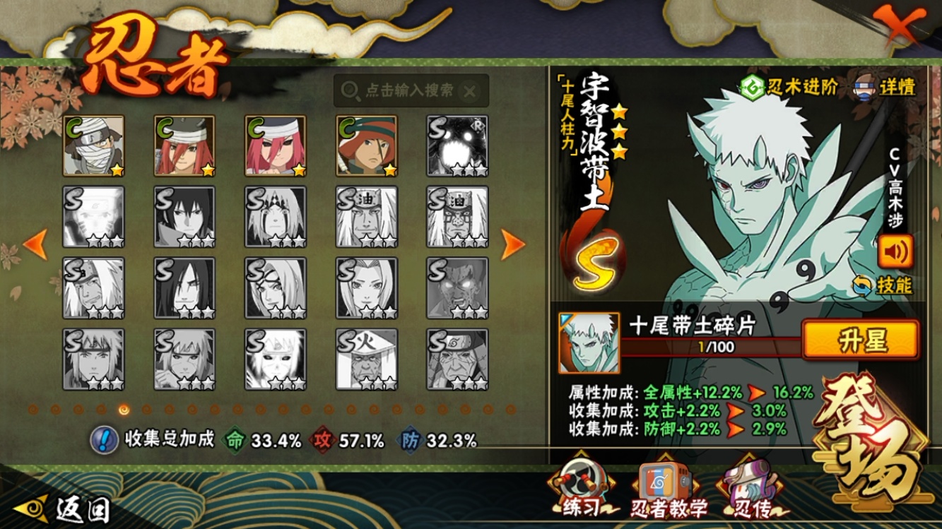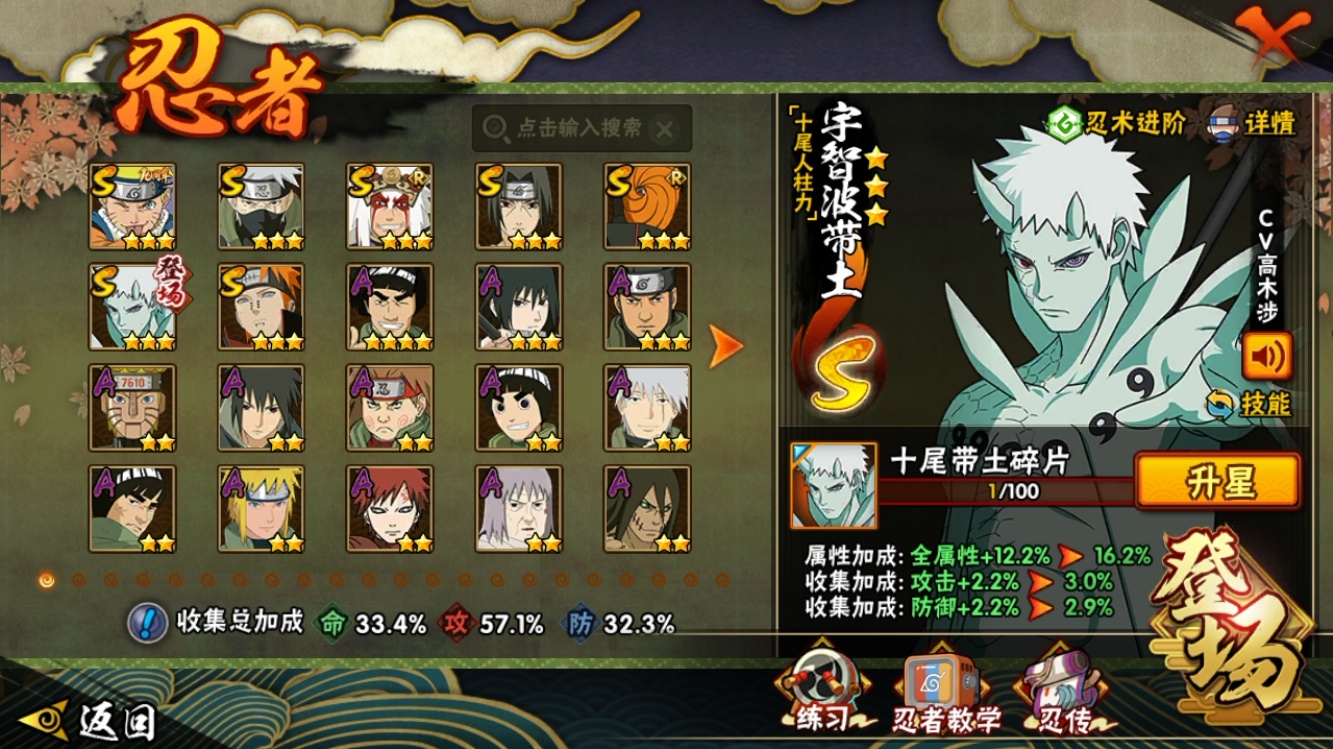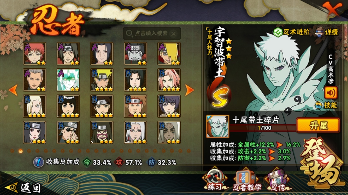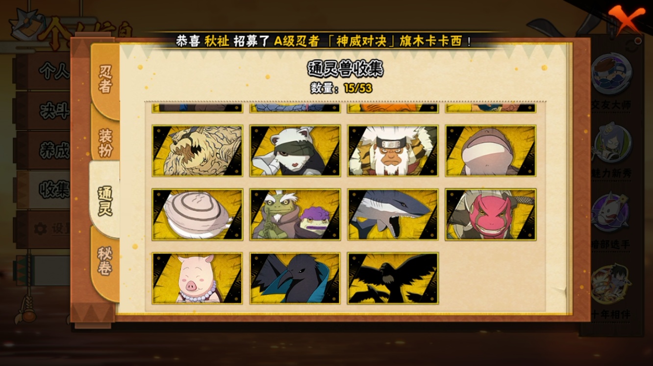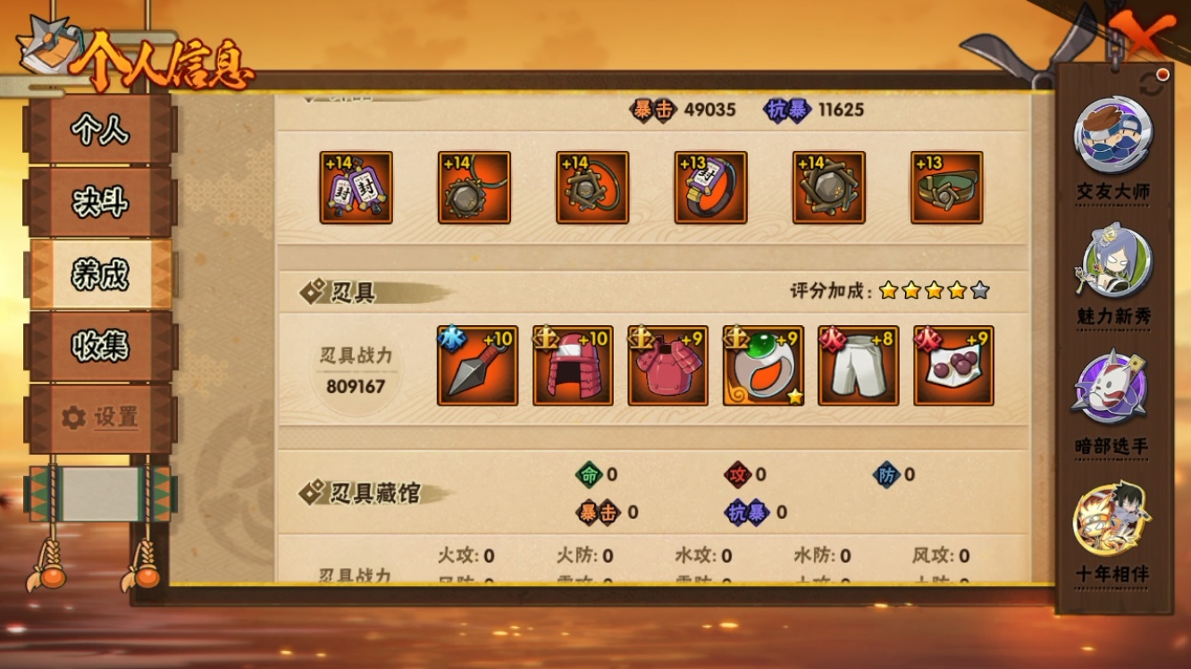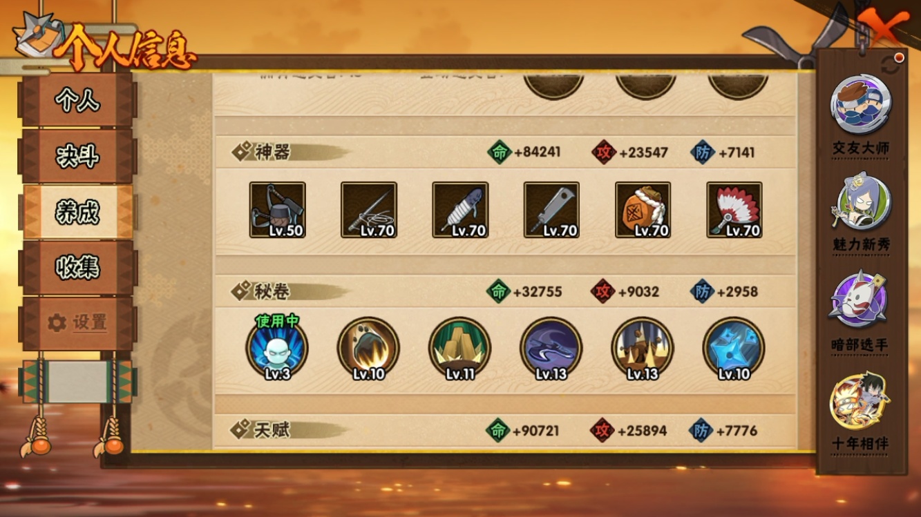 【火影忍者】【lyhy11176】战斗力:422w;段位:上忍1阶;本服排名:516;vip:v6级;s忍:7个;a忍:19个;通灵兽:14个,s忍:十尾人柱力宇智波带土|须佐能乎旗木卡卡西|五影会谈宇智波斑|天道佩恩|漩涡鸣人宇智波佐助|舞之豪杰自来也|须佐能乎宇智波鼬__a忍:青春爆炸迈特凯|仙人模式巳月|幻之真容旗木卡卡西|忍界大战李洛克|青年波风水门|近松十人卫千代|须佐能乎宇智波佐助|忍界大战秋道丁次|疾风传我爱罗|迪达拉(普通)|飞段(普通)|迈特凯(普通)|宇智波鼬(普通)|夏日限定宇智波鼬|干柿鬼鲛(普通)|蝎(普通)|猿飞阿斯玛(普通)|宇智波泉奈|初始形态机械鸣人__通灵兽:忍犬(普通)|蓝蛇|蛤蟆吉|忍龟|砂之守鹤|镰鼬|猿魔|山椒鱼|蜃|蛤蟆仙人|鲛鲨|蛤蟆健|乌鸦夏日限定|乌鸦(普通)1
