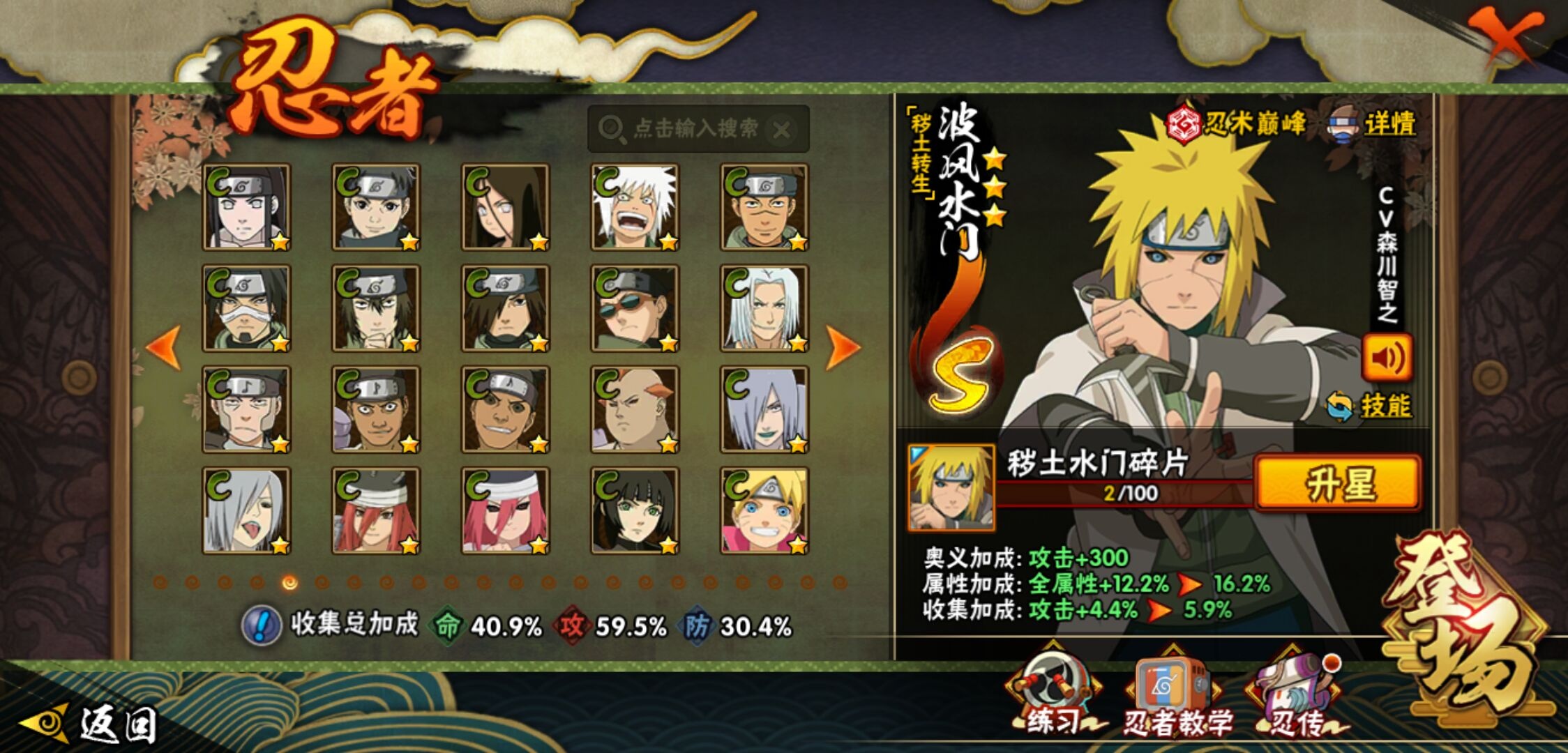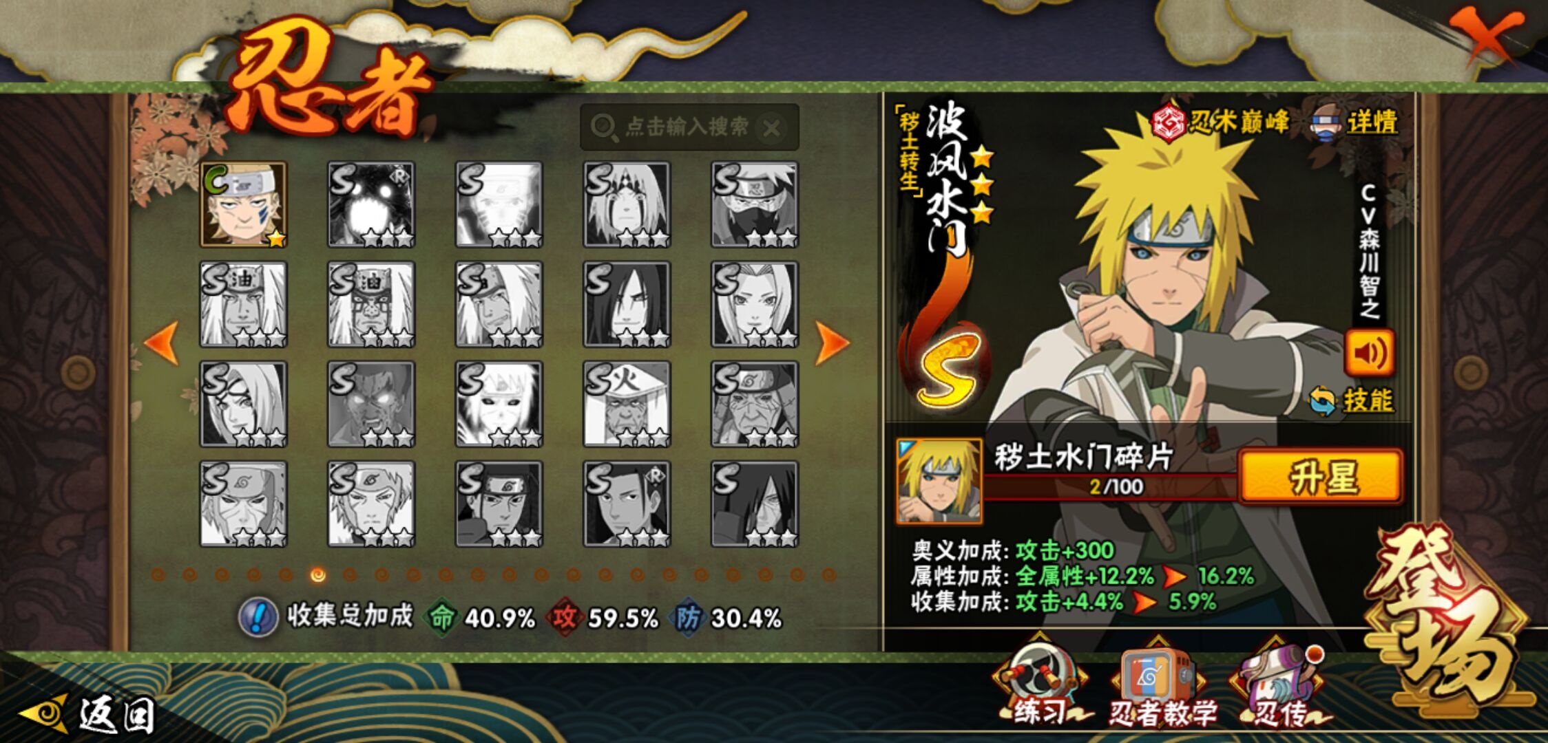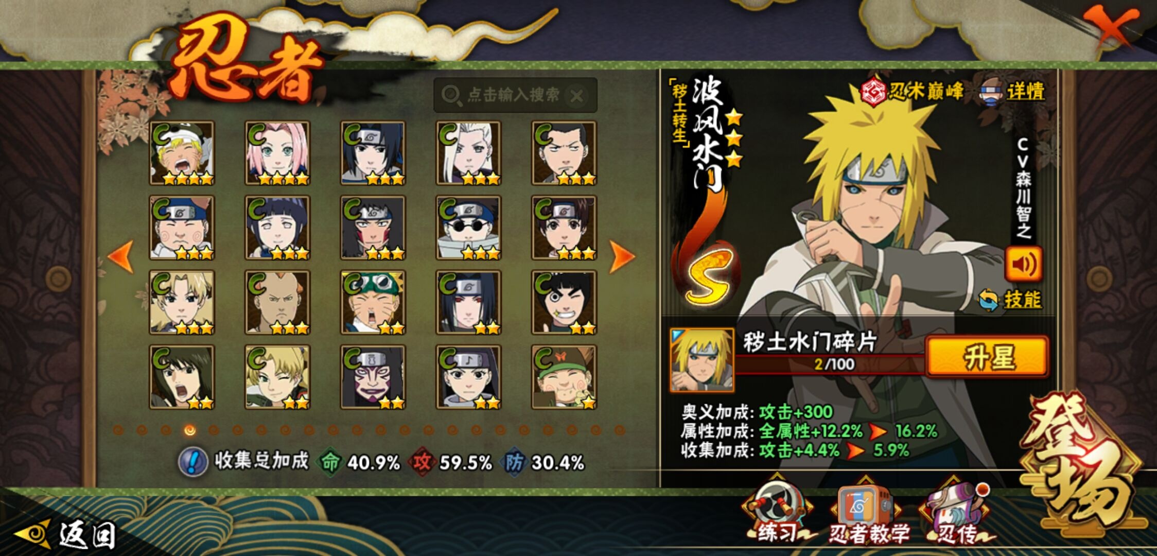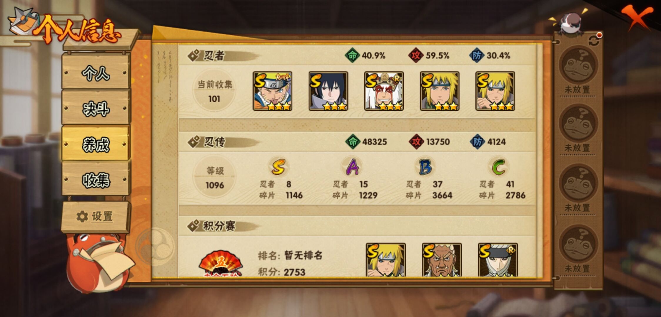 【火影忍者】【lyhy11209】战斗力:468w;段位:中忍3阶;本服排名:1173;vip:v9级;s忍:8个;a忍:15个;通灵兽:14个,s忍:漩涡鸣人宇智波佐助|秽土转生千手柱间|永恒万花筒宇智波佐助|舞之豪杰自来也|波风水门|秽土转生波风水门|二代目土影无|四代目雷影艾__a忍:青春爆炸迈特凯|志村团藏|半蛇斗篷药师兜|须佐能乎宇智波佐助|暴怒宇智波带土|忍界大战我爱罗|死司凭血飞段|疾风传我爱罗|飞段(普通)|迈特凯(普通) 4星|夏日限定宇智波鼬|干柿鬼鲛(普通)|蝎(普通)|猿飞阿斯玛(普通) 3星|宇智波泉奈__通灵兽:忍犬(普通)|蓝蛇|蛤蟆吉|忍龟|镰鼬|猿魔|山椒鱼|蜃|蛤蟆仙人|鲛鲨|蛤蟆健|砂之守鹤|蛞蝓(普通)|乌鸦(普通)