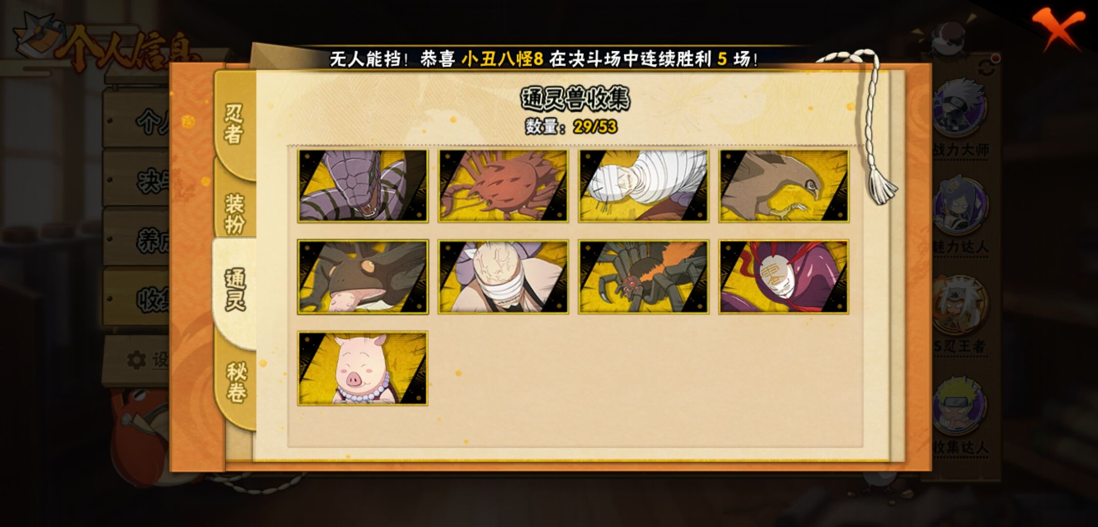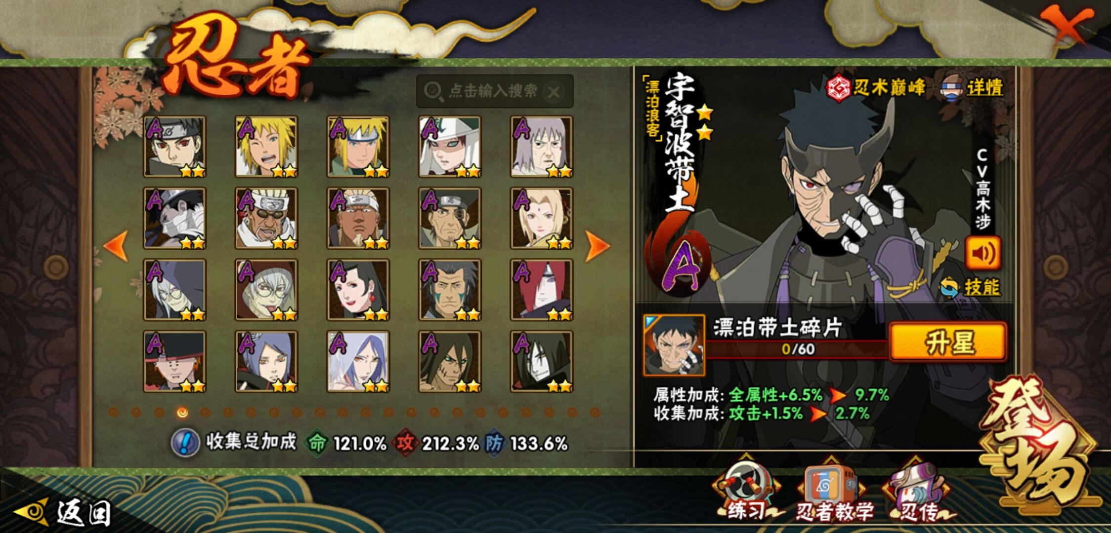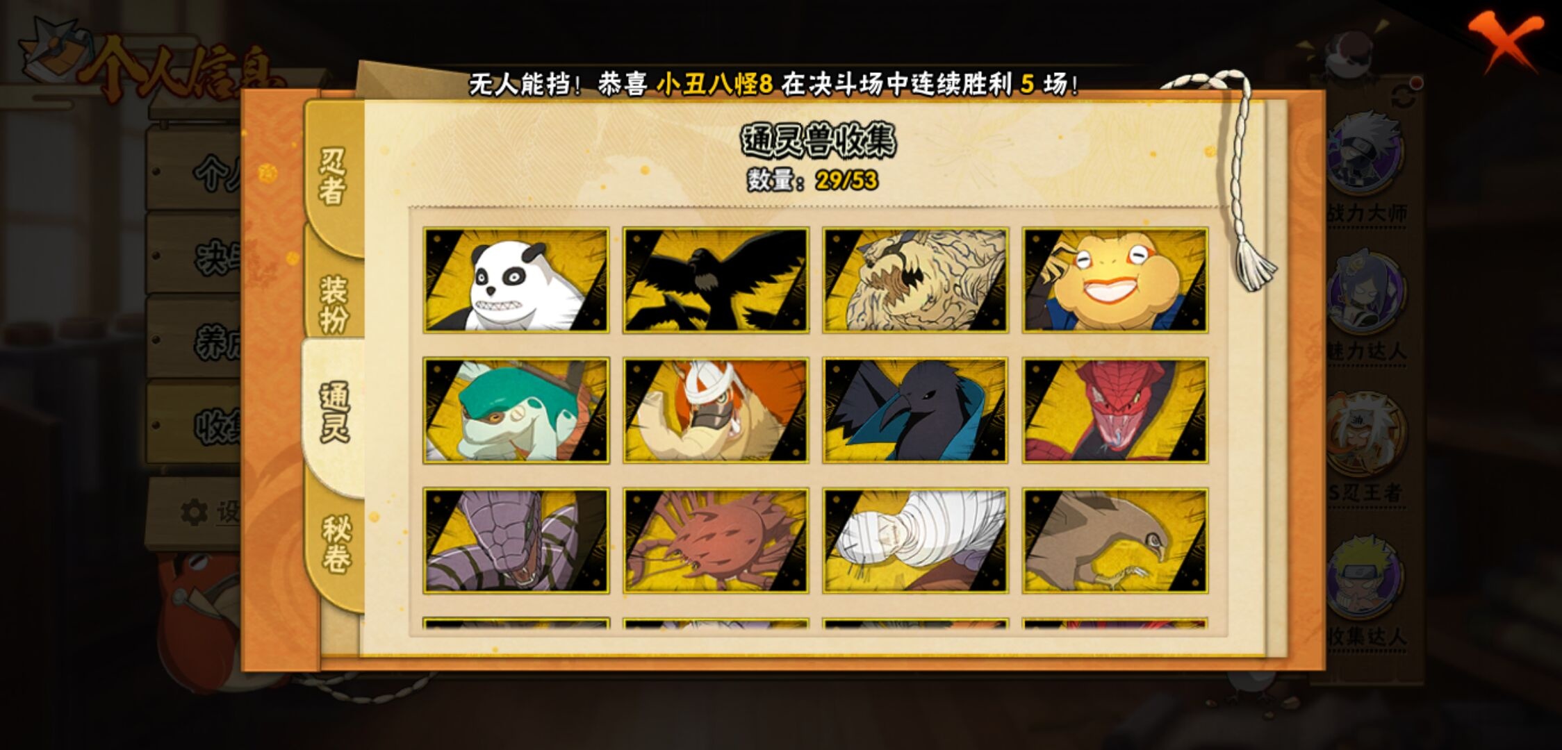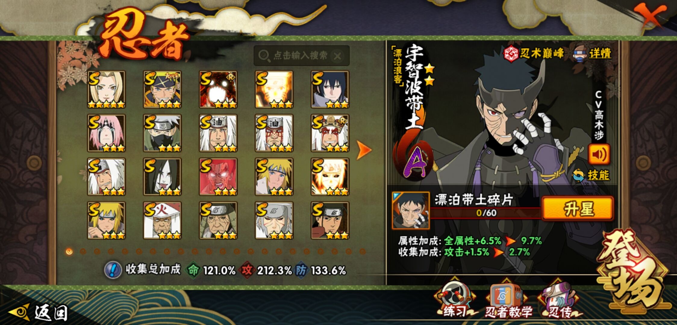 【火影忍者】【lyhy11203】战斗力:1899w;段位:上忍1阶;本服排名:103;vip:v13级;s忍:39个;a忍:57个;通灵兽:27个,s忍:秽土转生解宇智波斑|白面具宇智波斑|忍界大战宇智波带土|须佐能乎旗木卡卡西|秽土转生千手扉间|九喇嘛连结波风水门|天道佩恩|传说中的三忍自来也|漩涡鸣人宇智波佐助|须佐能乎宇智波止水|秽土转生宇智波鼬|永恒万花筒宇智波佐助|最终章大筒木舍人|仙人模式自来也|木叶创立千手柱间|忍界大战艾|舞之豪杰自来也|大蛇丸(普通)|纲手(普通) 5星|波风水门|秽土转生波风水门|千手柱间(普通)|须佐能乎宇智波鼬|神秘面具男(普通)|红夜之刃神秘面具男|秽土转生长门|秽土转生半藏|秽土转生三代目风影|秽土转生金角银角|仙人模式药师兜|死门迈特凯|忍界大战春野樱|九喇嘛连结漩涡鸣人|博人传大筒木金式|大筒木桃式|猿飞日斩(普通)|秽土转生猿飞日斩|自来也(普通)|暴怒第六尾漩涡鸣人__a忍:青春爆炸迈特凯|漂泊浪客宇智波带土|仙人模式巳月|侠隐江湖纲手|侠隐江湖药师兜|忍界大战李洛克|漂泊浪客佩恩六道|秽土转生角都|忍界大战日向宁次|四代目土影黑土|木叶上忍猿飞木叶丸|火之意志继承者卑留呼|青年长门|秽土转生迪达拉|宇智波止水(普通)|青年波风水门|青年艾|近松十人卫千代|半蛇斗篷药师兜|须佐能乎宇智波佐助|九尾查克拉漩涡鸣人|晓大蛇丸|地陆|百豪春野樱|忍界大战秋道丁次|忍界大战我爱罗|新春限定波风水门|疾风传咒印宇智波佐助|新春限定宇智波鼬|奇拉比(普通)|万花筒写轮眼宇智波佐助|死司凭血飞段|疾风传我爱罗 3星|迪达拉(普通)|飞段(普通) 4星|小南(普通)|漂泊浪客小南|仙人模式漩涡鸣人|万花筒写轮眼旗木卡卡西|迈特凯(普通) 5星|宇智波鼬(普通)|夏日限定宇智波鼬|干柿鬼鲛(普通) 5星|秽土转生桃地再不斩|蝎(普通) 5星|绯流琥蝎|猿飞阿斯玛(普通) 5星|桃式显现漩涡博人 3星|六代目水影长十郎|不缘|新春限定大蛇丸|不动|宇智波泉奈|羁绊神农|忍界大战土台|初始形态机械鸣人|侠隐江湖大野木__通灵兽:忍犬(普通)|蓝蛇|蛤蟆吉|忍龟|镰鼬|猿魔|山椒鱼|蜃|蛞蝓(普通)|蛤蟆仙人|鲛鲨|蛤蟆健|熊猫|乌鸦(普通)|砂之守鹤|蛤蟆龙|蛤蟆广|梦貘|乌鸦夏日限定|辛牙|万蛇|螃蟹|怒鬼无臂|鹰|怒鬼爪|变色龙|蜘蛛