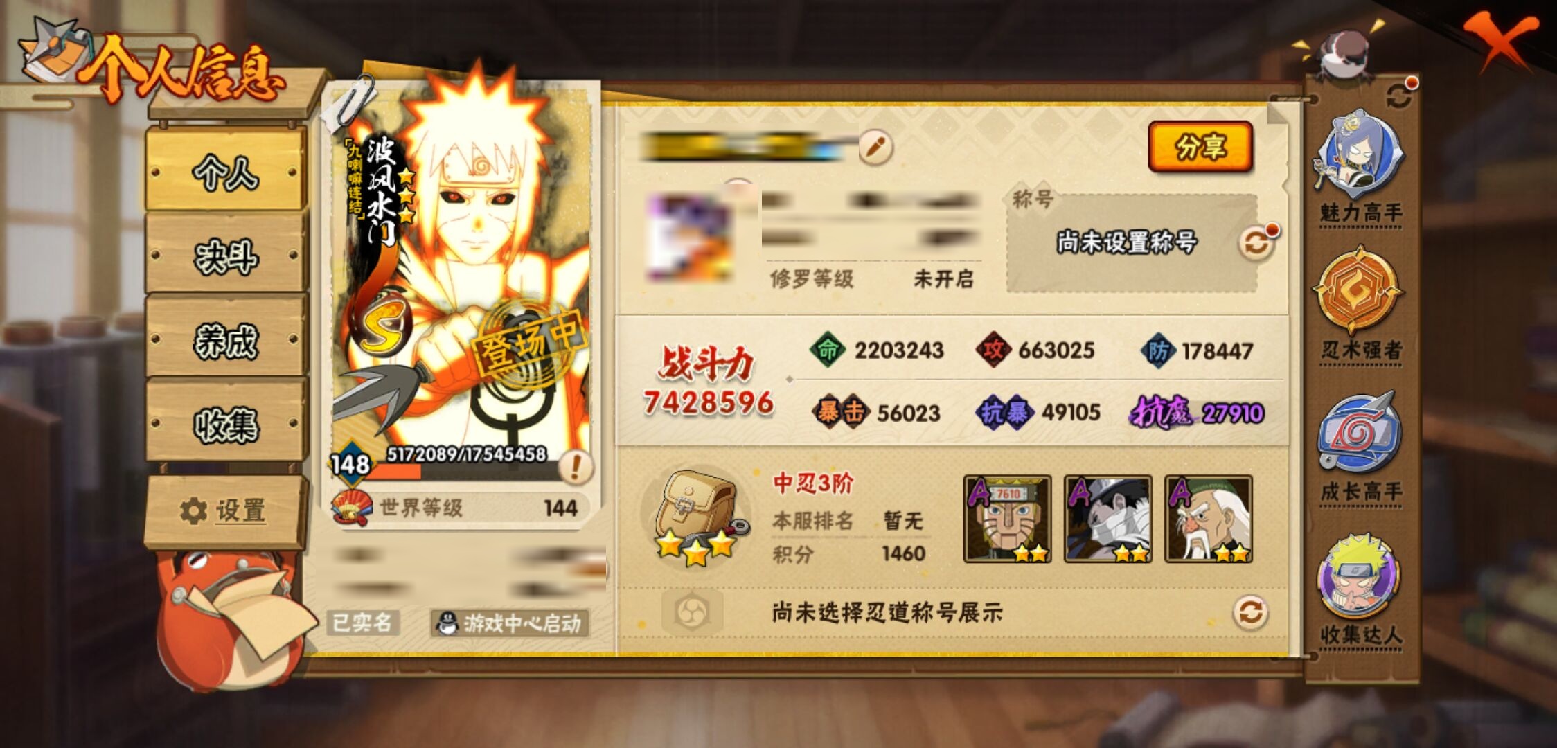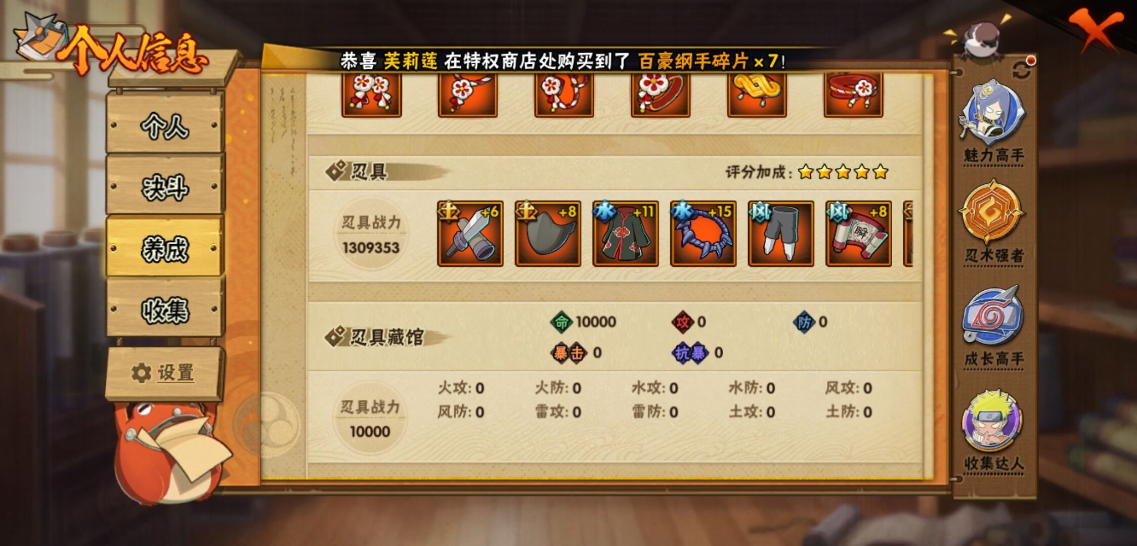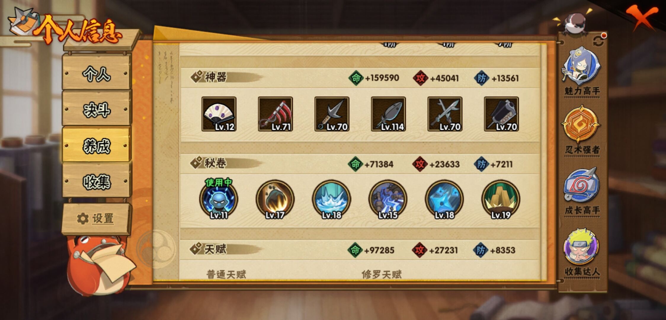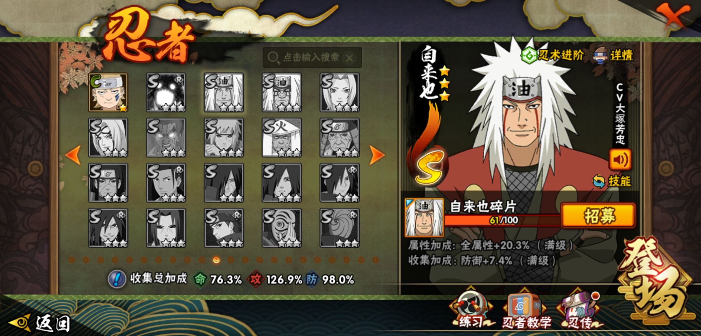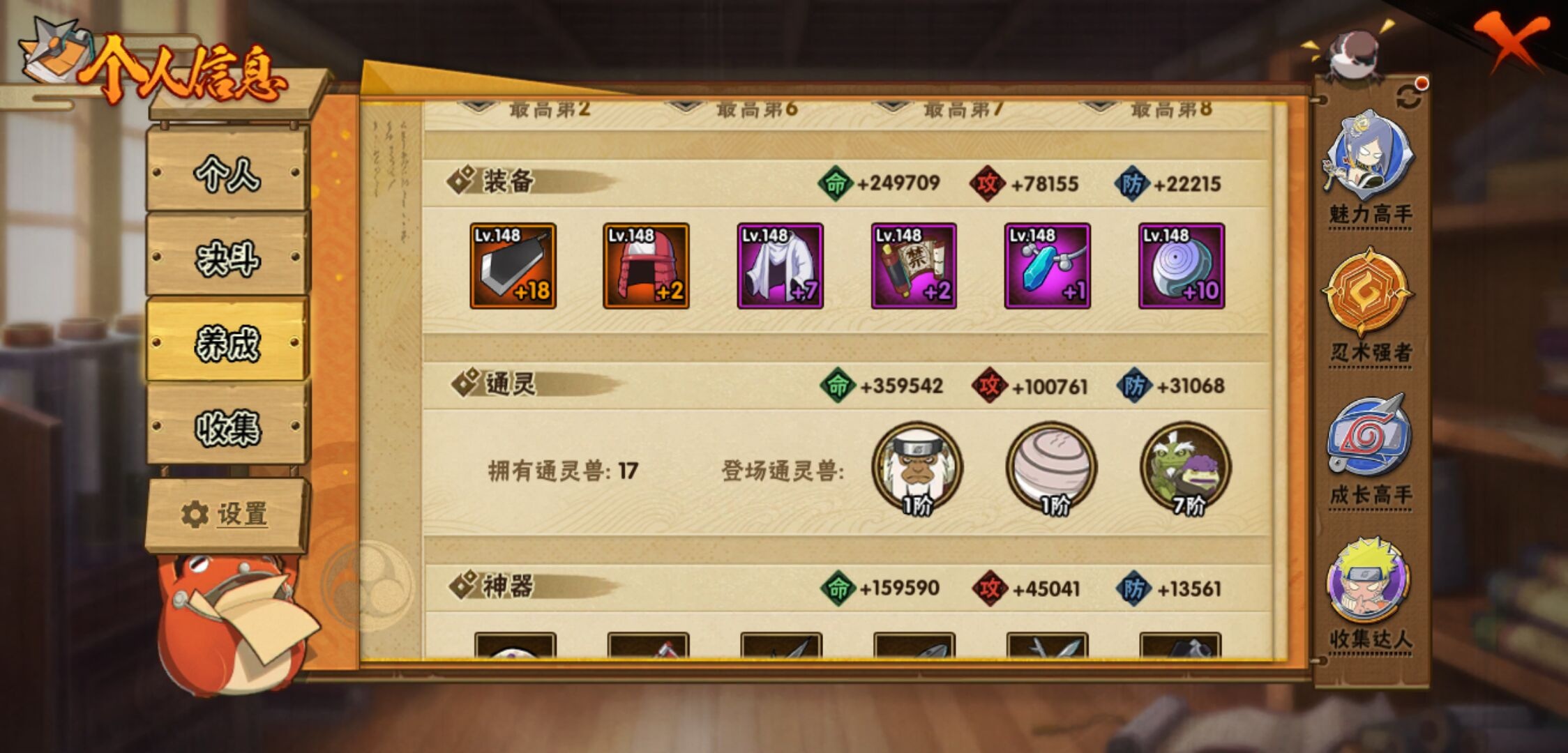 【火影忍者】【lyhy11143】s忍:秽土转生解宇智波斑|白面具宇智波斑|须佐能乎旗木卡卡西|秽土转生千手扉间|九喇嘛连结波风水门|天道佩恩|传说中的三忍自来也|漩涡鸣人宇智波佐助|永恒万花筒宇智波佐助|舞之豪杰自来也|大蛇丸(普通)|波风水门|千手扉间(普通)|千手柱间(普通)|须佐能乎宇智波鼬|红夜之刃神秘面具男|忍界大战春野樱|九喇嘛连结漩涡鸣人__a忍:青春爆炸迈特凯|仙人模式巳月|忍界大战日向宁次|四代目土影黑土|木叶上忍猿飞木叶丸|青年长门|秽土转生迪达拉|忍界大战奇拉比|青年艾|忍界大战旗木卡卡西|近松十人卫千代|夏日泳装照美冥|晓创生角都|九尾查克拉漩涡鸣人|新春限定小南|暴怒宇智波带土|火影继承人猿飞日斩|忍界大战秋道丁次|忍界大战我爱罗|夏日泳装小南|新春限定宇智波鼬|万花筒写轮眼宇智波佐助|五代目水影照美冥|死司凭血飞段|疾风传我爱罗 3星|迪达拉(普通)|飞段(普通) 3星|仙人模式漩涡鸣人|迈特凯(普通) 5星|夏日限定宇智波鼬|干柿鬼鲛(普通) 5星|秽土转生桃地再不斩|绯流琥蝎|蝎(普通)|猿飞阿斯玛(普通) 5星|最终章日向雏田|六代目水影长十郎|宇智波泉奈|羁绊神农|初始形态机械鸣人|侠隐江湖大野木__通灵兽:忍犬(普通)|蓝蛇|蛤蟆吉|忍龟|镰鼬|猿魔|山椒鱼|蜃|熊猫|蛞蝓(普通)|蛤蟆仙人|鲛鲨|蛤蟆健|乌鸦(普通)|砂之守鹤|蛤蟆龙|蛤蟆广【火影忍者】【lyhy11143】战斗力:744w;段位:暗部2阶;本服排名:1050;vip:v11级;s忍:18个;a忍:41个;通灵兽:17个,s忍:秽土转生解宇智波斑|白面具宇智波斑|须佐能乎旗木卡卡西|秽土转生千手扉间|九喇嘛连结波风水门|天道佩恩|传说中的三忍自来也|漩涡鸣人宇智波佐助|永恒万花筒宇智波佐助|舞之豪杰自来也|大蛇丸(普通)|波风水门|千手扉间(普通)|千手柱间(普通)|须佐能乎宇智波鼬|红夜之刃神秘面具男|忍界大战春野樱|九喇嘛连结漩涡鸣人__a忍:青春爆炸迈特凯|仙人模式巳月|忍界大战日向宁次|四代目土影黑土|木叶上忍猿飞木叶丸|青年长门|秽土转生迪达拉|忍界大战奇拉比|青年艾|忍界大战旗木卡卡西|近松十人卫千代|夏日泳装照美冥|晓创生角都|九尾查克拉漩涡鸣人|新春限定小南|暴怒宇智波带土|火影继承人猿飞日斩|忍界大战秋道丁次|忍界大战我爱罗|夏日泳装小南|新春限定宇智波鼬|万花筒写轮眼宇智波佐助|五代目水影照美冥|死司凭血飞段|疾风传我爱罗 3星|迪达拉(普通)|飞段(普通) 3星|仙人模式漩涡鸣人|迈特凯(普通) 5星|夏日限定宇智波鼬|干柿鬼鲛(普通) 5星|秽土转生桃地再不斩|绯流琥蝎|蝎(普通)|猿飞阿斯玛(普通) 5星|最终章日向雏田|六代目水影长十郎|宇智波泉奈|羁绊神农|初始形态机械鸣人|侠隐江湖大野木__通灵兽:忍犬(普通)|蓝蛇|蛤蟆吉|忍龟|镰鼬|猿魔|山椒鱼|蜃|熊猫|蛞蝓(普通)|蛤蟆仙人|鲛鲨|蛤蟆健|乌鸦(普通)|砂之守鹤|蛤蟆龙|蛤蟆广
