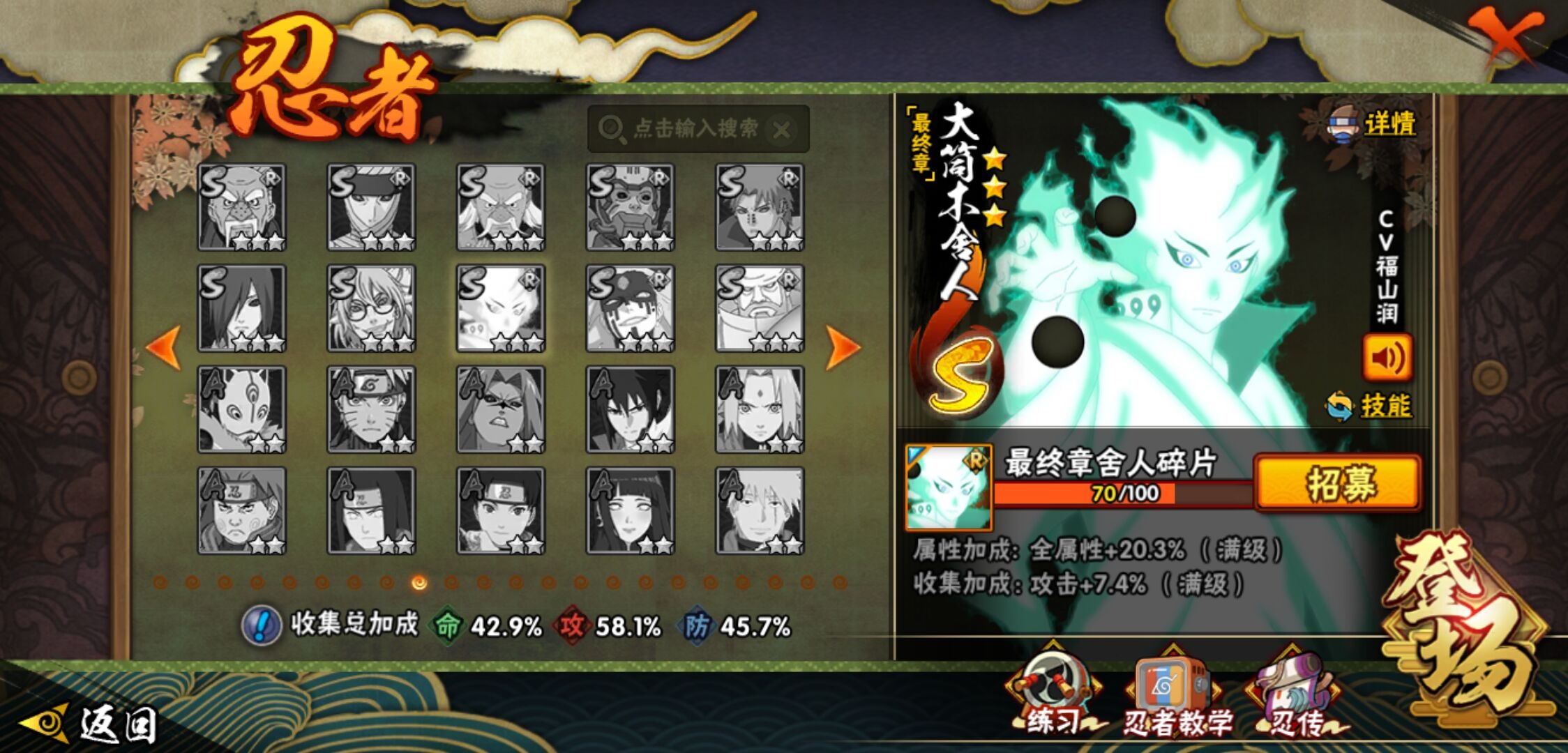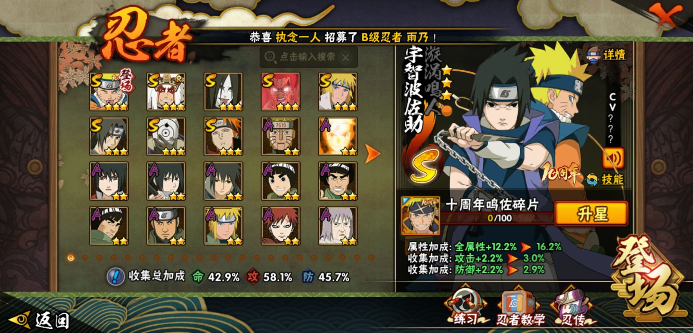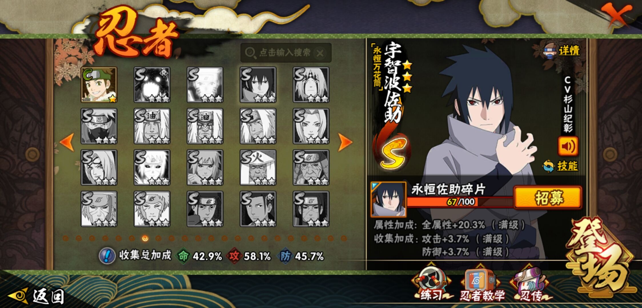 【火影忍者】【lyhy11263】战斗力:459w;段位:下忍2阶;本服排名:2176;vip:v6级;s忍:8个;a忍:27个;通灵兽:15个,s忍:白面具宇智波斑|天道佩恩|漩涡鸣人宇智波佐助|舞之豪杰自来也|大蛇丸(普通)|波风水门|须佐能乎宇智波鼬|死门迈特凯__a忍:青春爆炸迈特凯|忍界大战李洛克|秽土转生角都|四代目土影黑土|青年长门|忍界大战奇拉比|青年波风水门|近松十人卫千代|须佐能乎宇智波佐助|九尾查克拉漩涡鸣人|万花筒写轮眼宇智波佐助|五代目雷影达鲁伊|死司凭血飞段|疾风传我爱罗|飞段(普通)|迈特凯(普通)|宇智波鼬(普通)|夏日限定宇智波鼬|干柿鬼鲛(普通)|绯流琥蝎|蝎(普通)|猿飞阿斯玛(普通)|桃式显现漩涡博人|不缘|宇智波泉奈|羁绊神农|初始形态机械鸣人__通灵兽:忍犬(普通)|蓝蛇|蛤蟆吉|砂之守鹤|忍龟|镰鼬|猿魔|山椒鱼|蜃|蛤蟆仙人|鲛鲨|蛤蟆健|乌鸦(普通)|蛤蟆龙|乌鸦夏日限定