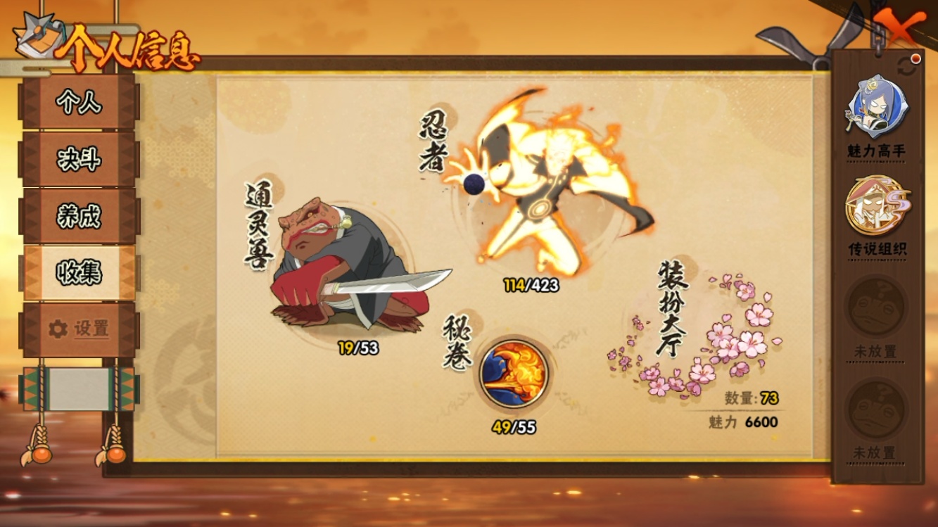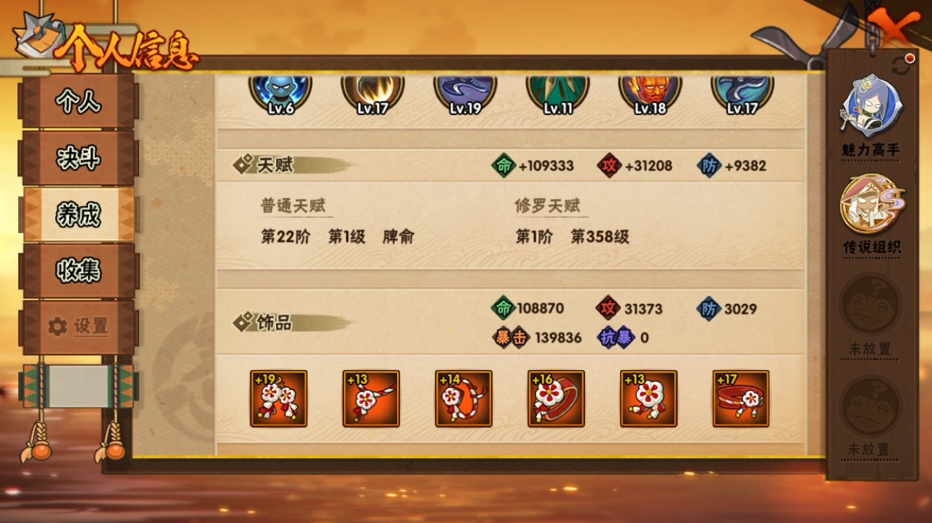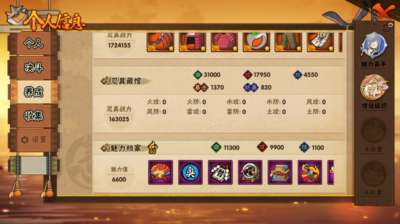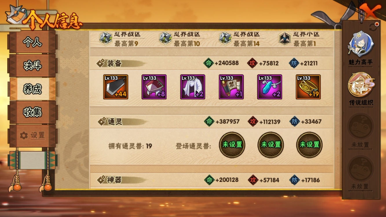 【火影忍者】【lyhy11279】战斗力:838w;段位:上忍1阶;本服排名:8;vip:v14级;s忍:10个;a忍:26个;通灵兽:17个,s忍:十尾人柱力宇智波带土|超佩恩天道|九喇嘛连结波风水门|五影会谈宇智波斑|漩涡鸣人宇智波佐助|舞之豪杰自来也|纲手(普通)|须佐能乎宇智波鼬|猿飞日斩(普通)|暴怒第六尾漩涡鸣人__a忍:青春爆炸迈特凯|仙人模式巳月|幻之真容旗木卡卡西|新春限定我爱罗|元气夏日旗木卡卡西|青年波风水门|夏日泳装照美冥|新春限定小南|恶灵之影飞段|忍界大战秋道丁次|夏日泳装小南|黑绝|迪达拉(普通)|飞段(普通)|旗木卡卡西(普通)|迈特凯(普通)|宇智波鼬(普通)|夏日限定宇智波鼬|干柿鬼鲛(普通)|蝎(普通)|猿飞阿斯玛(普通)|羁绊神农|夏日限定黑土|忍界大战土台|初始形态机械鸣人|侠隐江湖大野木__通灵兽:忍犬(普通)|蓝蛇|蛤蟆吉|忍龟|镰鼬|猿魔|蛞蝓(普通)|砂之守鹤|山椒鱼|蜃|蛤蟆仙人|守鹤(普通)|鲛鲨|蛤蟆健|乌鸦(普通)|蛤蟆龙|熊猫