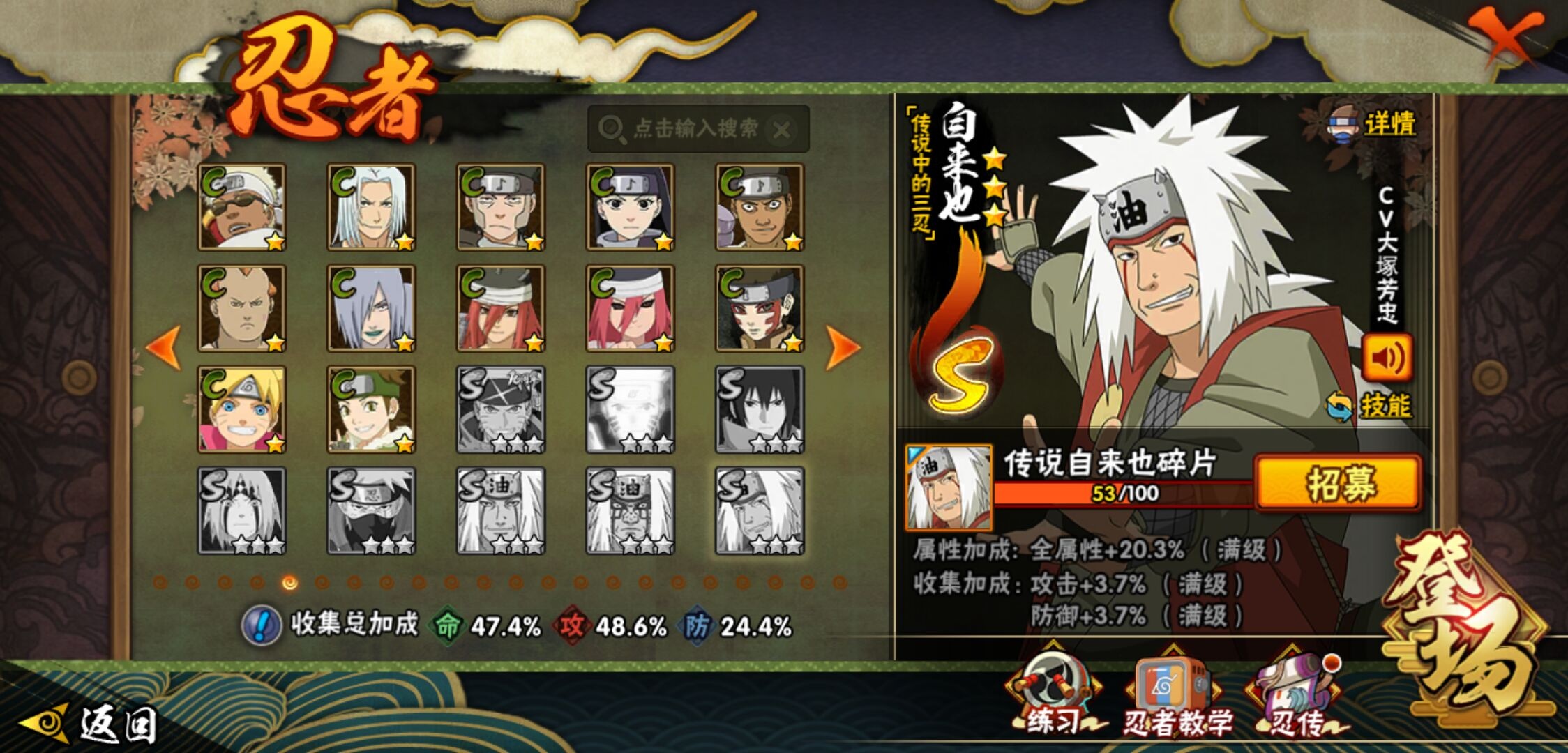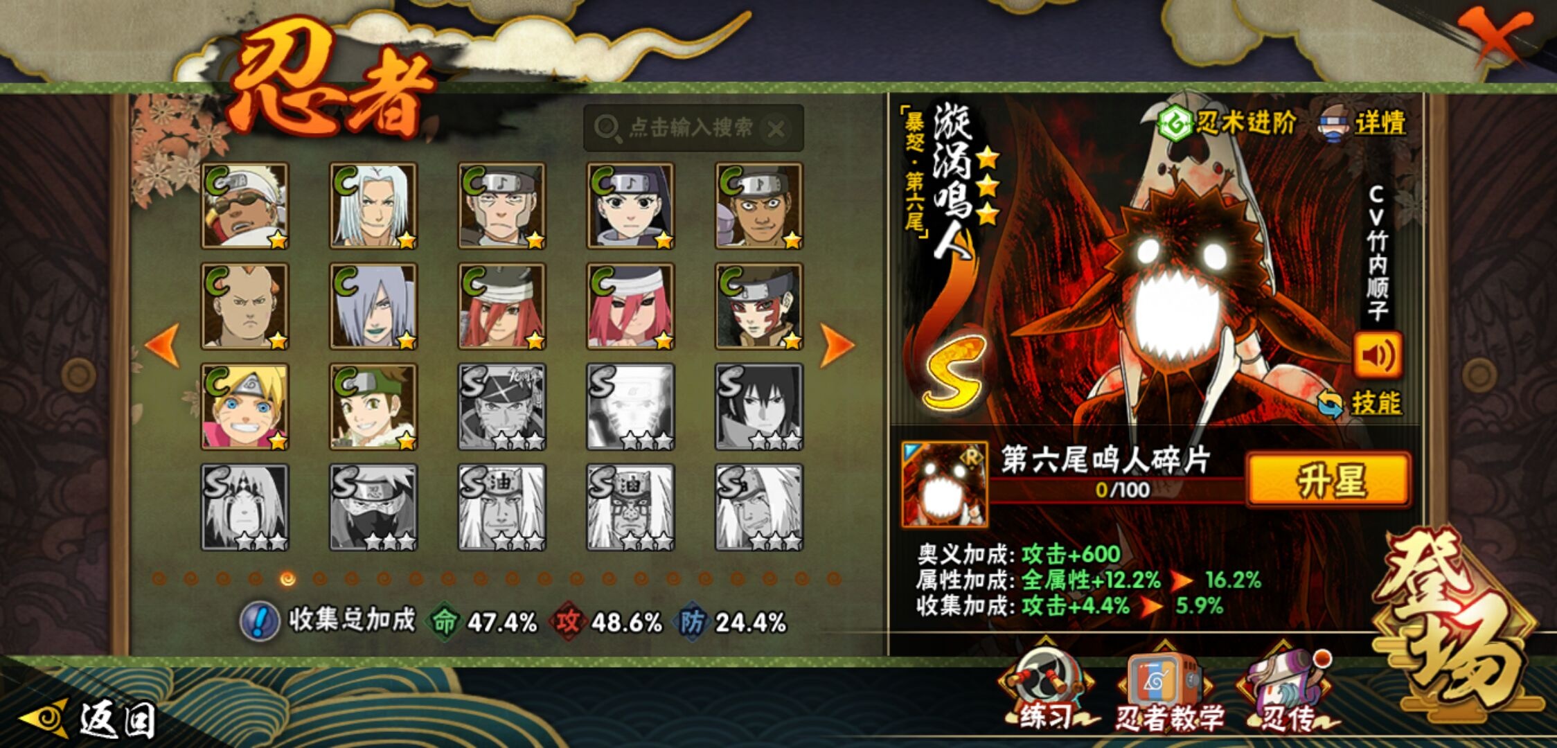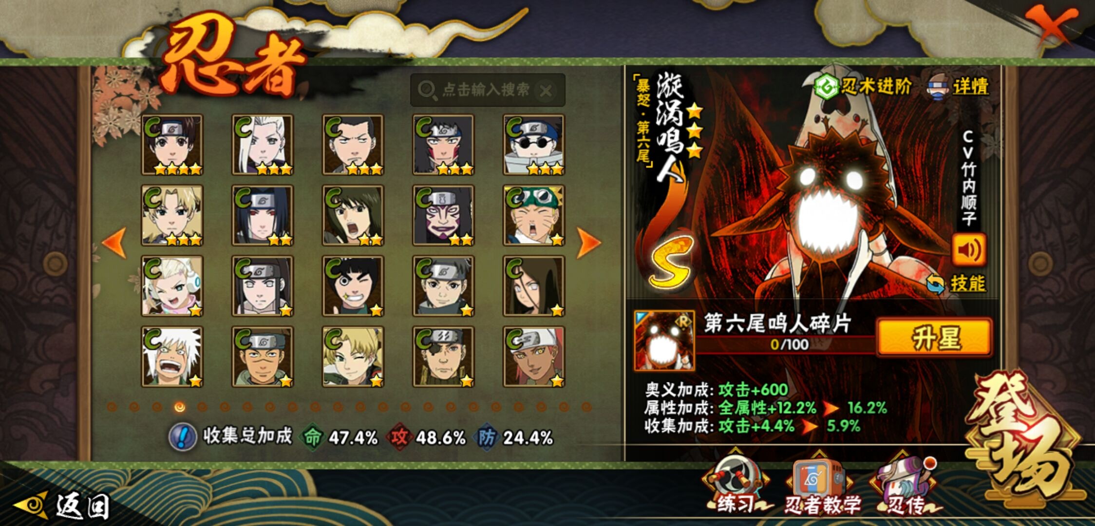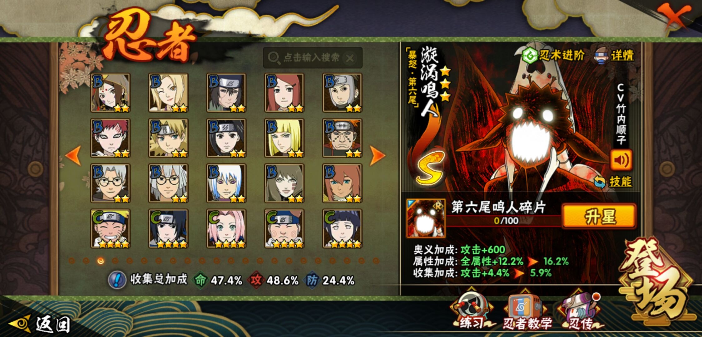 【火影忍者】【lyhy11295】战斗力:624w;段位:见习1阶;本服排名:71;vip:v10级;s忍:5个;a忍:16个;通灵兽:15个,s忍:最终章大筒木舍人|舞之豪杰自来也|纲手(普通)|须佐能乎宇智波鼬|暴怒第六尾漩涡鸣人__a忍:幻之真容旗木卡卡西|秽土转生角都|近松十人卫千代|万花筒写轮眼宇智波佐助|死司凭血飞段|迪达拉(普通)|飞段(普通)|迈特凯(普通) 4星|宇智波鼬(普通)|干柿鬼鲛(普通) 3星|秽土转生桃地再不斩|蝎(普通)|猿飞阿斯玛(普通) 4星|宇智波泉奈|羁绊神农|忍界大战土台__通灵兽:忍犬(普通)|蓝蛇|蛤蟆吉|忍龟|镰鼬|砂之守鹤|猿魔|山椒鱼|蛞蝓(普通)|蜃|蛤蟆仙人|鲛鲨|蛤蟆健|乌鸦(普通)|蛤蟆龙