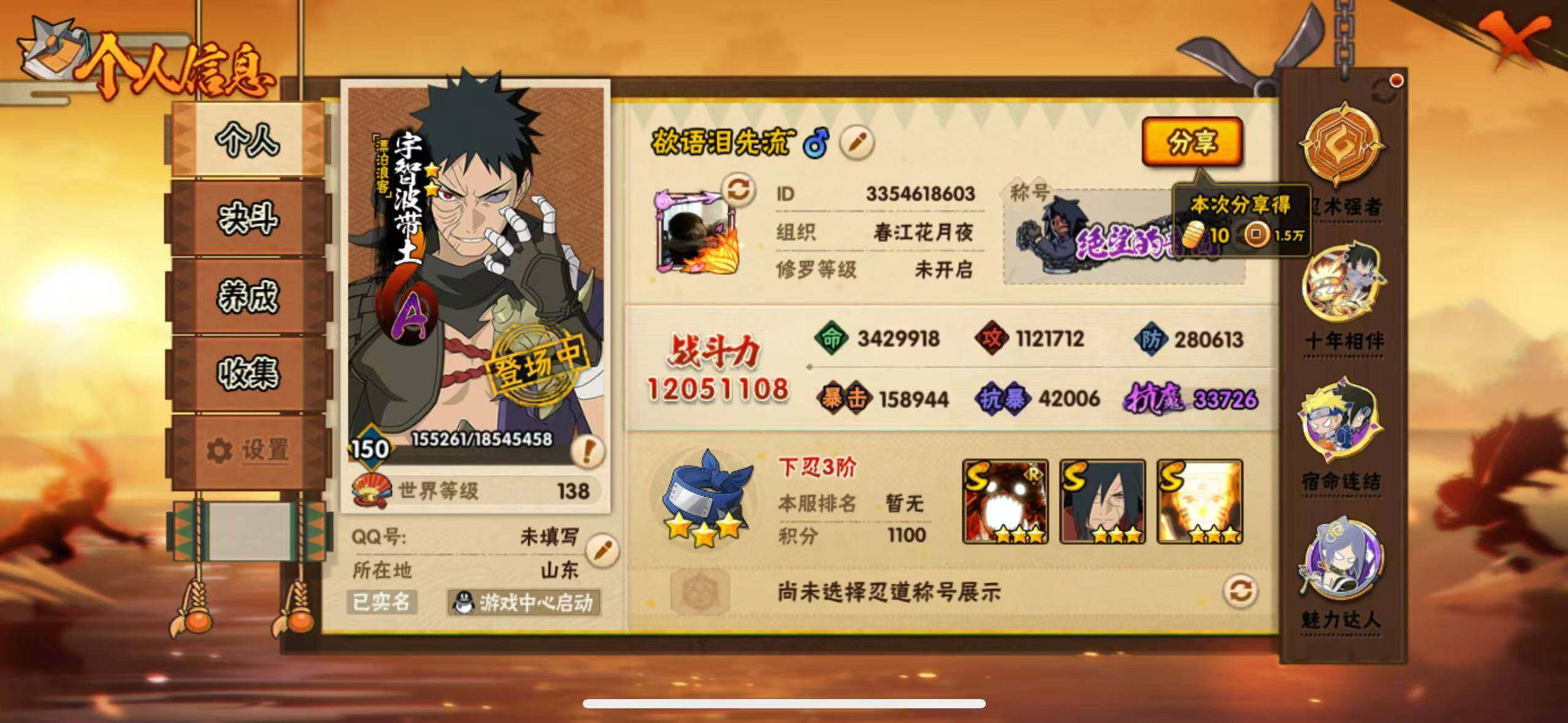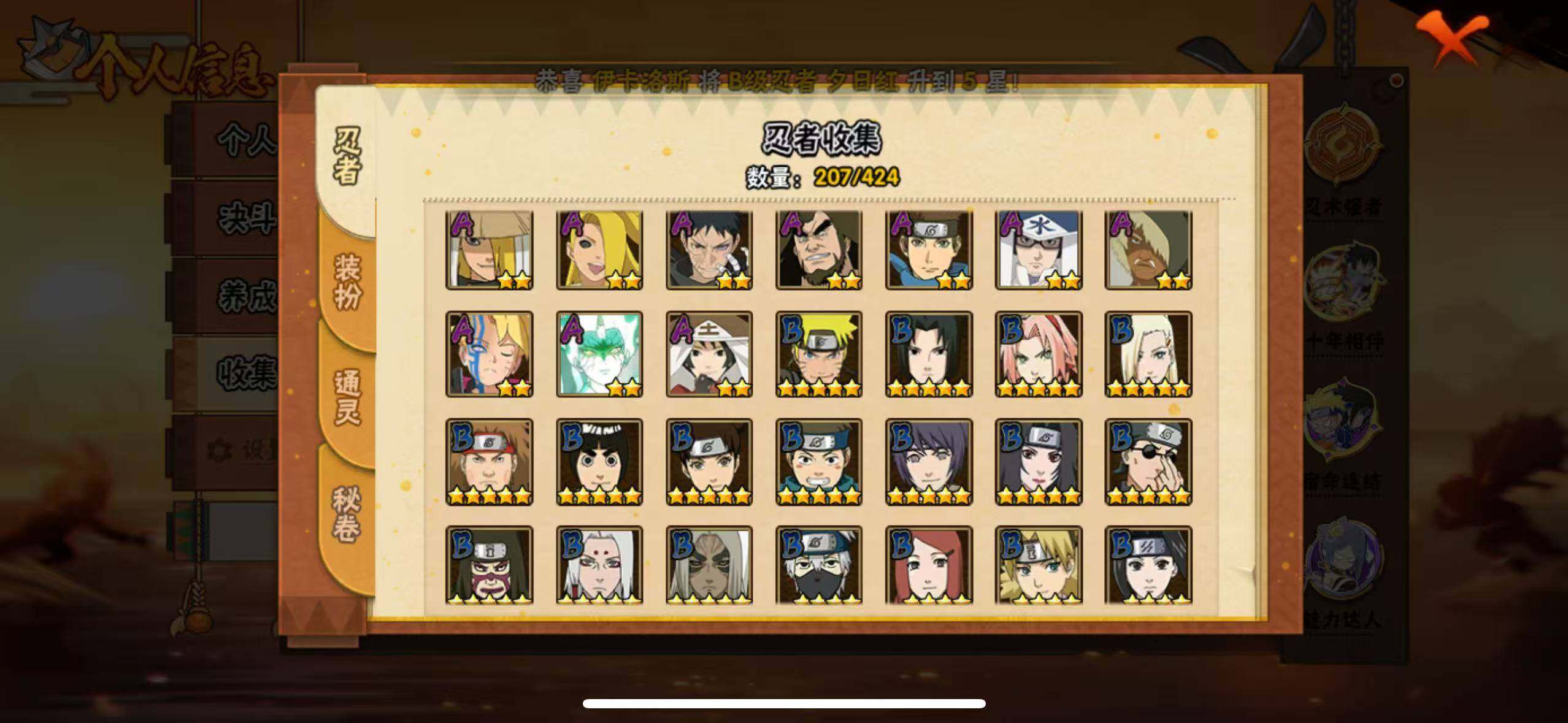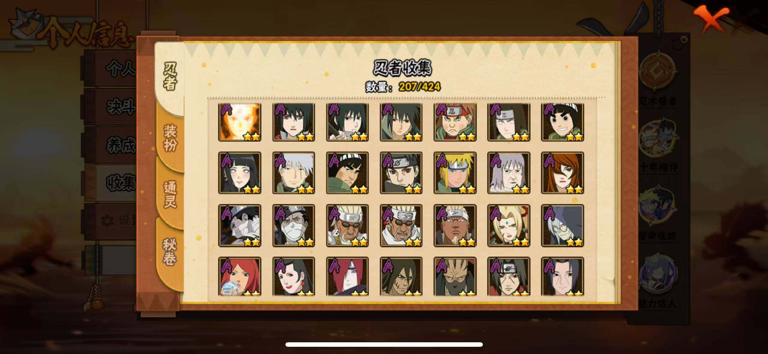 [16447801]19s级忍者数-47a级忍者数 【s级忍者】:千手柱间「秽土转生」3星,宇智波鼬「秽土转生」3星,宇智波斑「秽土转生·解」3星,春野樱「忍界大战」3星,宇智波带土「忍界大战」3星,艾「忍界大战」3星,宇智波鼬「须佐能乎」3星,自来也「舞之豪杰」3星,大蛇丸3星,自来也「传说中的三忍」3星,纲手3星,波风水门3星,漩涡鸣人「九喇嘛连结」3星,佩恩「天道」3星,宇智波佐助「永恒万花筒」3星,漩涡鸣人「暴怒·第六尾」3星,波风水门「九喇嘛连结」3星,宇智波斑「五影会谈」3星,漩涡鸣人·宇智波佐助3星 【a级忍者】:艾「青年」2星,长门「青年」2星,波风水门「青年」2星,达鲁伊「博人传」2星,迪达拉2星,迪达拉「秽土转生」2星,奇拉比2星,奇拉比「忍界大战」2星,飞段4星,飞段「死司凭血」3星,干柿鬼鲛5星,漩涡博人「桃式显现」2星,漩涡鸣人「九尾查克拉」2星,机械鸣人「初始形态」2星,迈特凯5星,旗木卡卡西「幻之真容」2星,桃地再不斩2星,桃地再不斩「秽土转生」2星,我爱罗「疾风传」3星,蝎4星,蝎「绯流琥」2星,角都「秽土转生」2星,猿飞阿斯玛5星,宇智波止水2星,宇智波鼬2星,宇智波鼬「夏日限定」2星,宇智波佐助「须佐能乎」2星,宇智波佐助「万花筒写轮眼」2星,药师兜「侠隐江湖」2星,照美冥「五代目水影」2星,日向宁次「忍界大战」2星,日向雏田「最终章」2星,宇智波带土「漂泊浪客」2星,长十郎「六代目水影」2星,李洛克「忍界大战」2星,猿飞木叶丸「博人传」2星,黑土「博人传」2星,秋道丁次「忍界大战」2星,千代「近松十人卫」2星,神农「羁绊」2星,土台「忍界大战」3星,不缘2星,不风2星,宇智波泉奈2星,巳月「仙人模式」2星,纲手「妖怪奇谭」2星,迈特凯「青春爆炸」2星