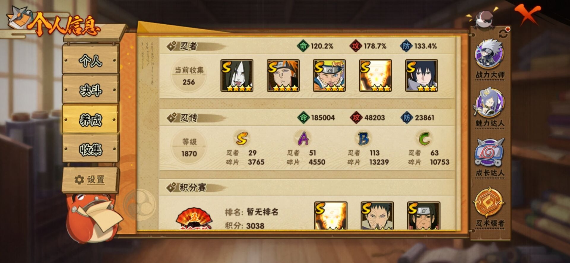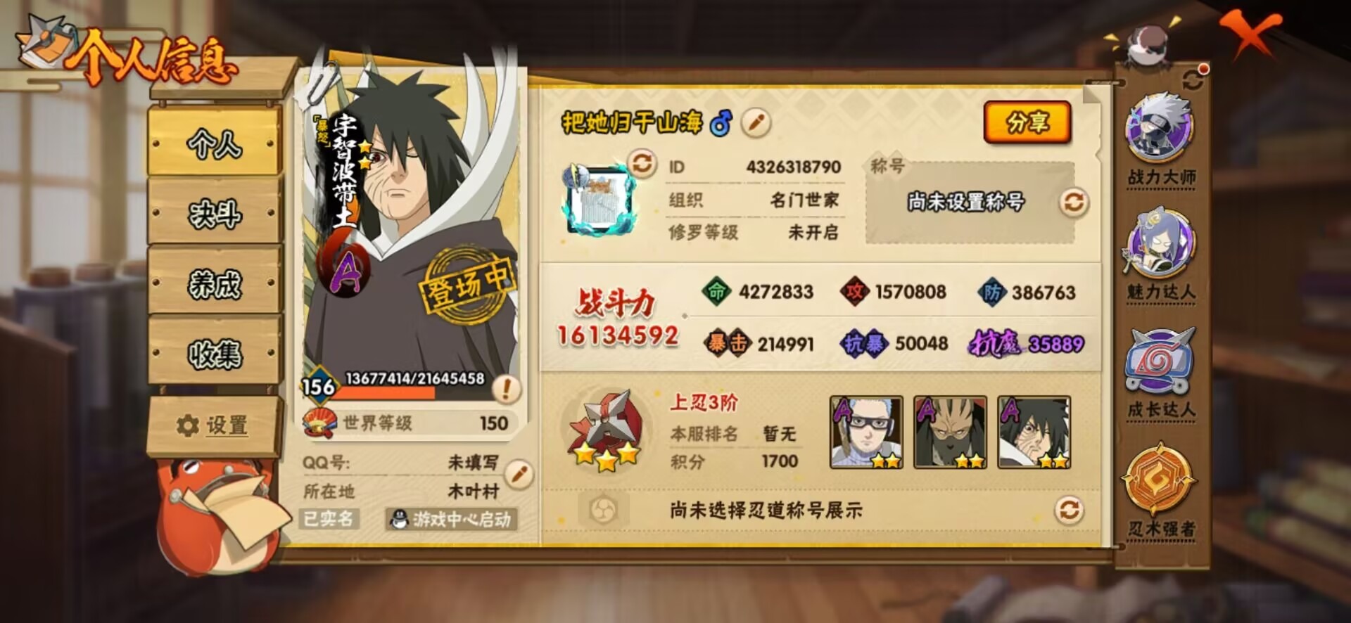 [16462570]v9 29s忍 51a忍 23通灵 1613.4w战力 可二次 可修改实名 【s级忍者】宇智波止水「须佐能乎」艾「忍界大战」宇智波斑「秽土转生·解」宇智波佐助「永恒万花筒」春野樱 「忍界大战」漩涡鸣人 「九喇嘛连结」迈特凯「死门」宇智波带土 「忍界大战」千手柱间「秽土转生」自来也 「舞之豪杰」旗木卡卡西「须佐能乎」大筒木舍人 「最终章」自来也 「传说中的三忍」漩涡鸣人·宇智波佐助宇智波鼬「秽土转生」宇智波斑「秽土转生」千手扉间「秽土转生」纲手「百豪」波风水门「秽土转生」猿飞日斩「秽土转生」长门「秽土转生」宇智波斑千手扉间宇智波鼬 「须佐能乎」佩恩「天道」波风水门大蛇丸自来也纲手